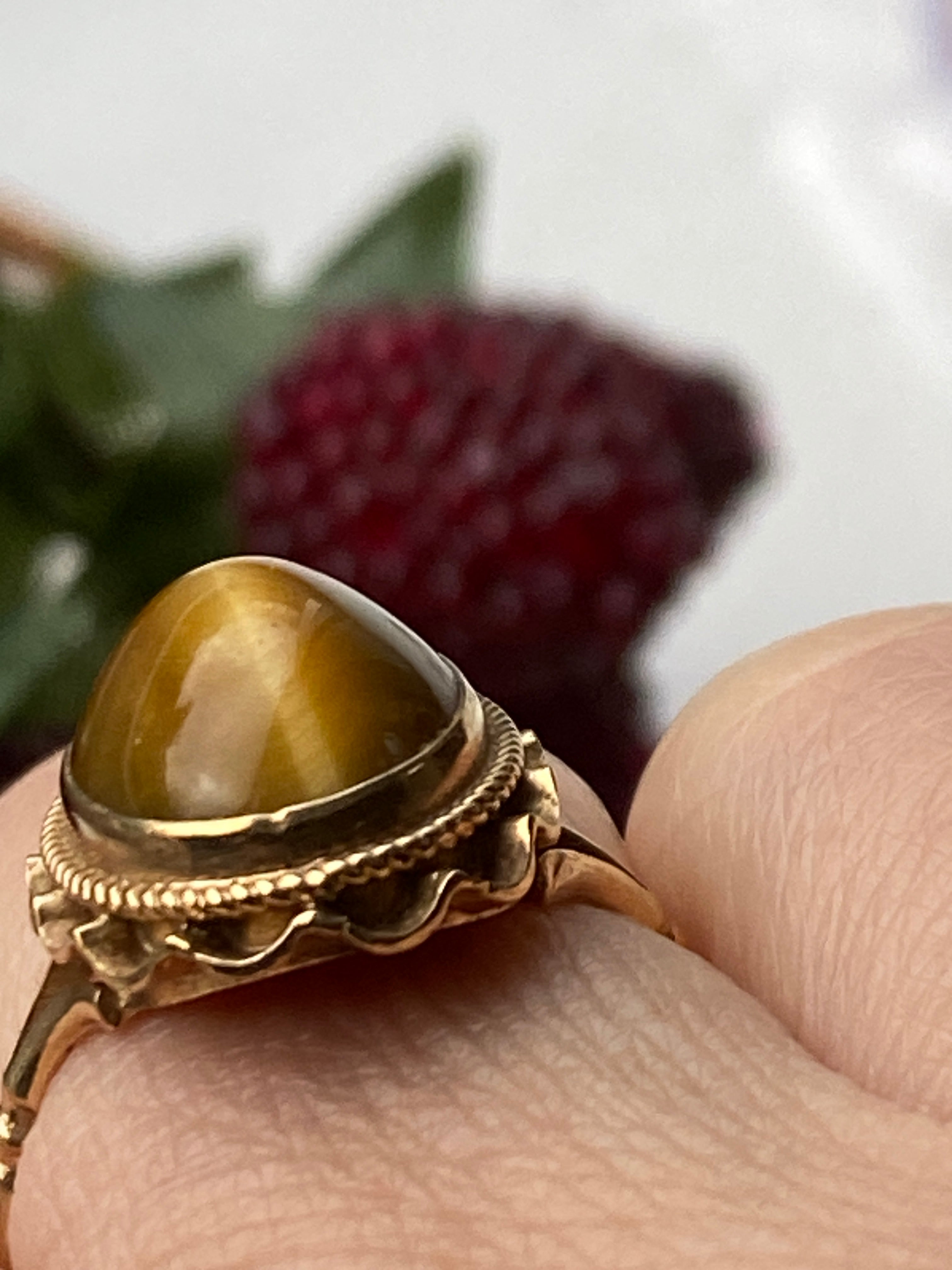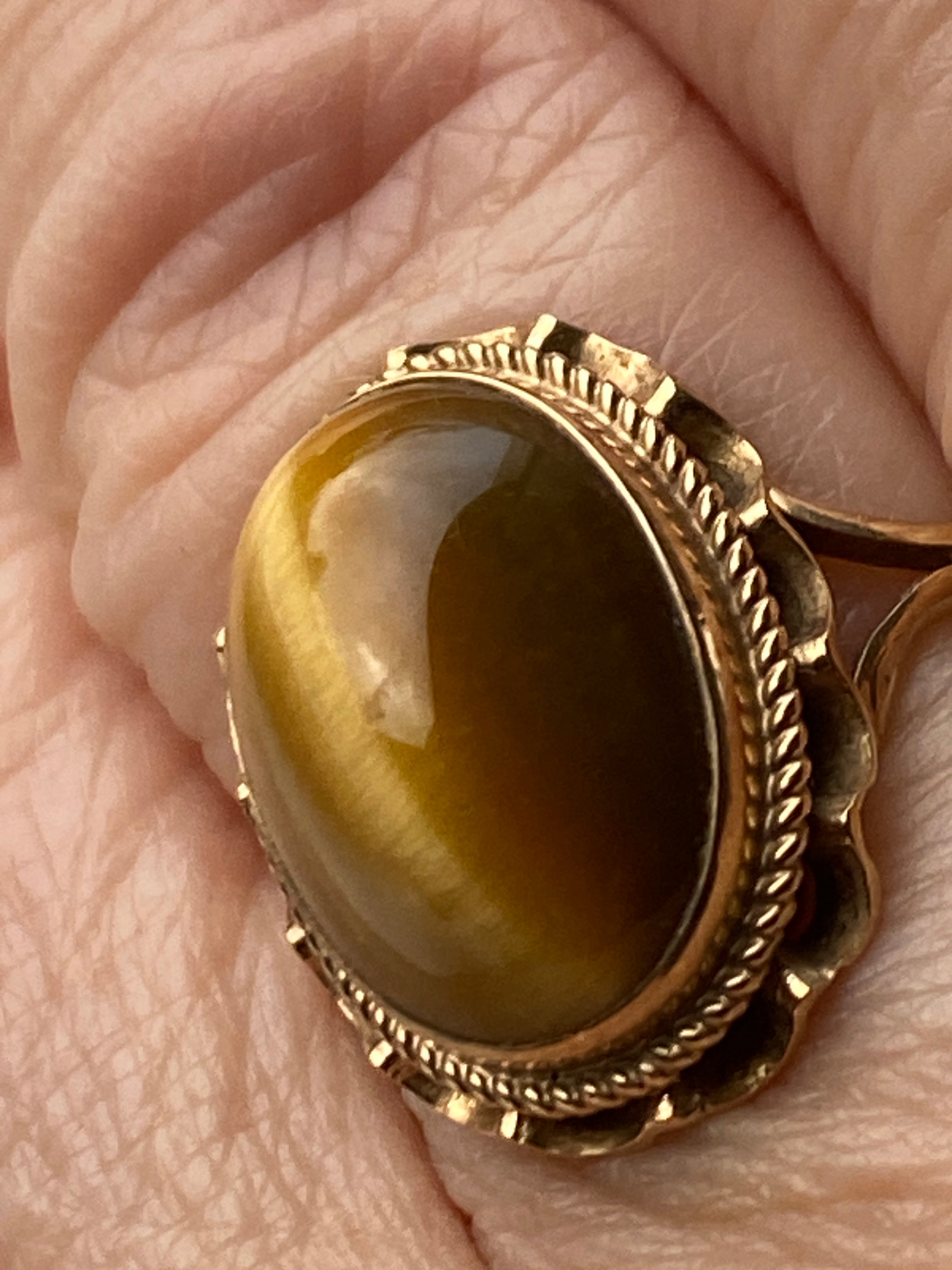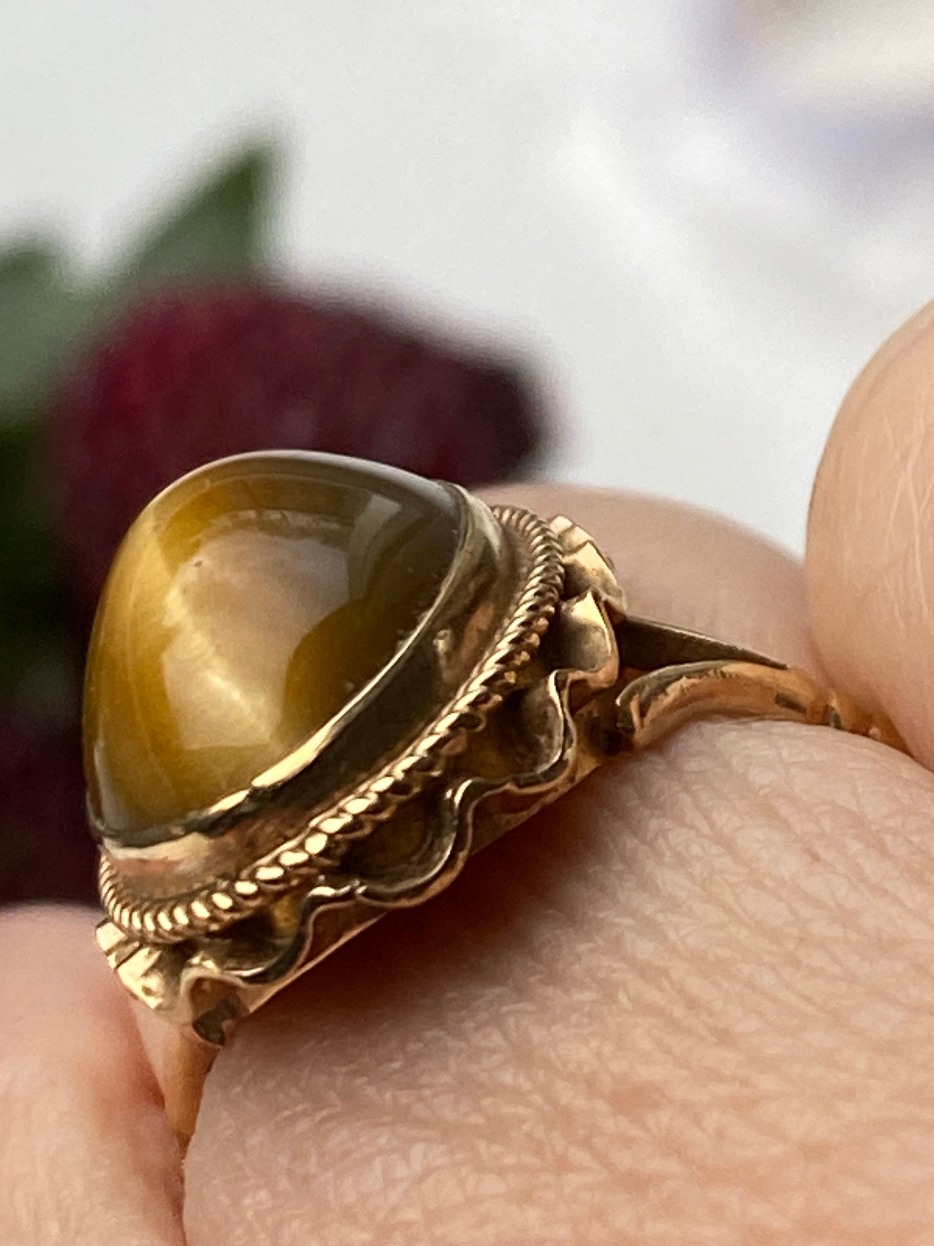 An eye catching 9ct gold ring set with a natural Tigers eye Quartz stone