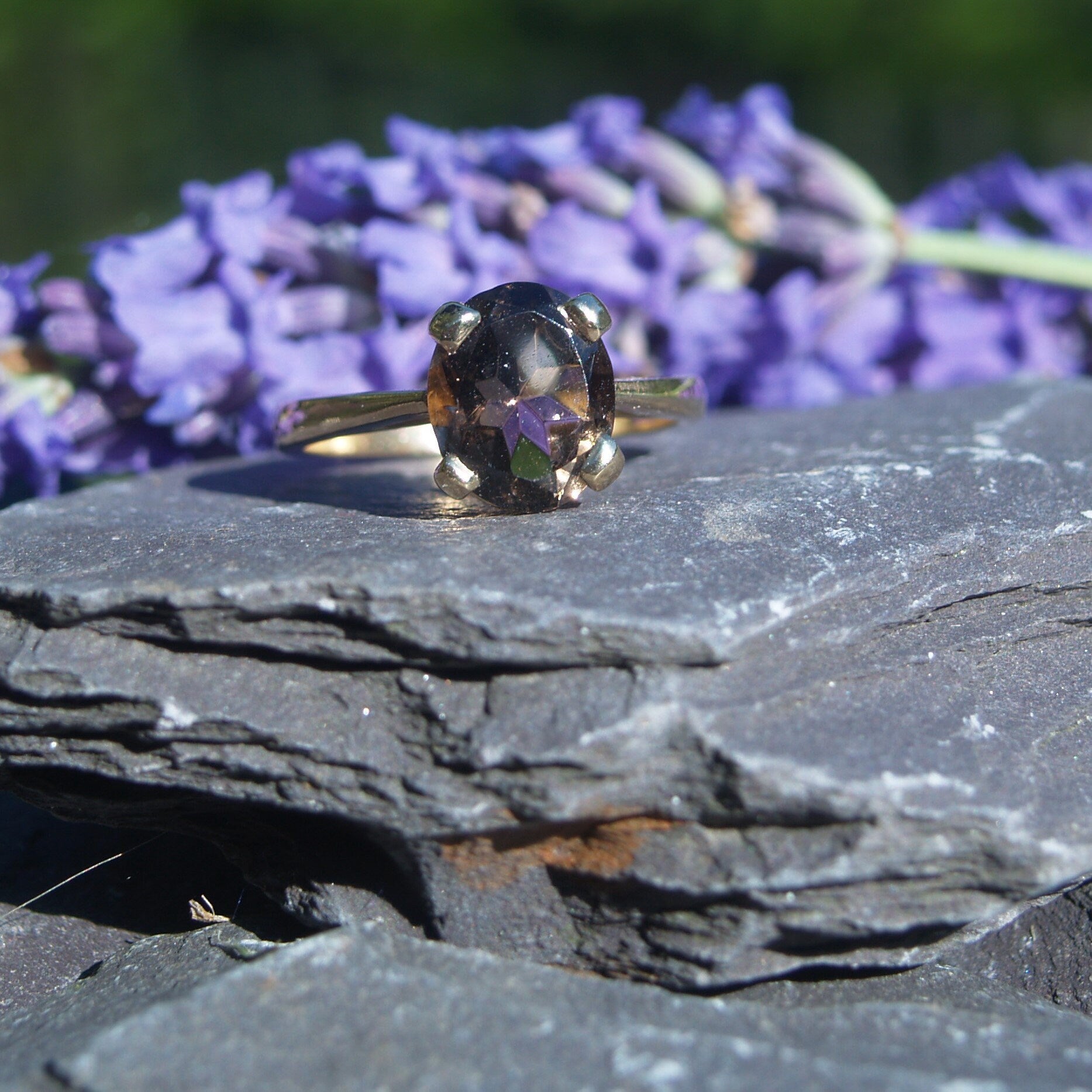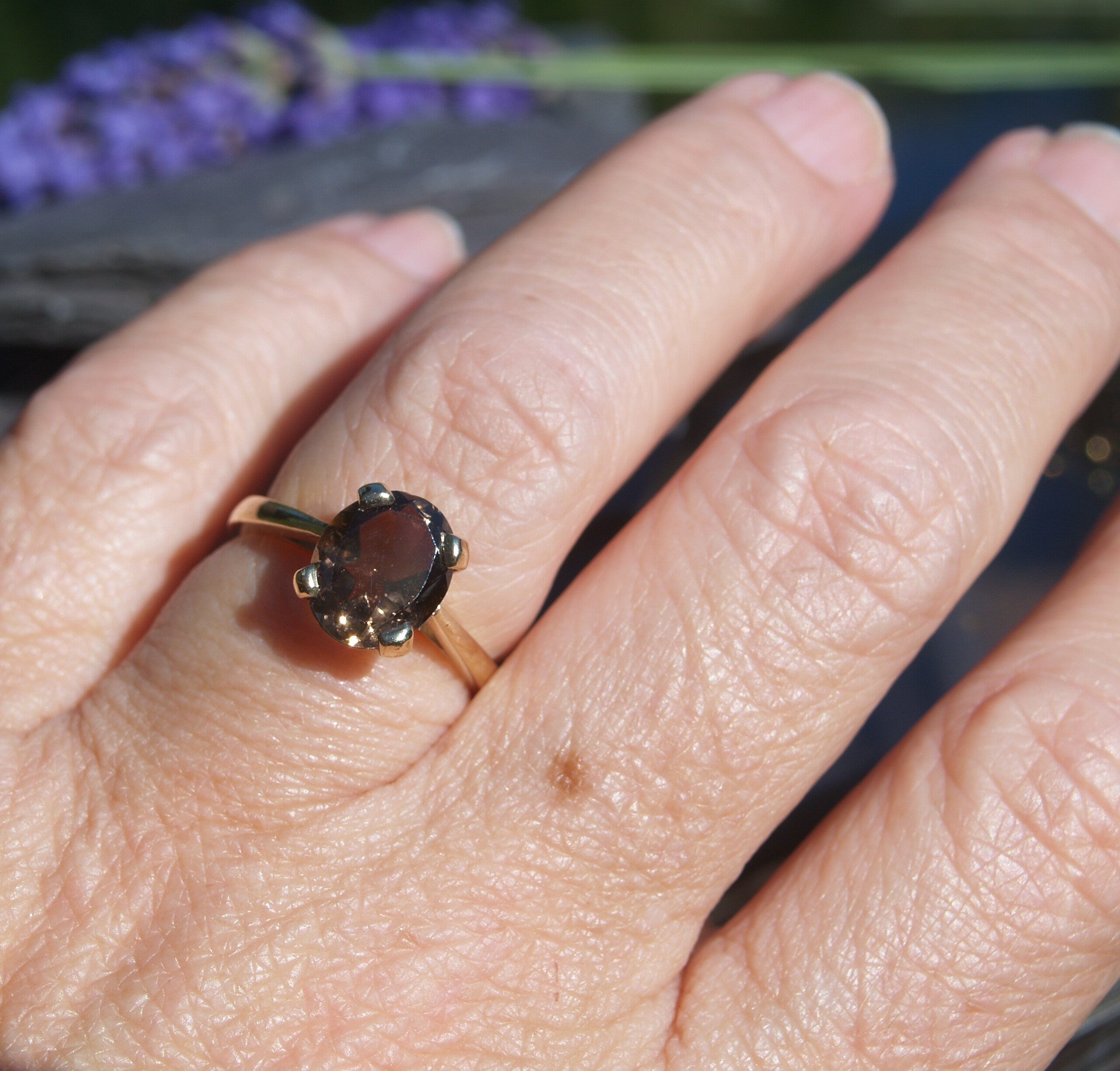 A well made 9ct gold ring set with an oval Smoky Quartz stone.