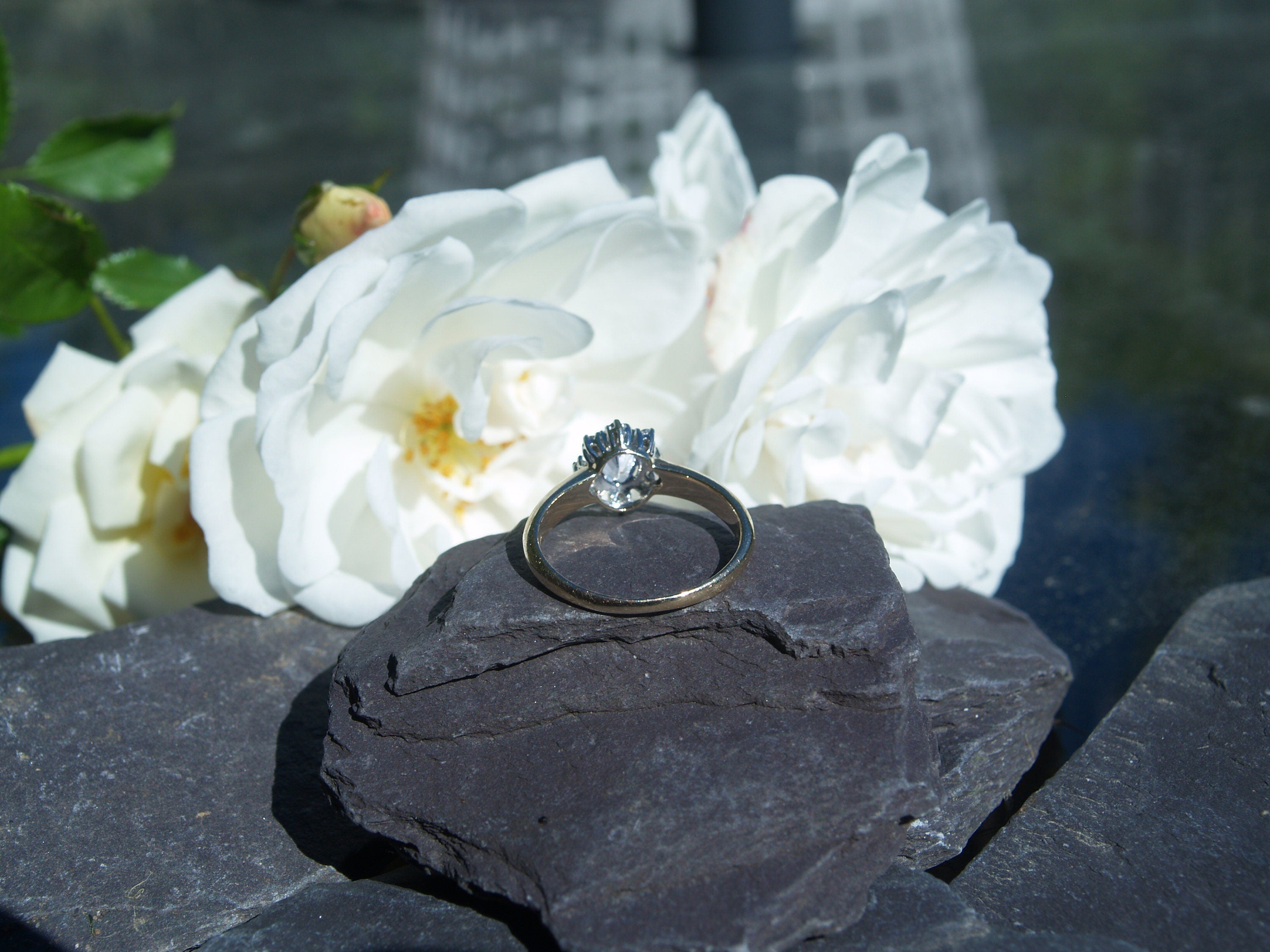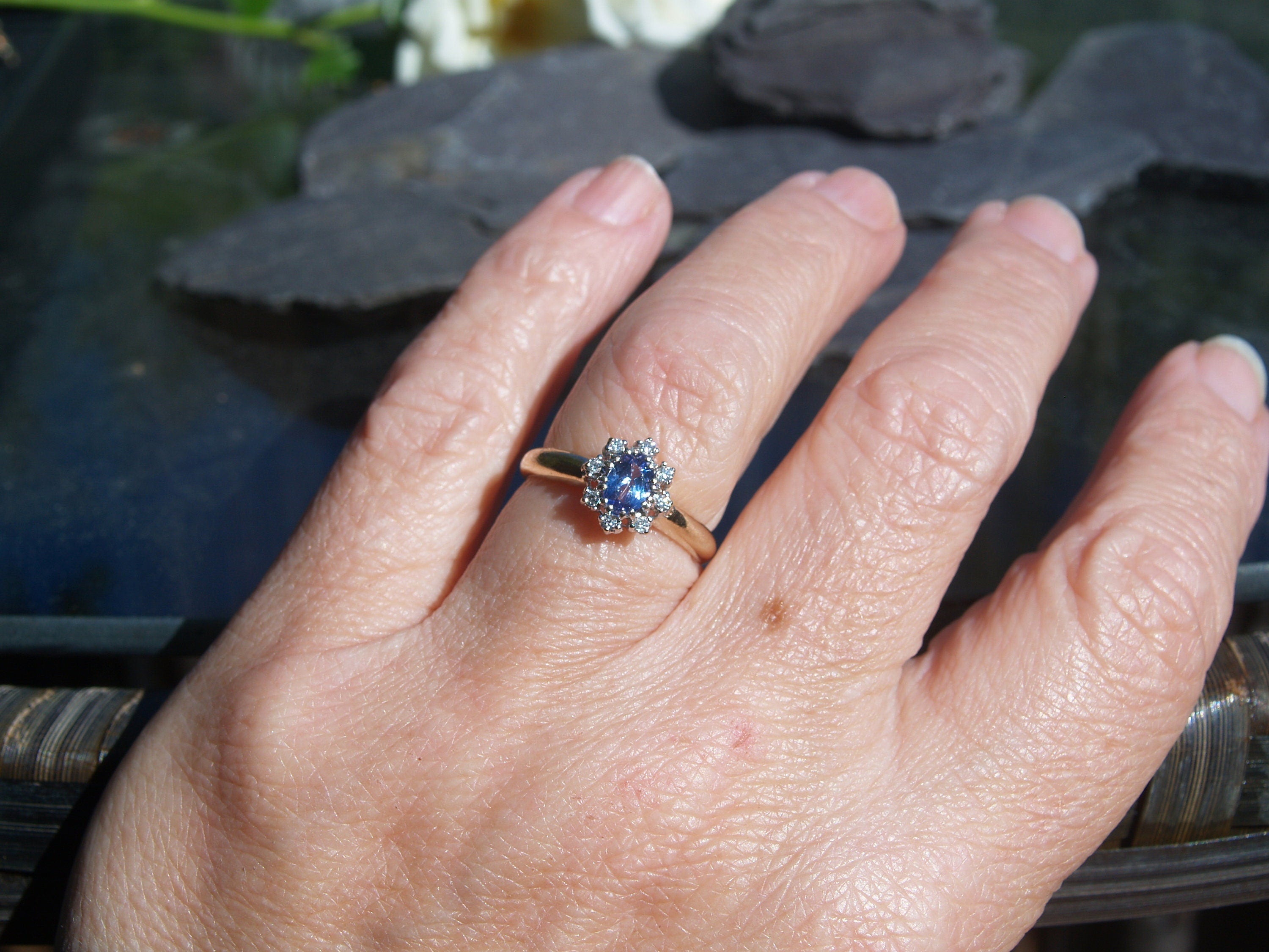 A stunning Tanzanite & Diamond Cluster Engagement ring.