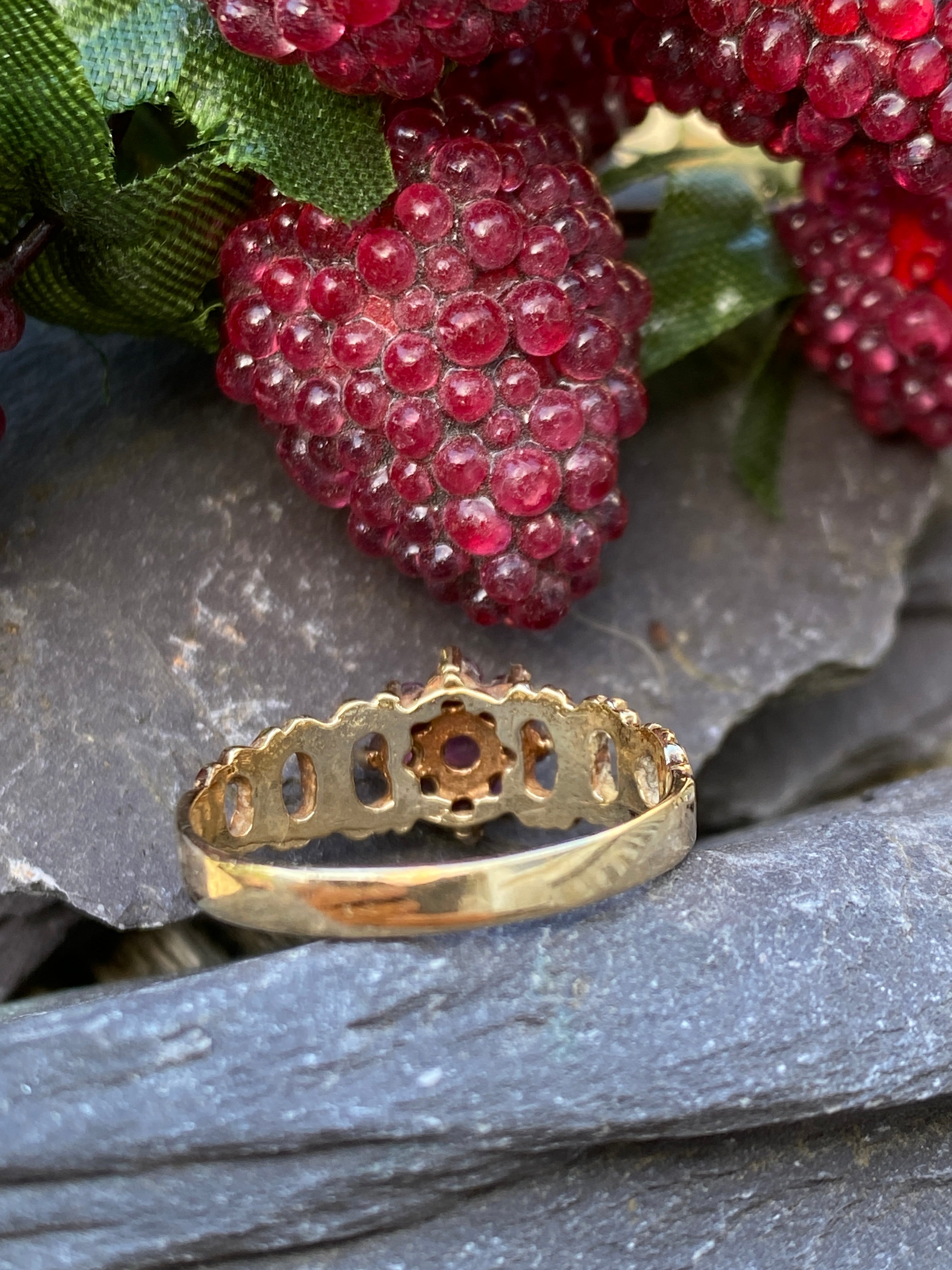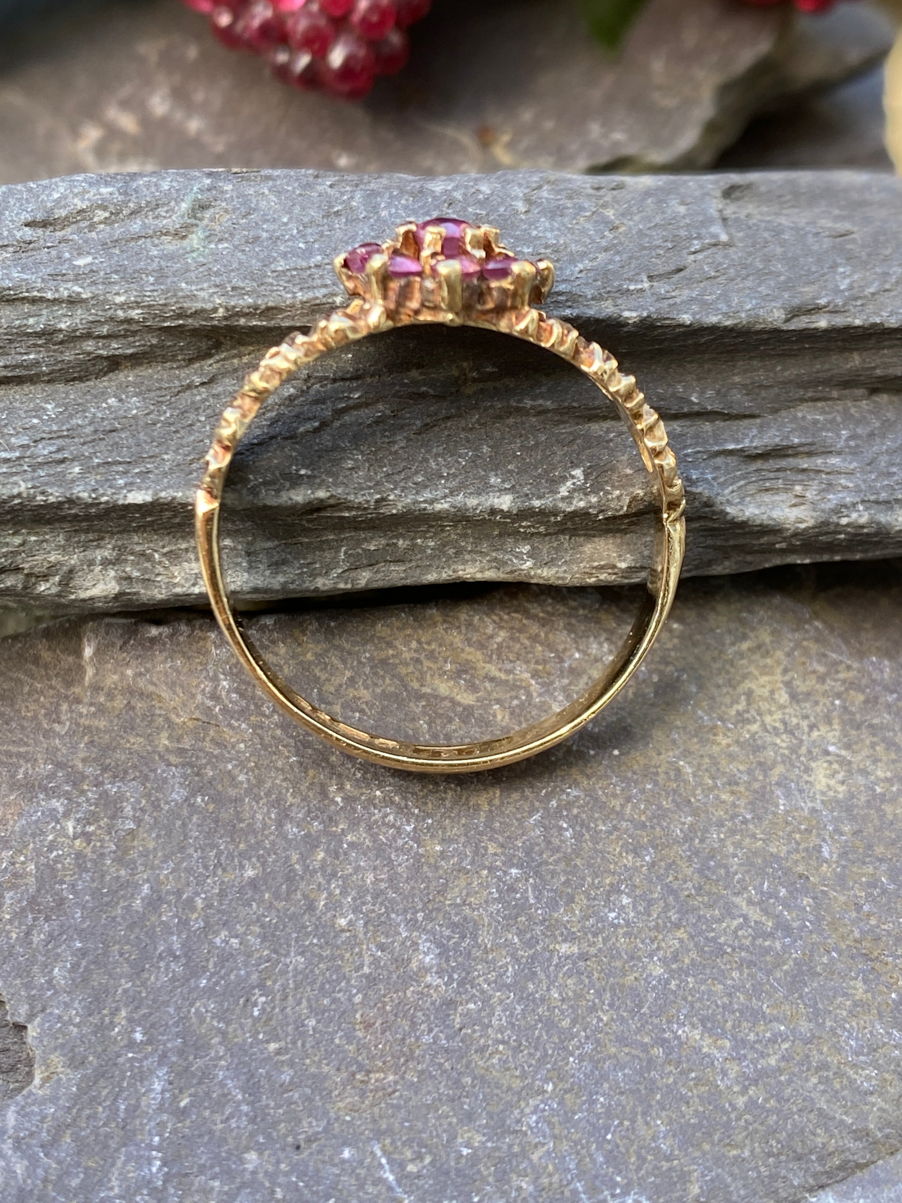 Vintage 9ct Ruby Cluster Ring Size N or 6 3/4 US.