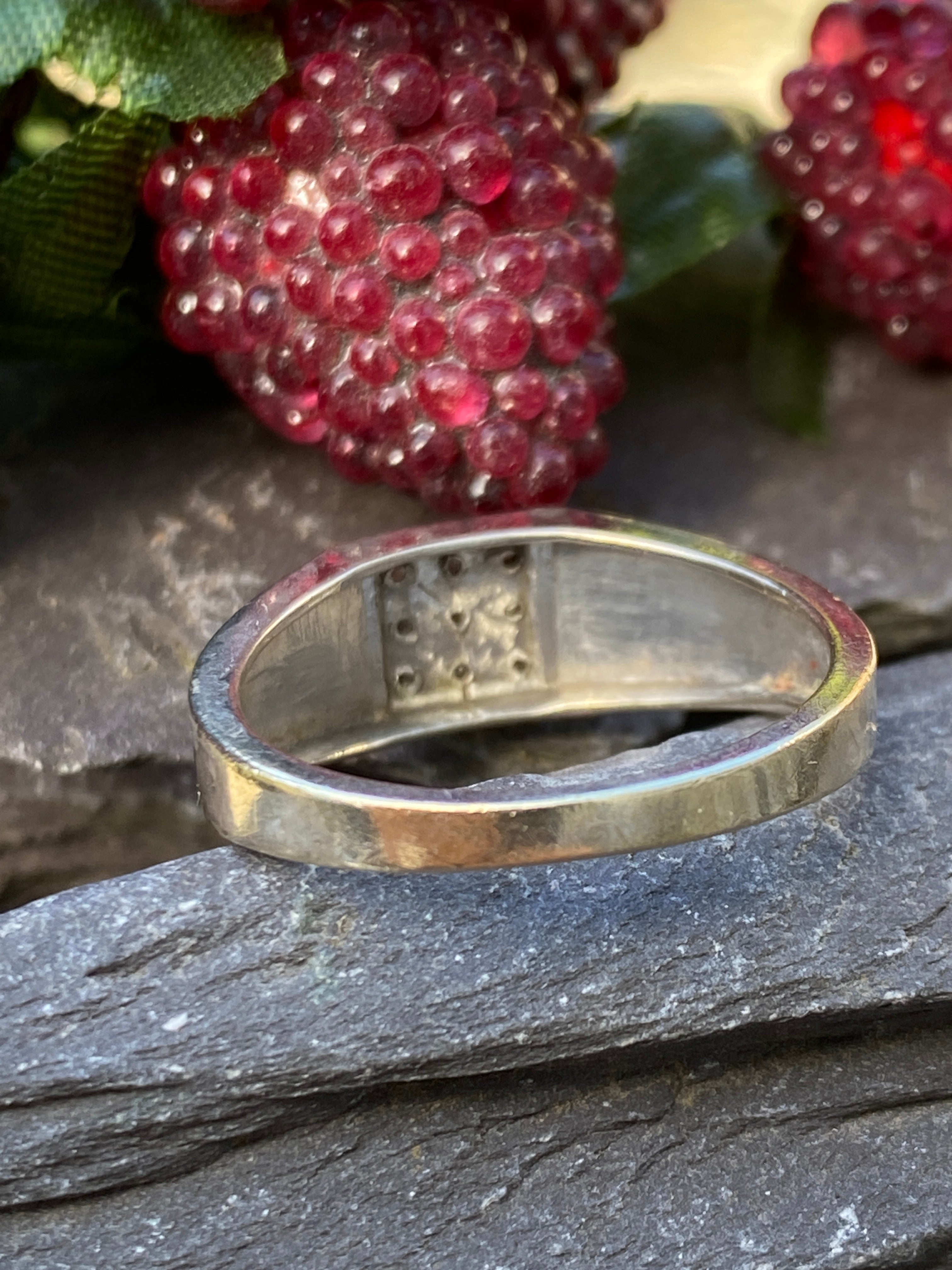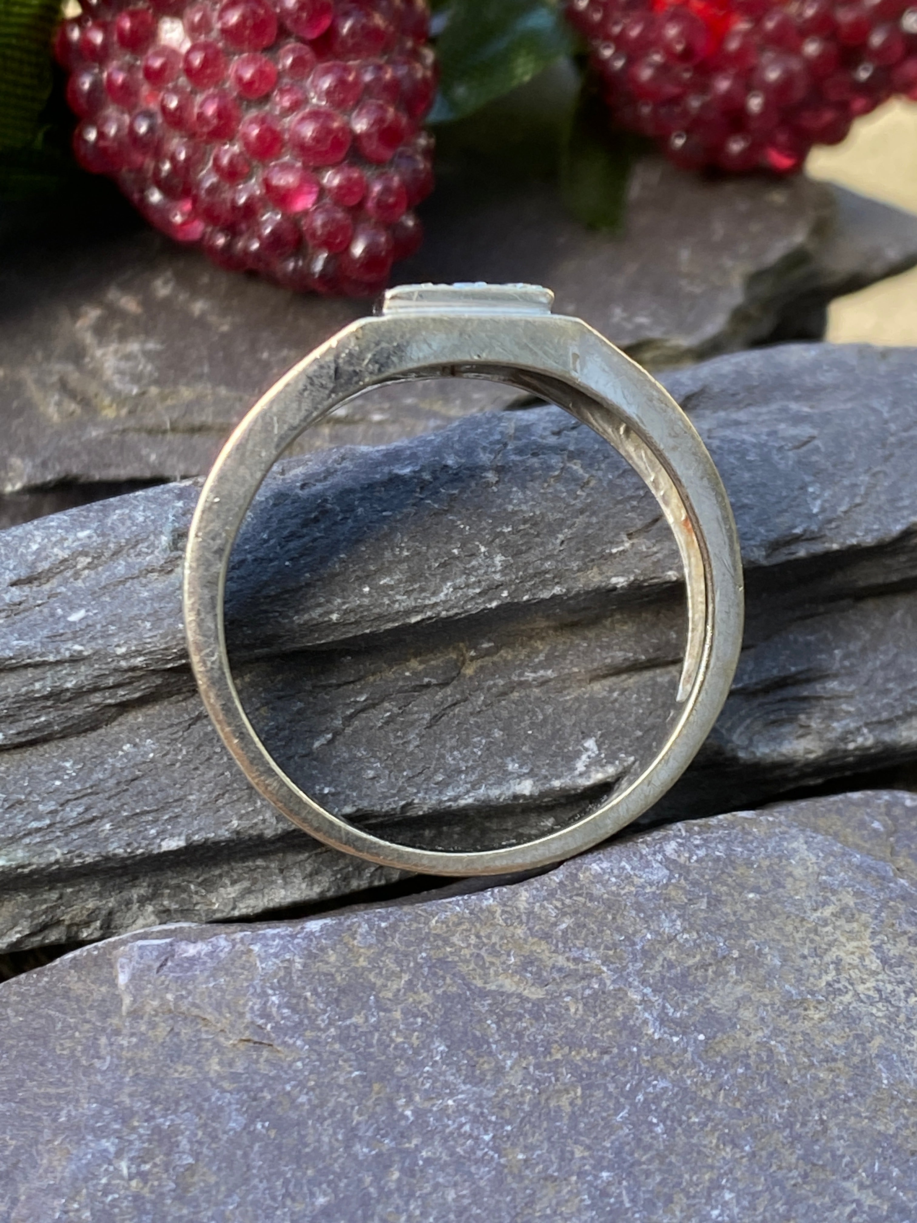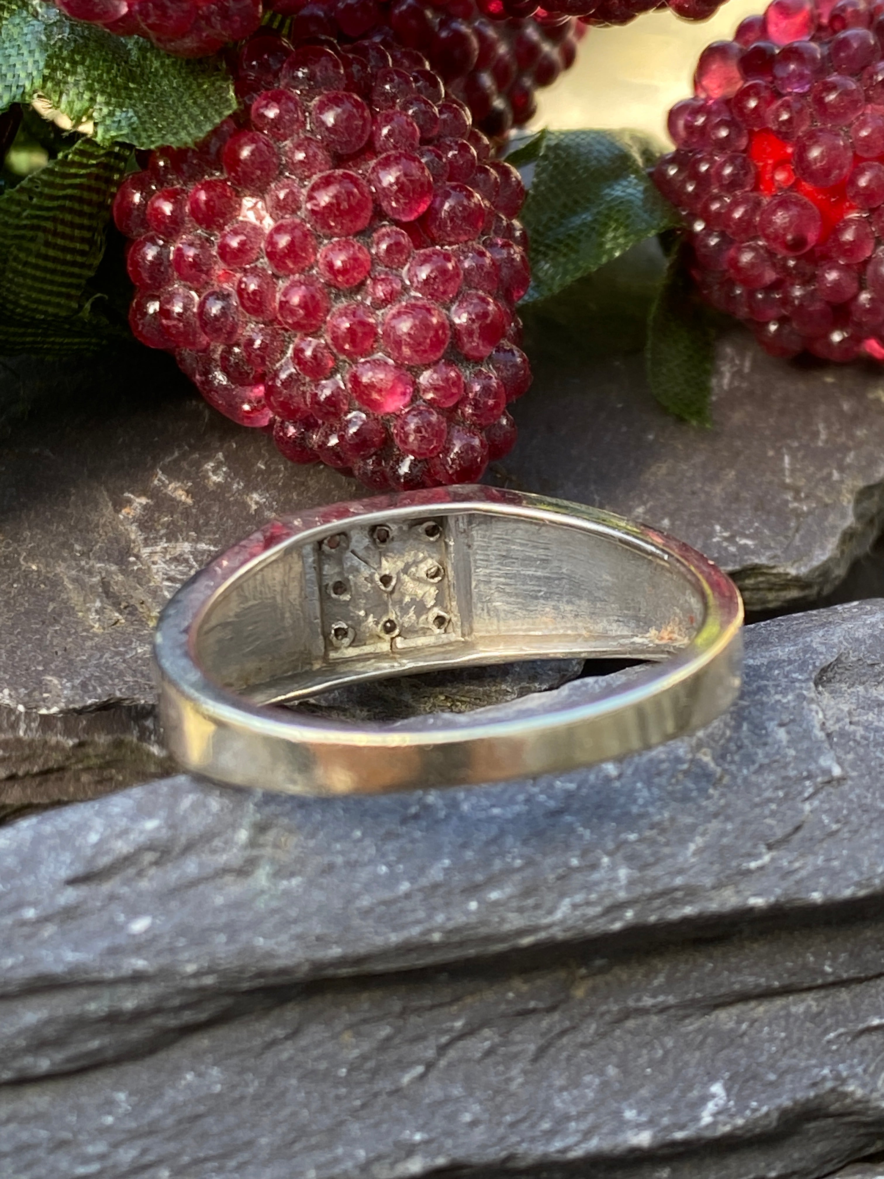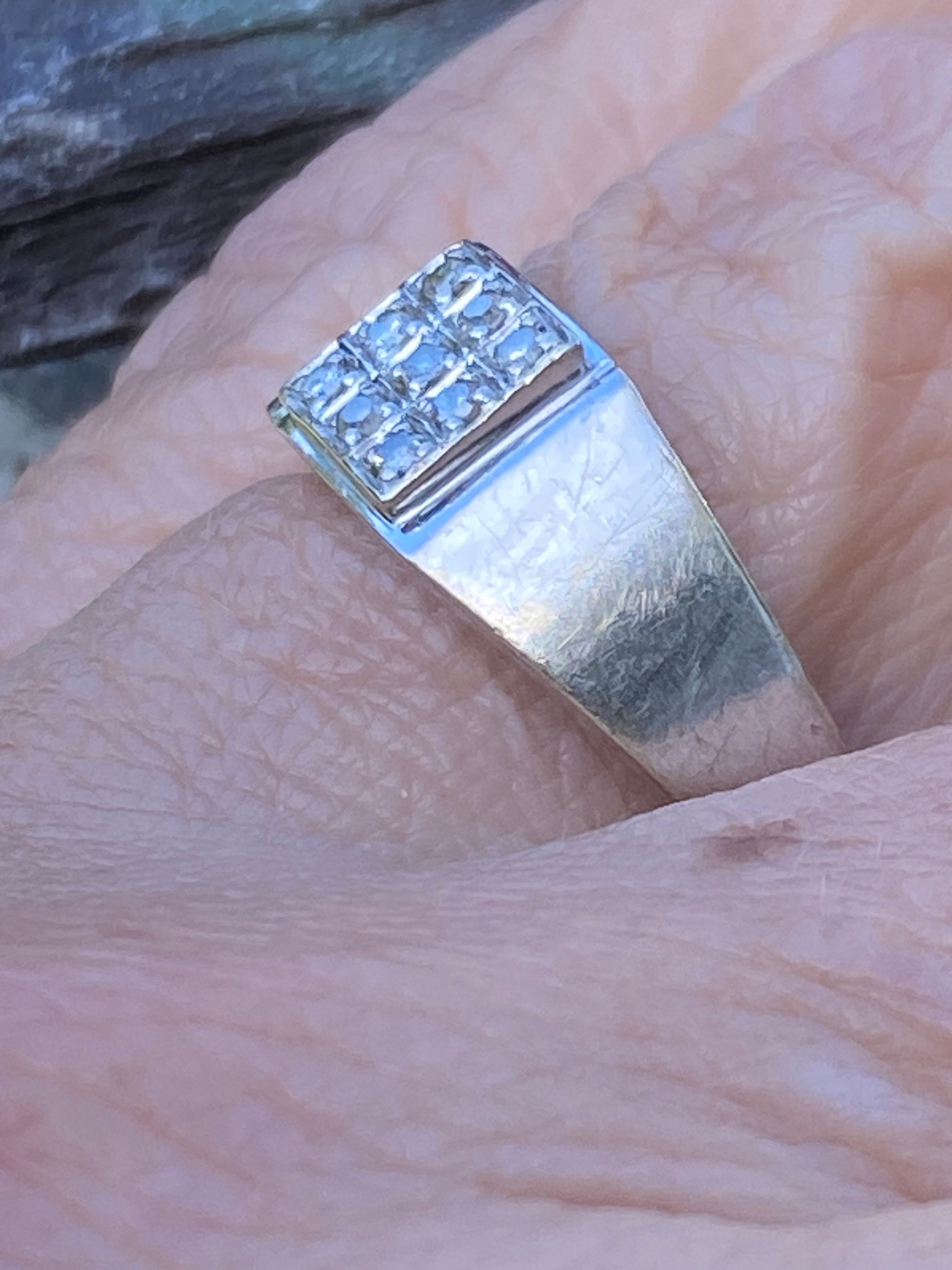 A smart 9ct white gold masc ring with a square set with 9 Diamonds