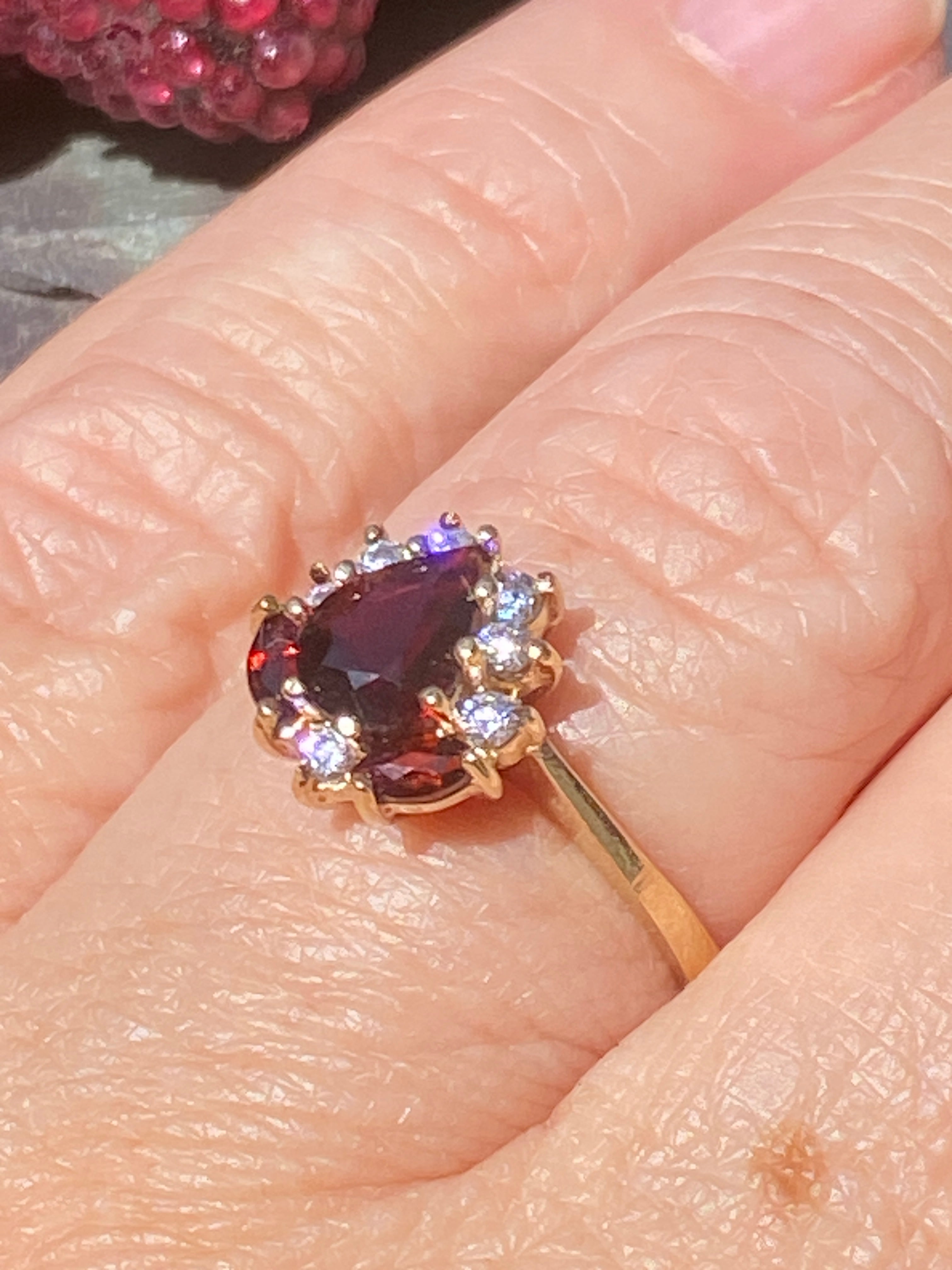 Vintage 9ct Garnet & Cubic Zirconia Ring Size P or 7 3/4 US.
