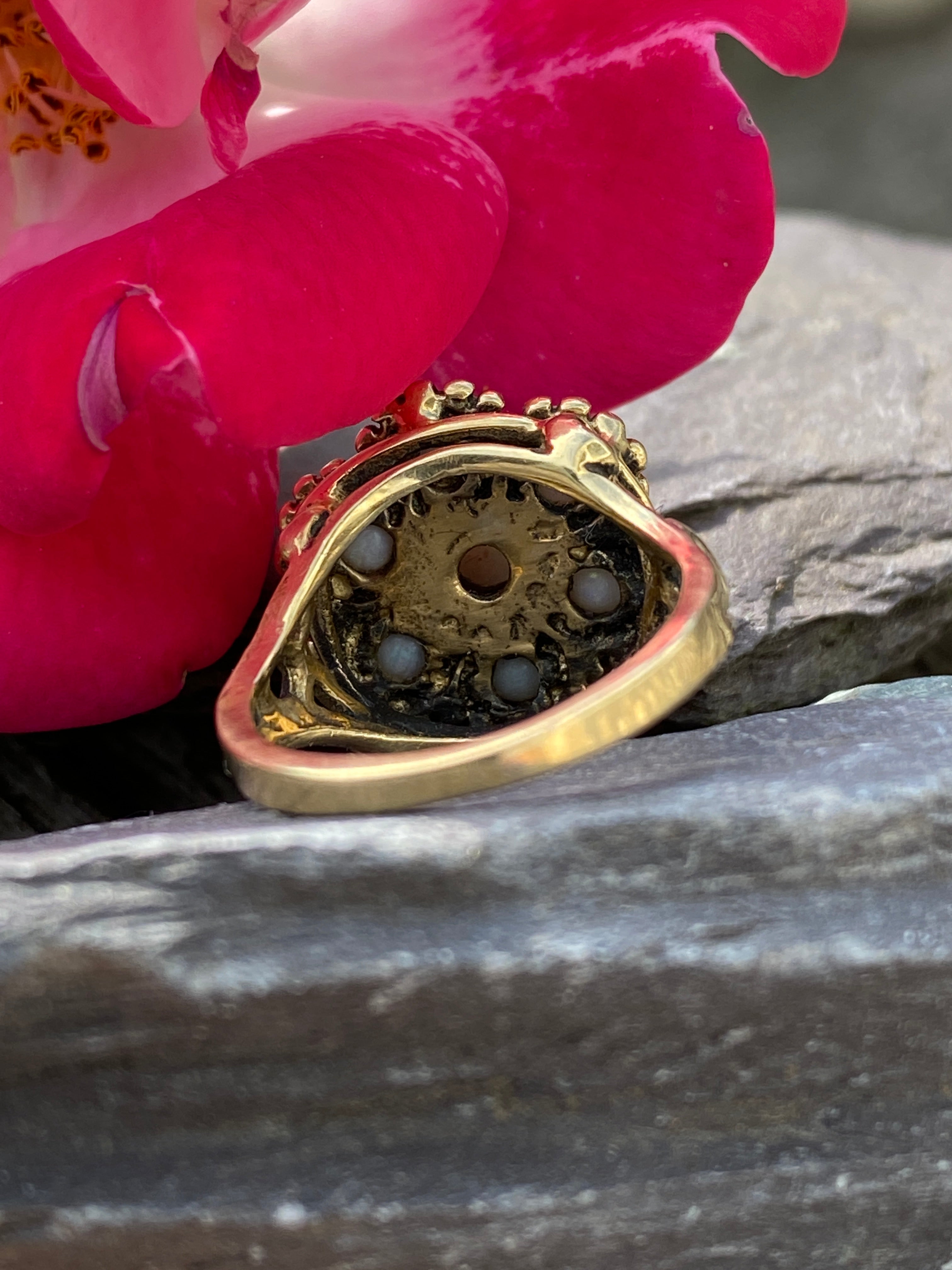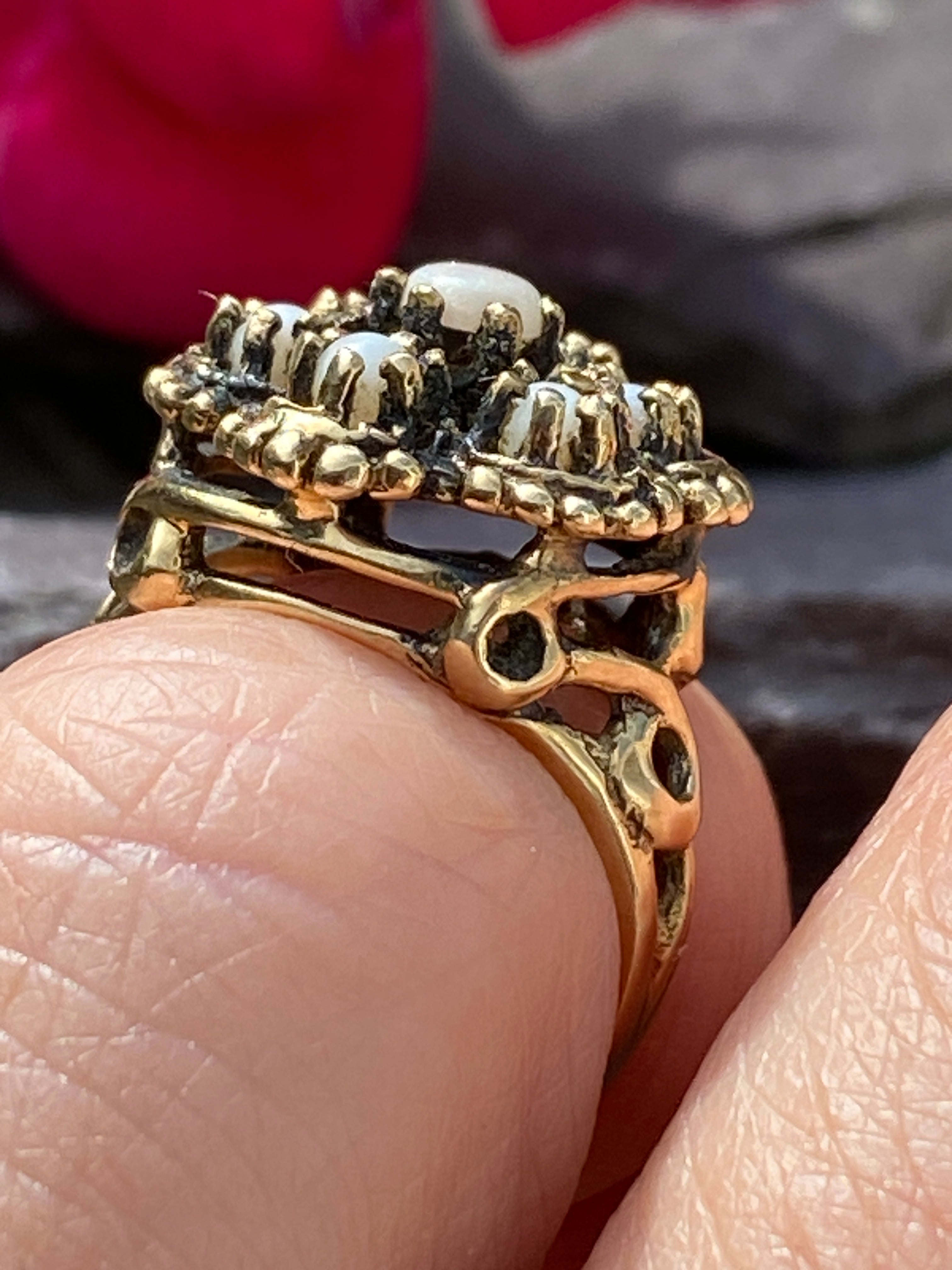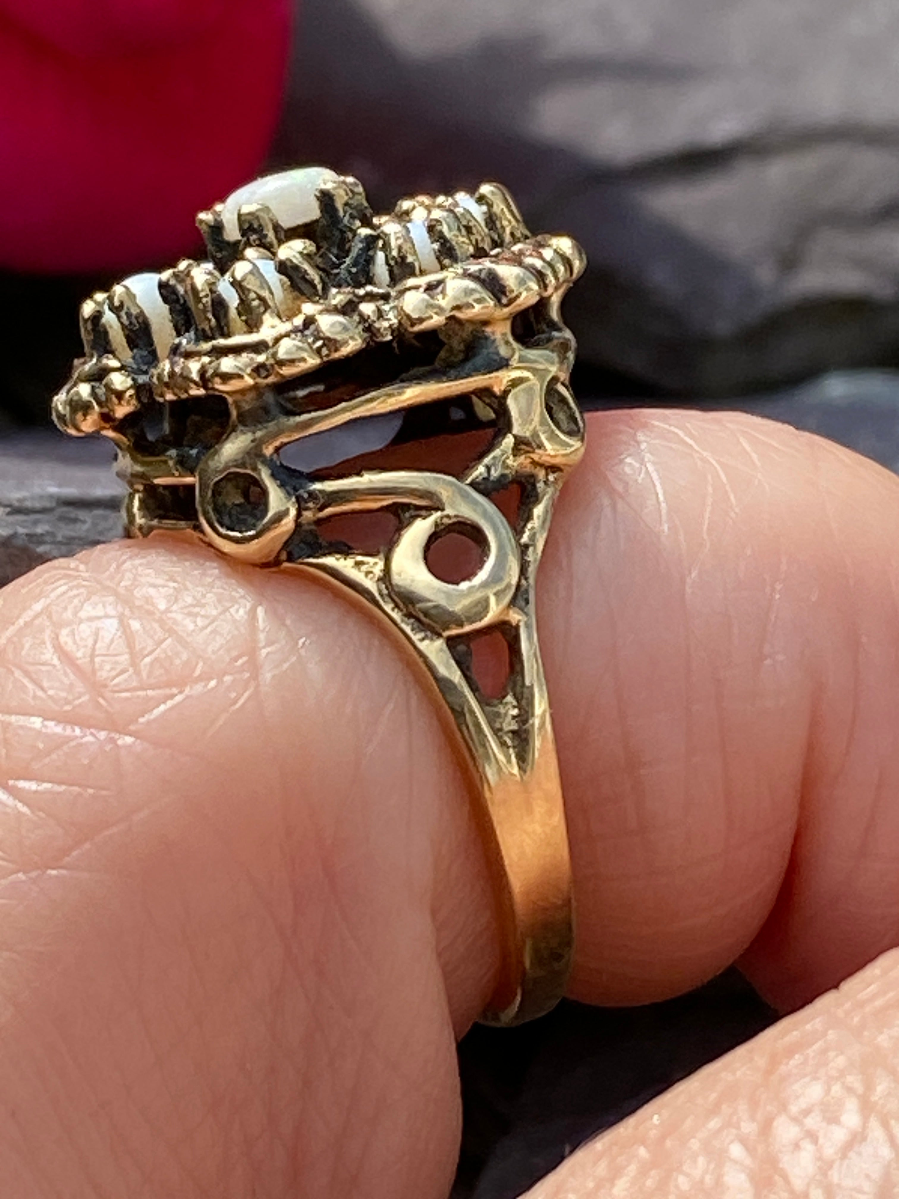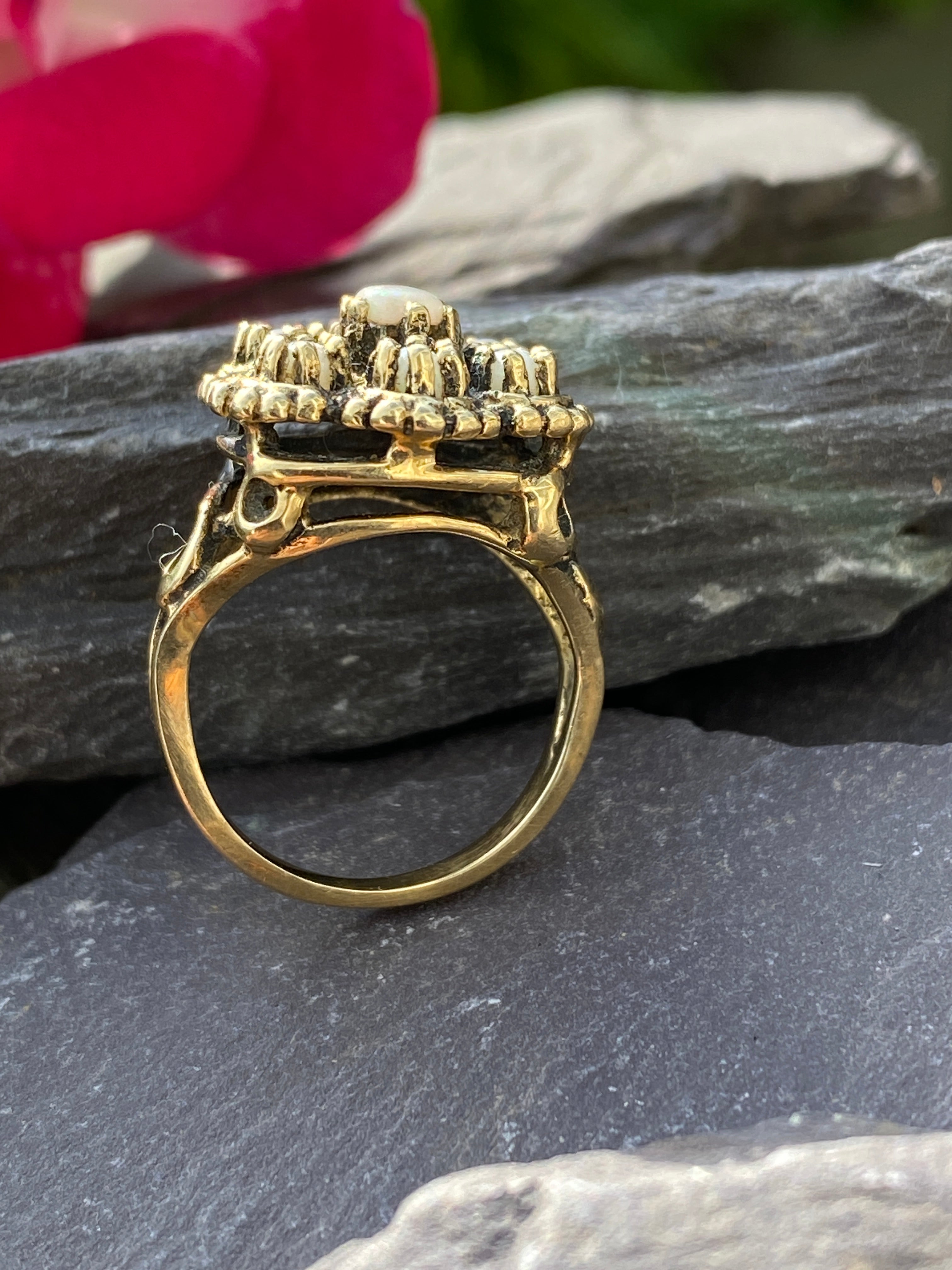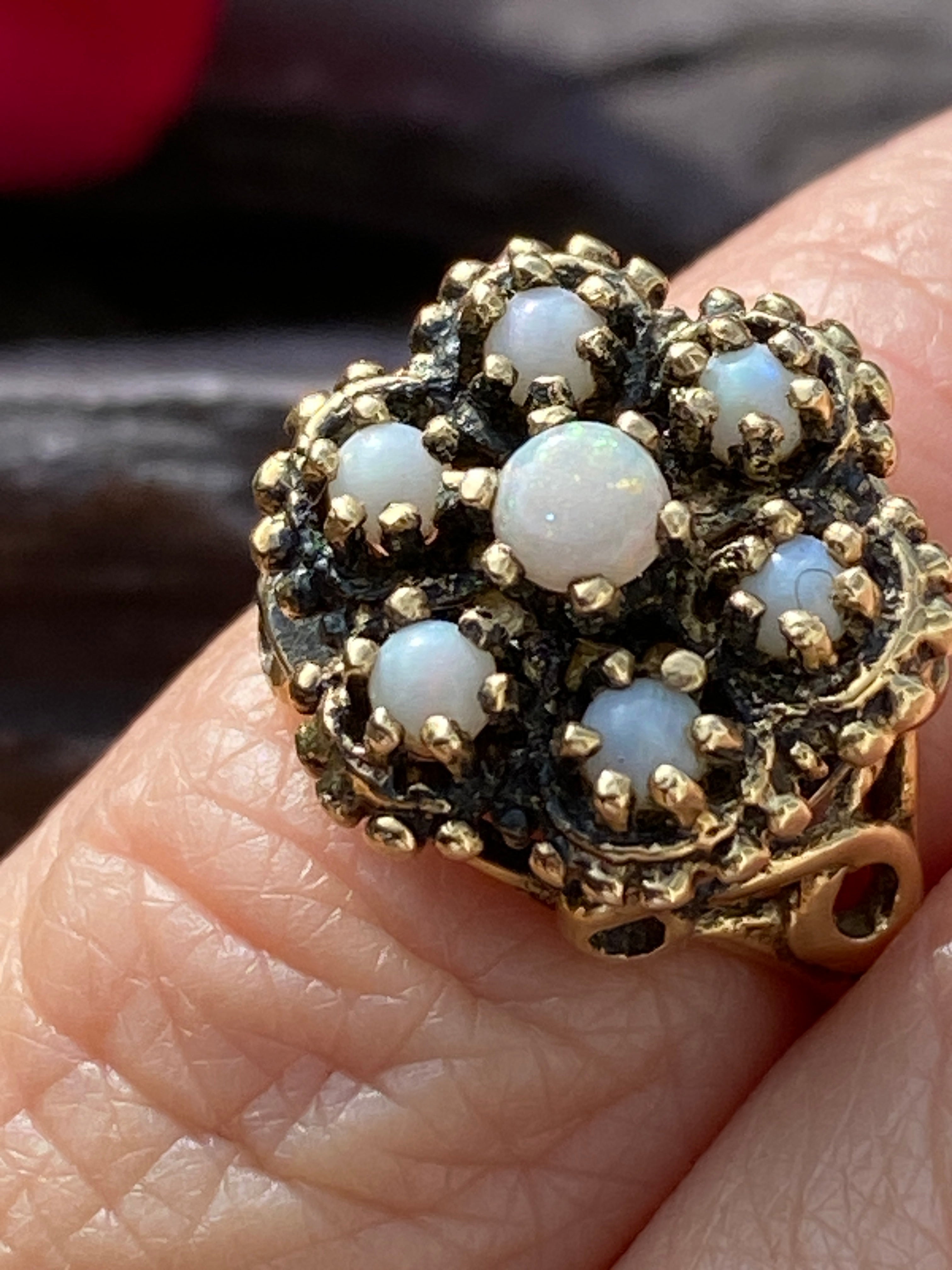 A 14ct yellow gold ring set with seven natural Opals in a cluster setting