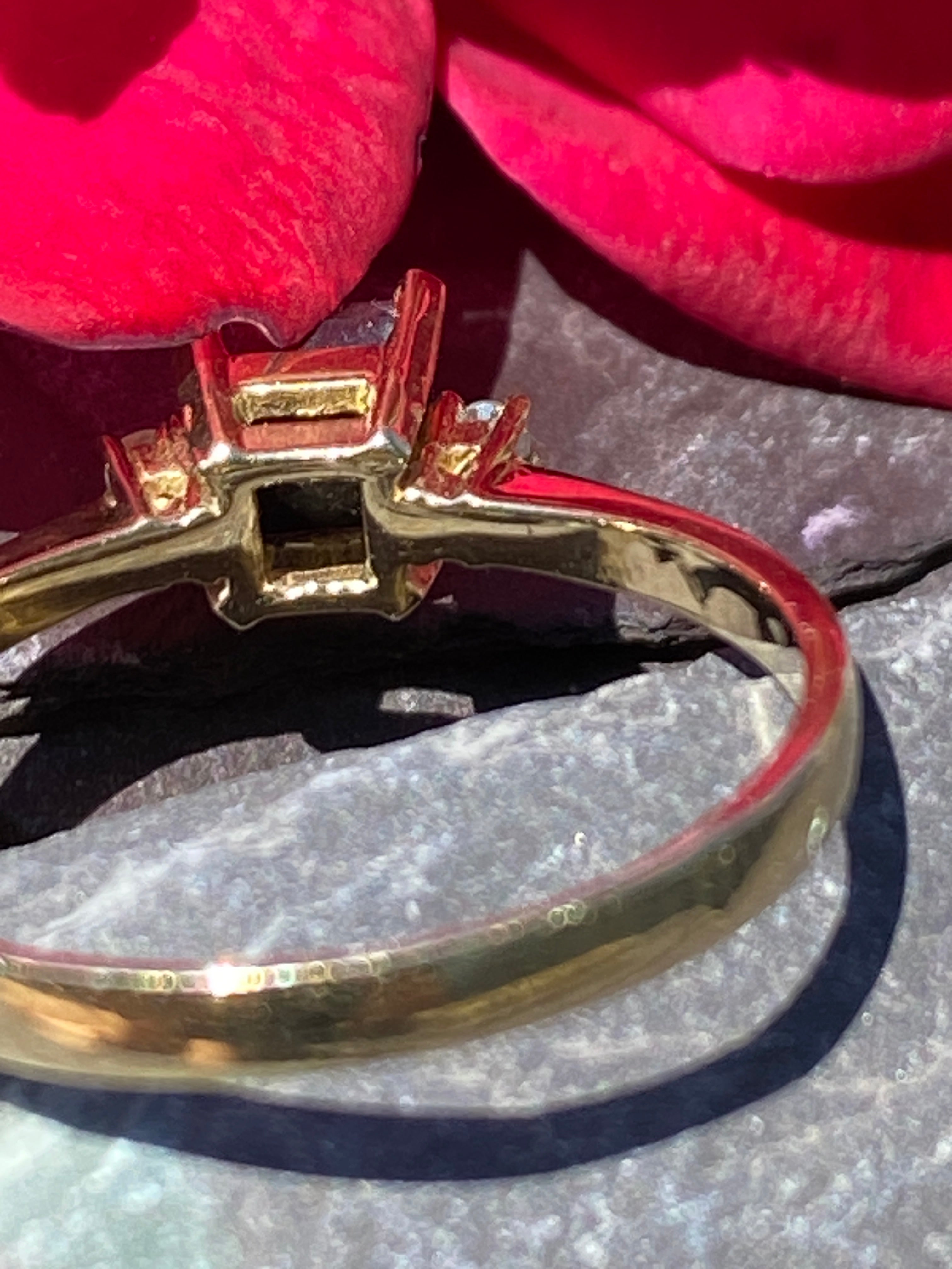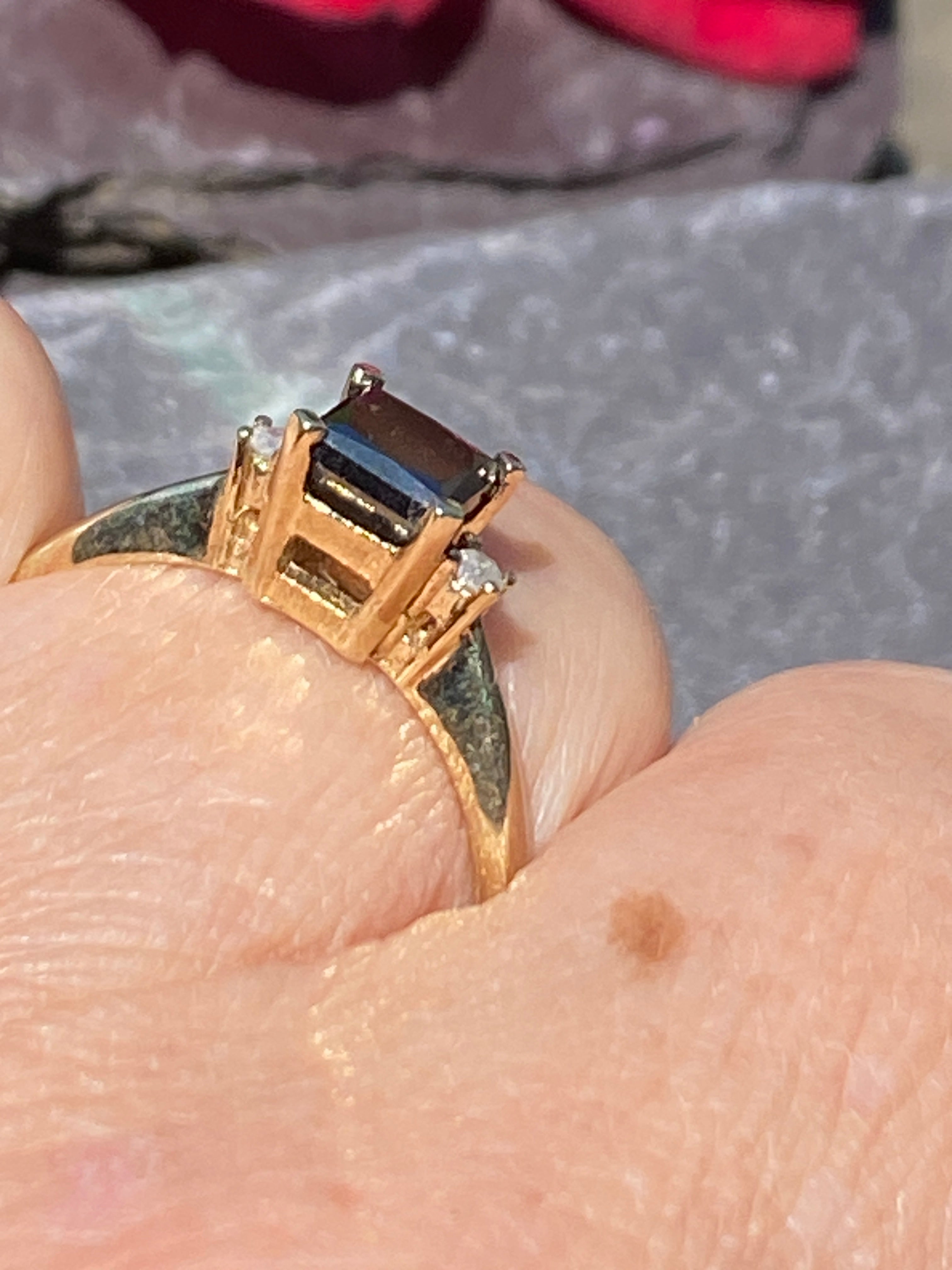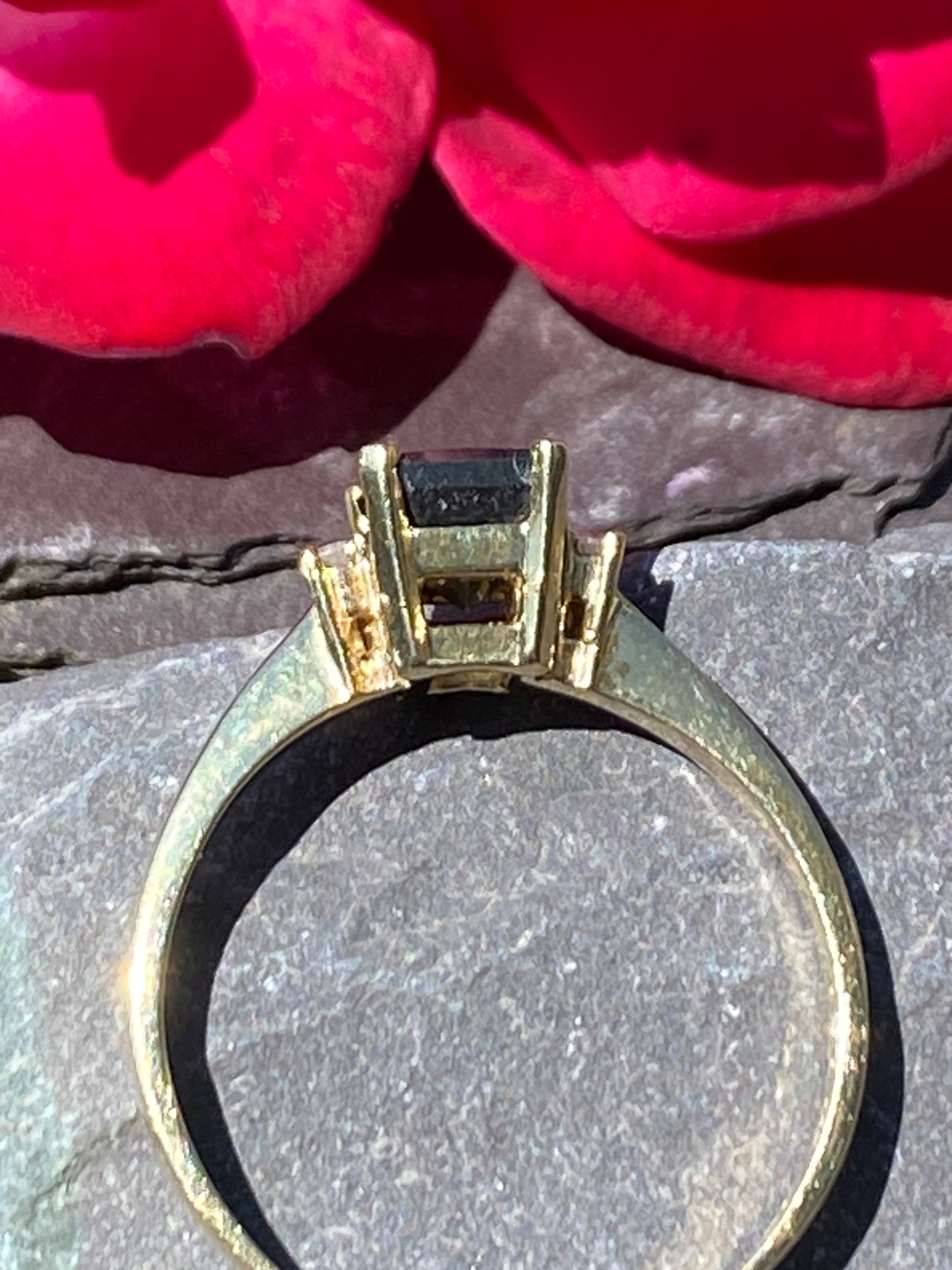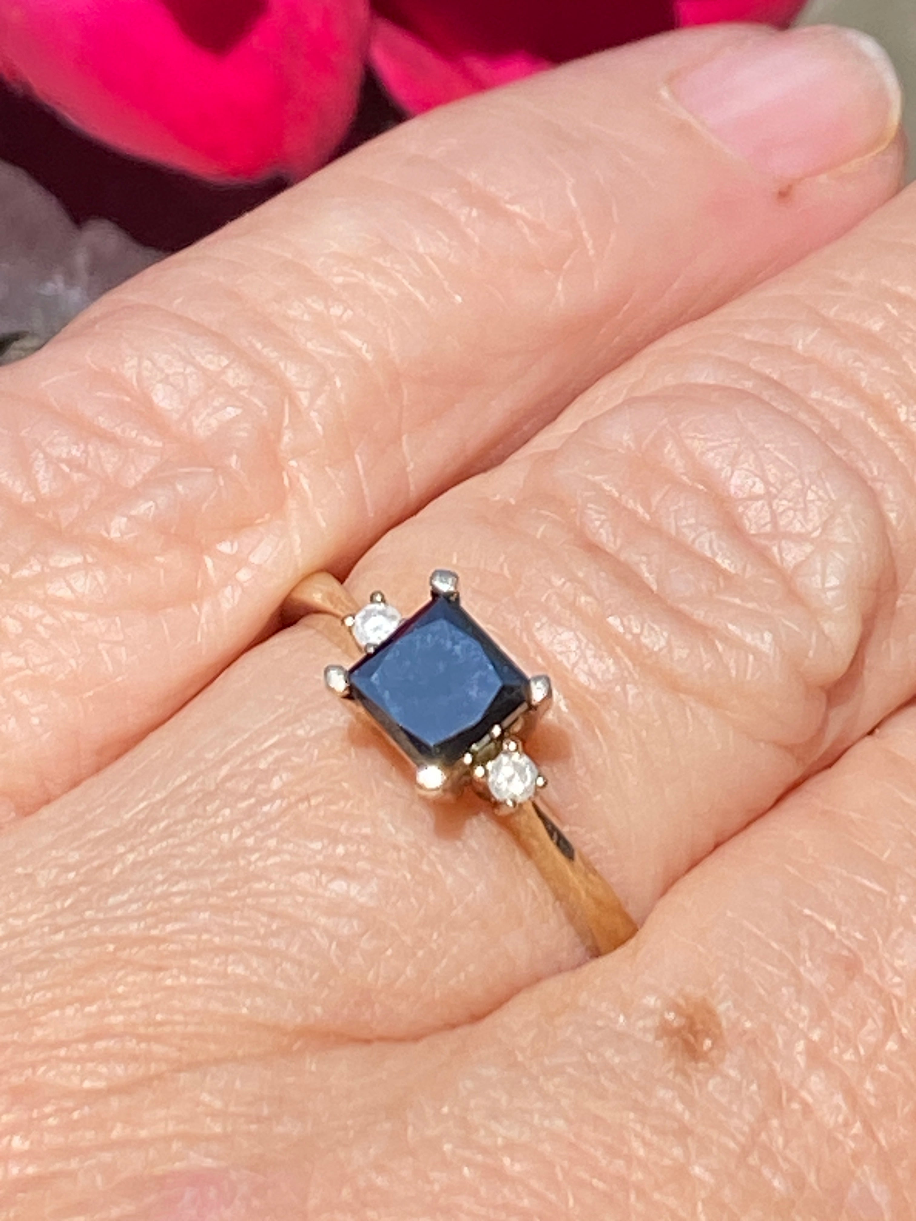 A 9ct Black Diamond Ring Princess Cut Black Diamond With White Diamond Shoulders.