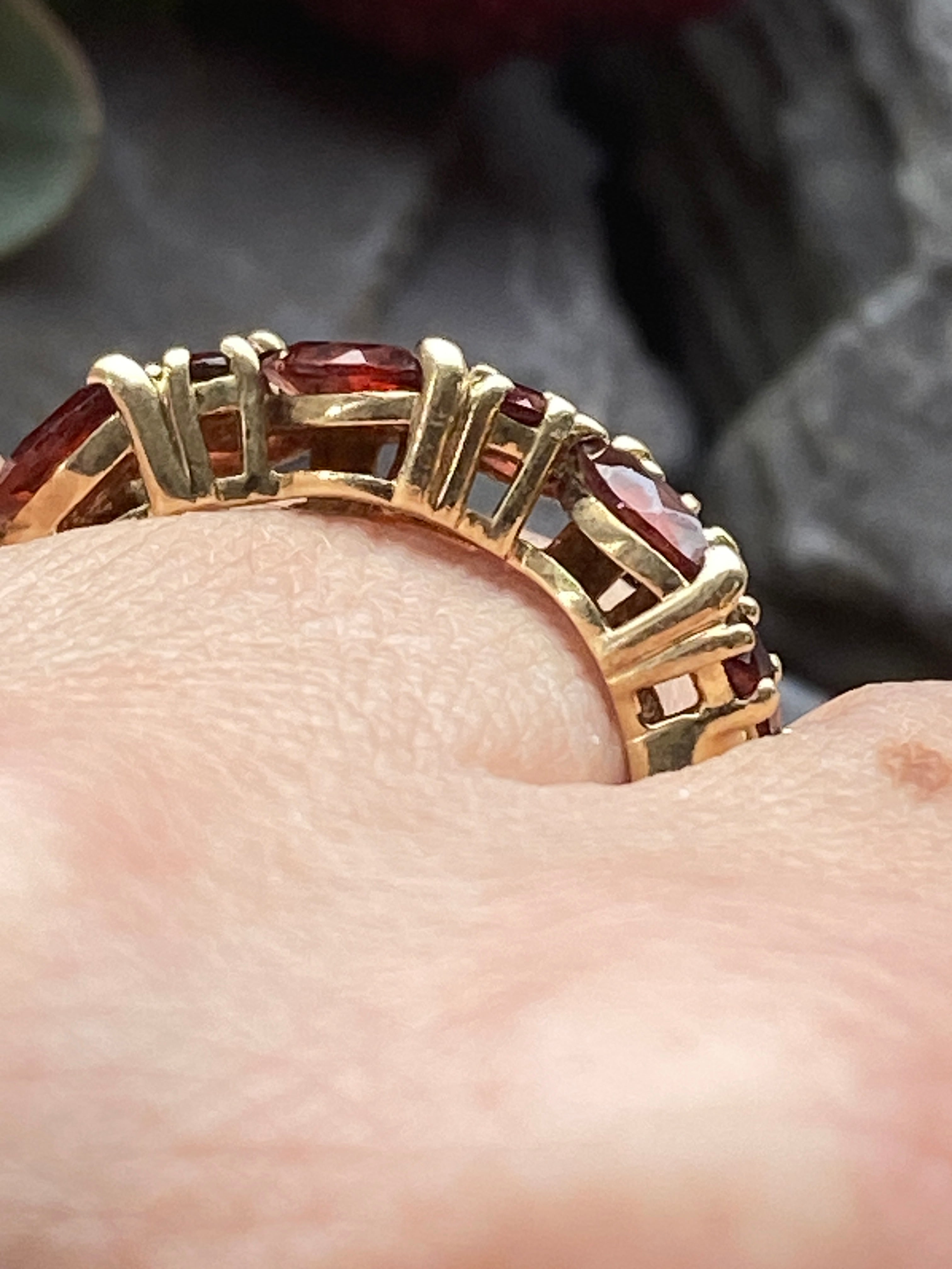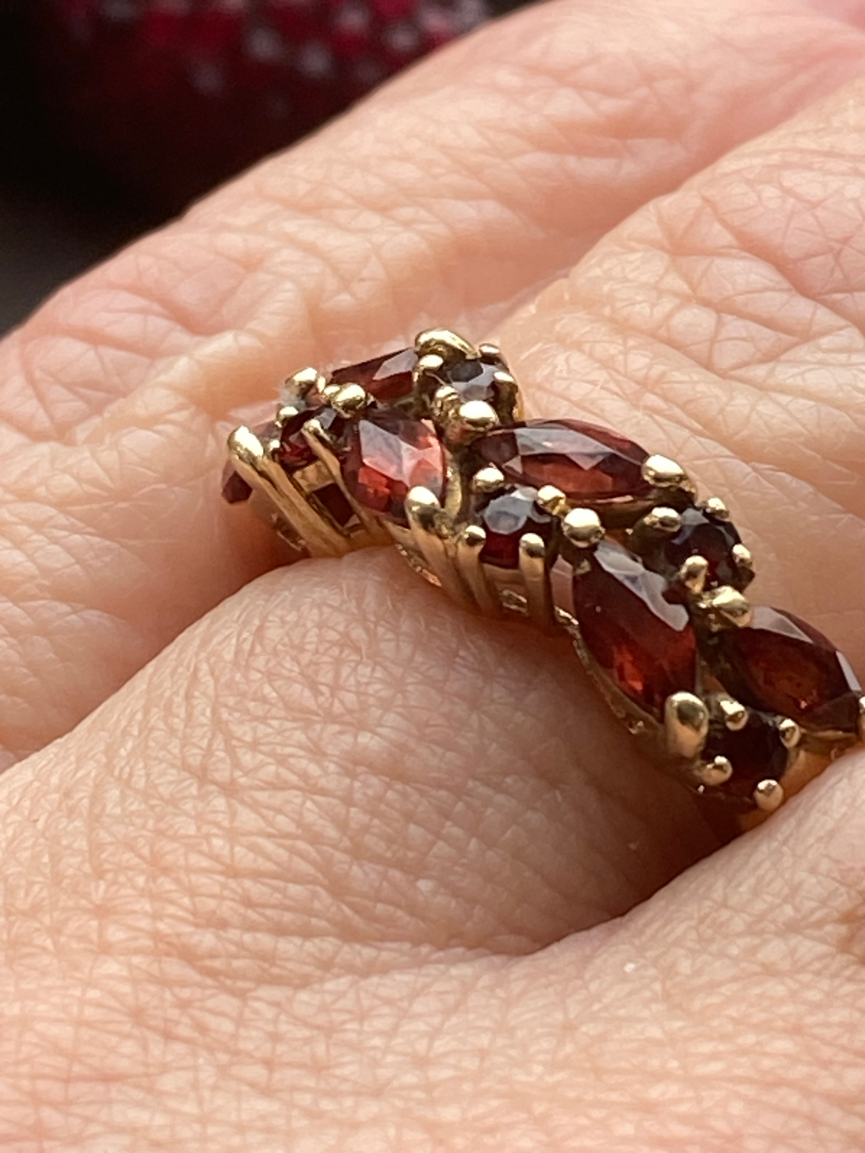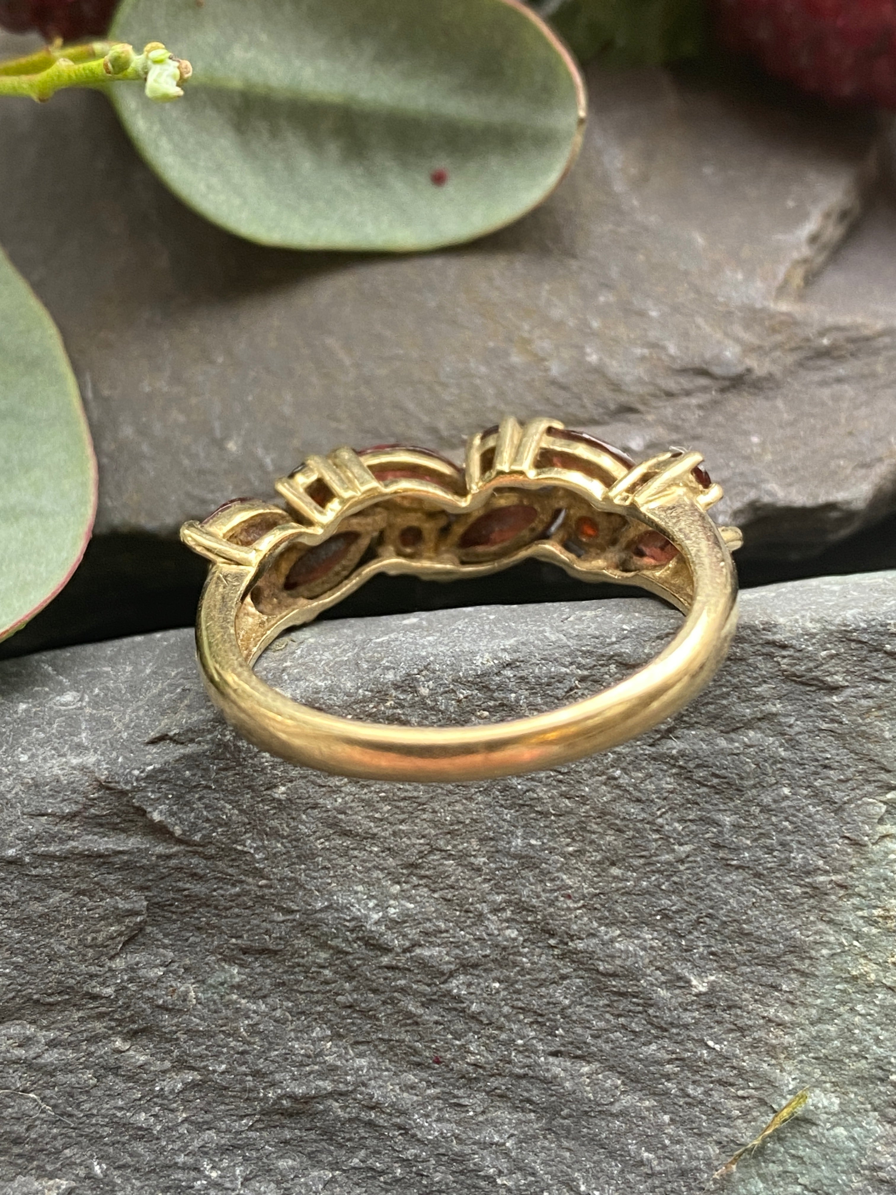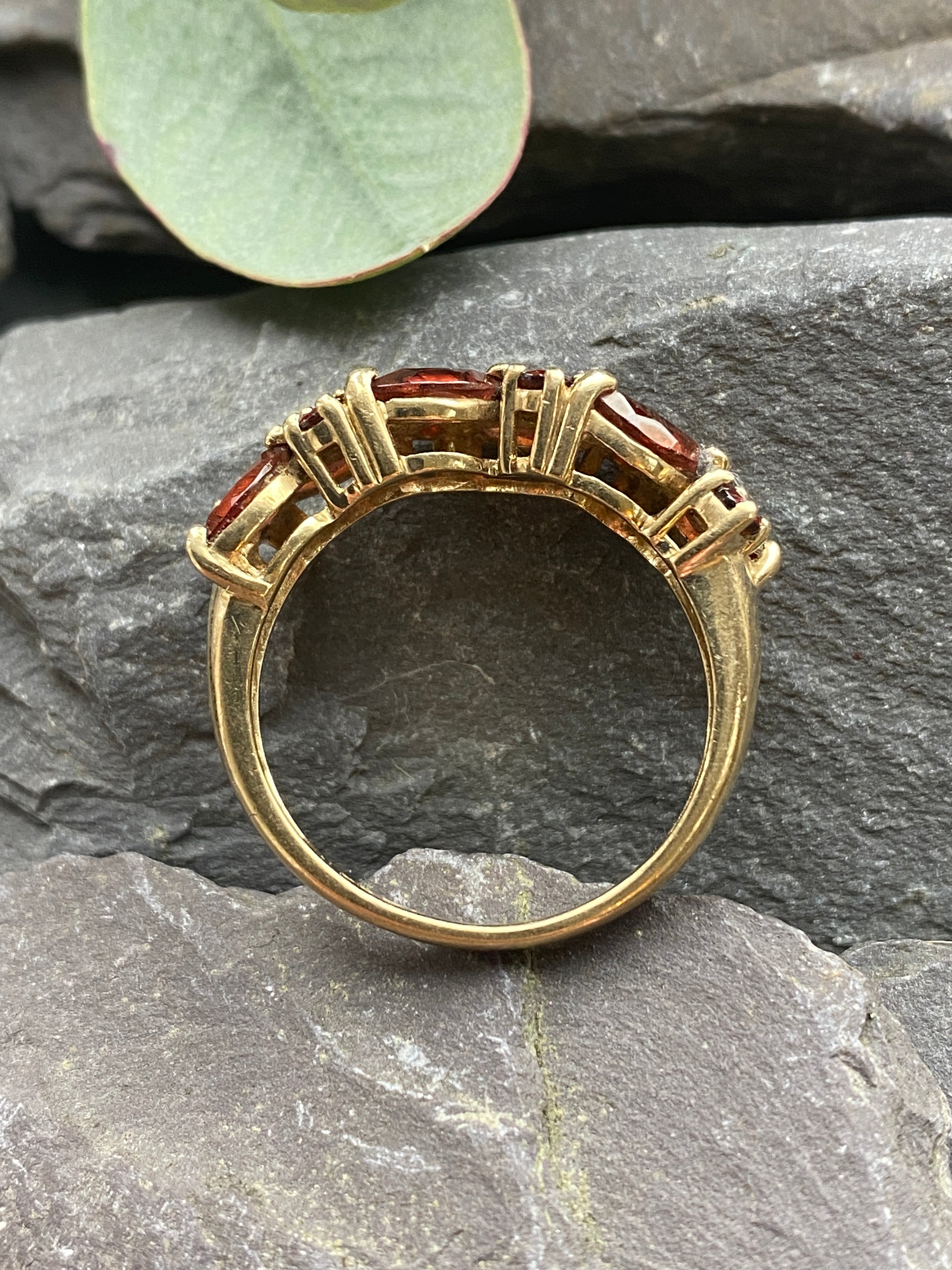 A very smart 9ct gold ring set with a wreath of Garnets in round and Marquis cuts