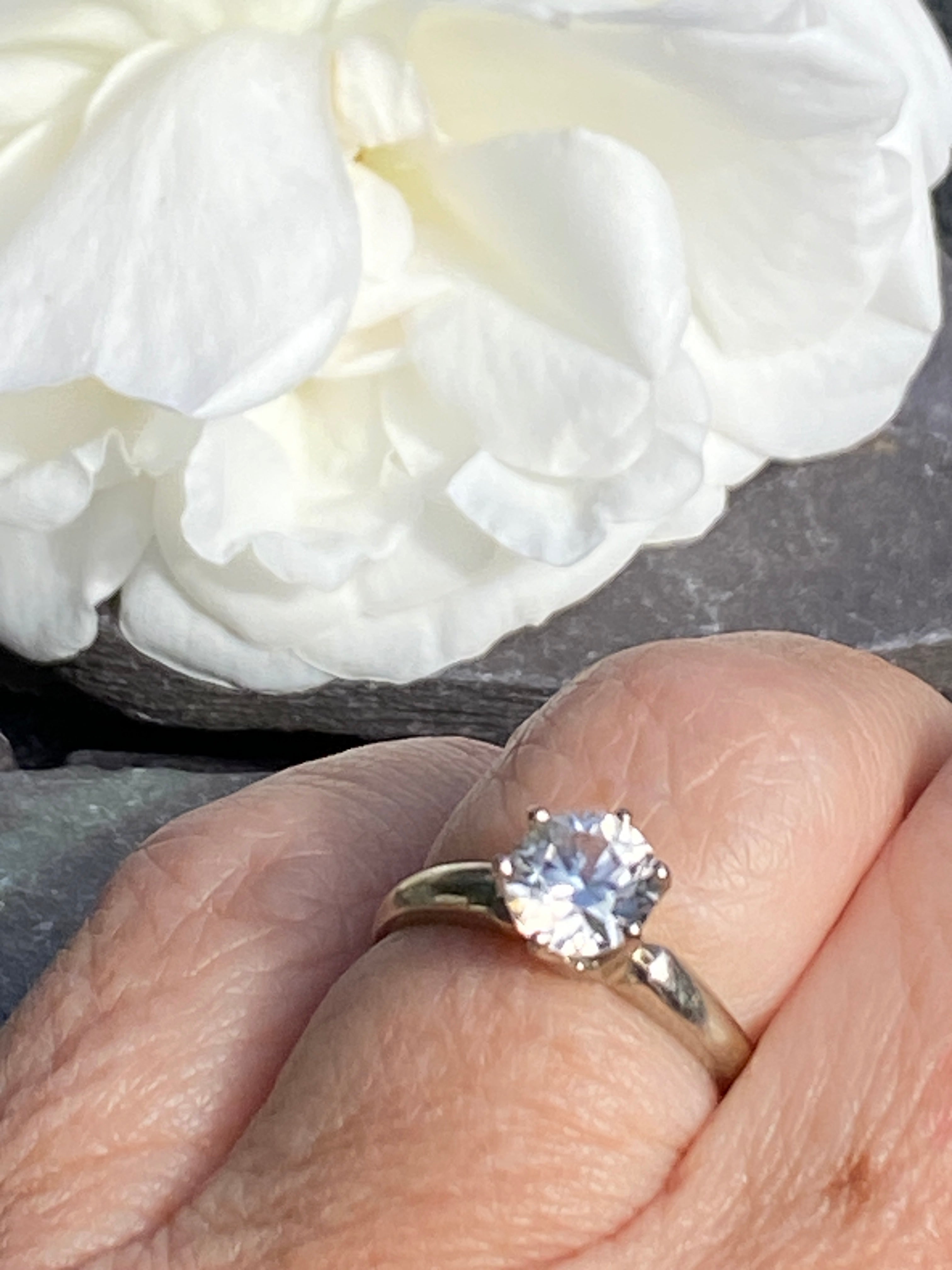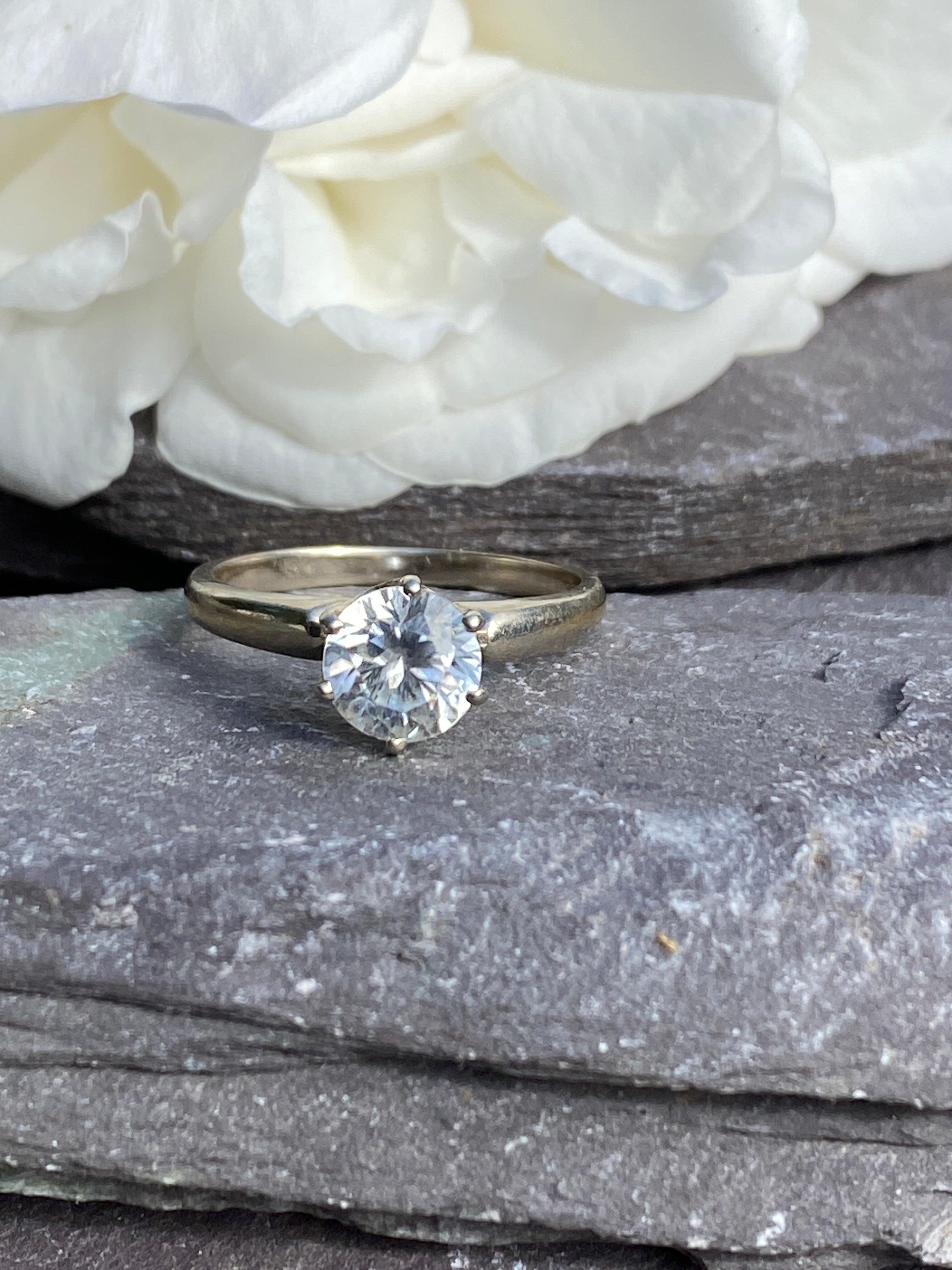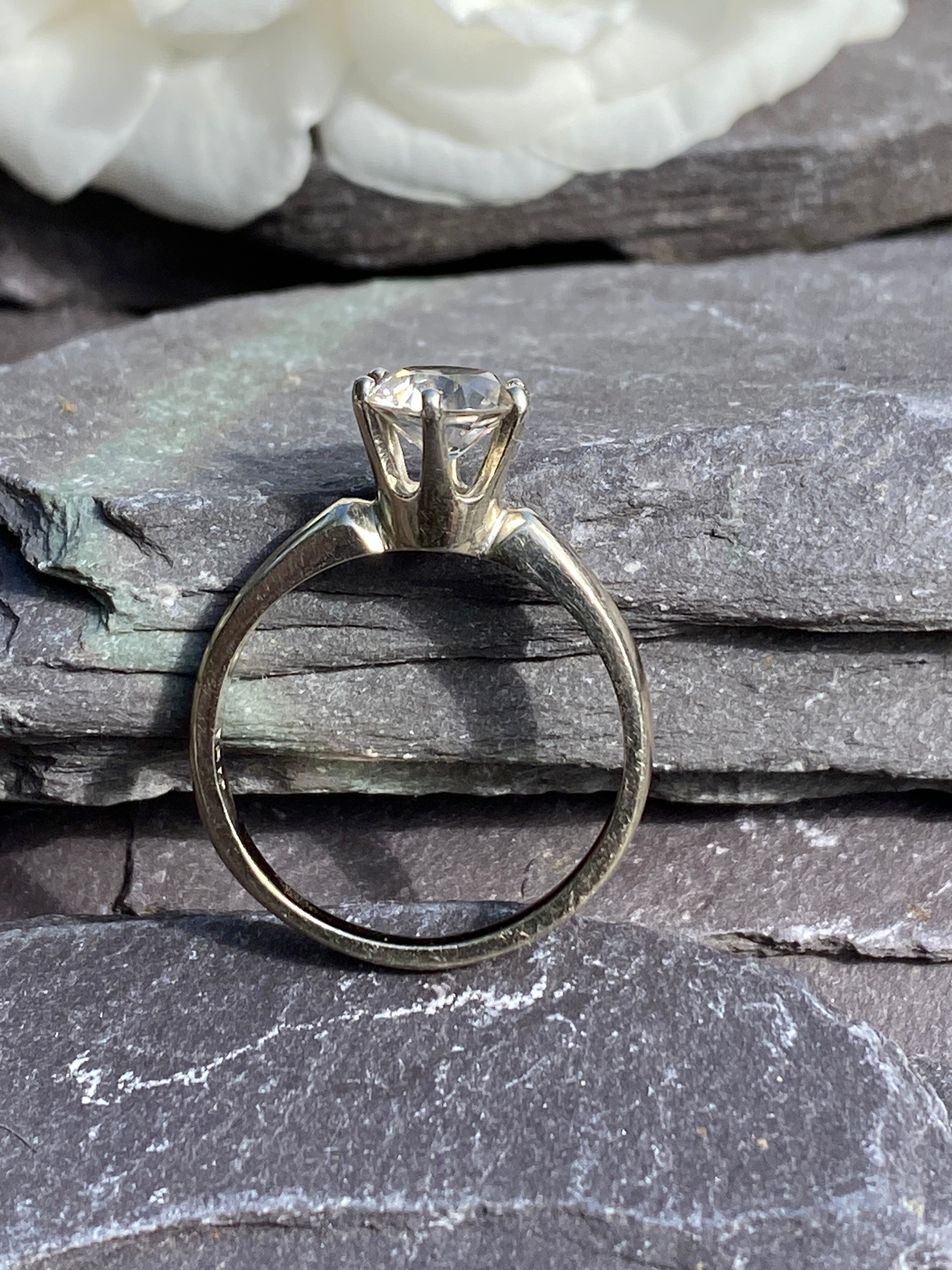 Vintage 10ct White Gold Solitaire Zircon Ring.