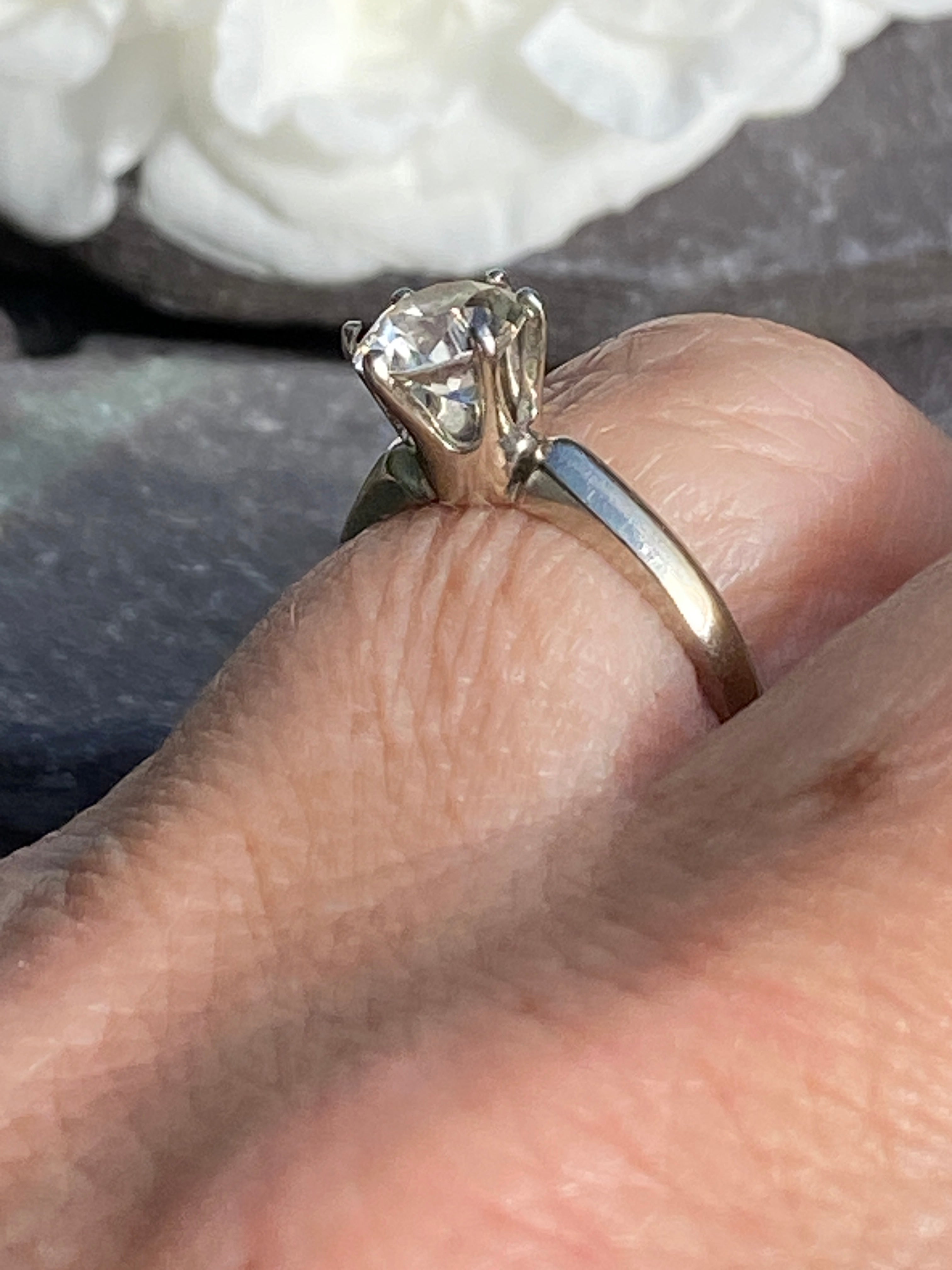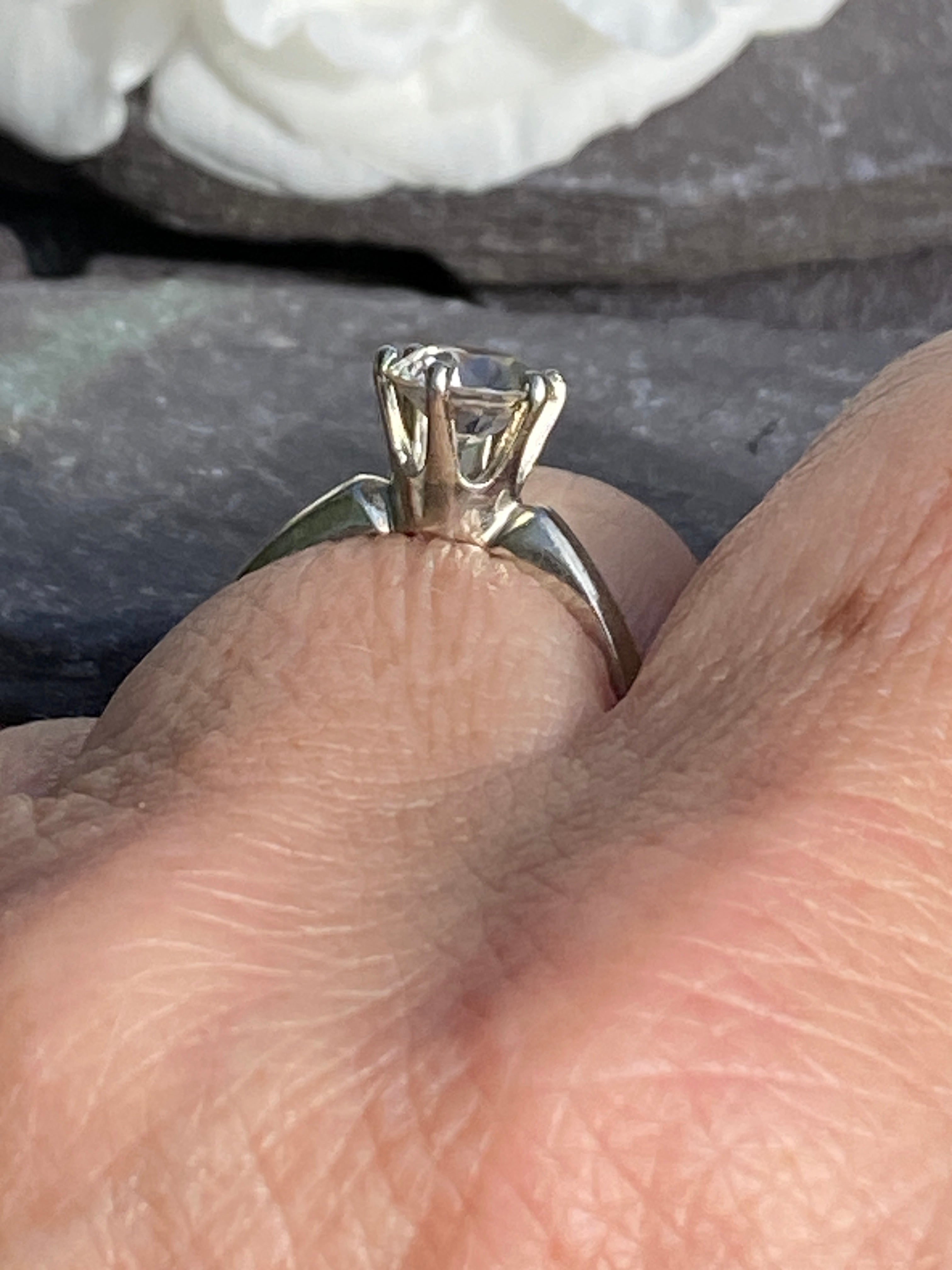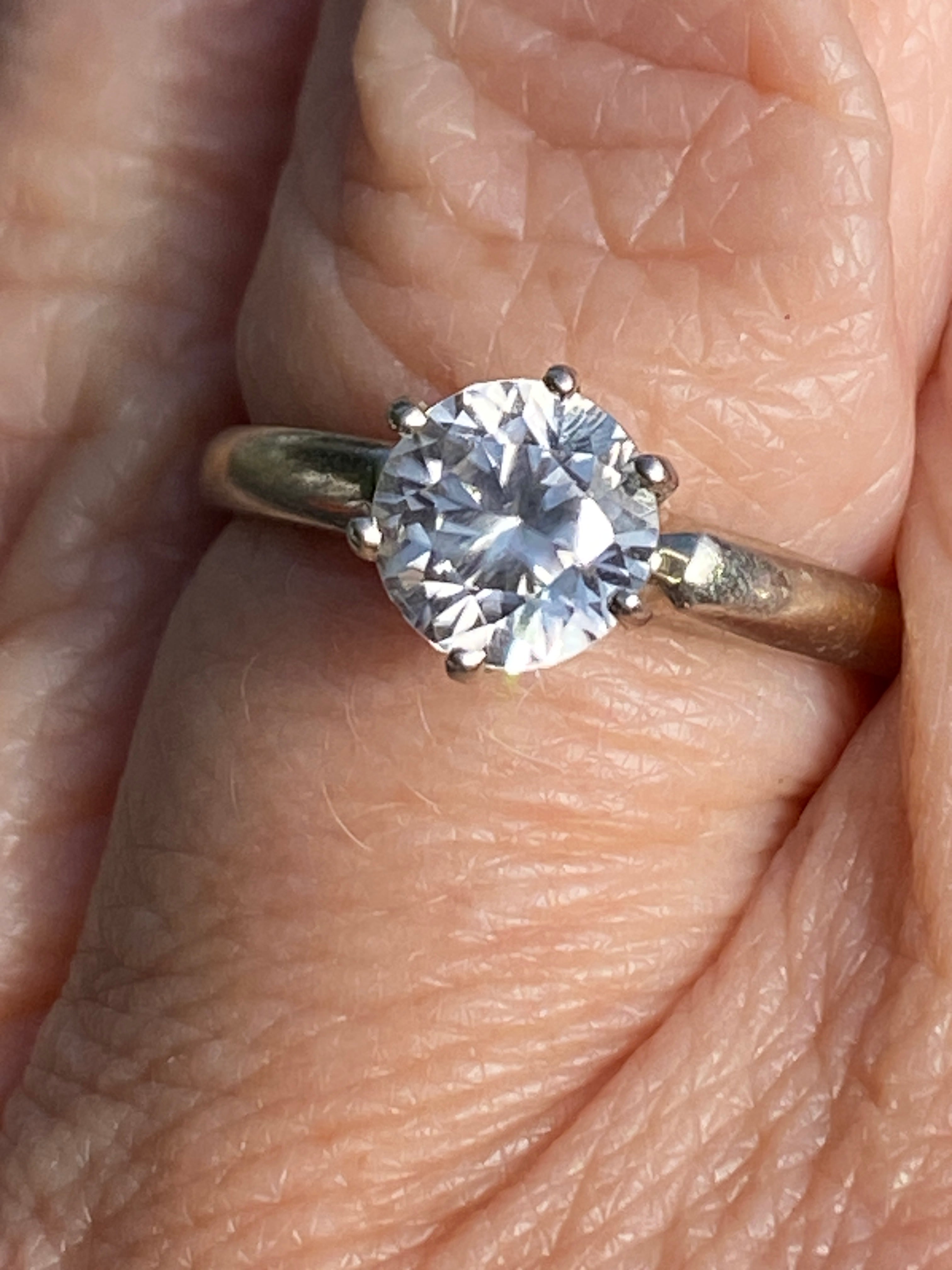 Vintage 10ct White Gold Solitaire Zircon Ring.