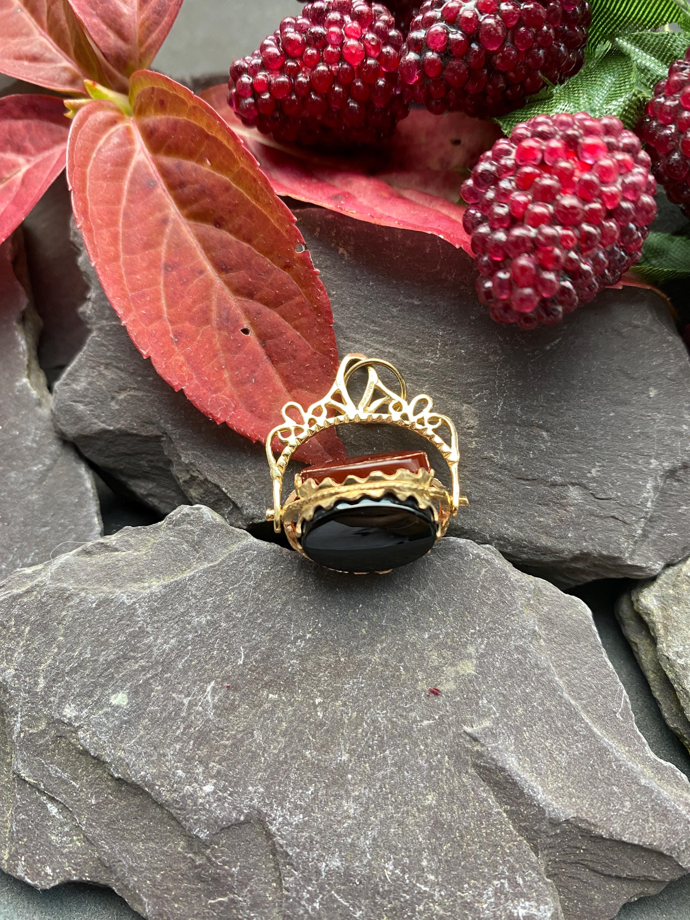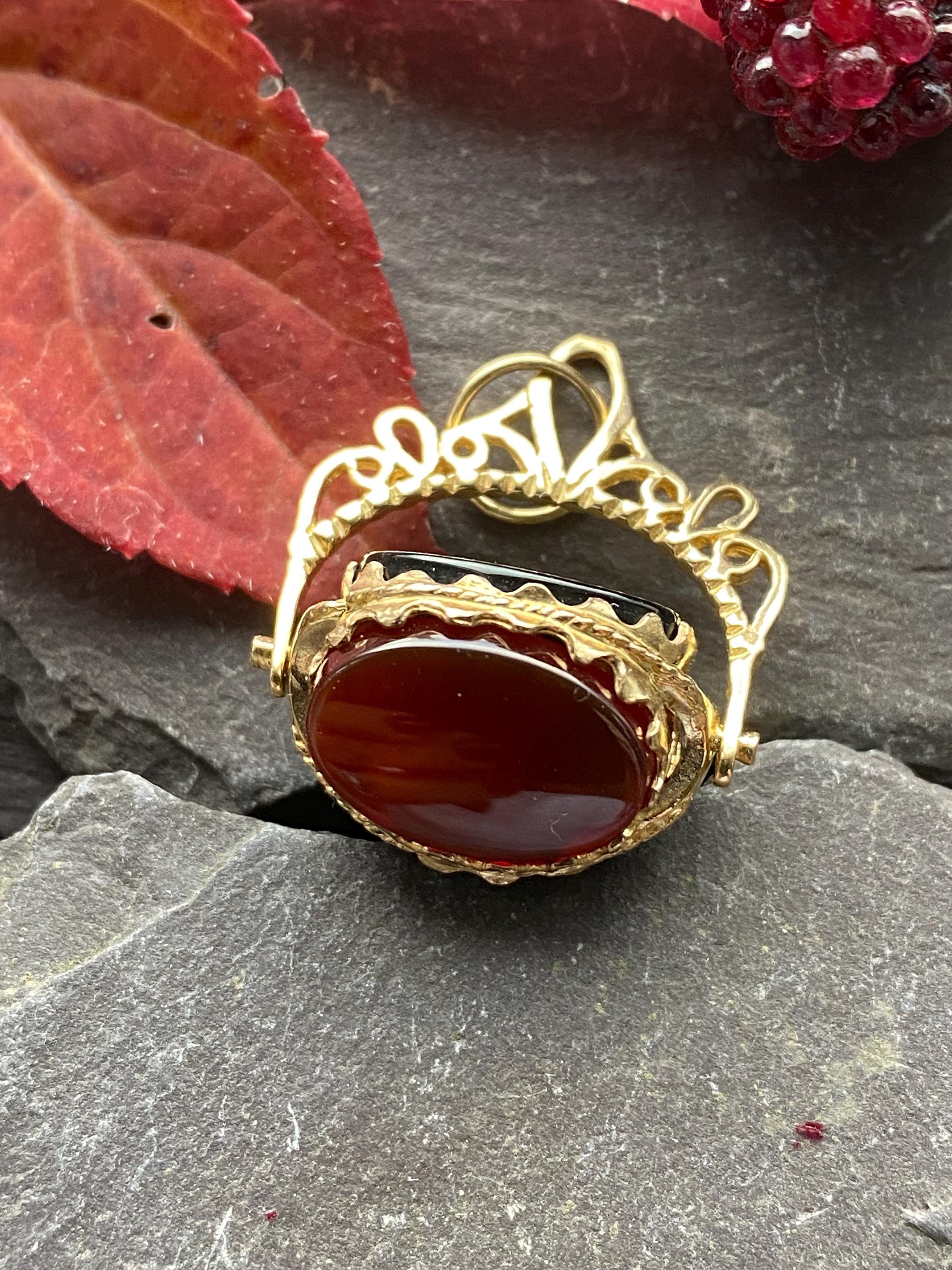 A very smart 9ct yellow gold swivel fob with three hardstone sides of Carnelian, Bloodstone and Onyx.