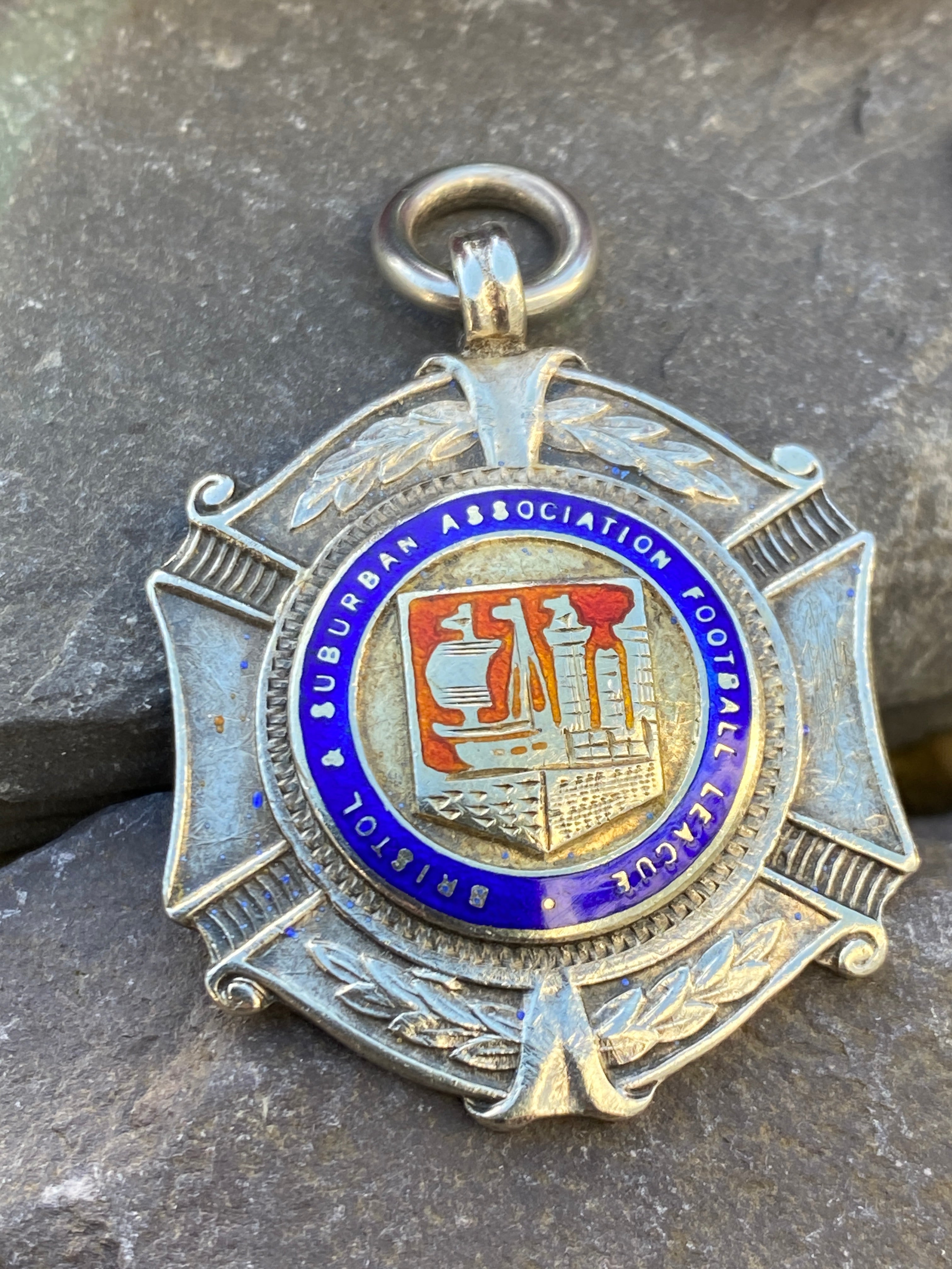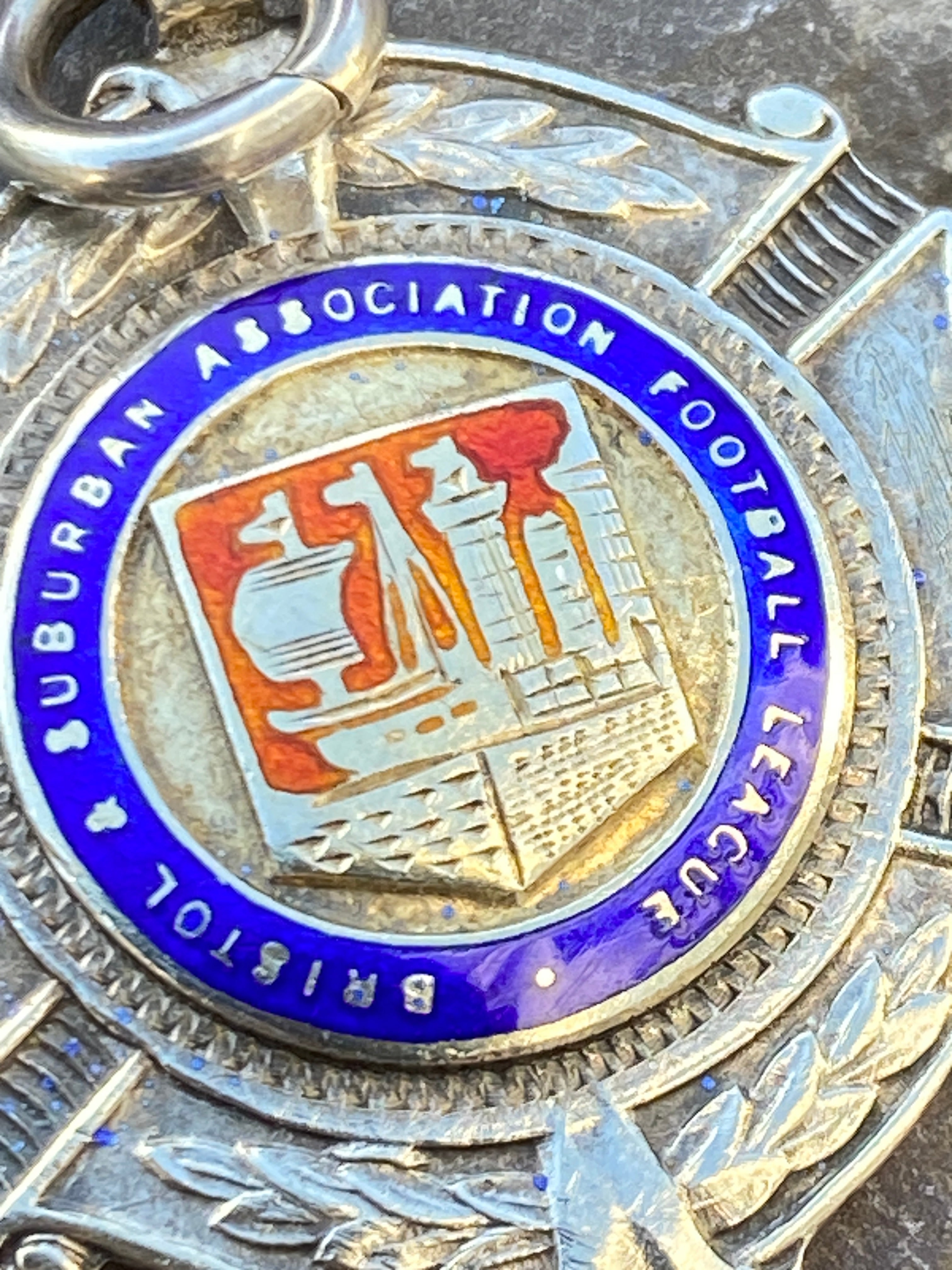 A sterling silver sporting trophy medal/fob for Bristol and Suburban Association Football League.