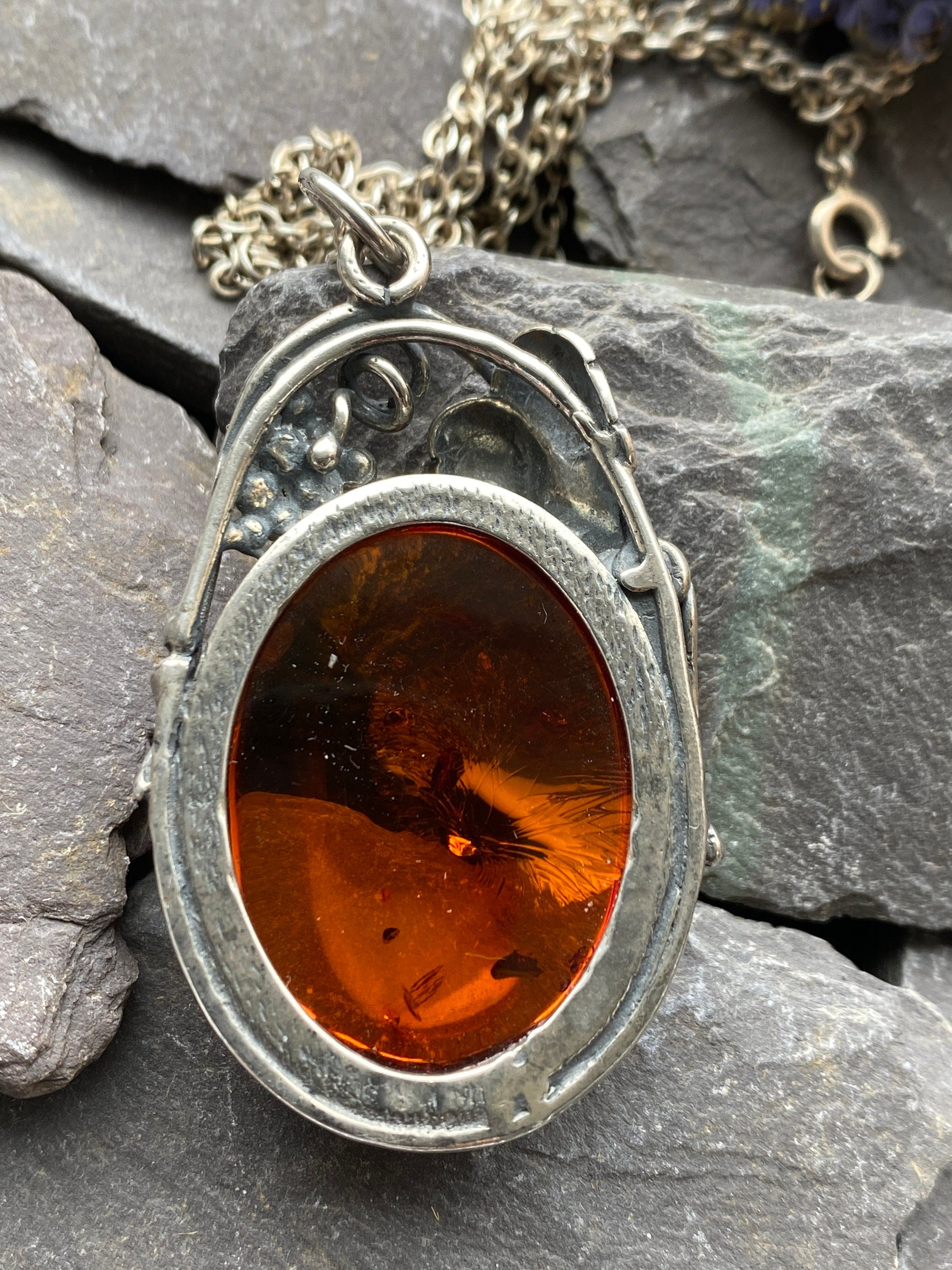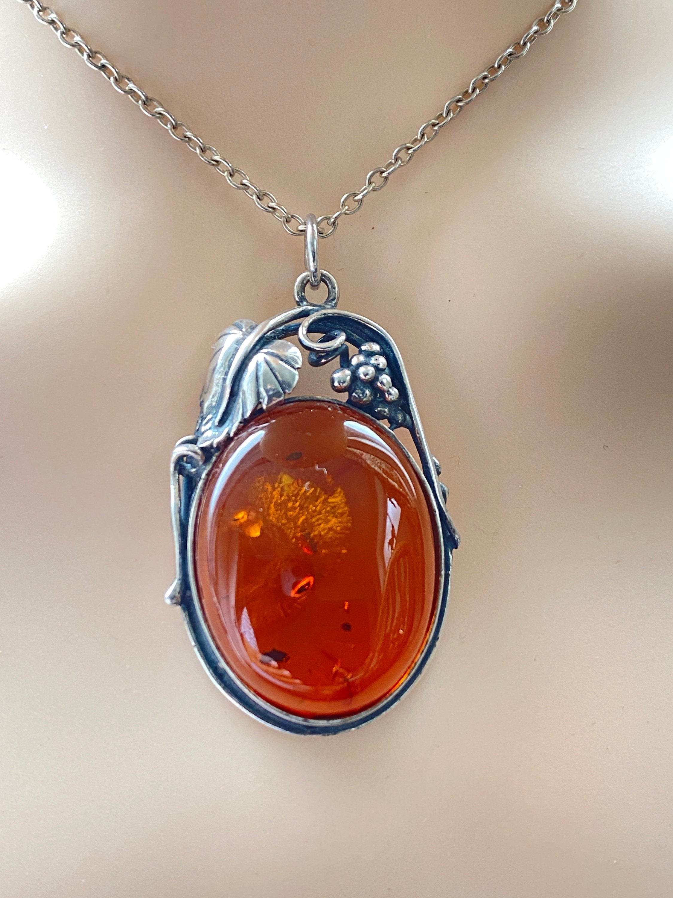 Leaf and berry detail to the pendant and hung from a generous 26 inch sterling silver chain