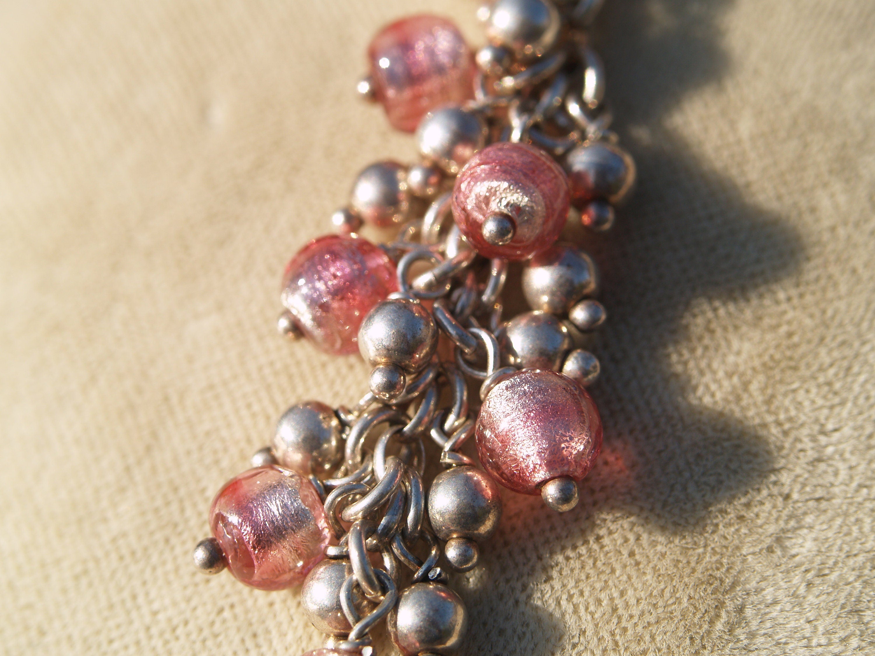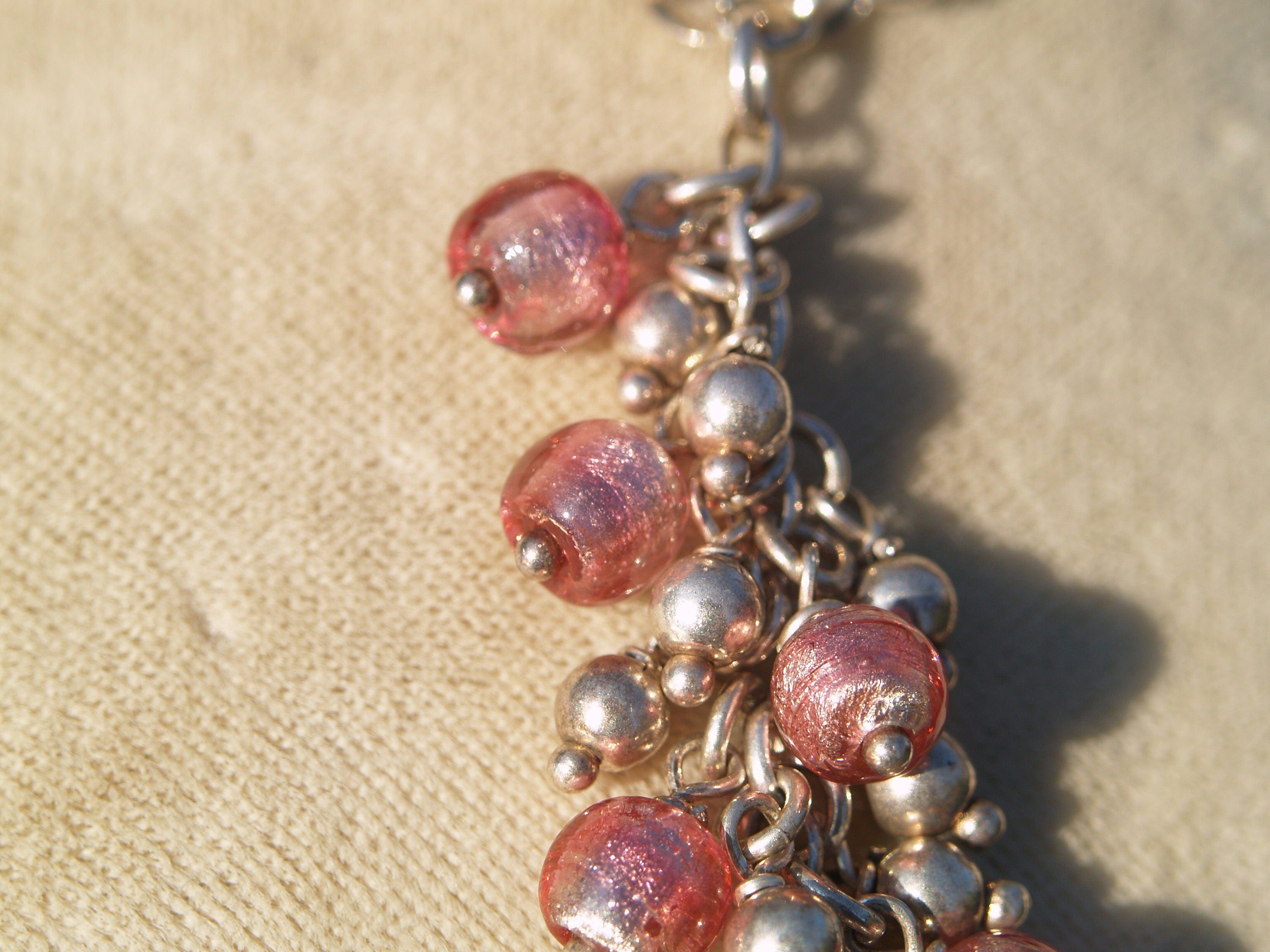 A pretty sterling silver necklace featuring a drop of multi beads of Murano glass and silver.