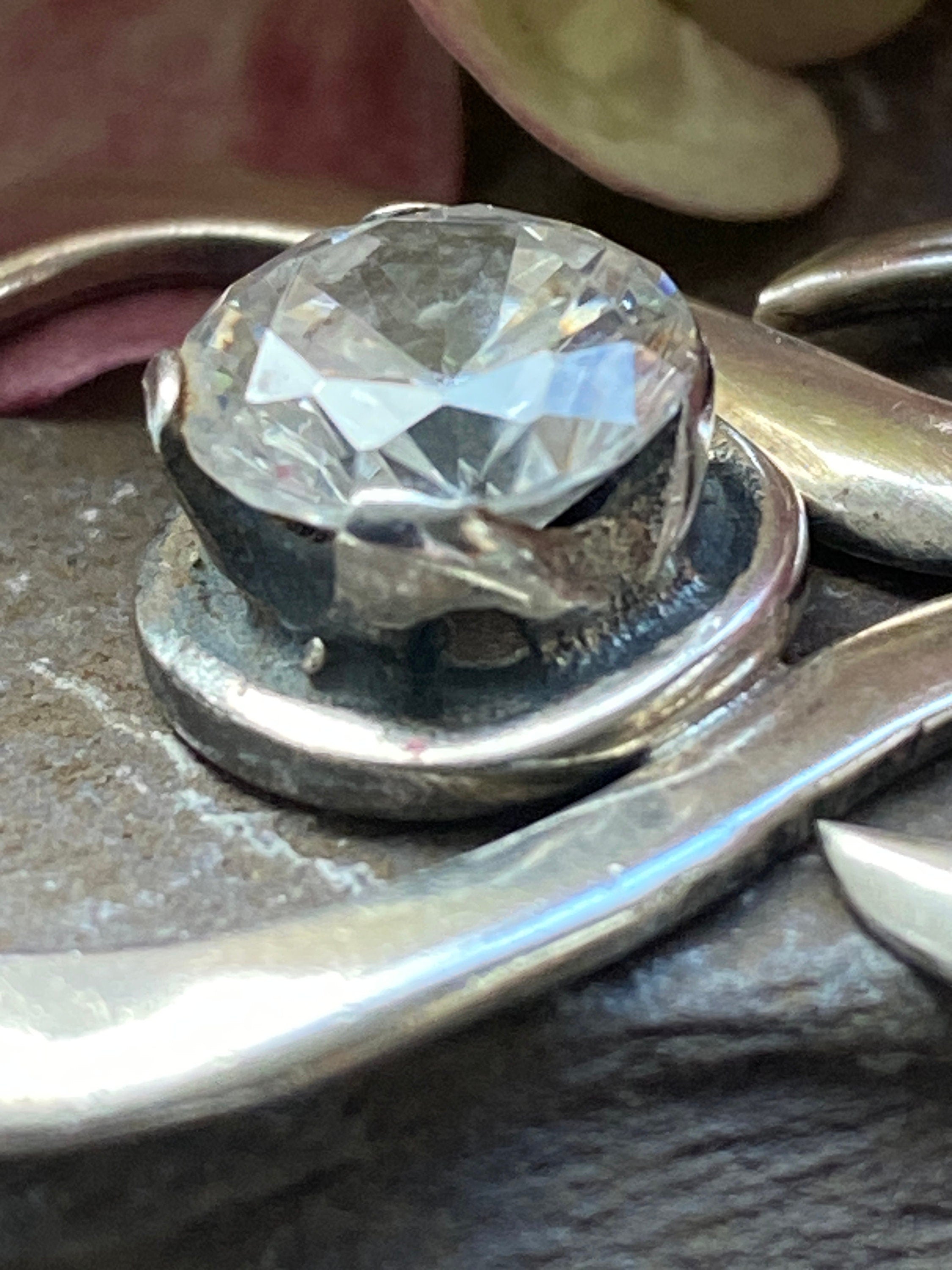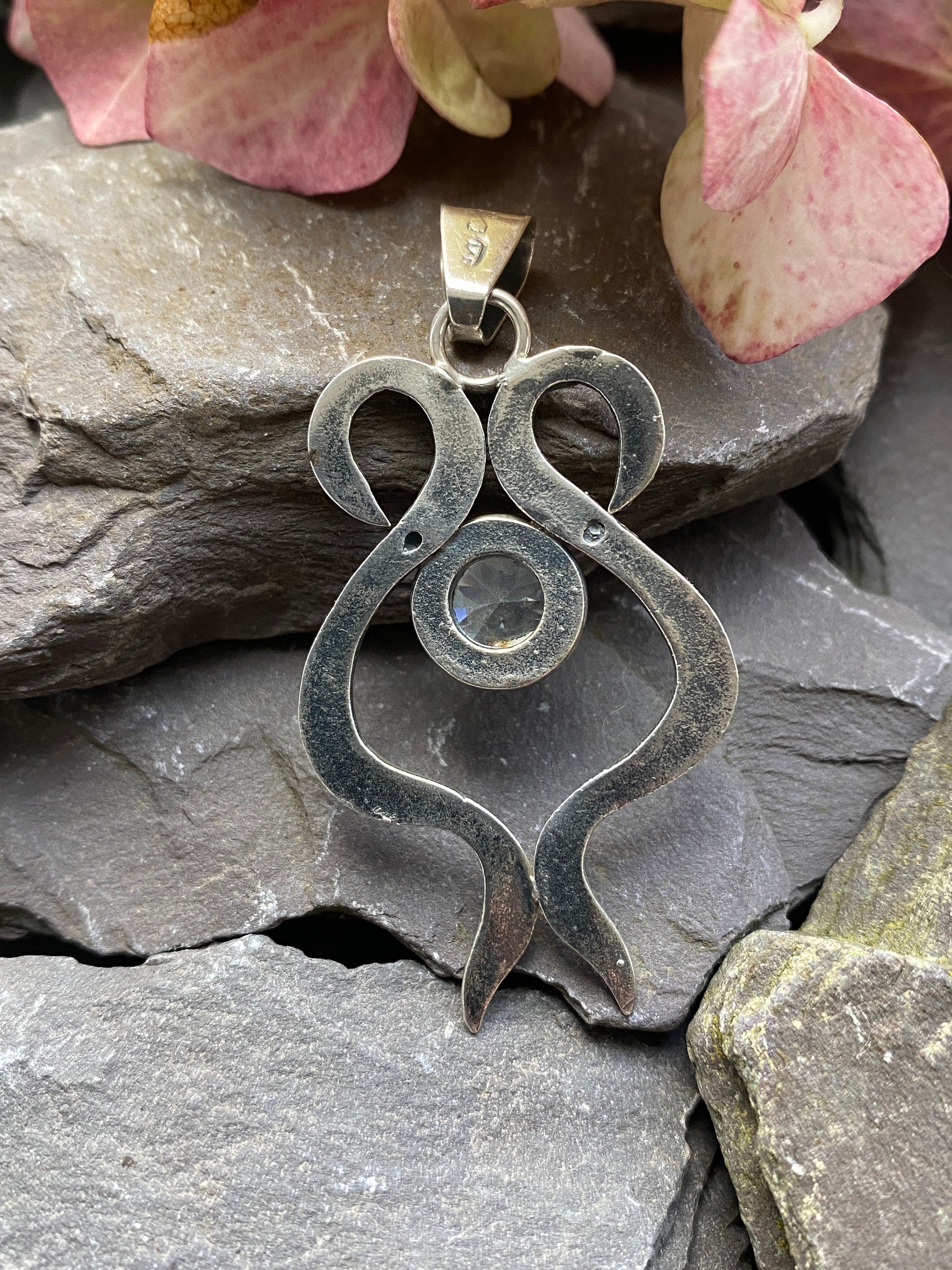 Vintage Silver Abstract Pendant Set With Cubic Zirconia.