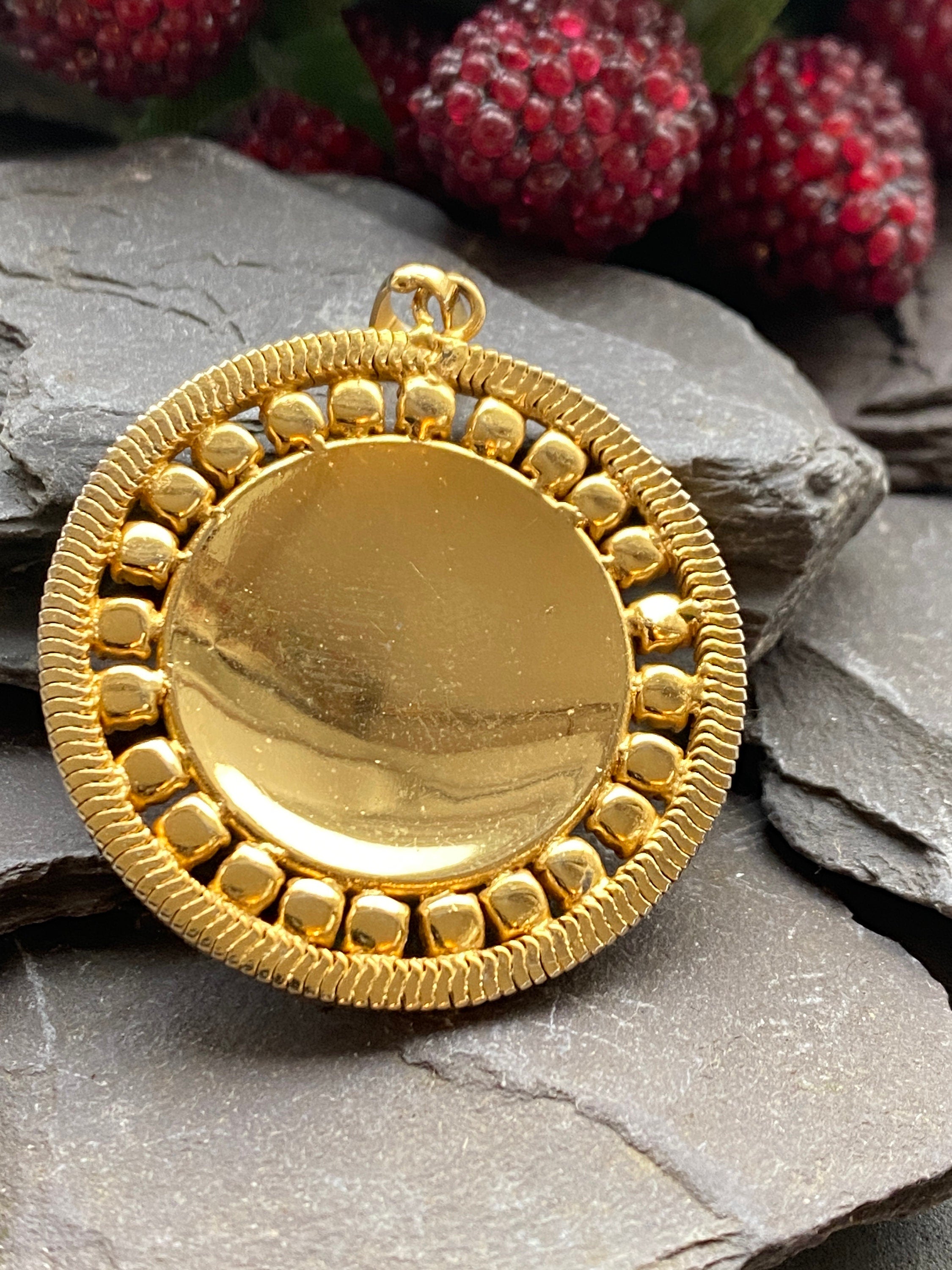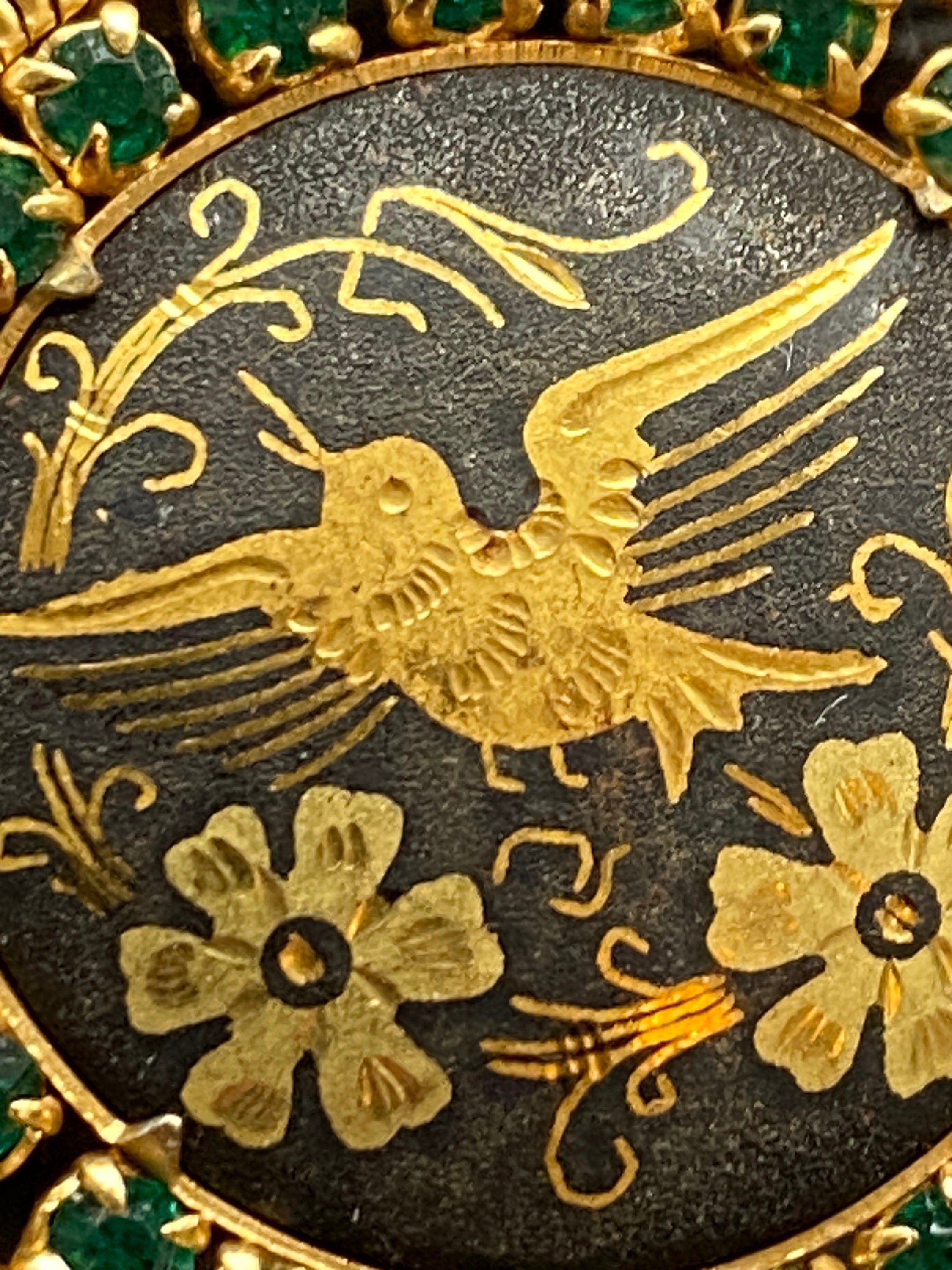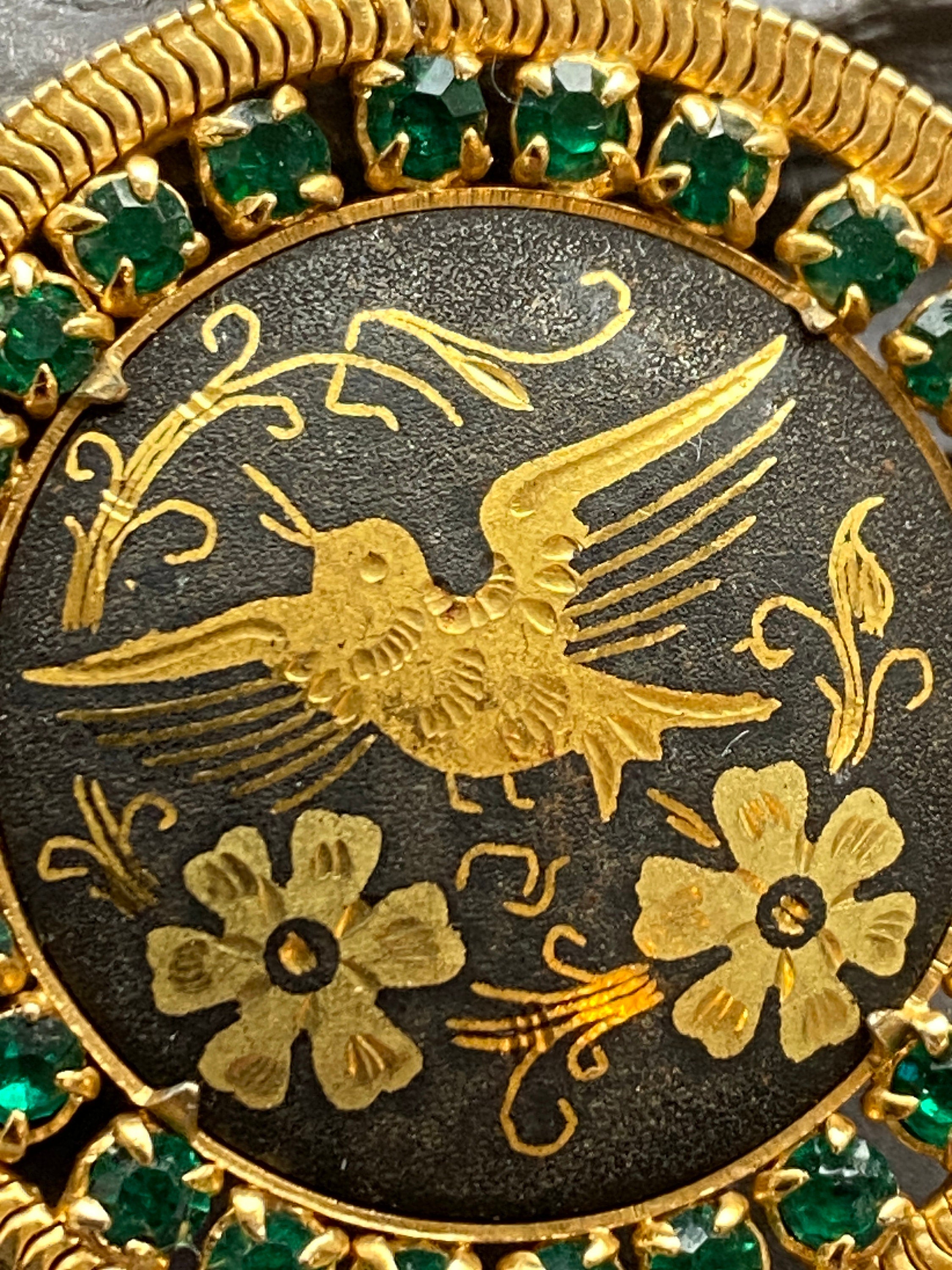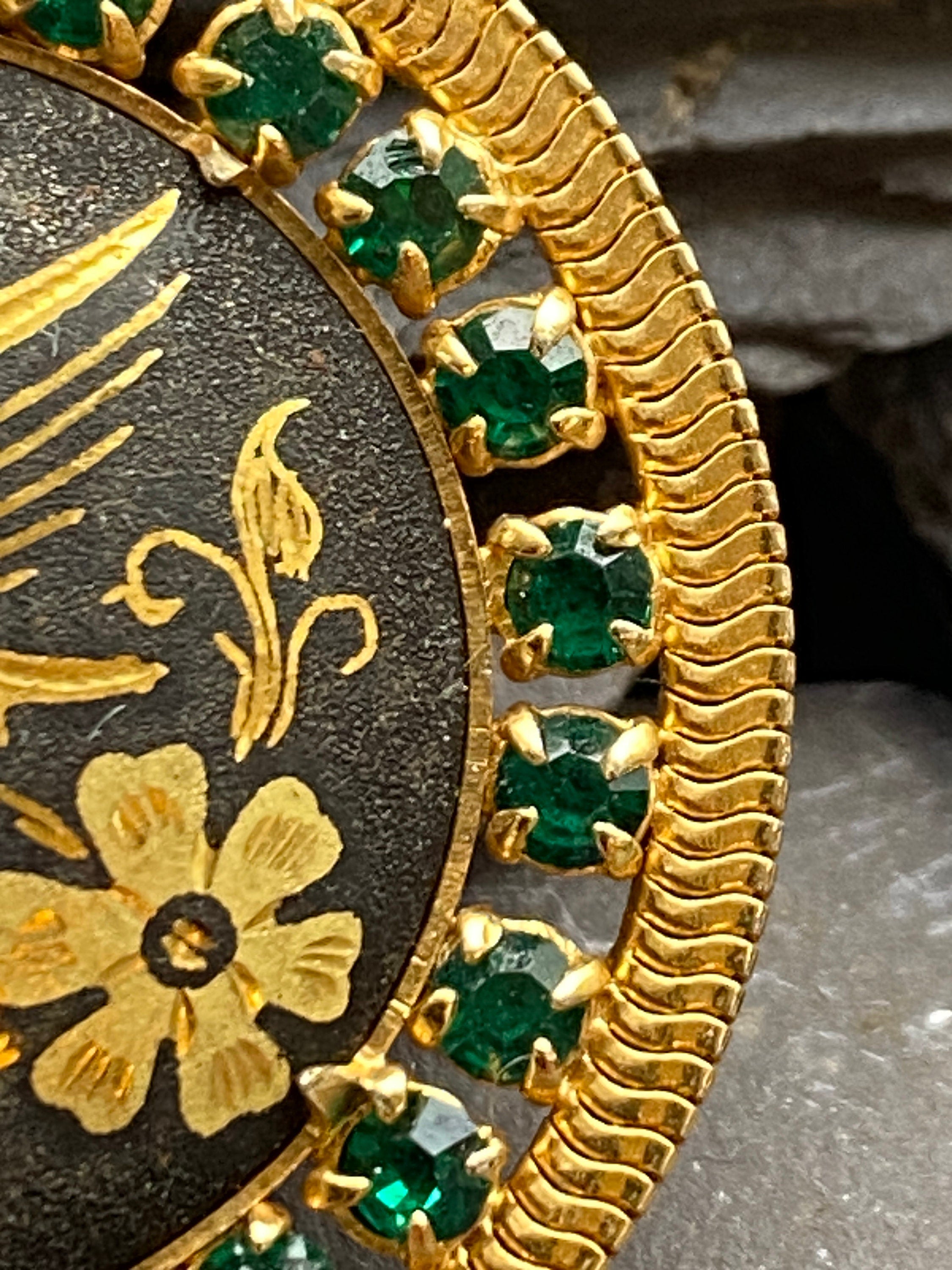 Vintage Toledo Ware Damascene and Emerald Paste Pendant.