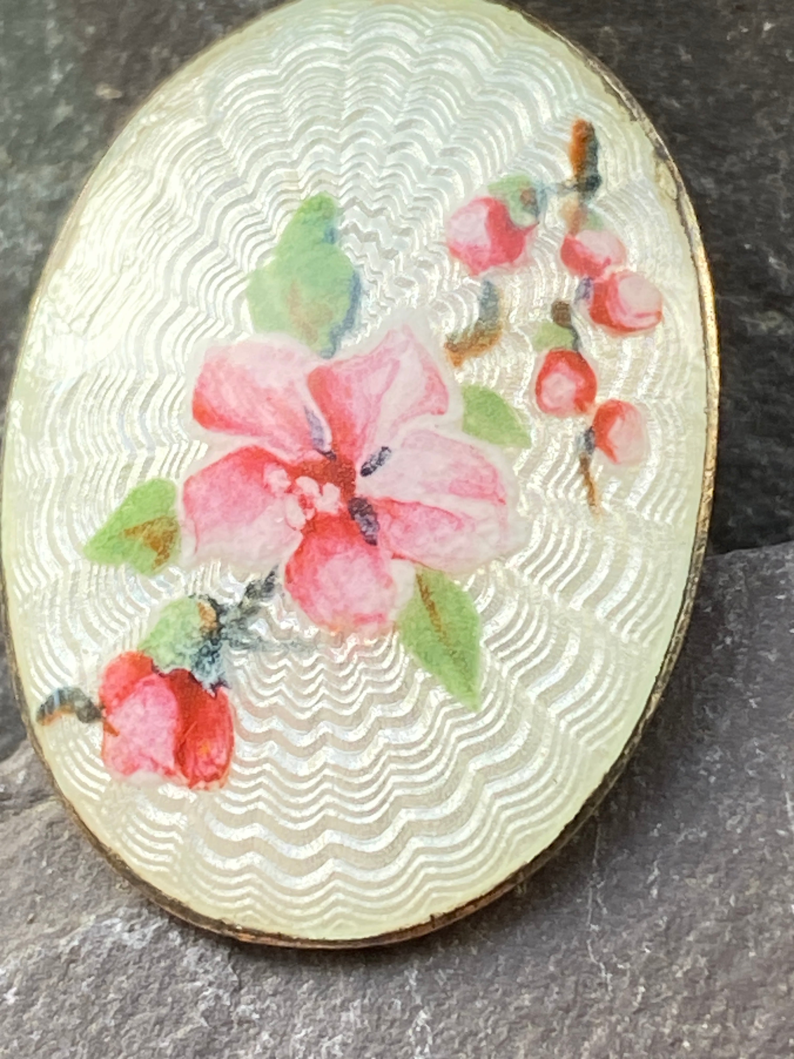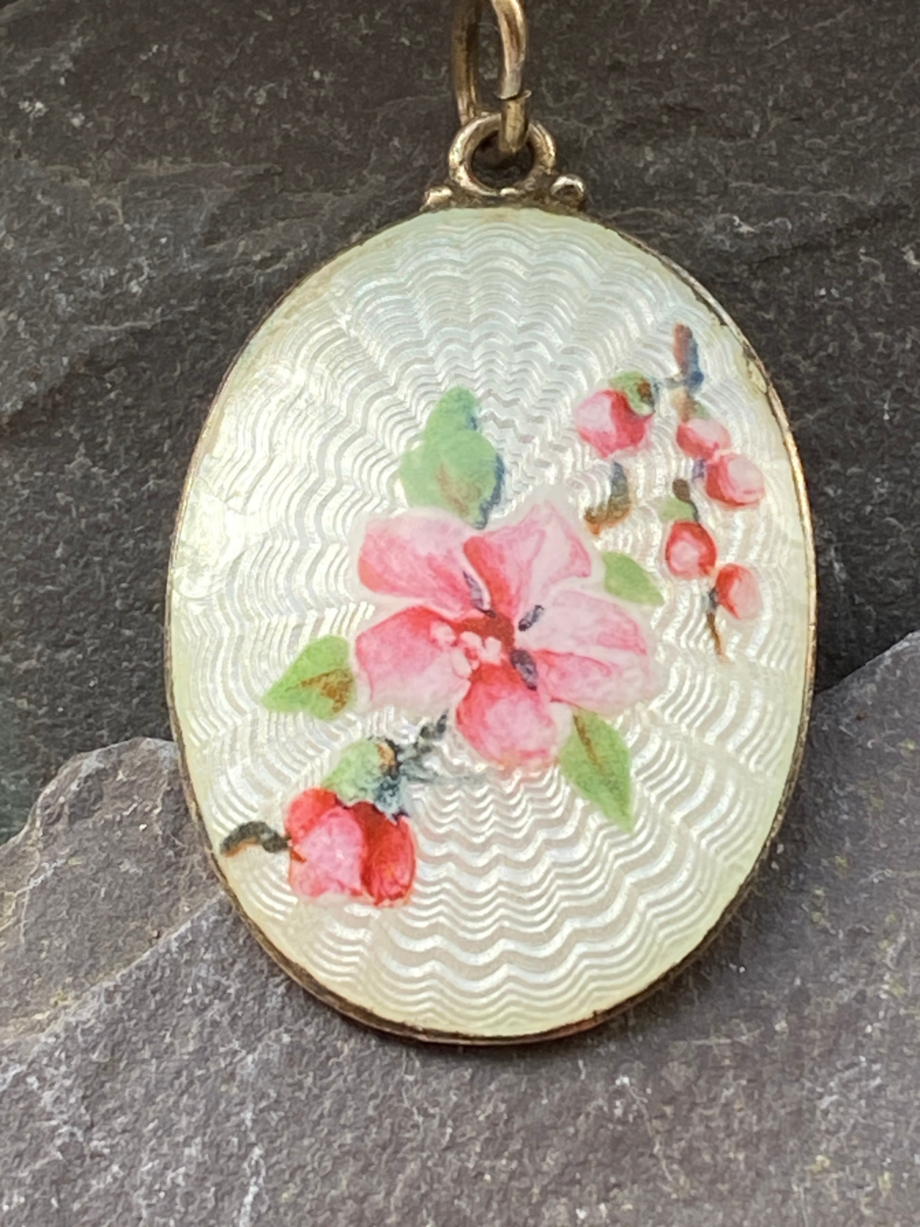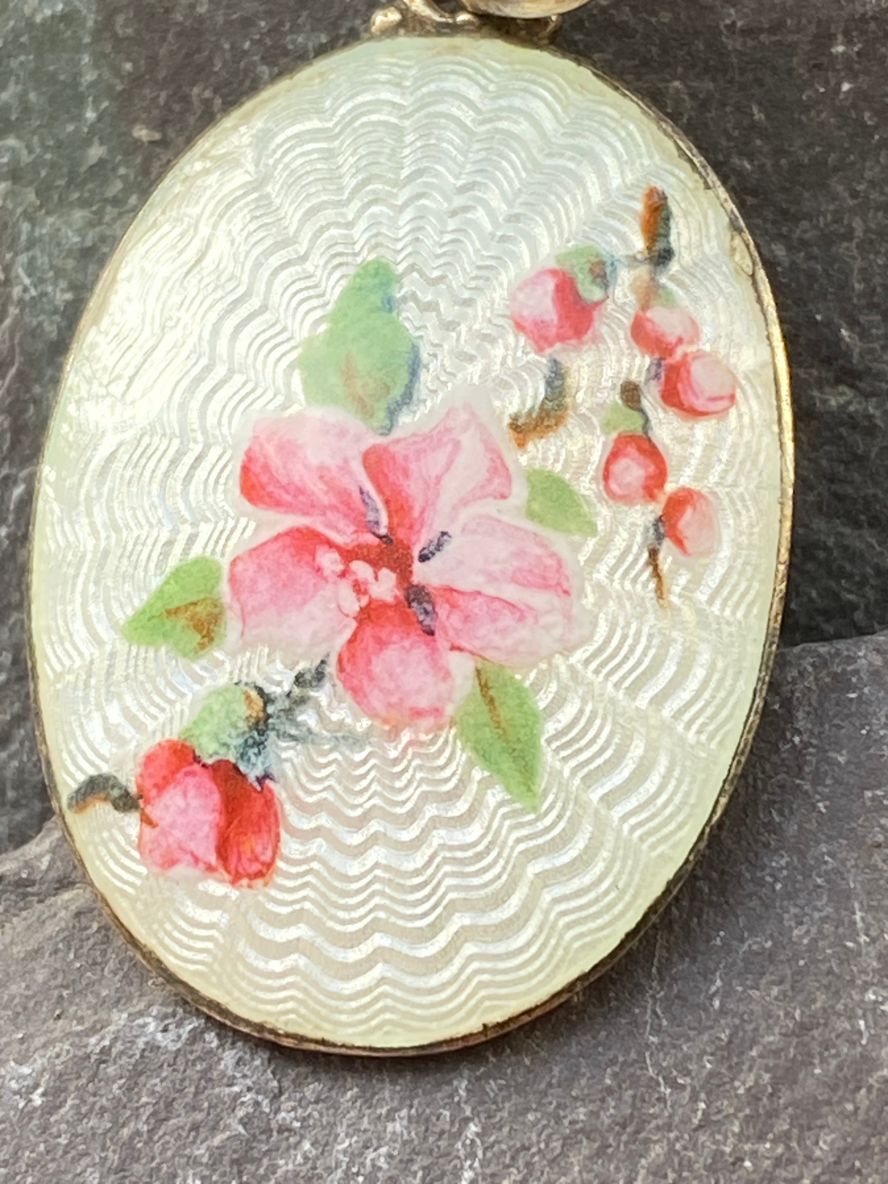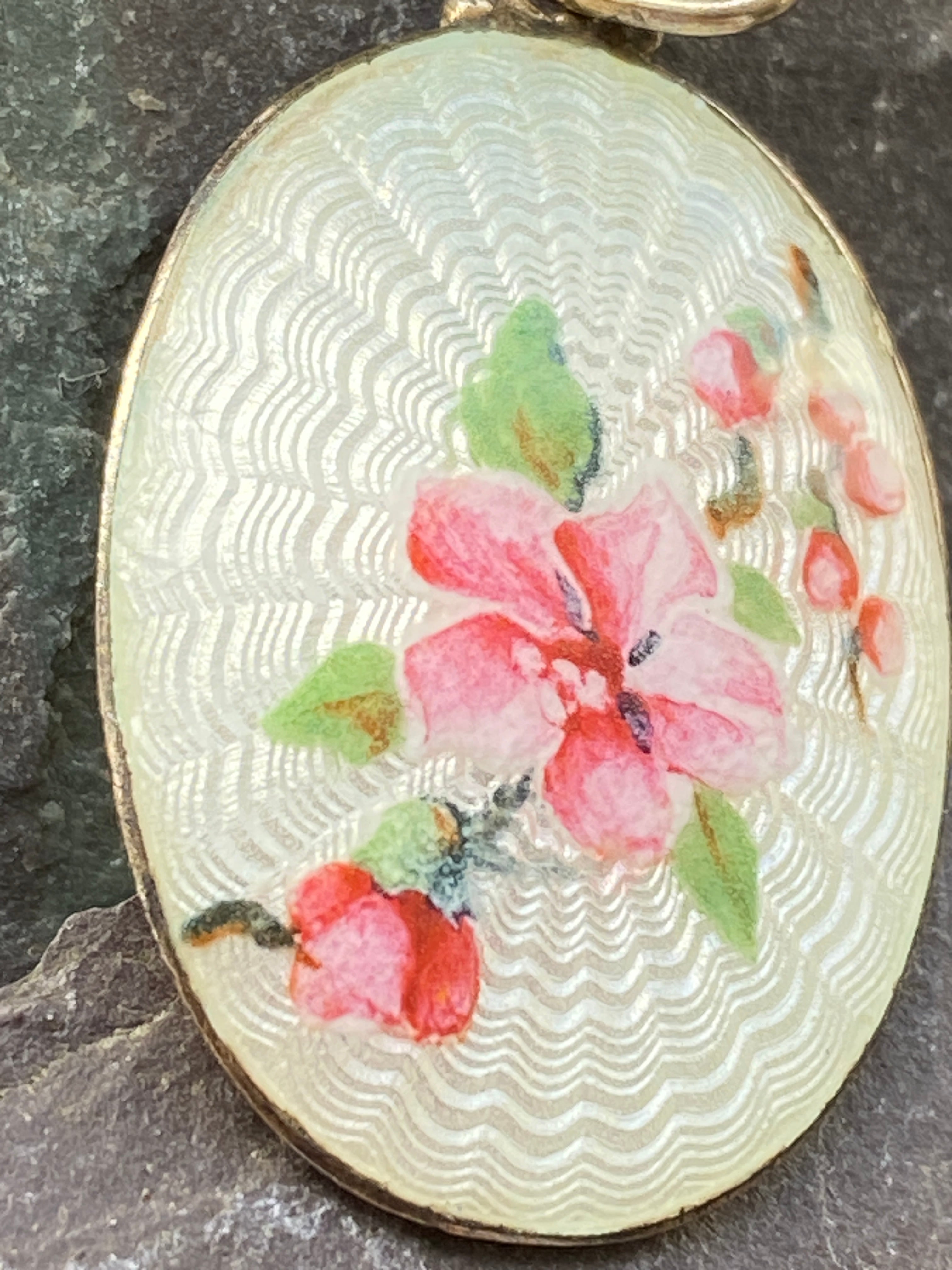 A very pretty sterling silver pendant with gold wash finish decorated with guilloche hand painted enamel.