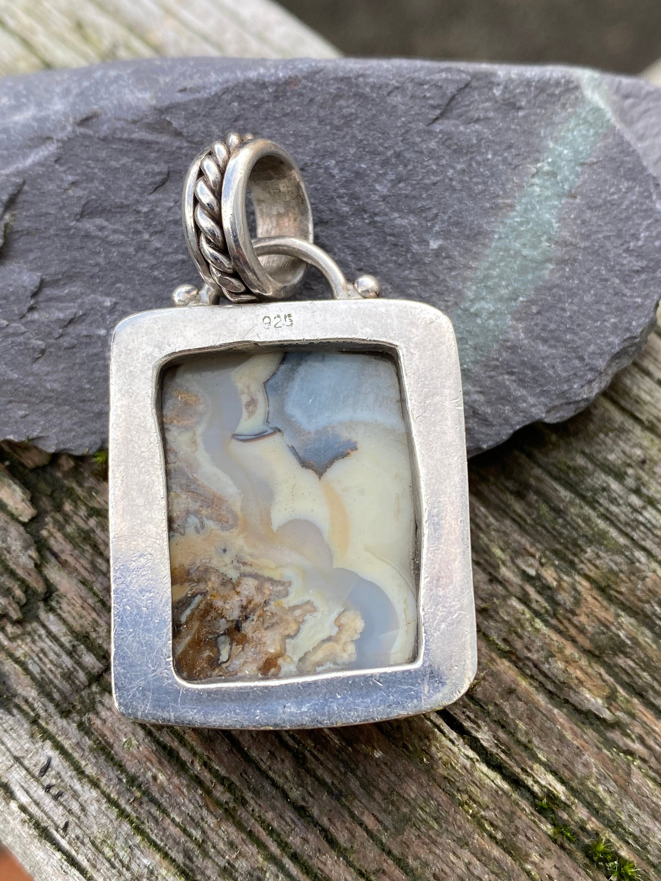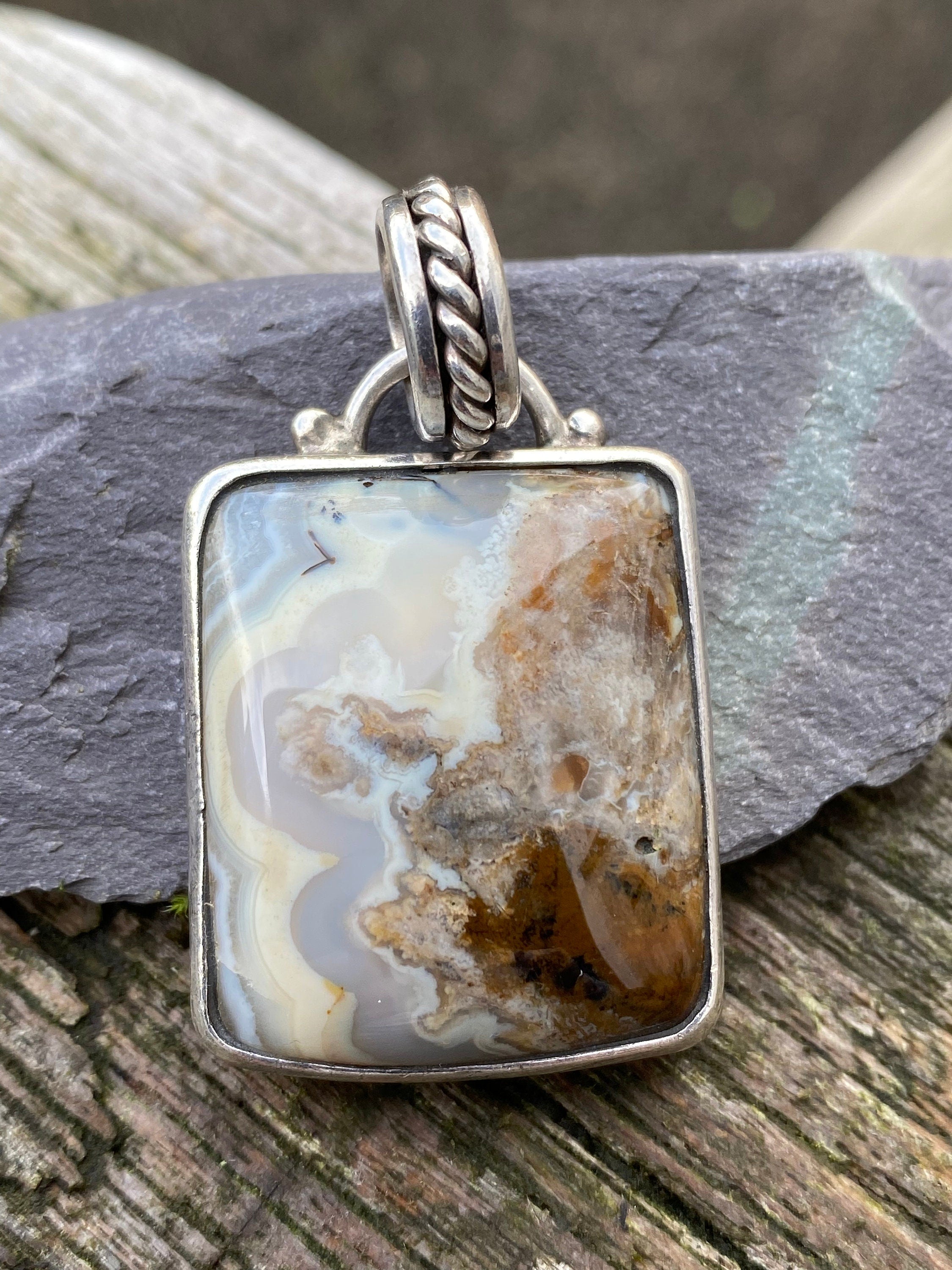 A heavy sterling silver pendant set with a natural polished Agate stone