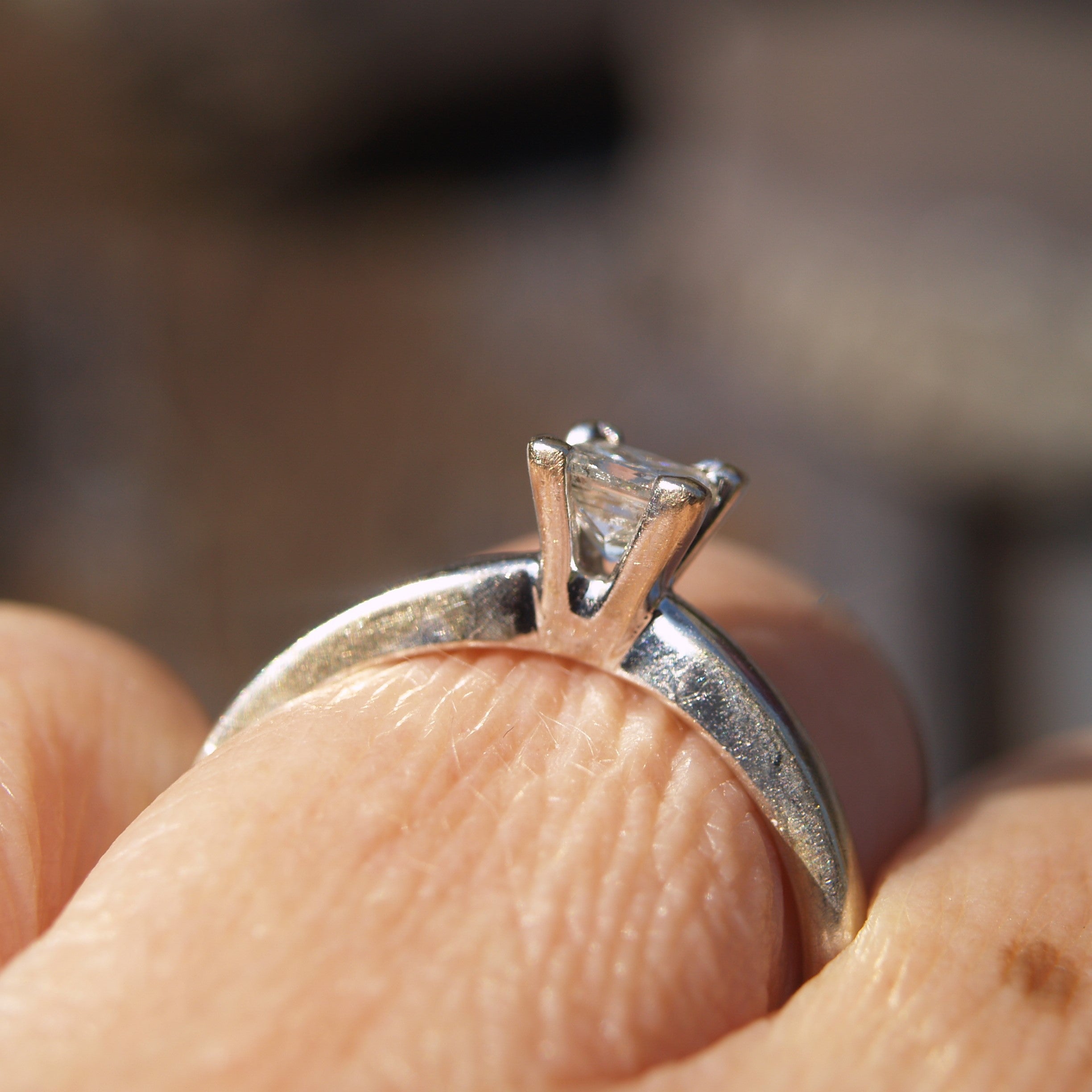 An ideal ring for a proposal! . Will sit well next to a wedding band.
