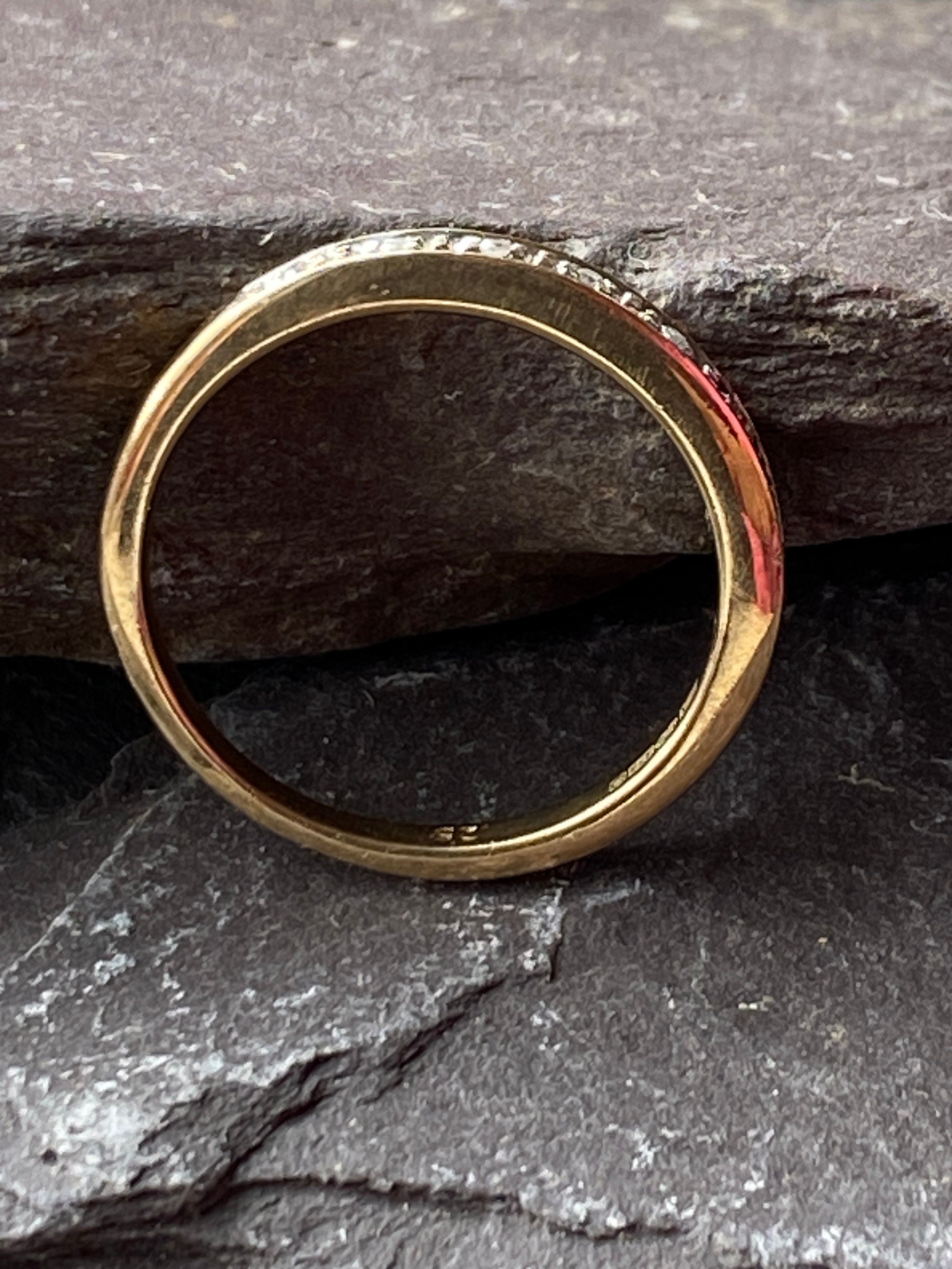 A 9ct yellow gold ring set with eight Diamonds in a white Rhodium Setting