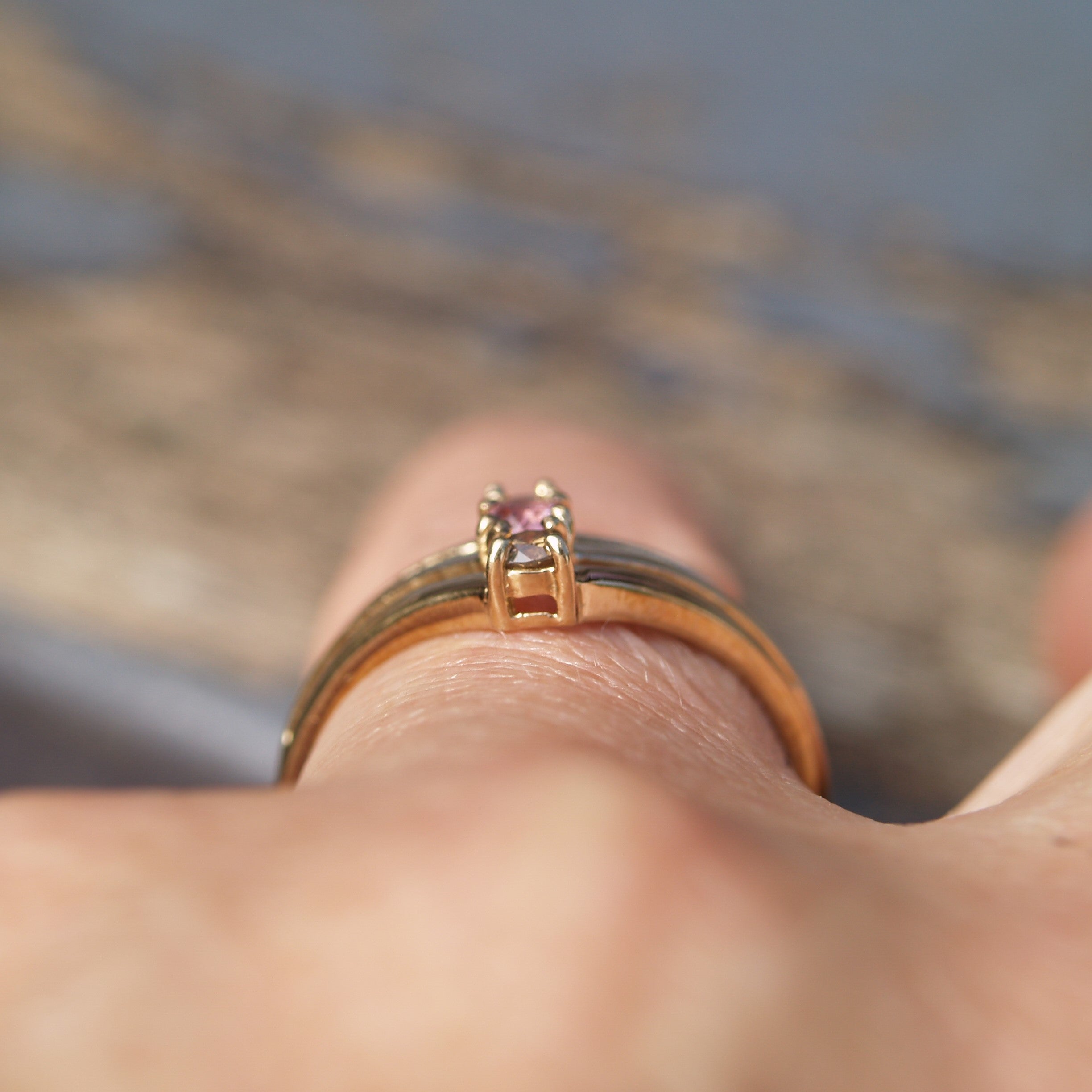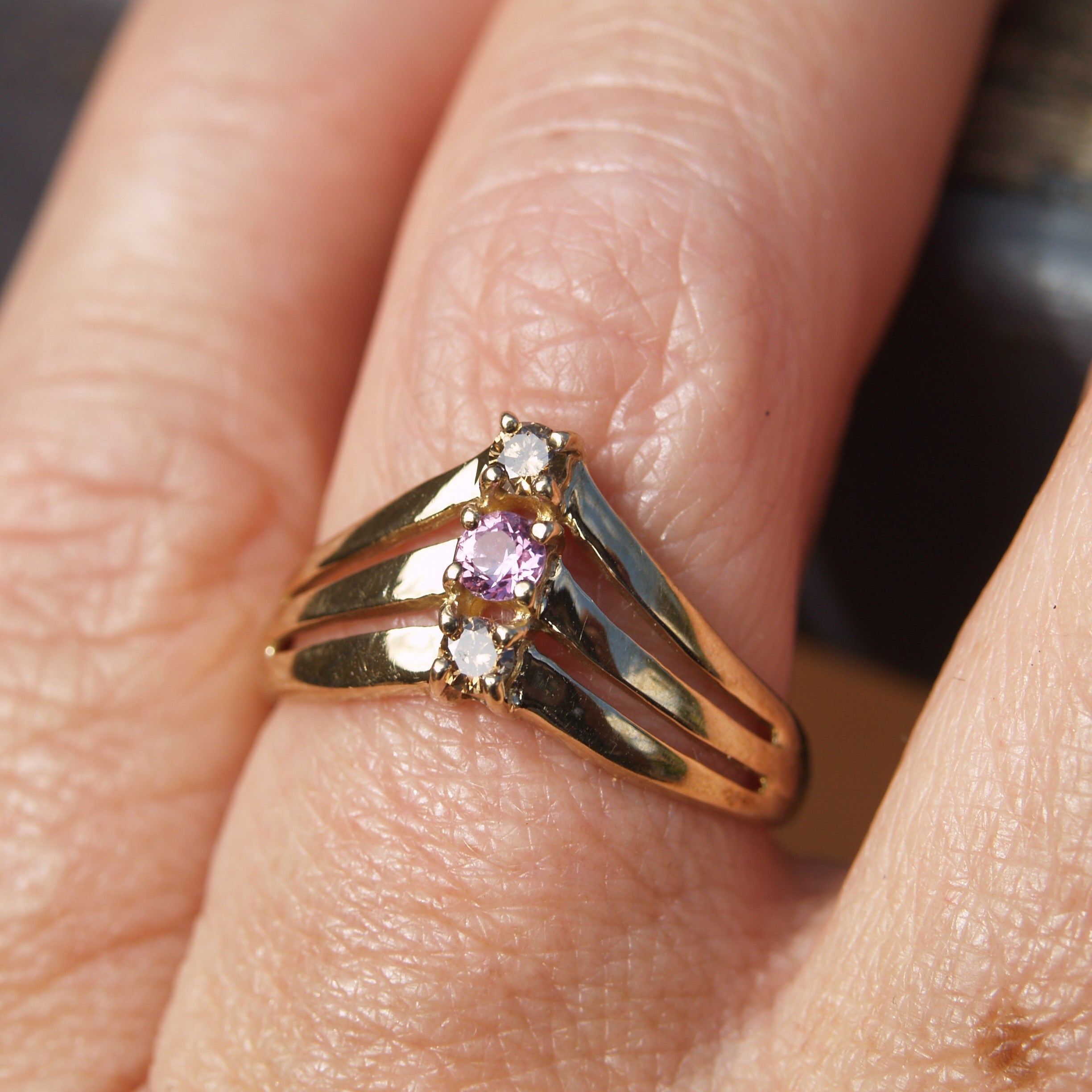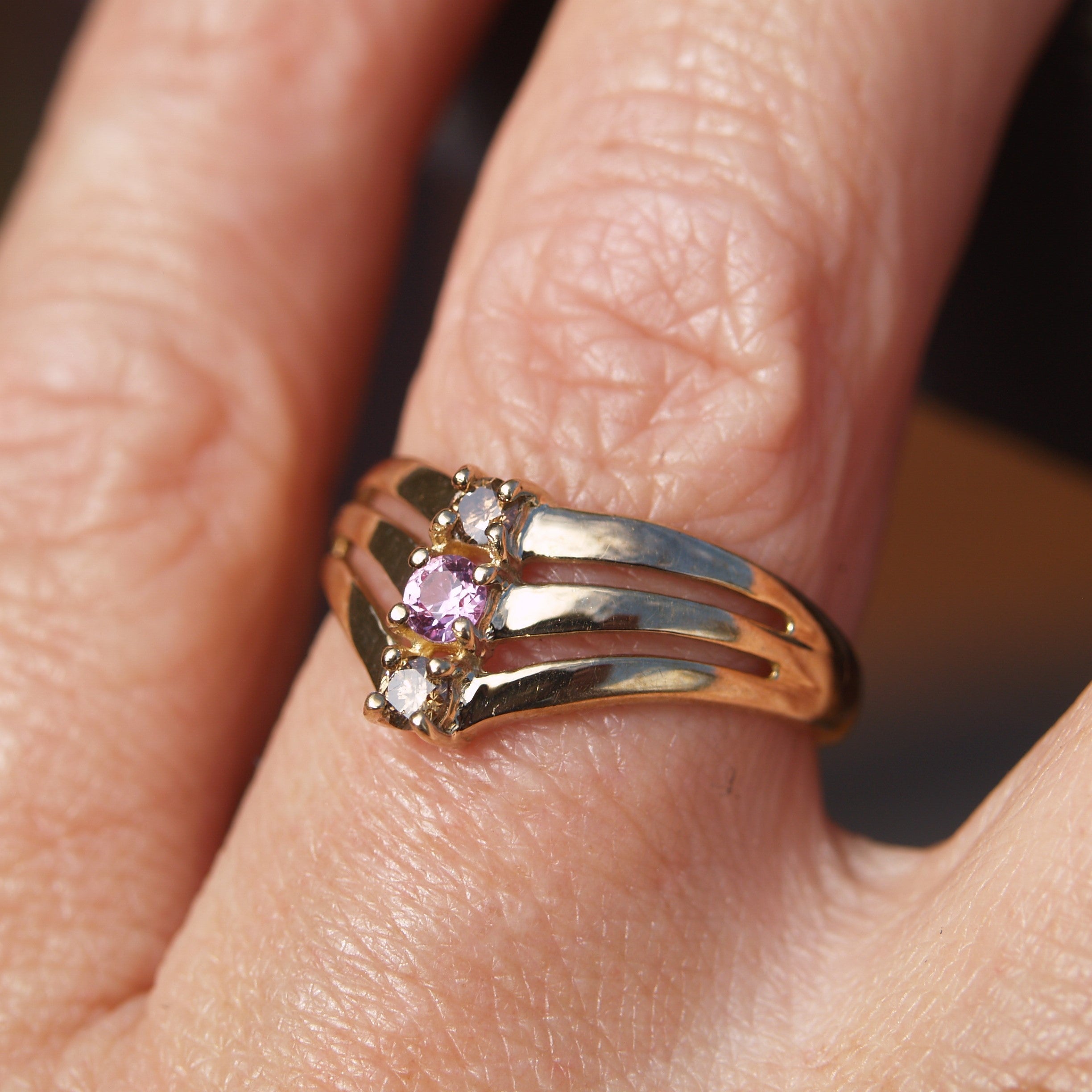 9ct Gold Cognac Diamond & Pink Sapphire Ring Size P 1/2 or 8 US.