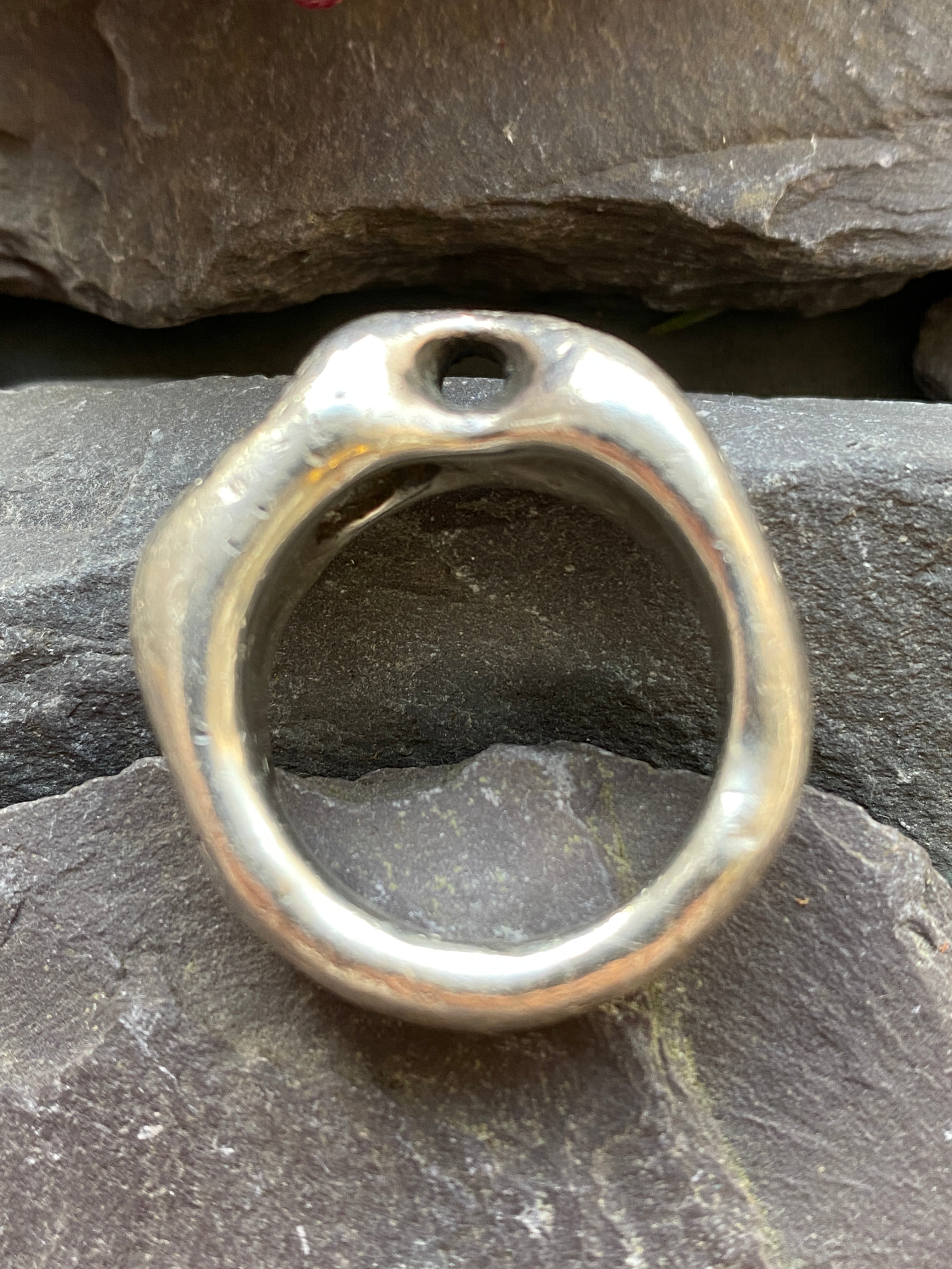 A vintage solid sterling silver ring weighing 25.14g stamped with 'I've got the horn'