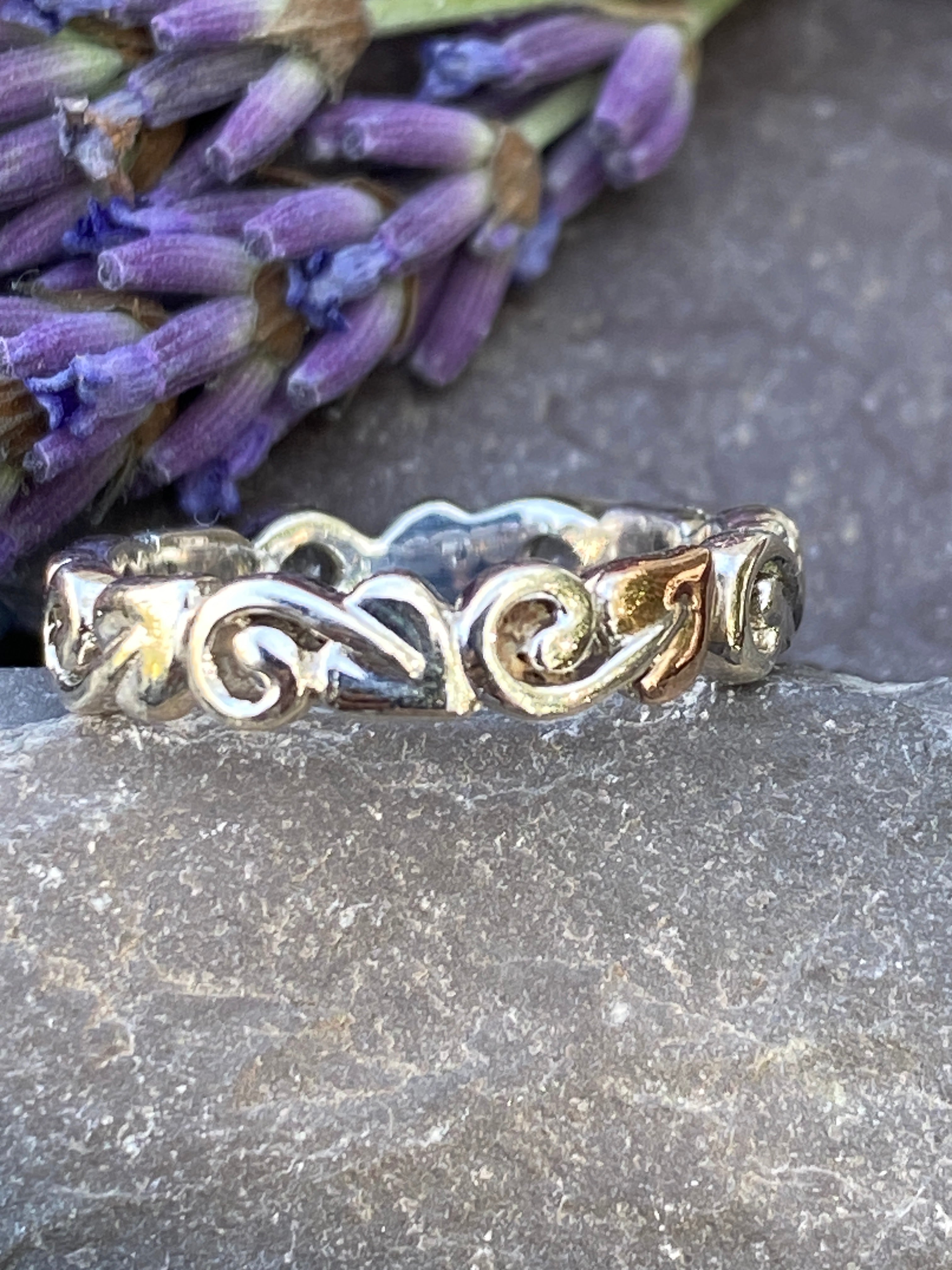 Clogau Silver & Gold Wedding Band Ring Set With Cubic Zirconia Size K 1/2 or 5 1/2 US.