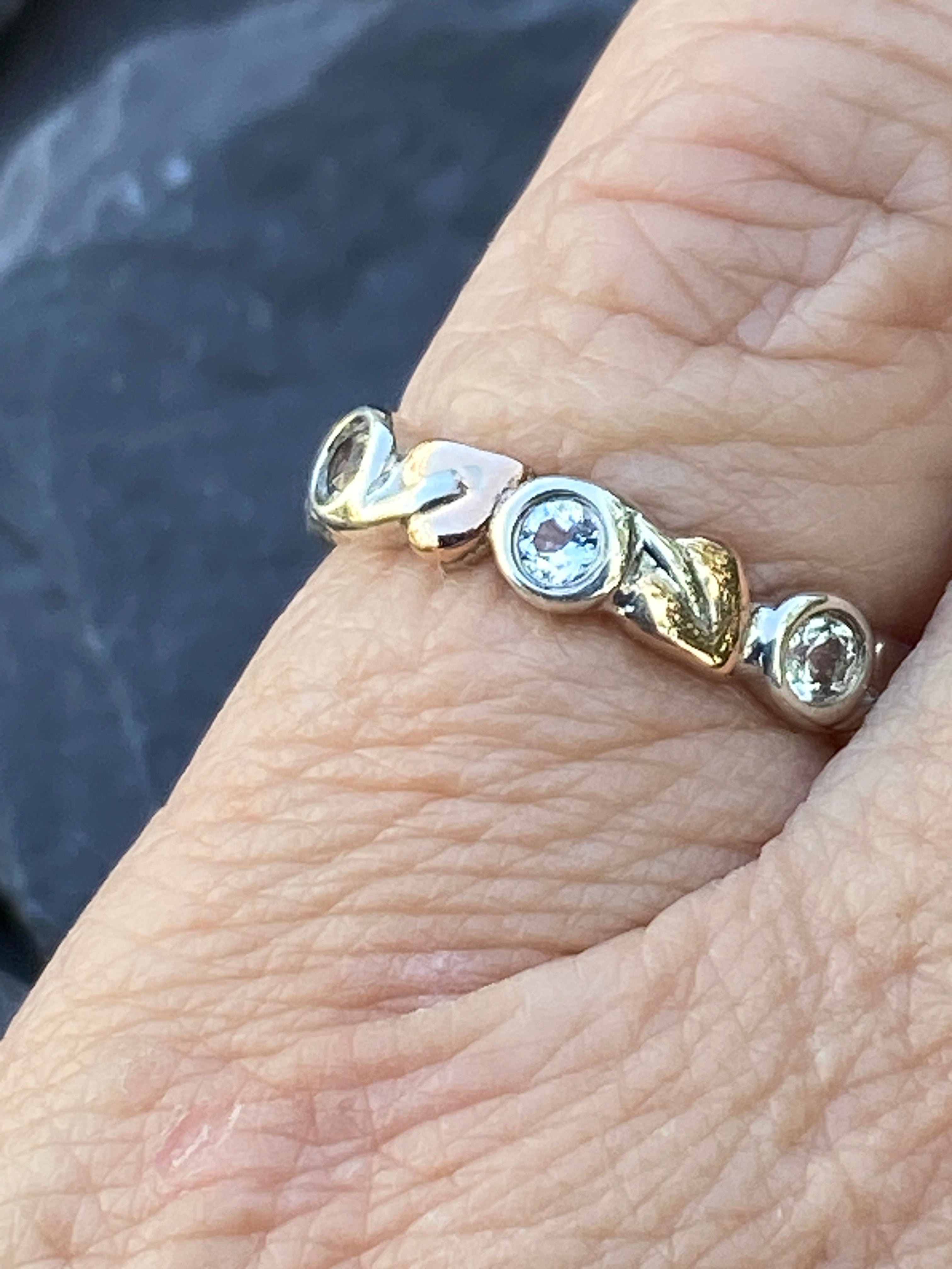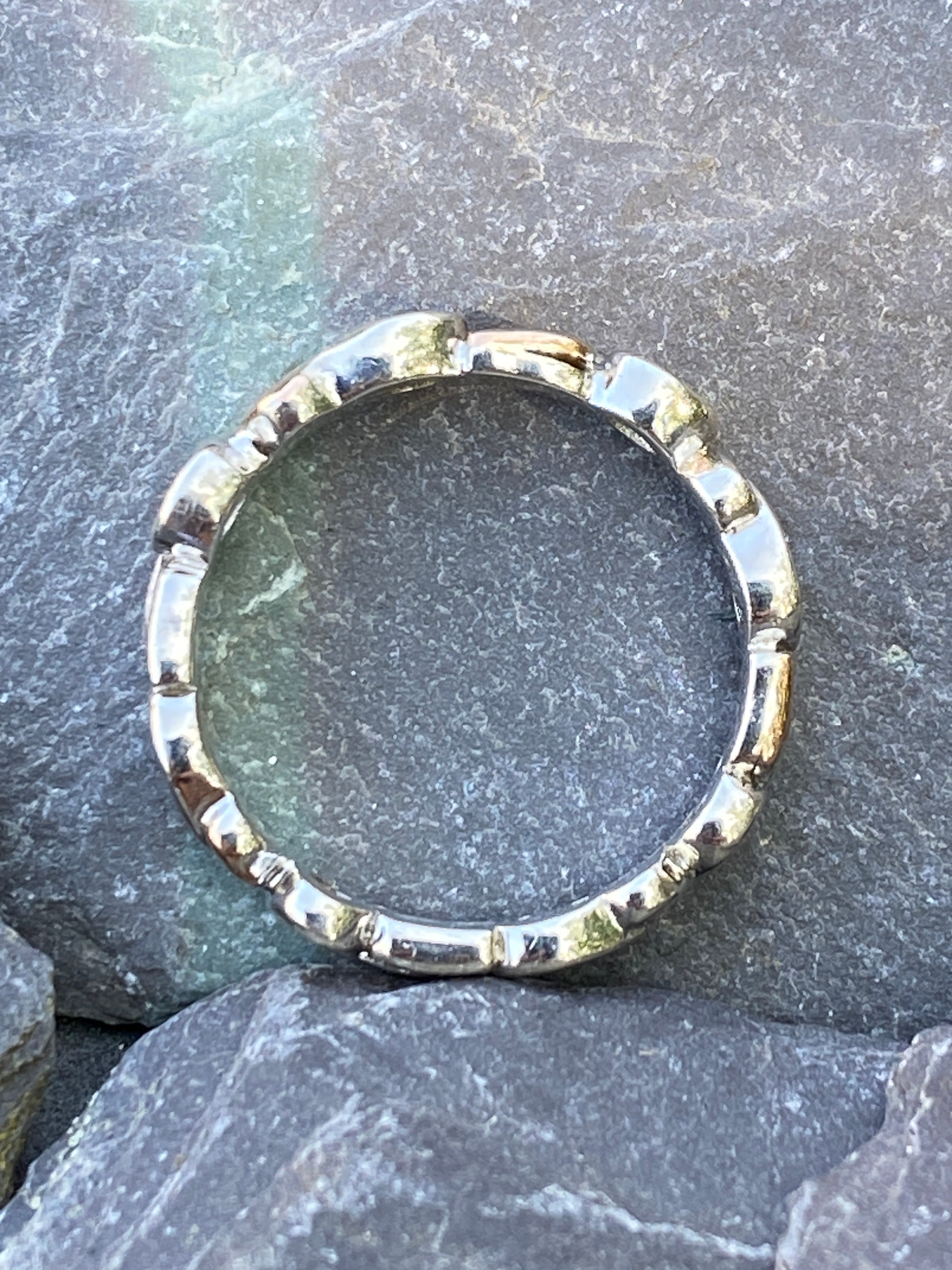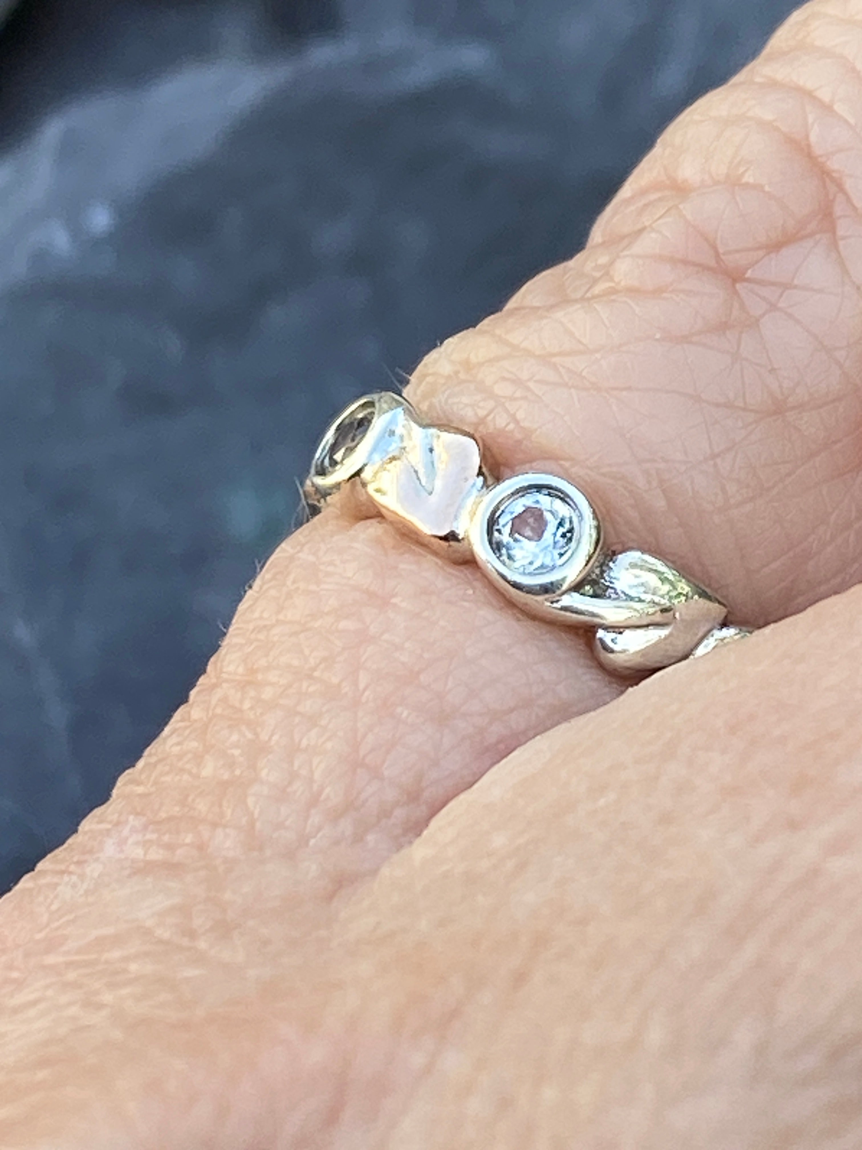 A beautiful sterling silver Clogau love vine ring set with three Cubic Zirconia in collet settings