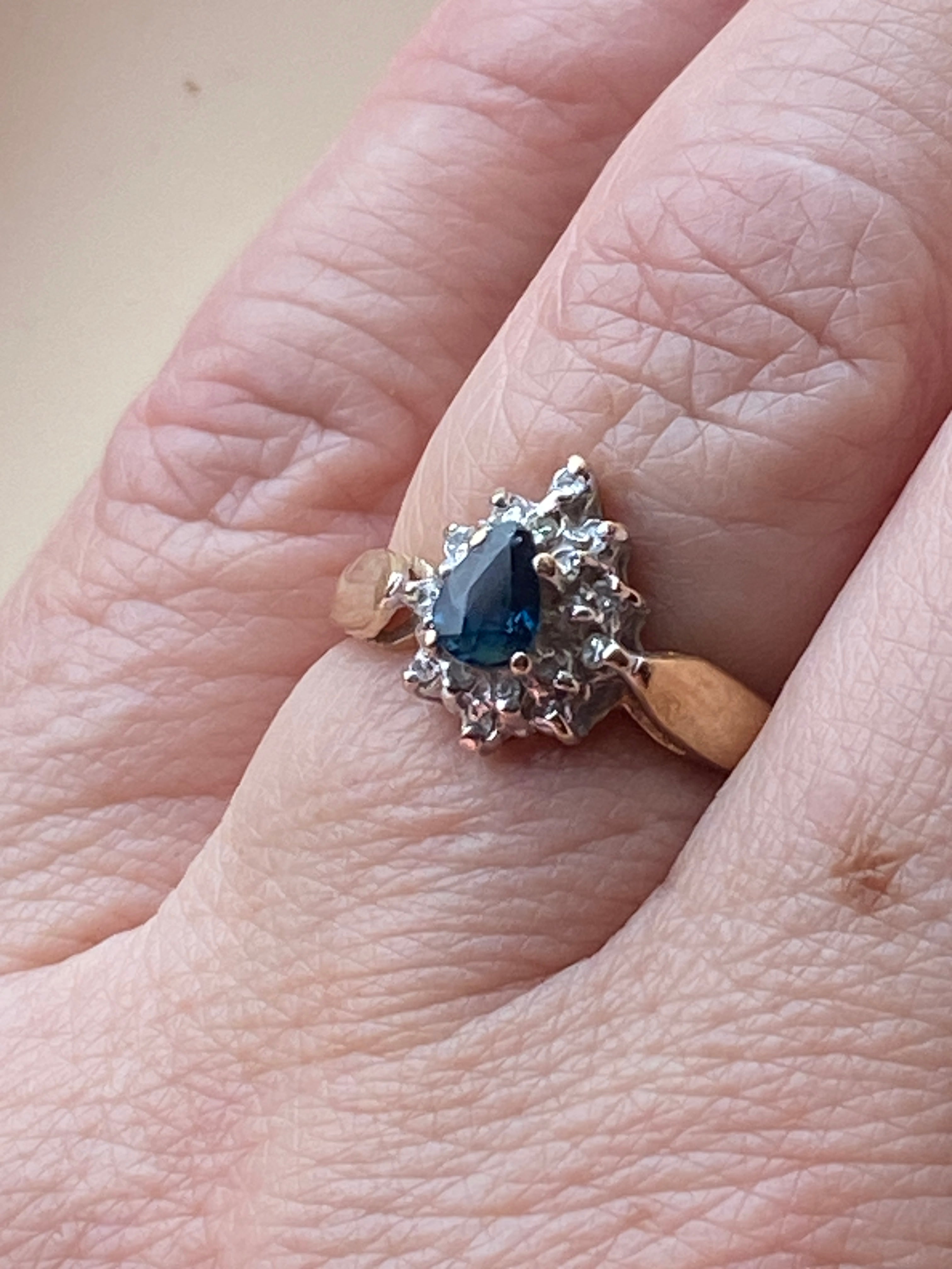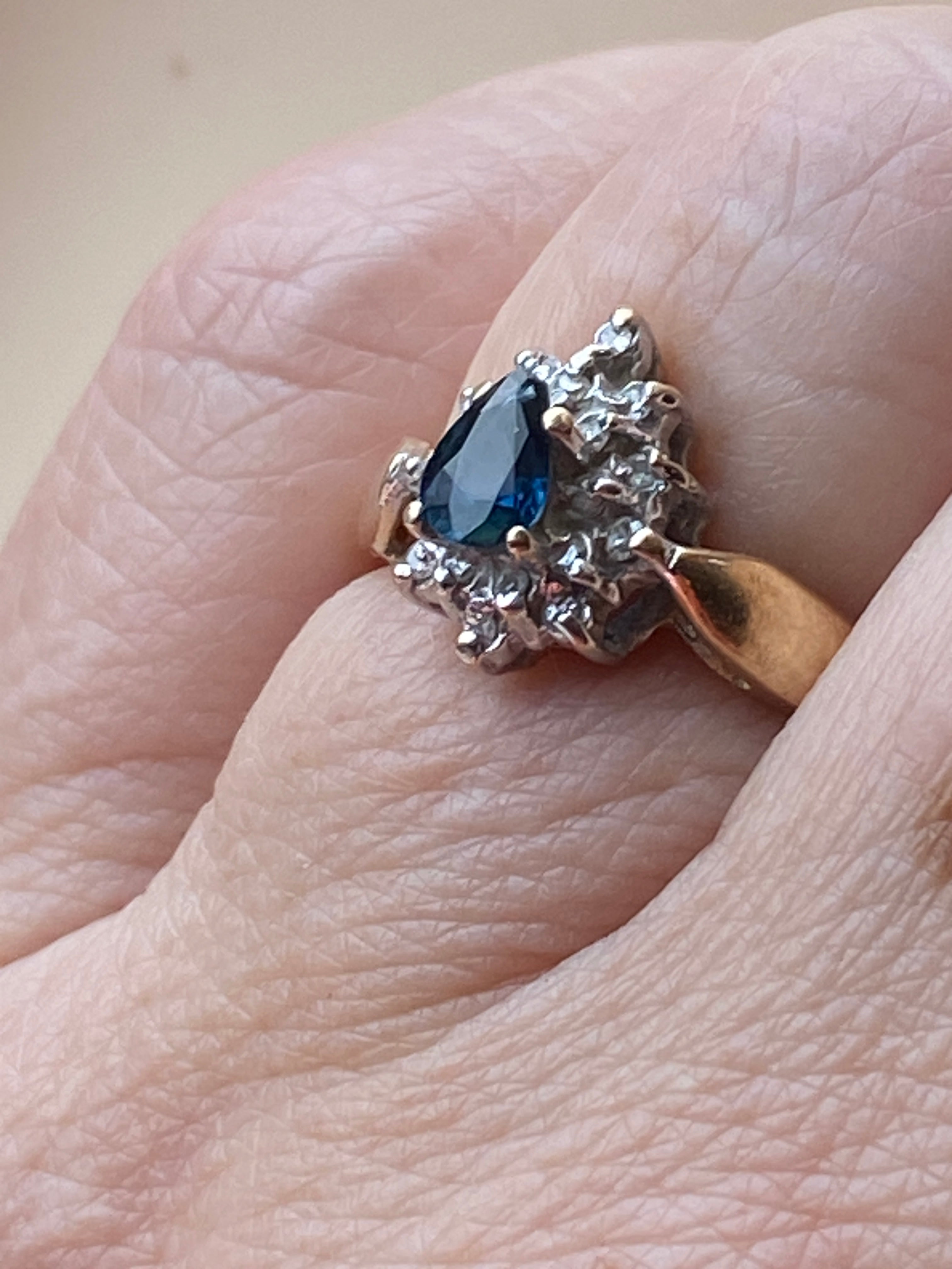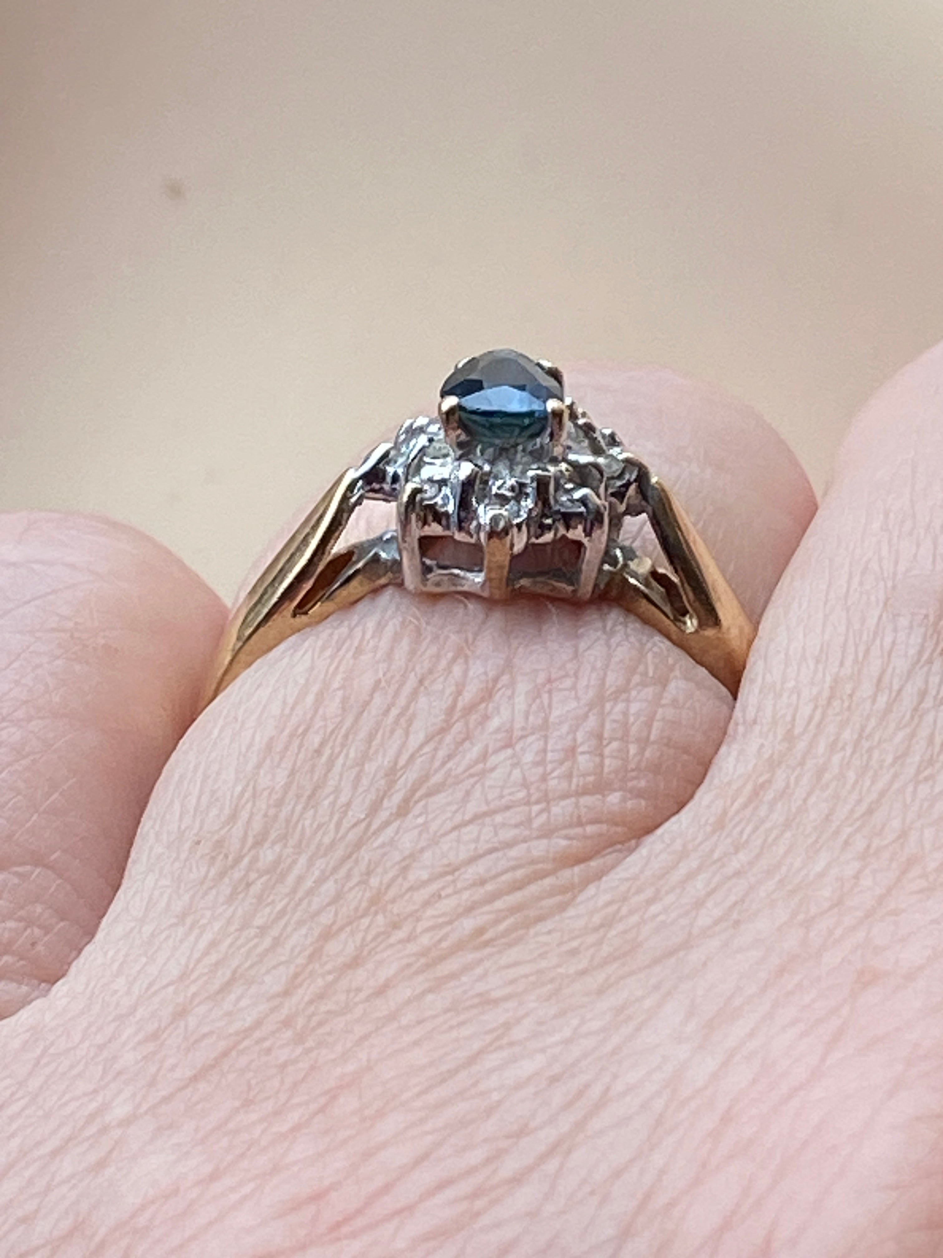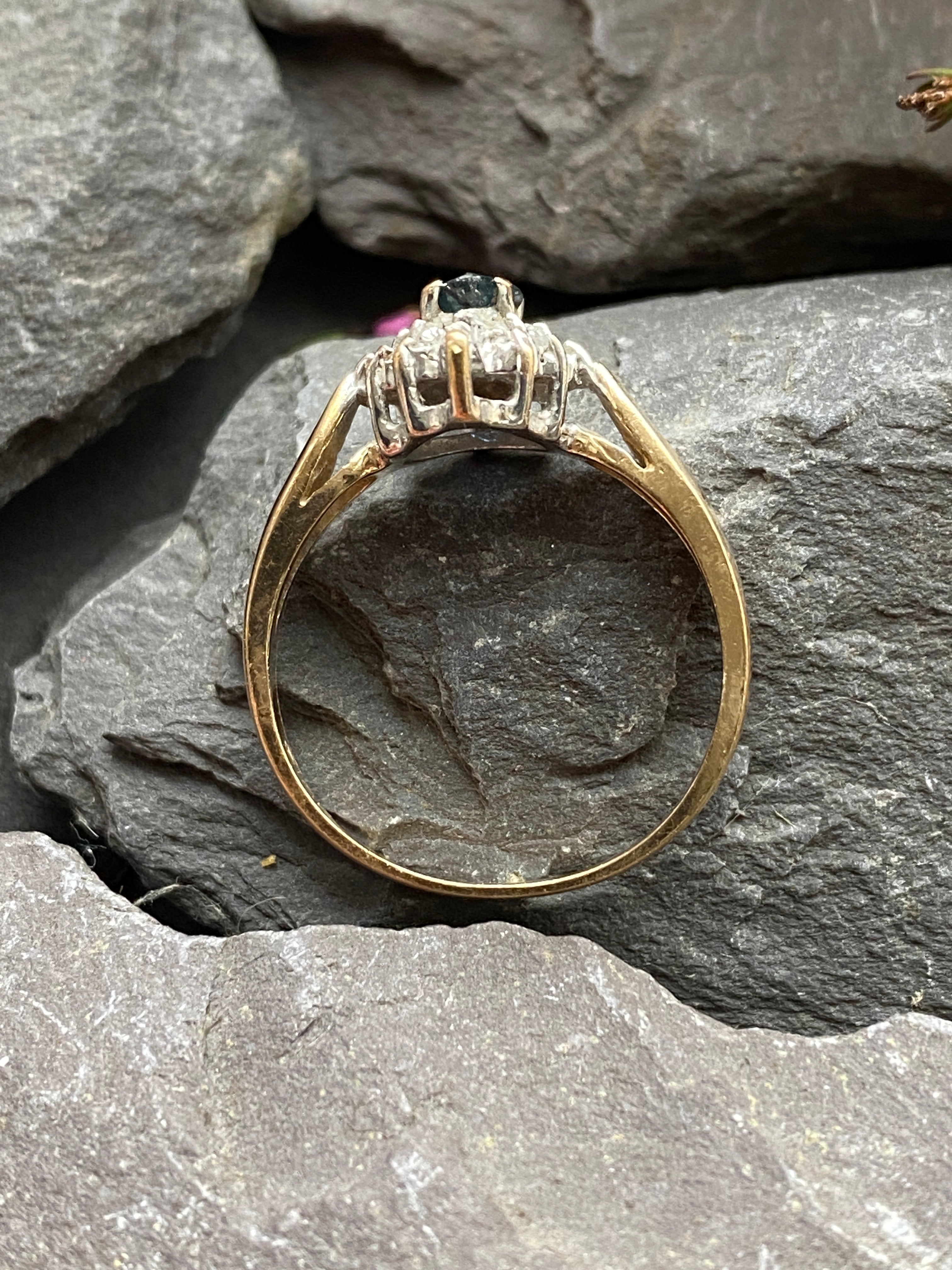 A very pretty 10ct gold ring set with a London blue topaz and Diamonds in a Rhodium enhanced setting