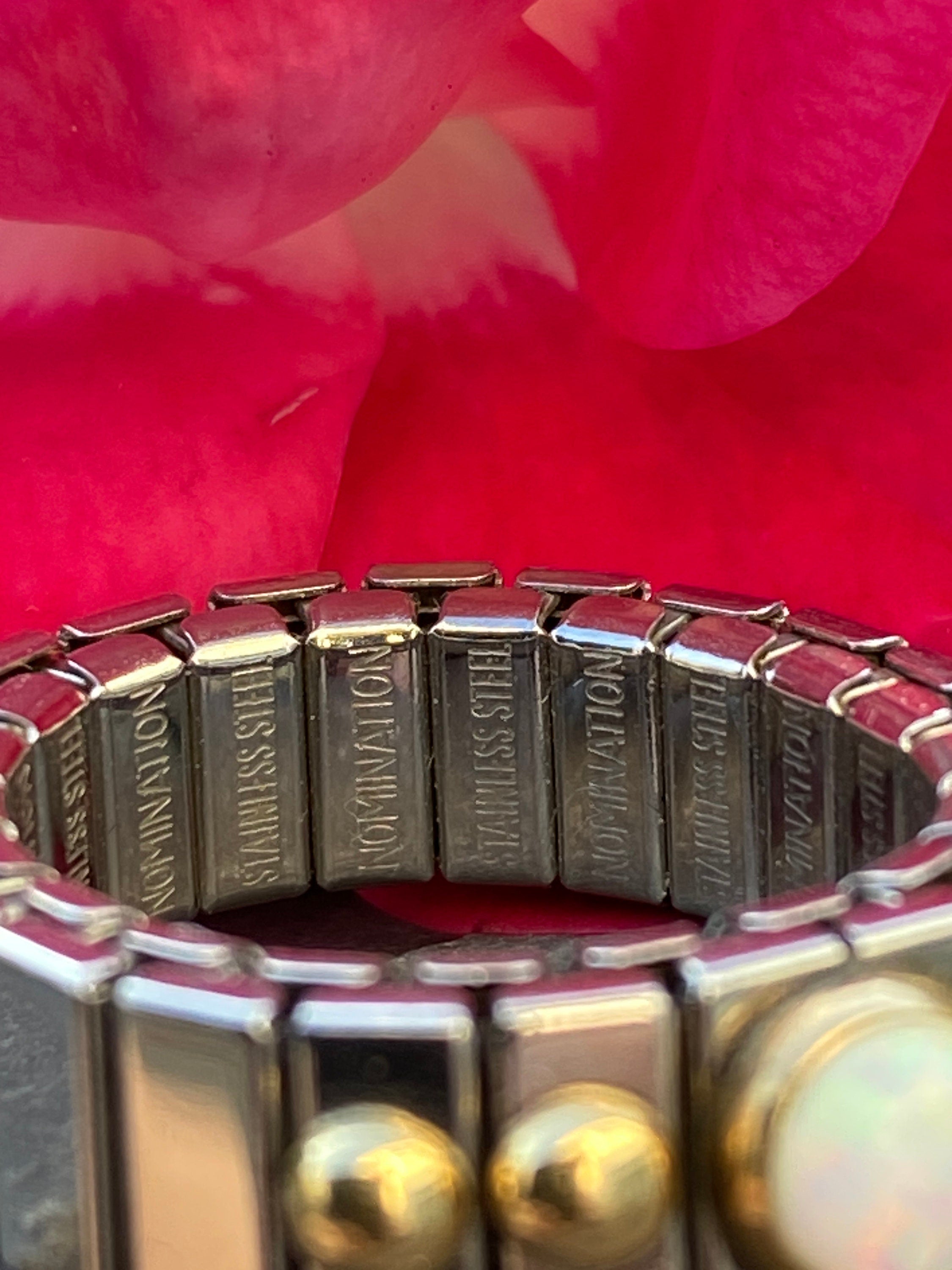 A Nomination stainless steel expanding ring set with a synthetic Opal and 18ct gold accents