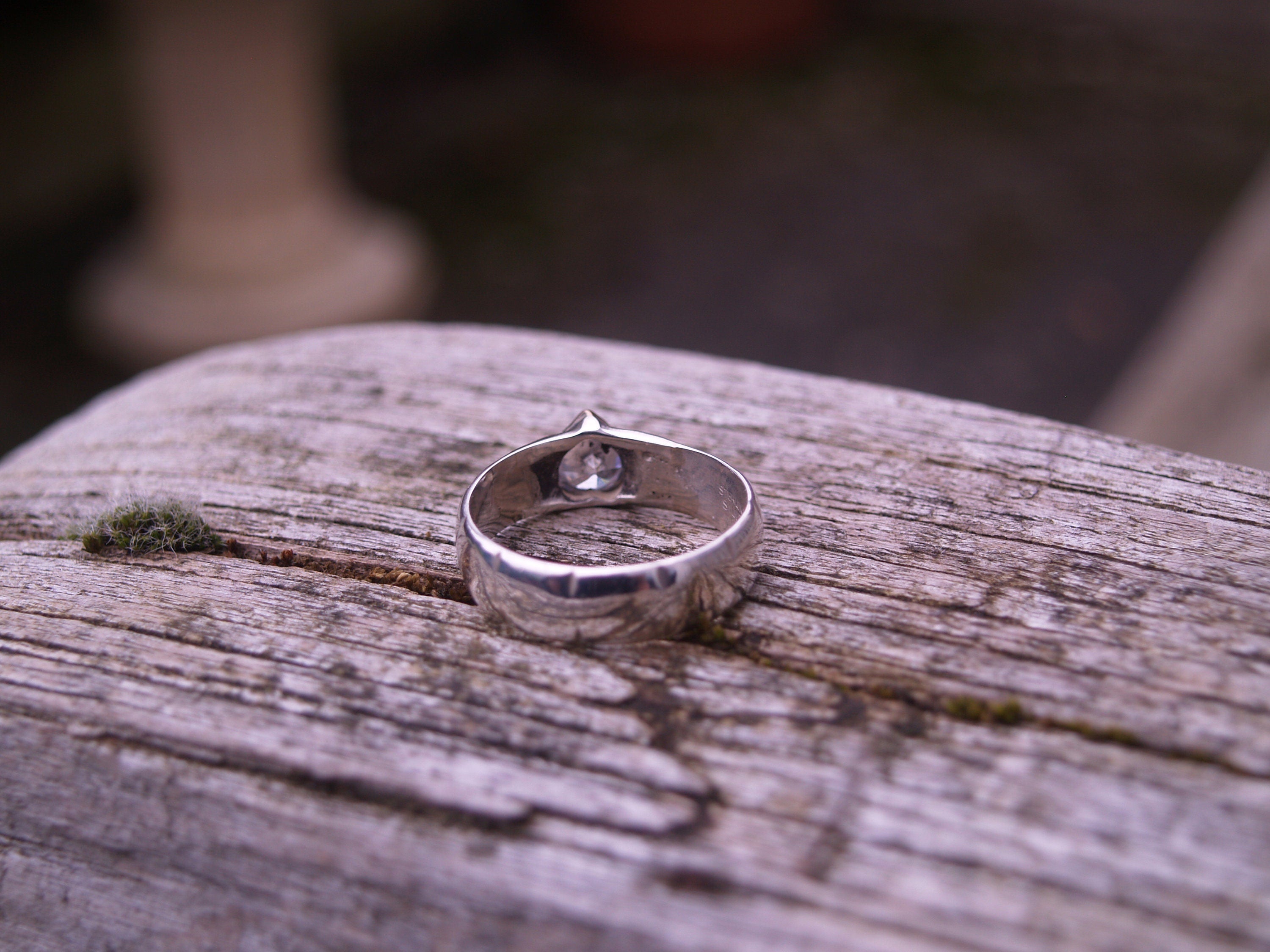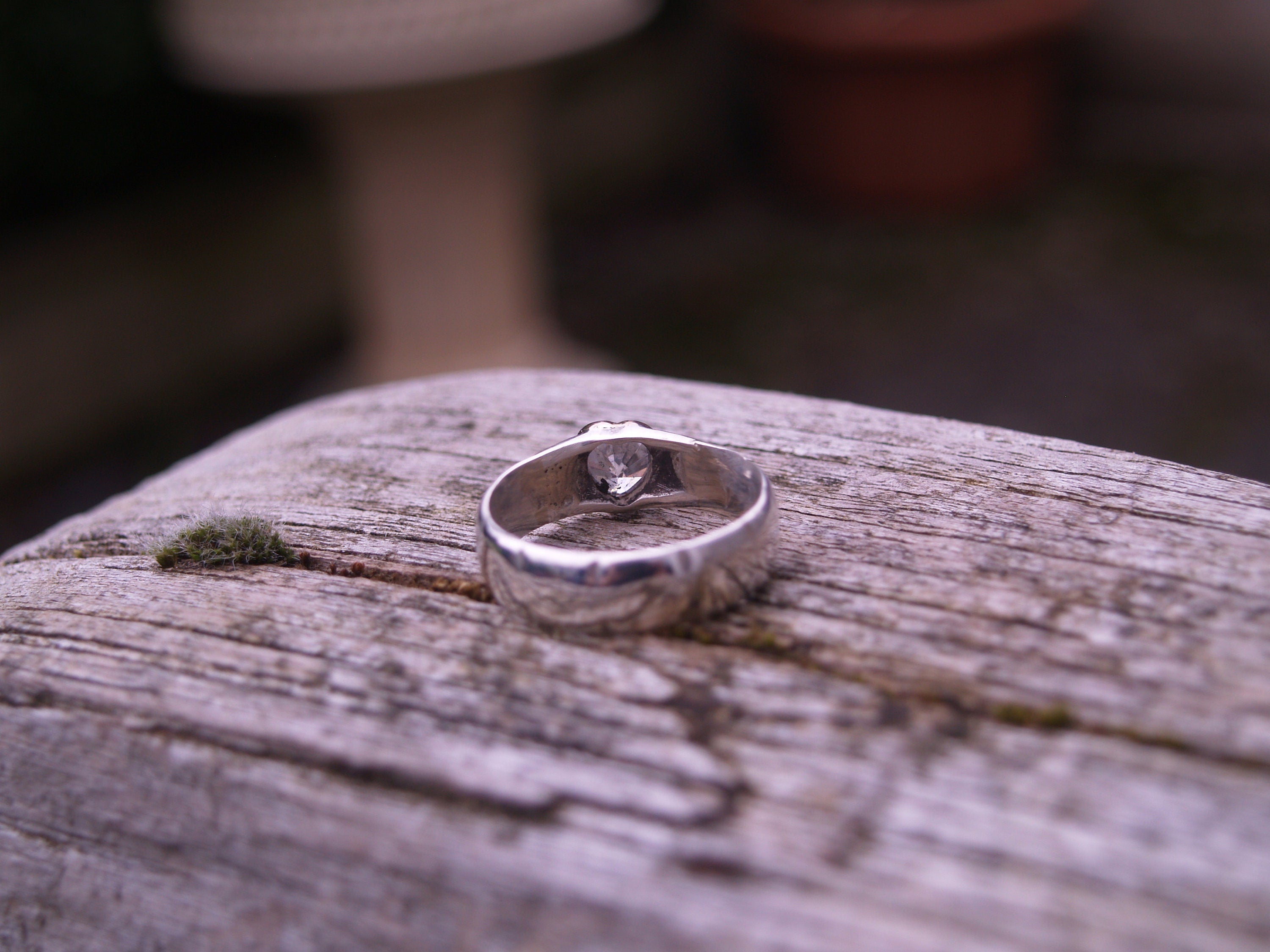 A handmade sterling silver ring set with a heart shaped Cubic Zirconia stone set in 9ct gold.