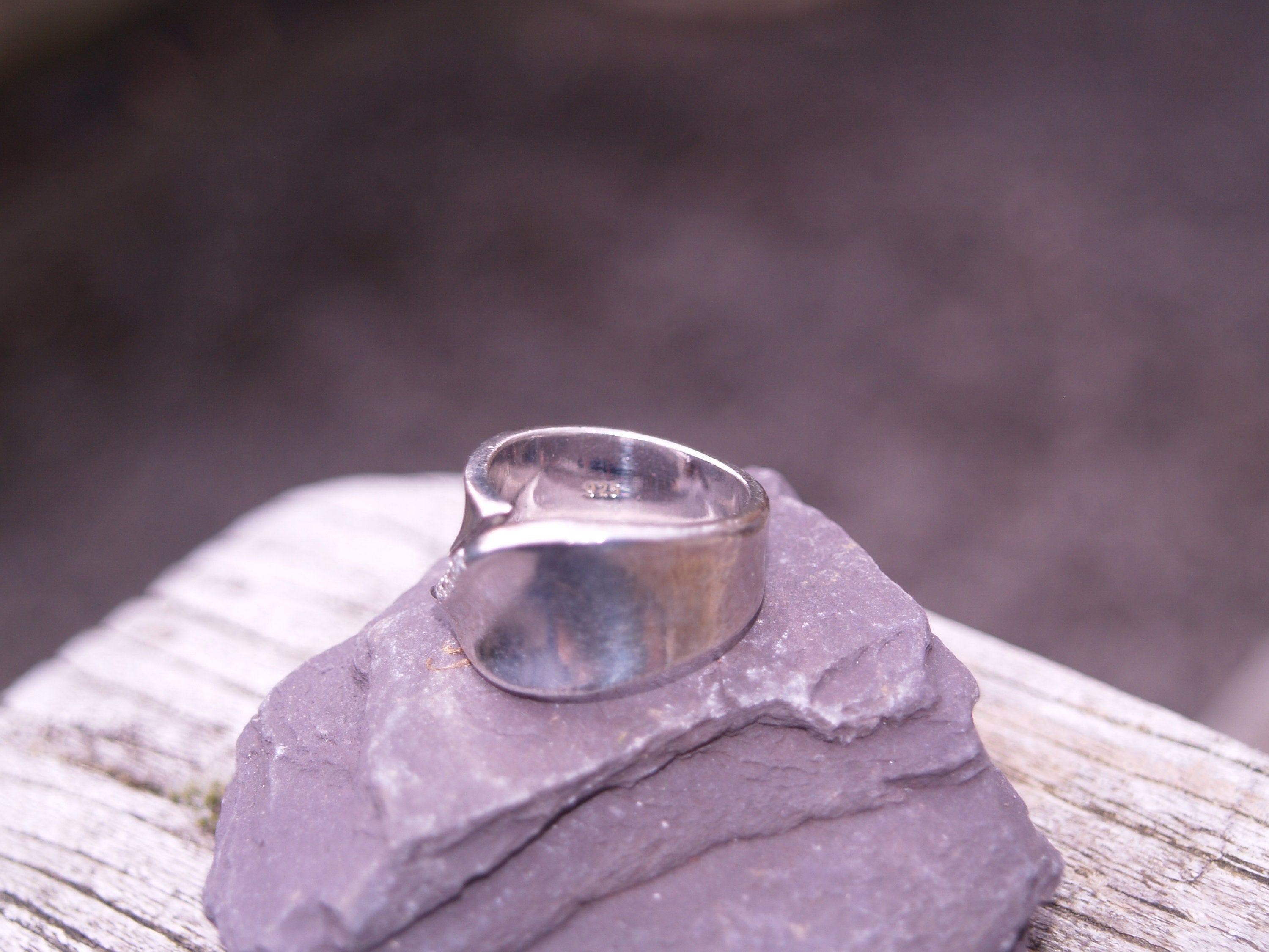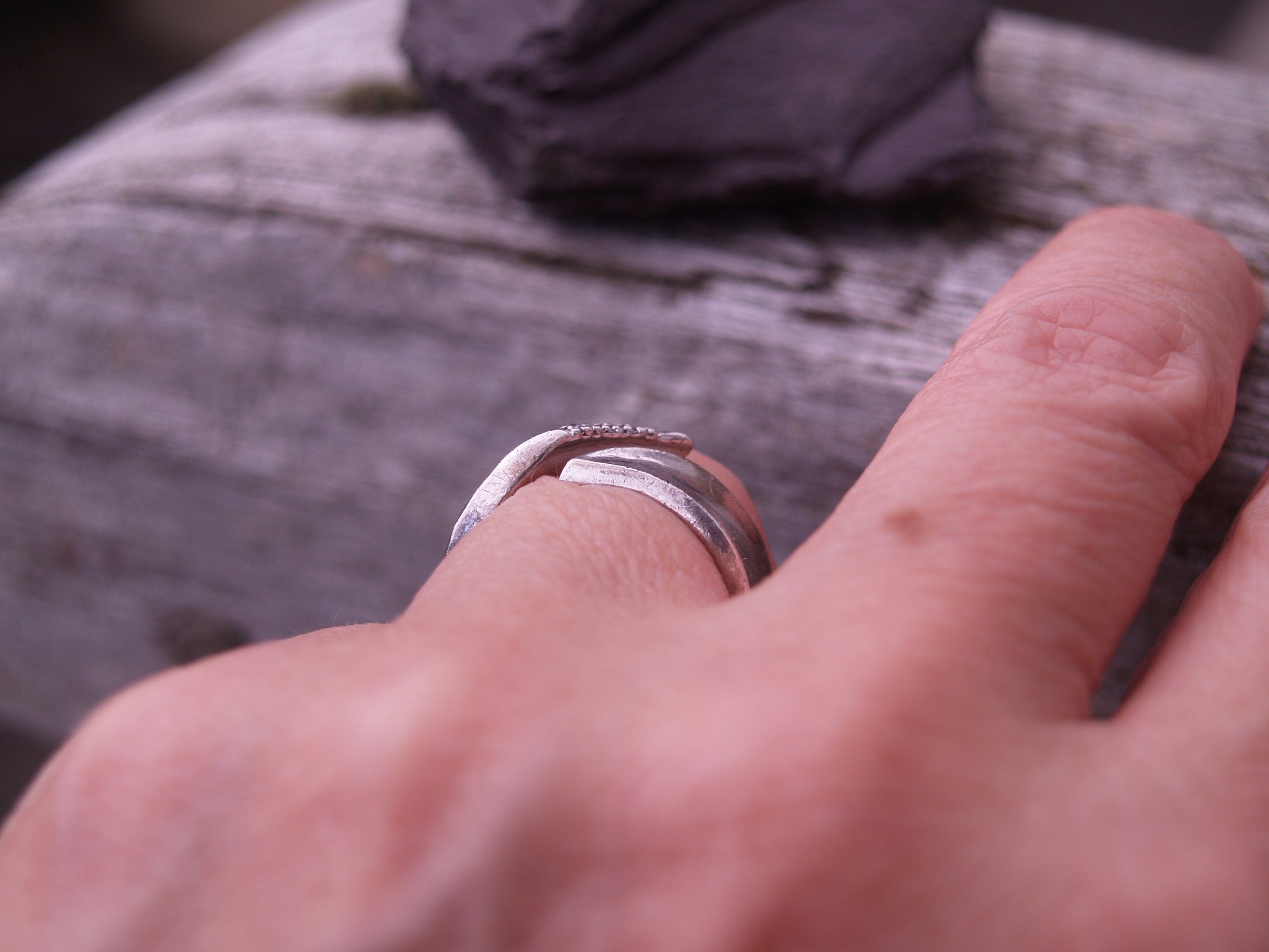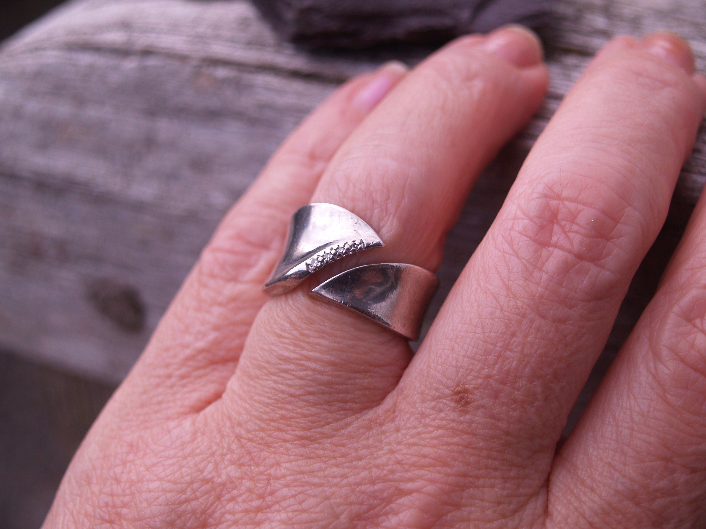 A contemporary design to this heavy sterling silver twist ring set with a row of small diamonds.