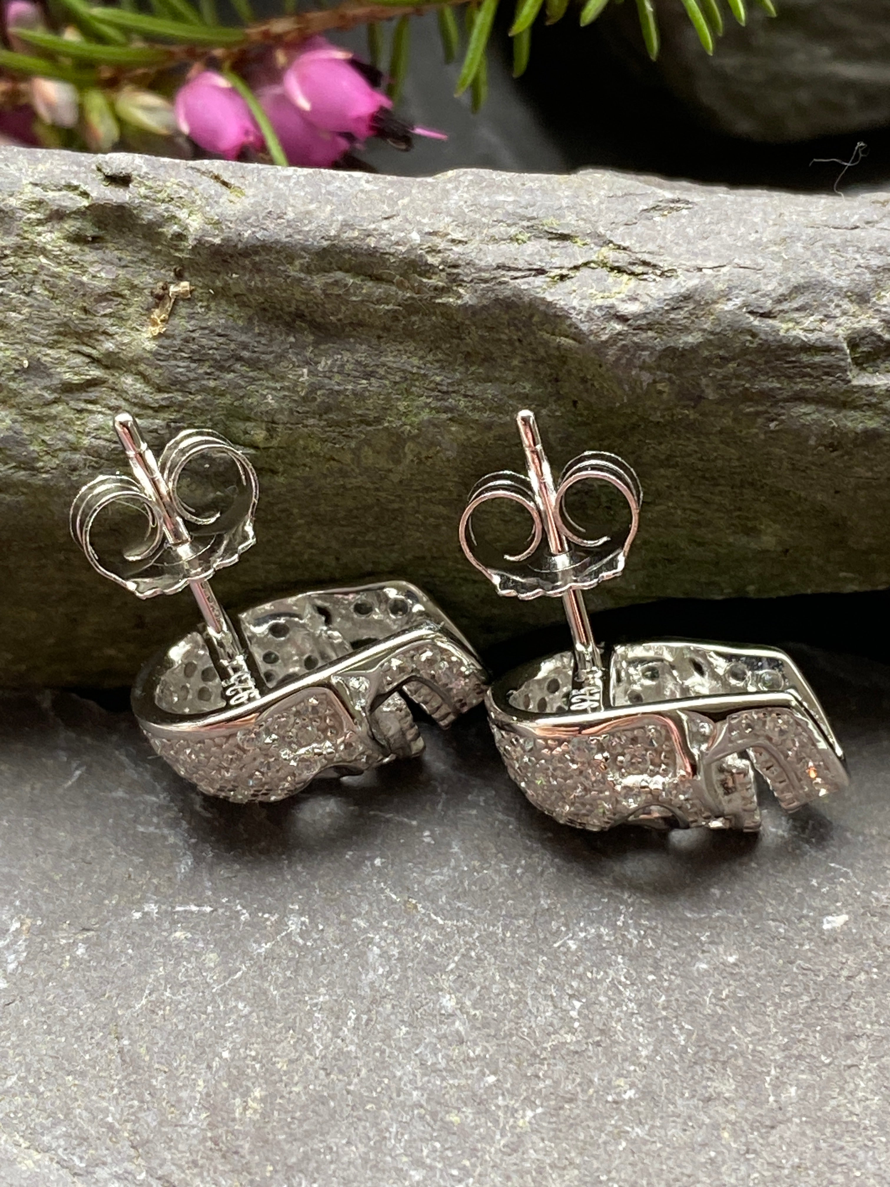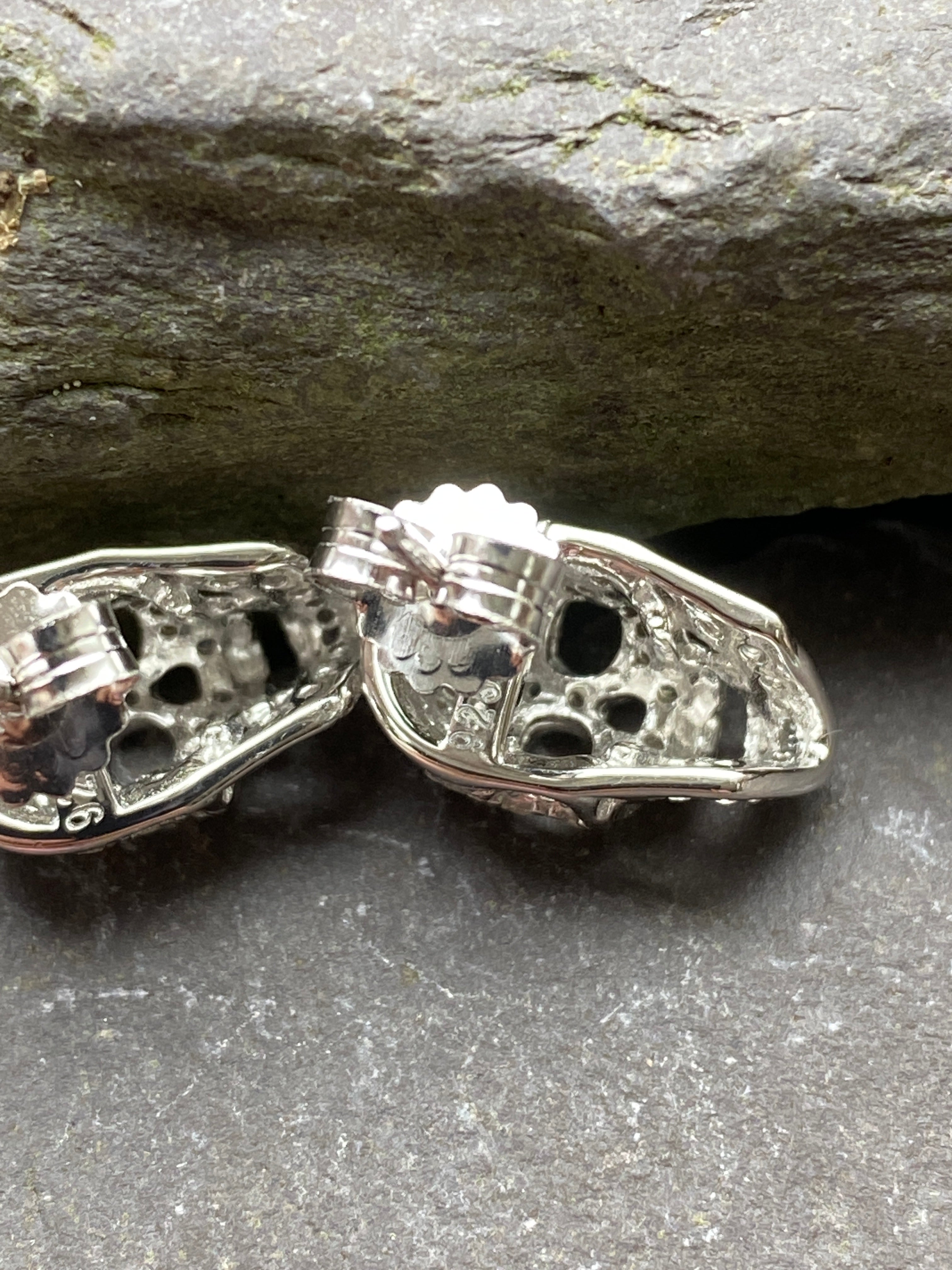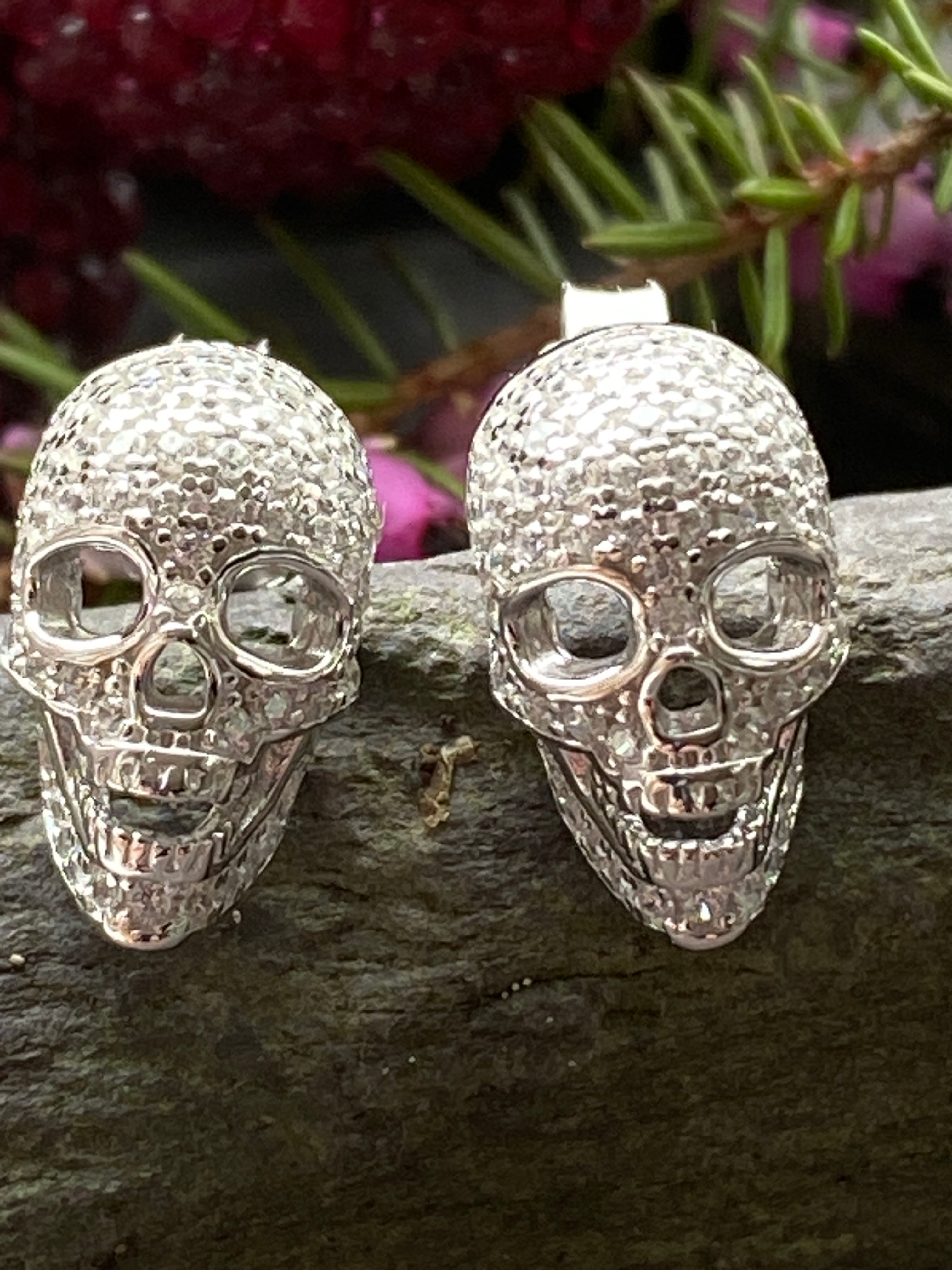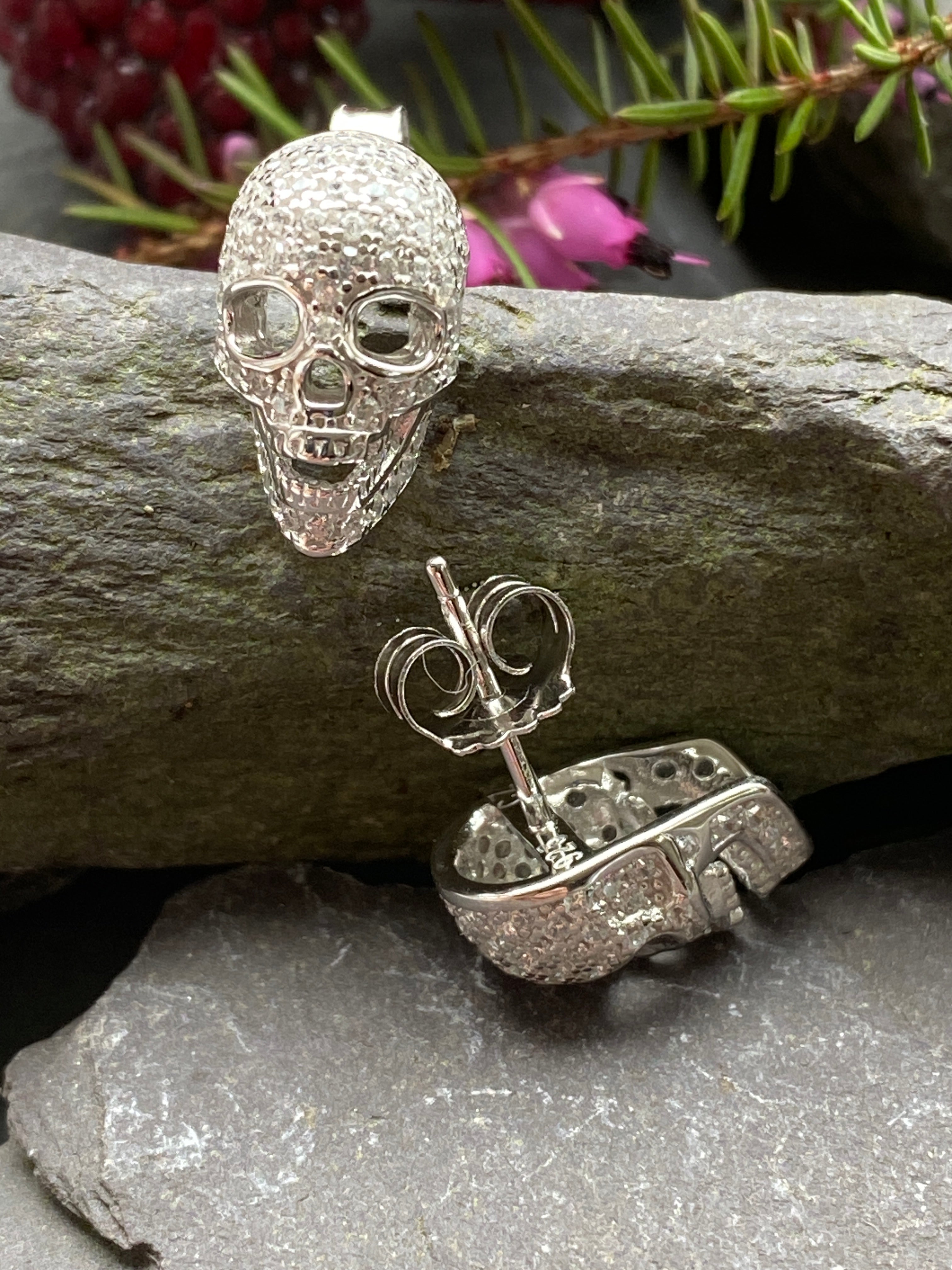 A smart pair of sterling silver stud earrings in the shape of a skull set with Cubic Zirconia