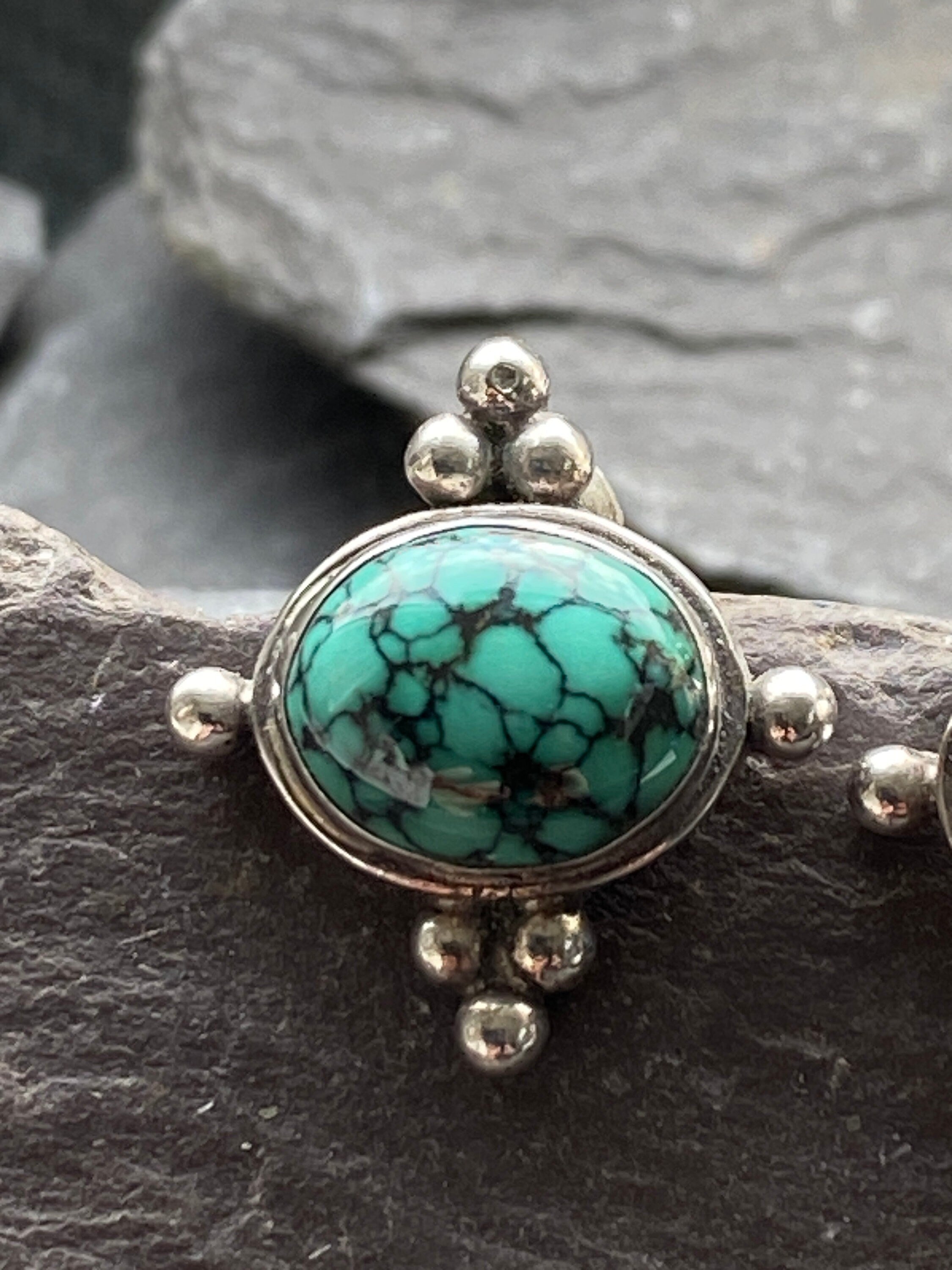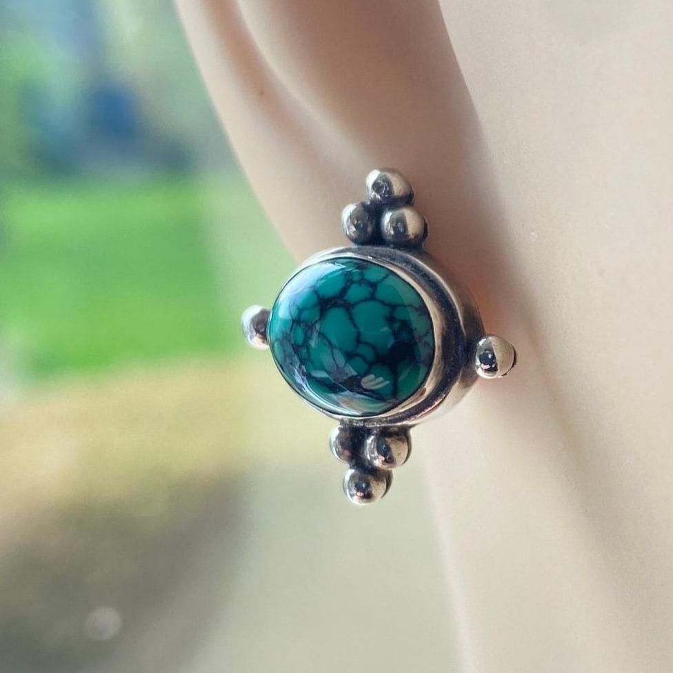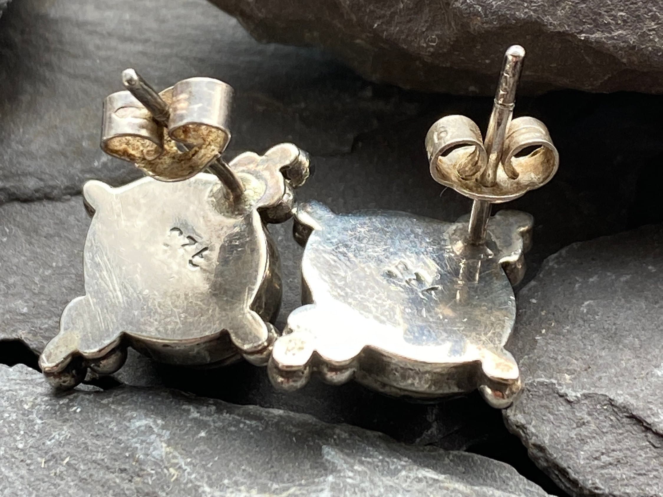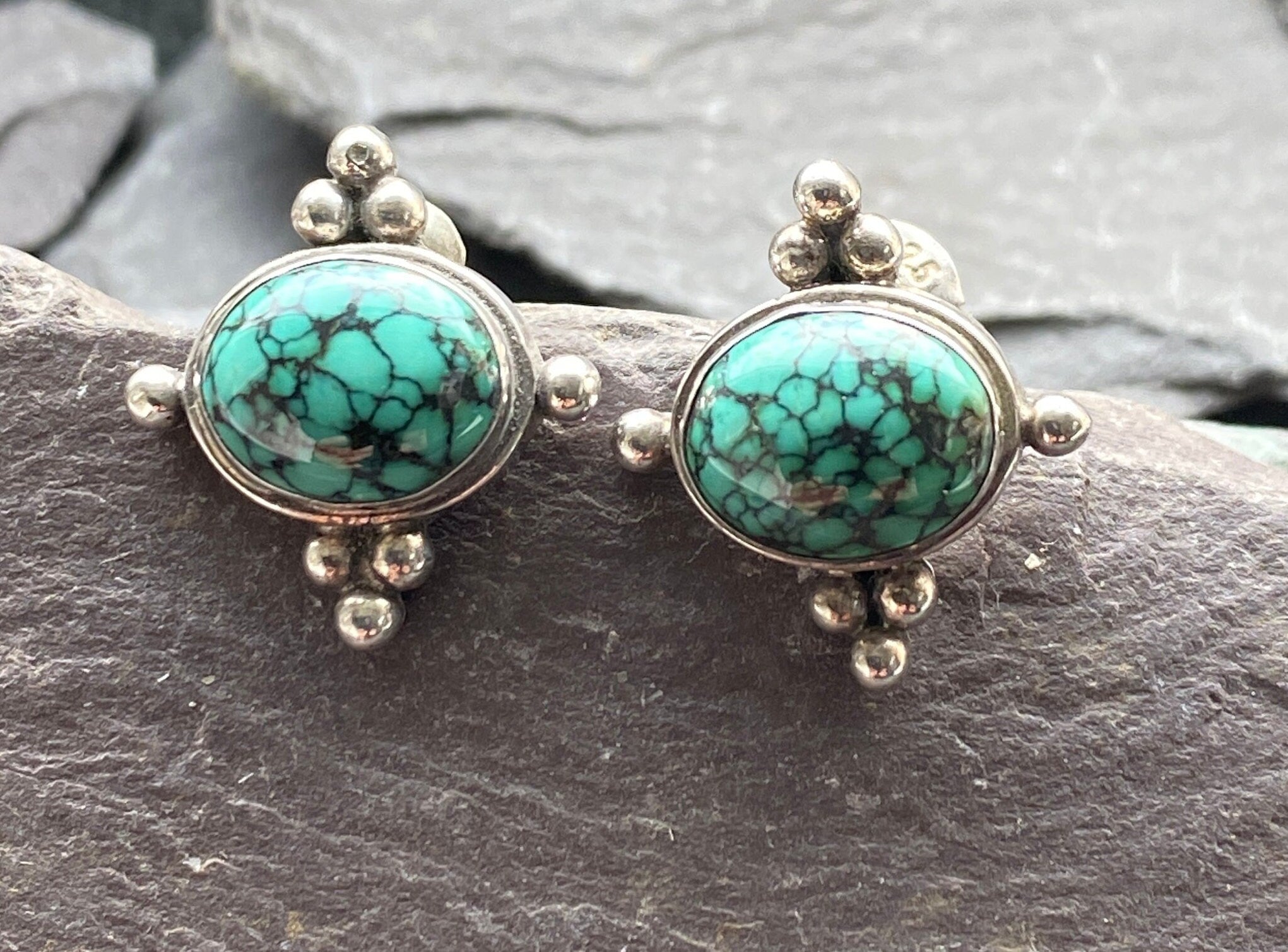A very smart pair of sterling silver stud earrings set with natural Turquoise matrix