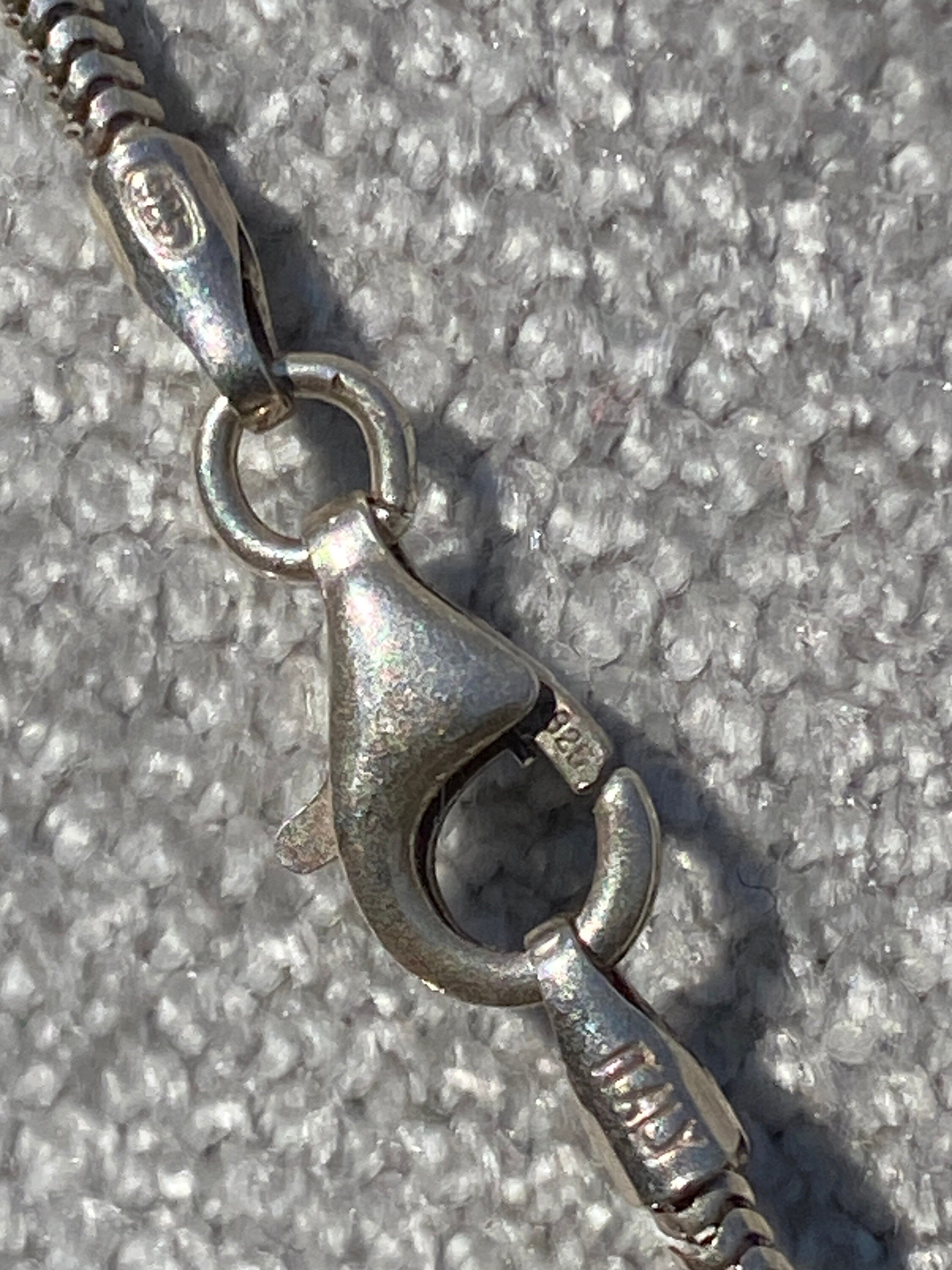 suspended from a 18 inch snake link chain with parrot clasp fitting.
