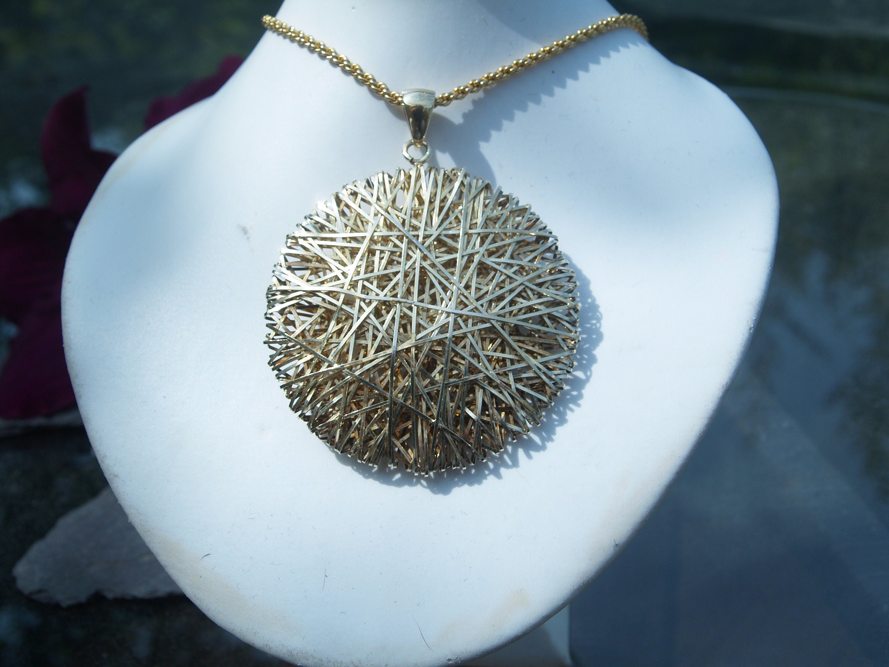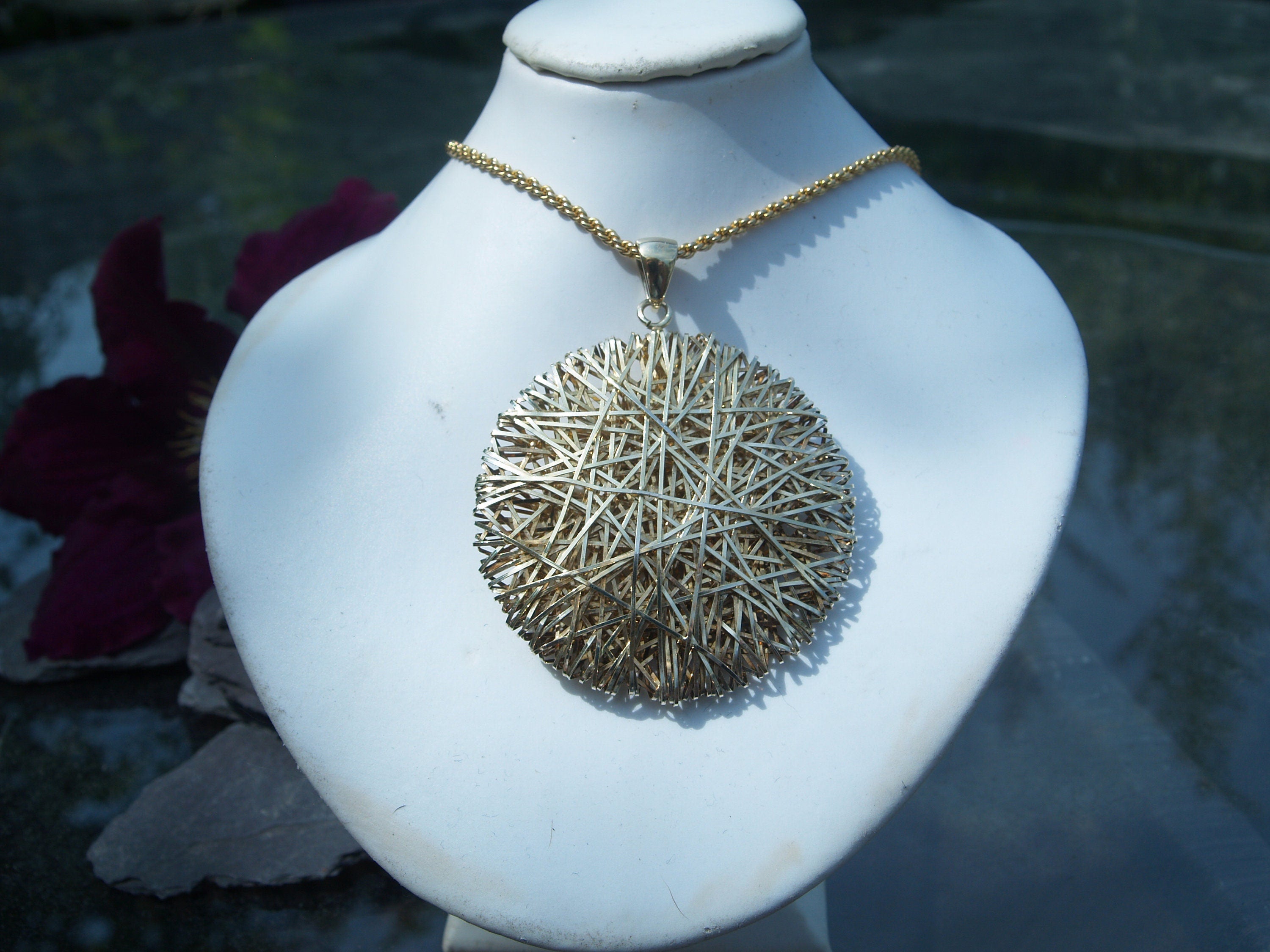 A stunning Vermeil woven pendant with 22ct Plated Chain.