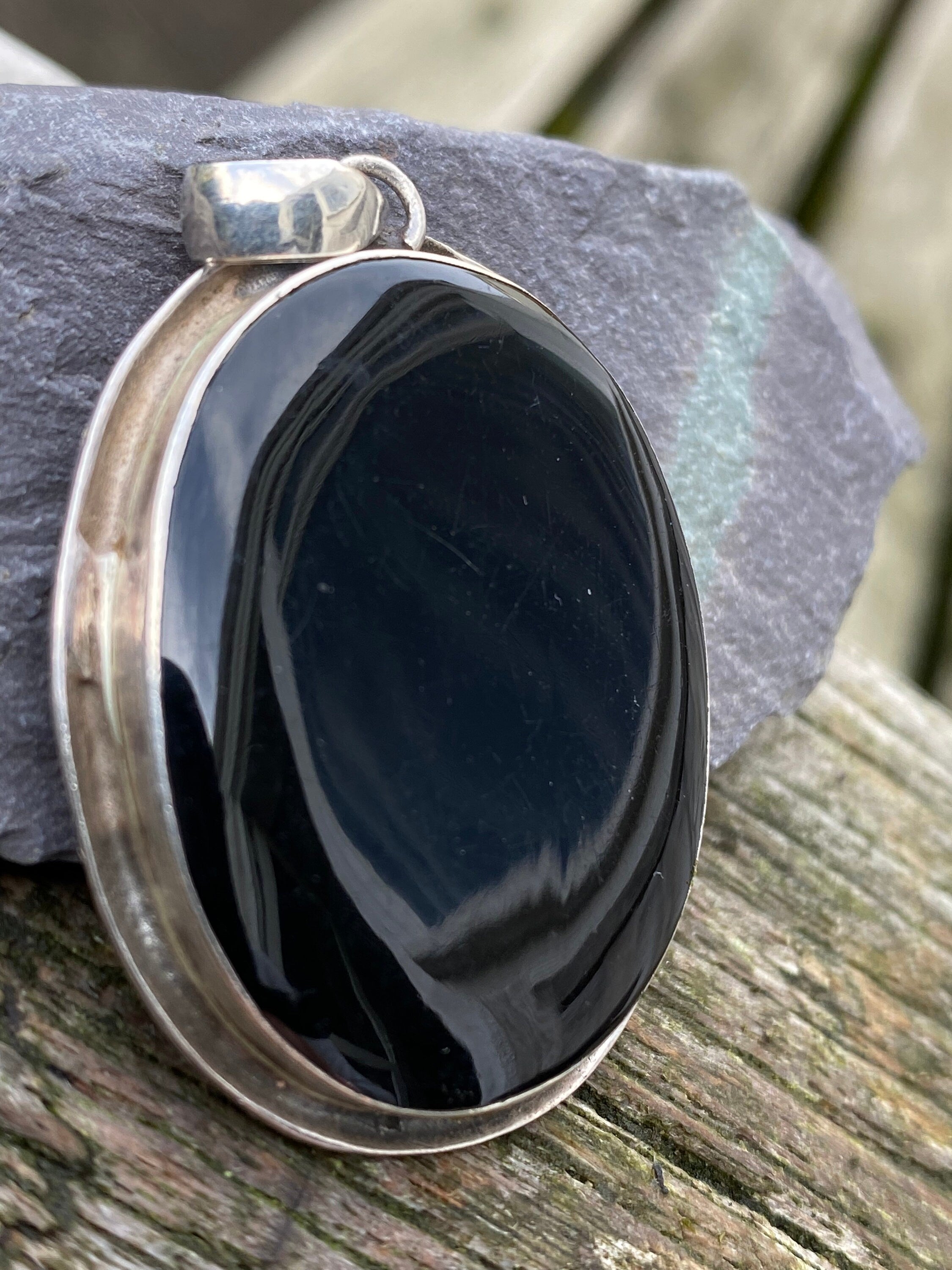 A vintage reversible sterling silver pendant set with a natural polished abalone shell/polished black agate