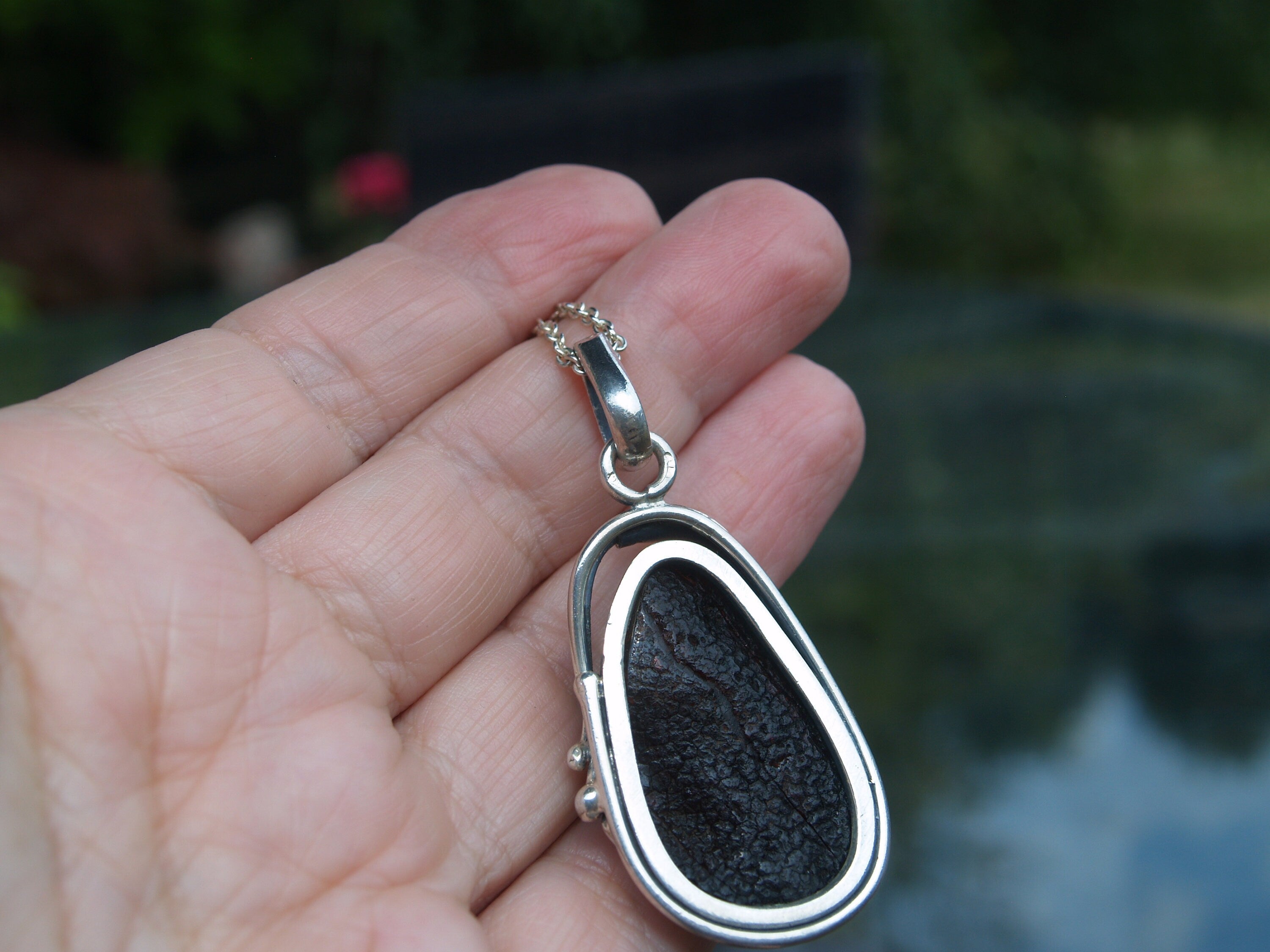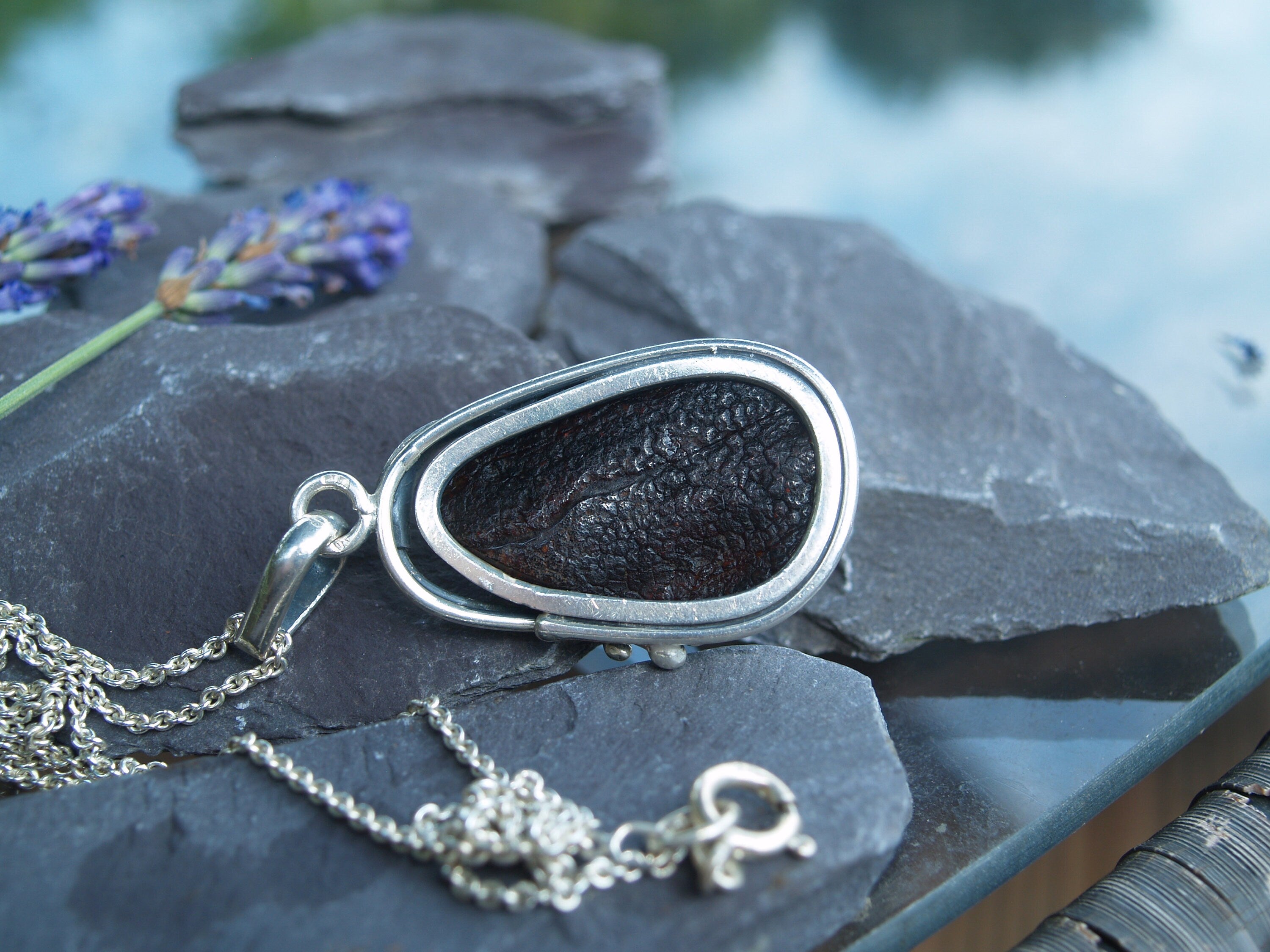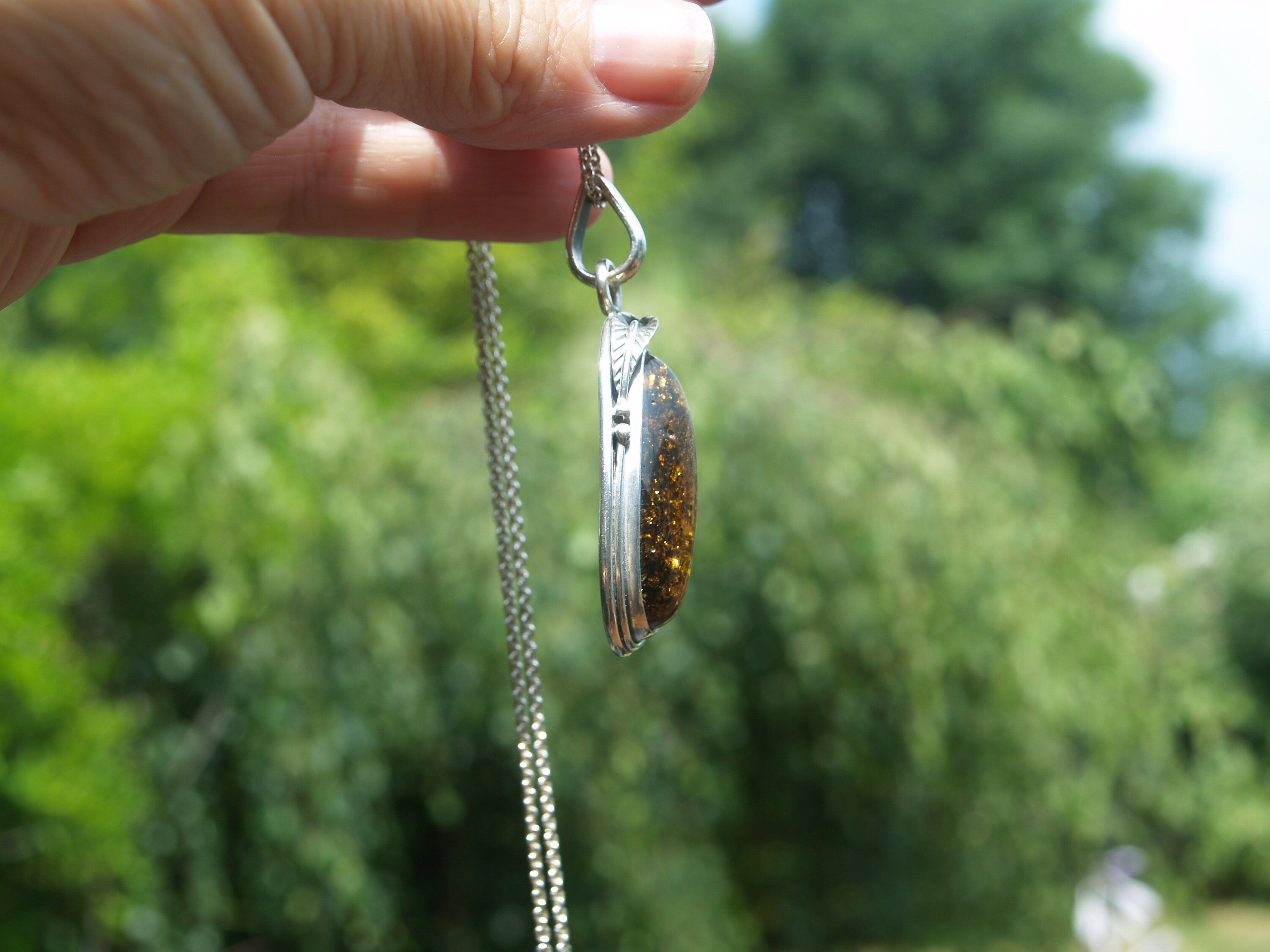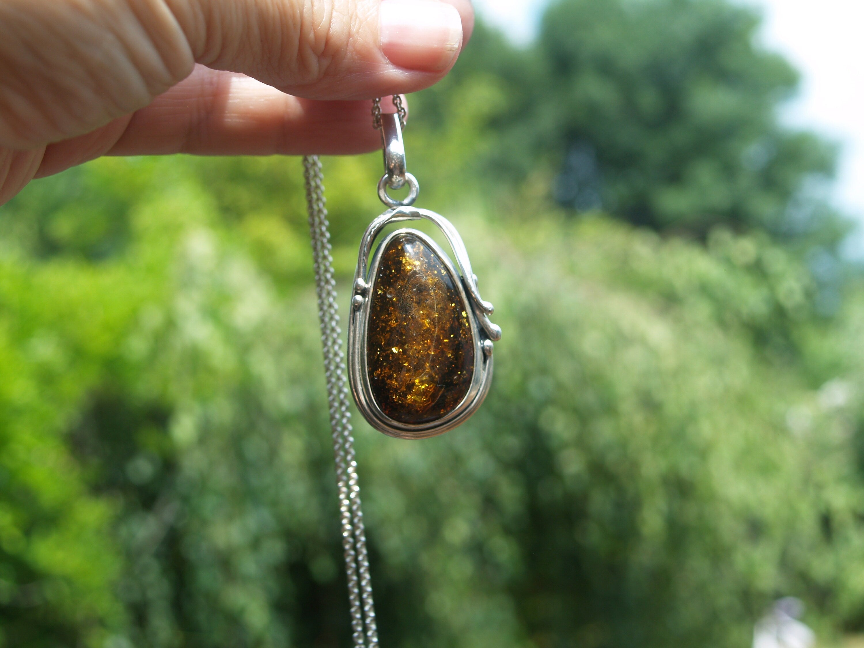 A stunning vintage sterling silver pendant set with a large polished natural Amber.