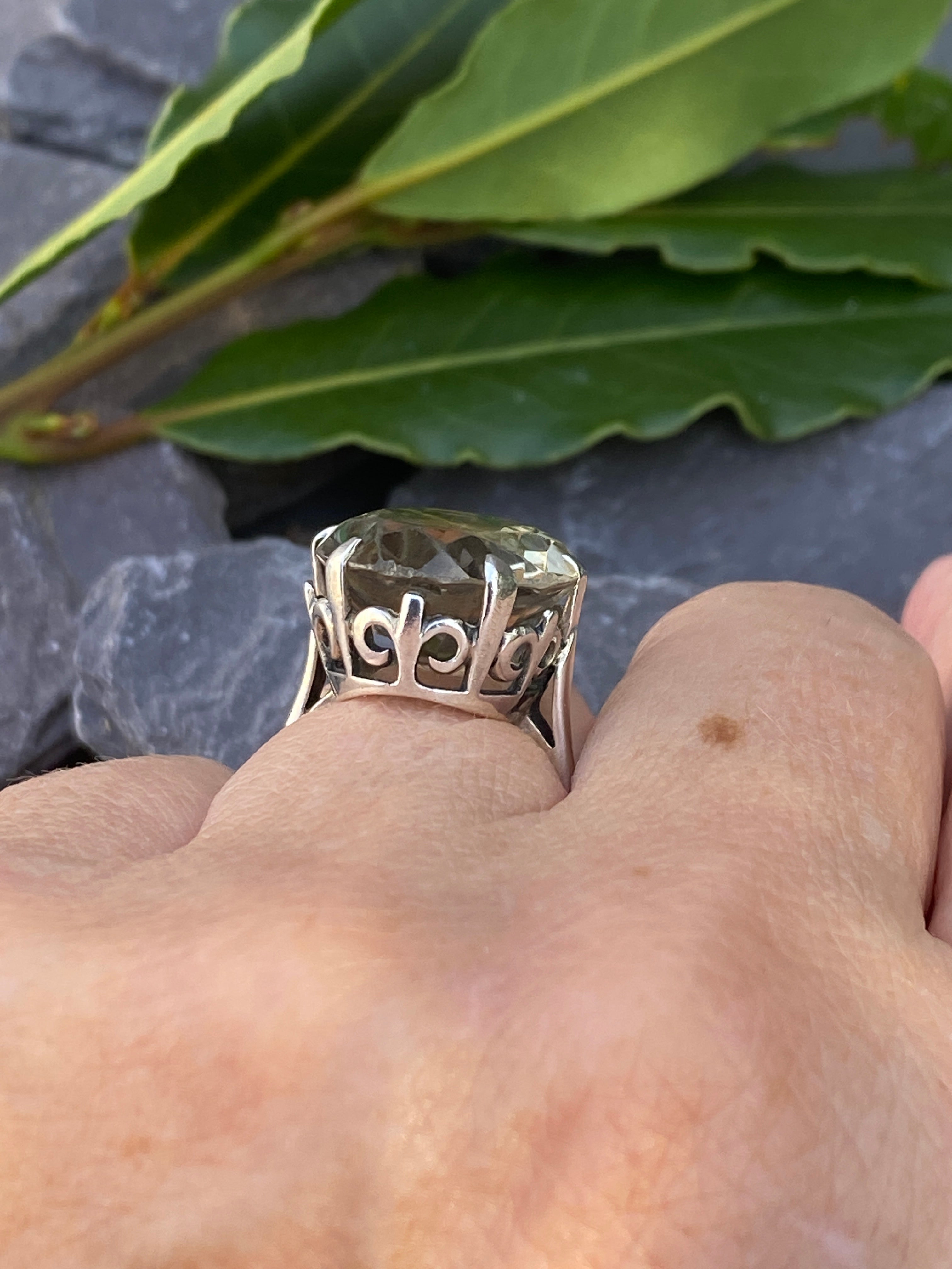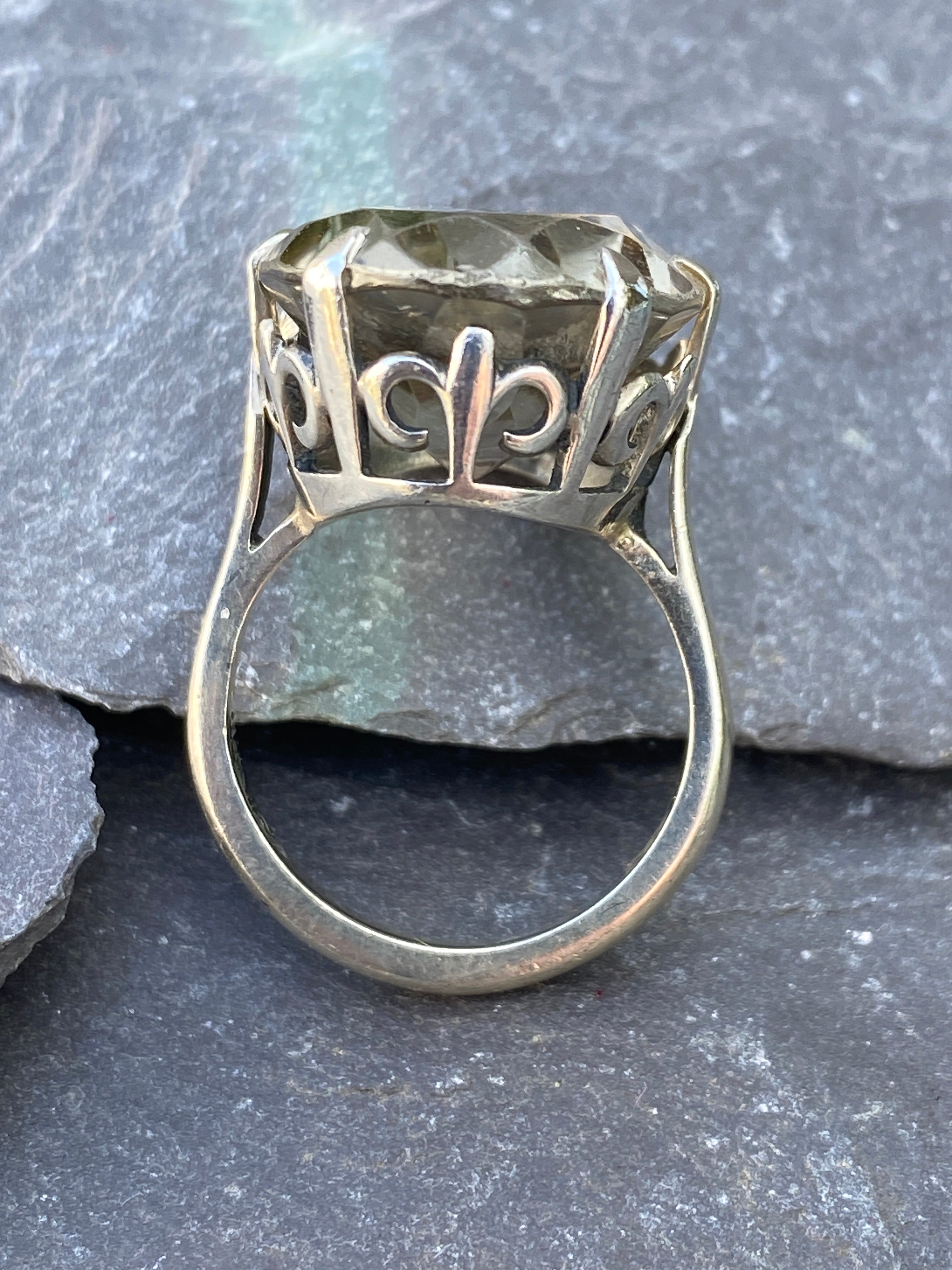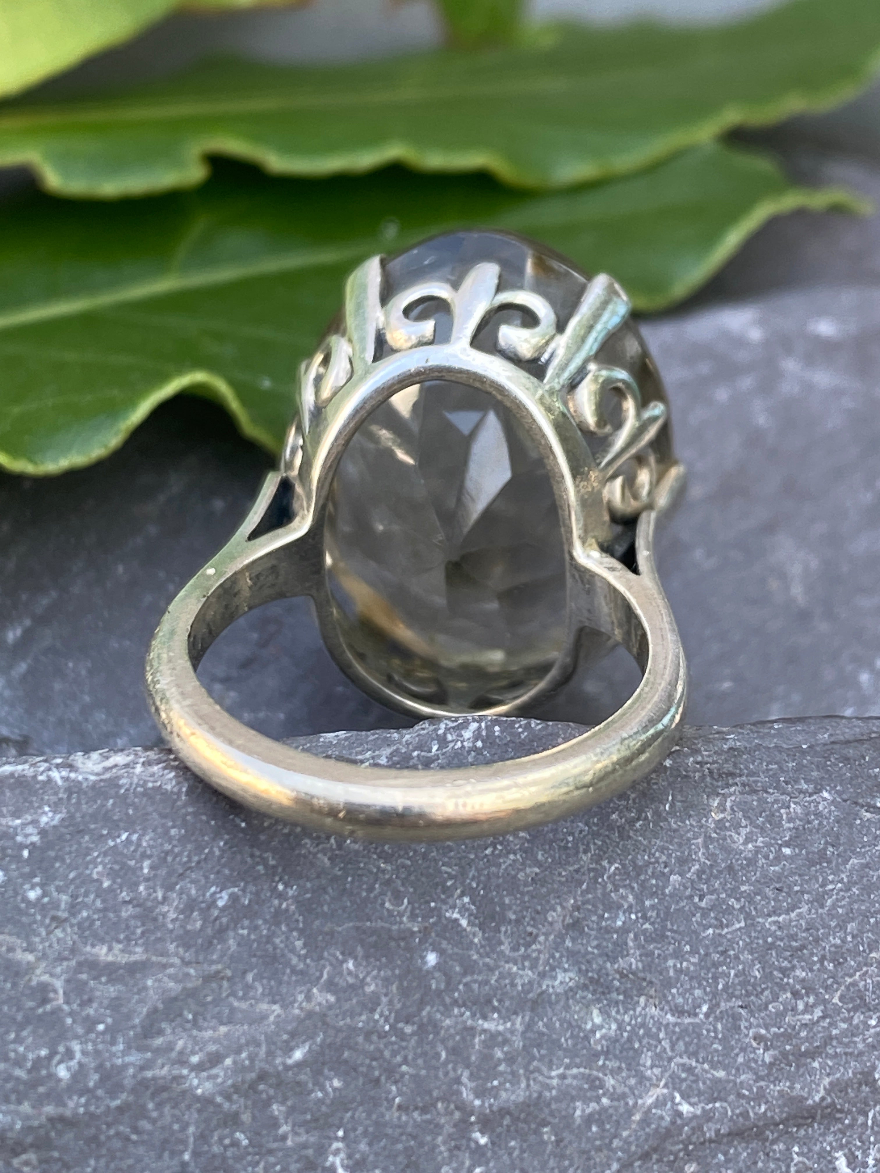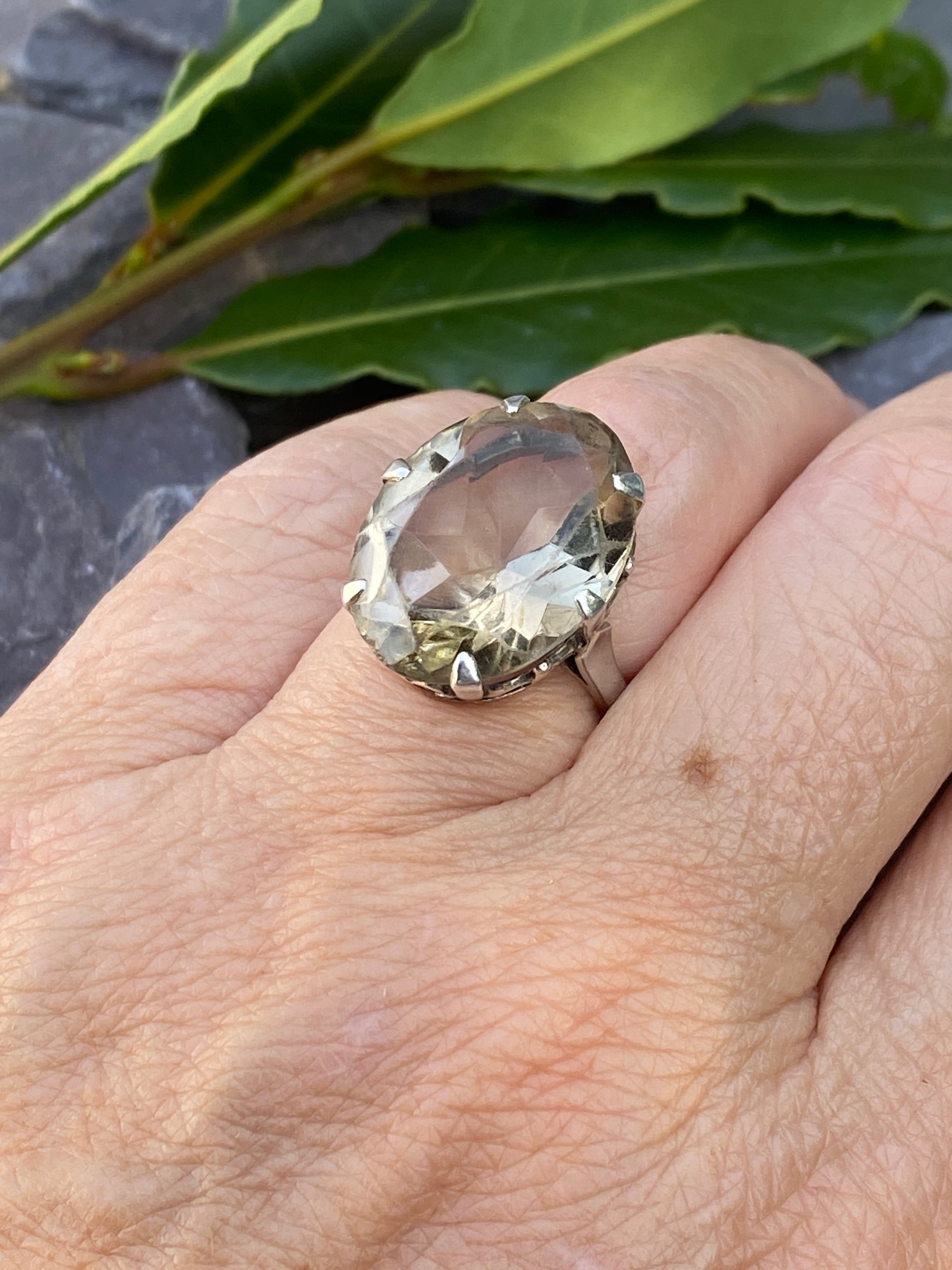 A beautiful sterling silver ring set with a large natural faceted Quartz stone