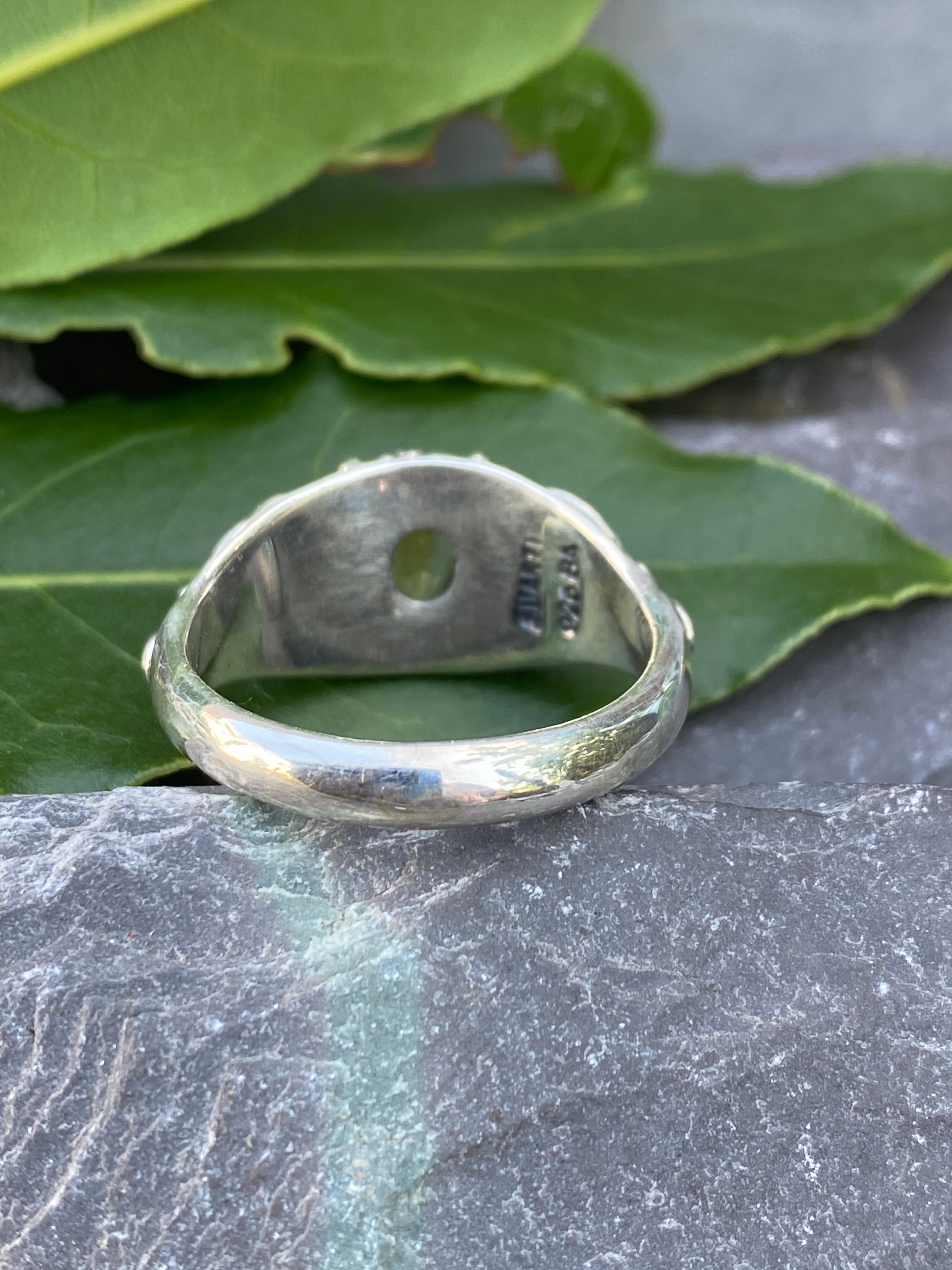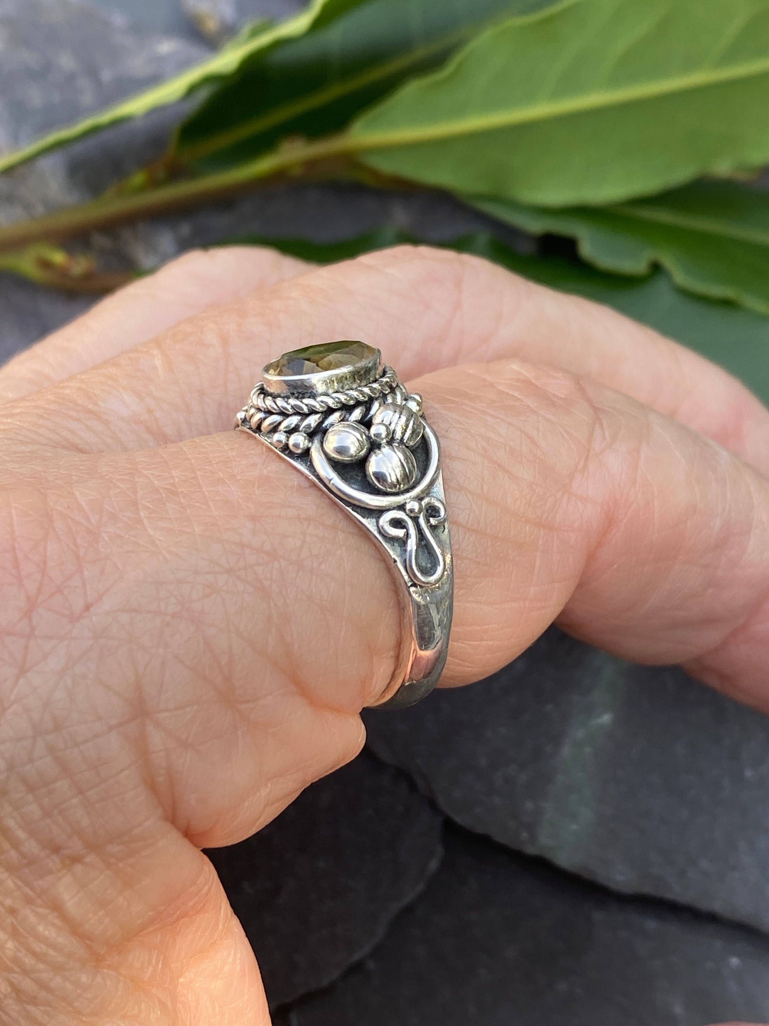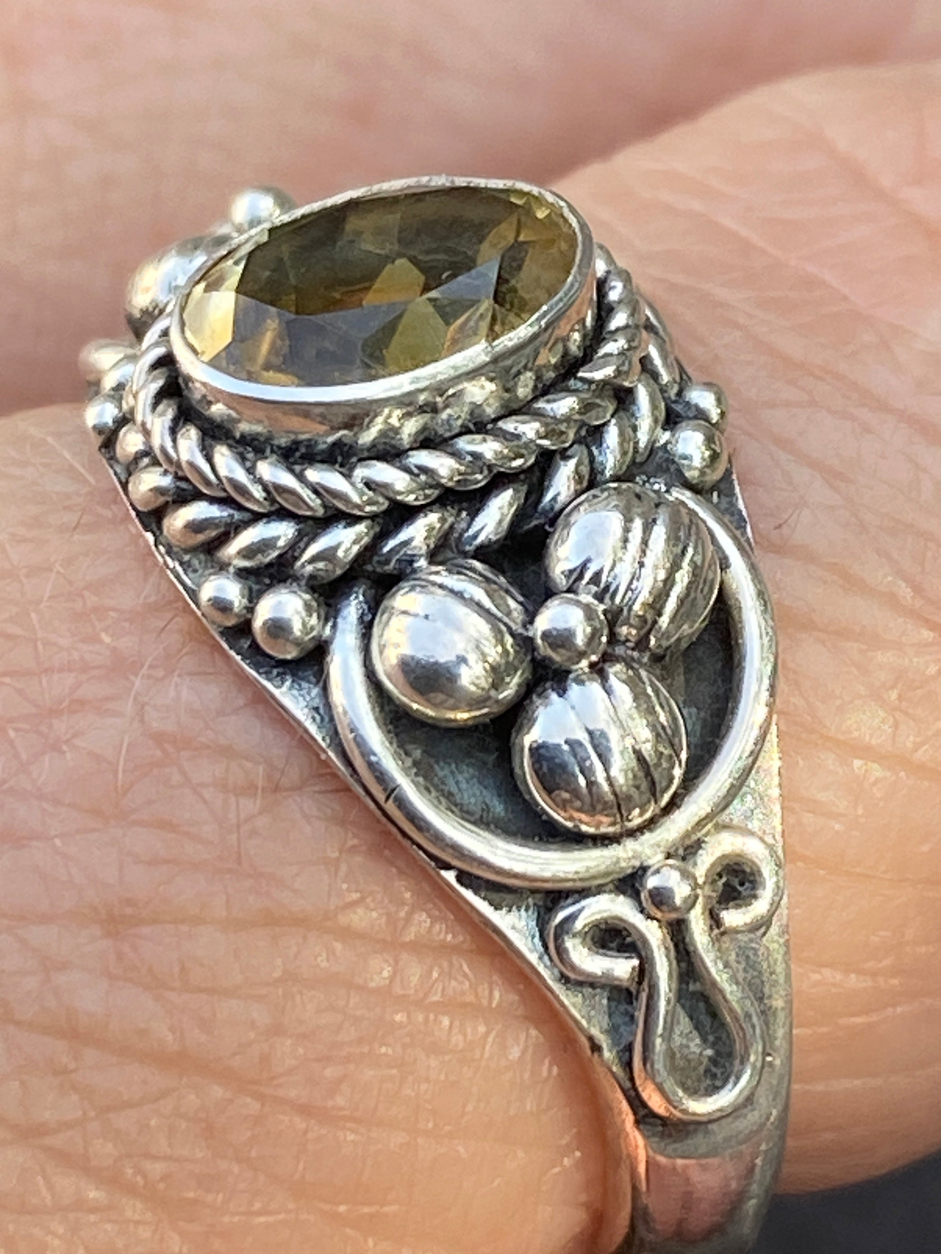 A beautiful sterling silver ring set with a yellow natural Citrine in the Arts & Crafts style