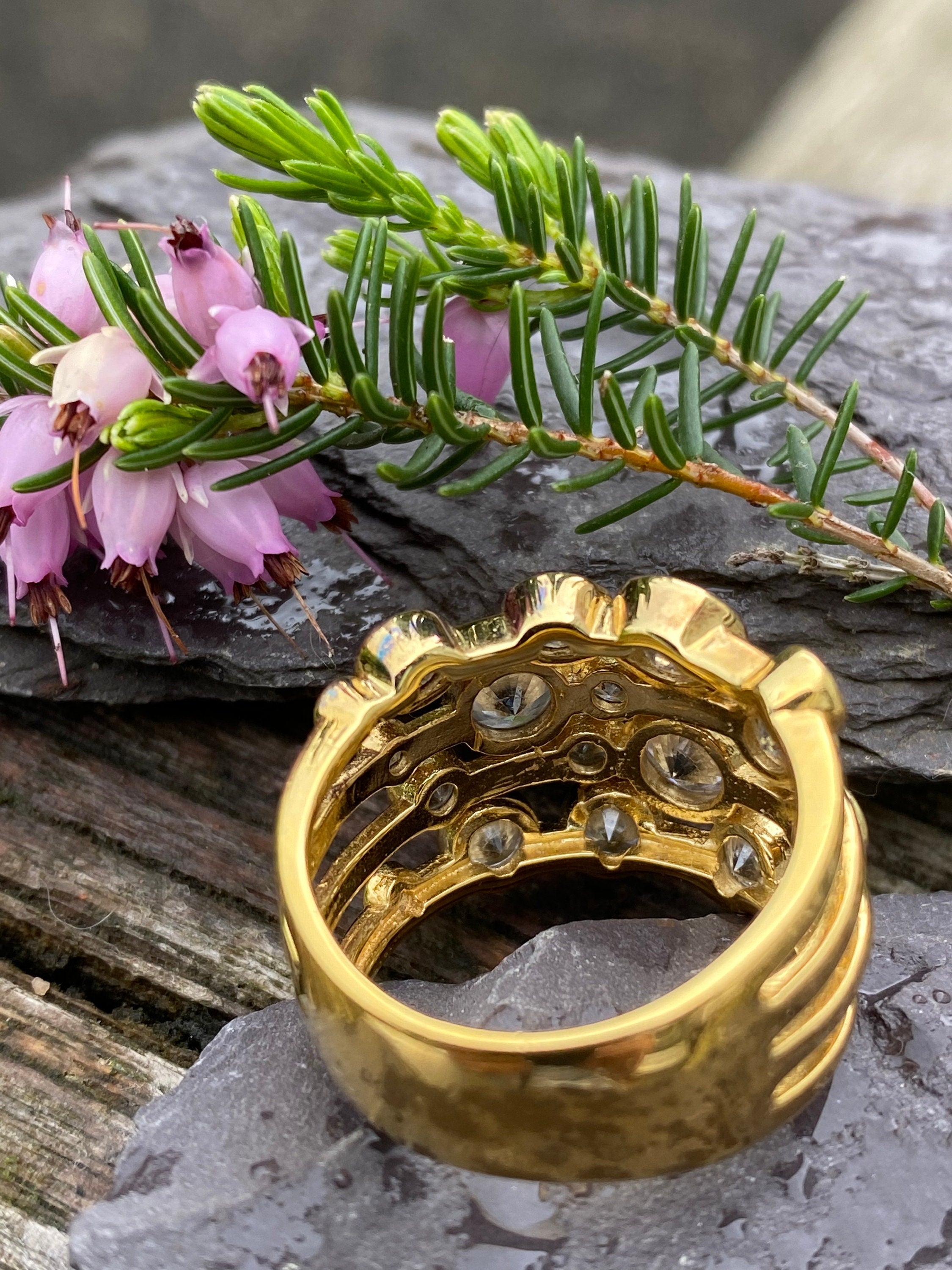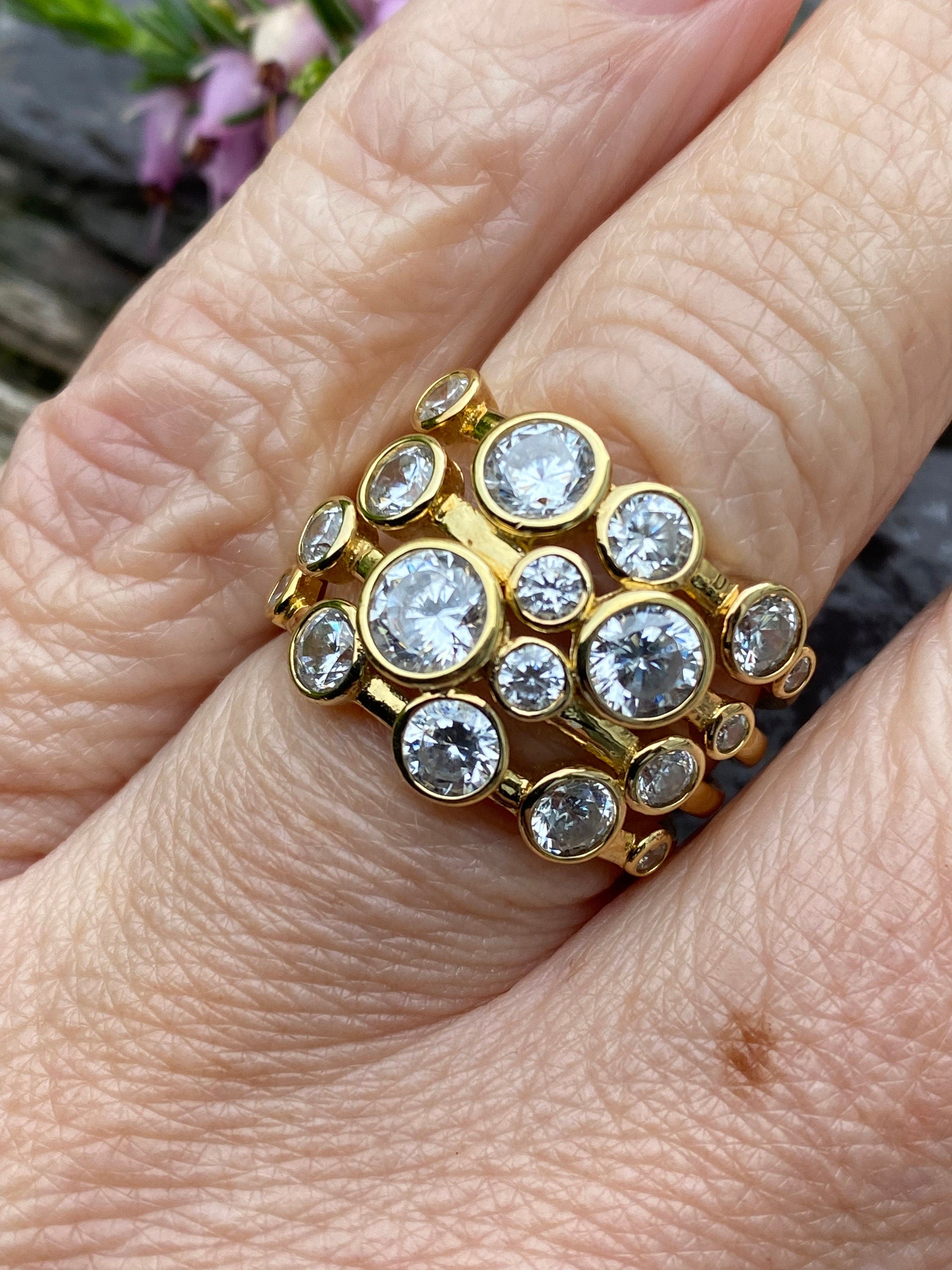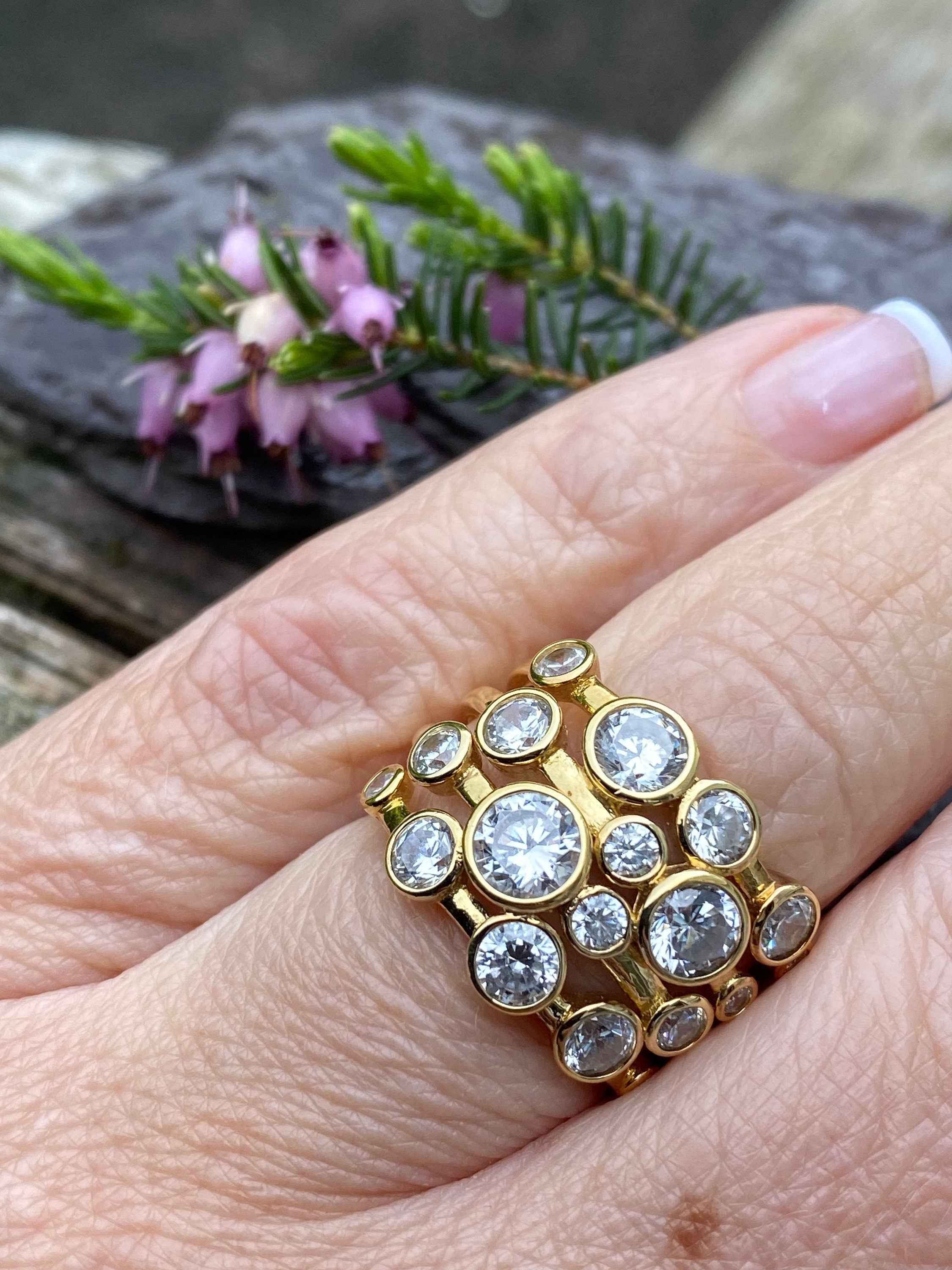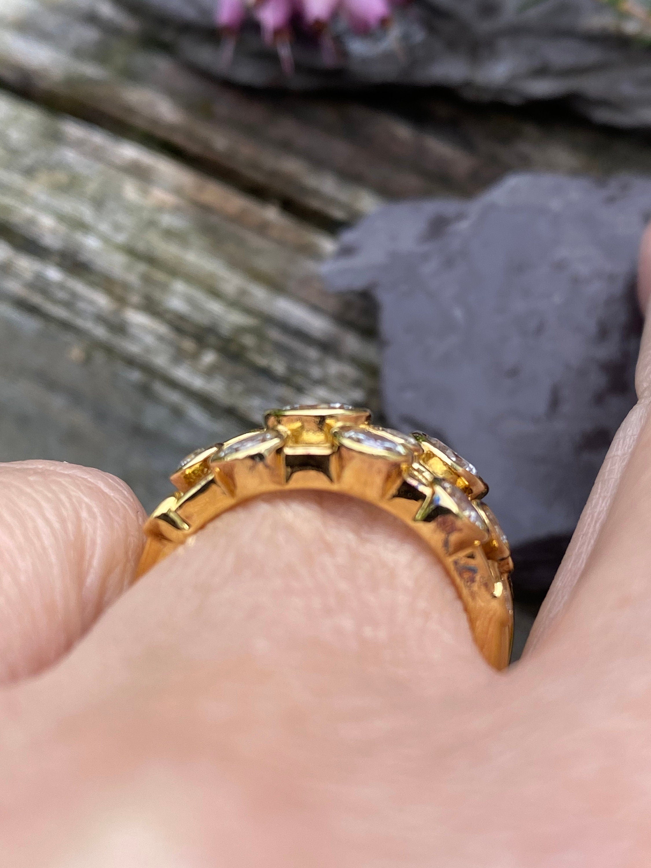 This ring is our favourite!! Well made and heavy , set with Cubic Zirconia in heavily gilded Sterling Silver