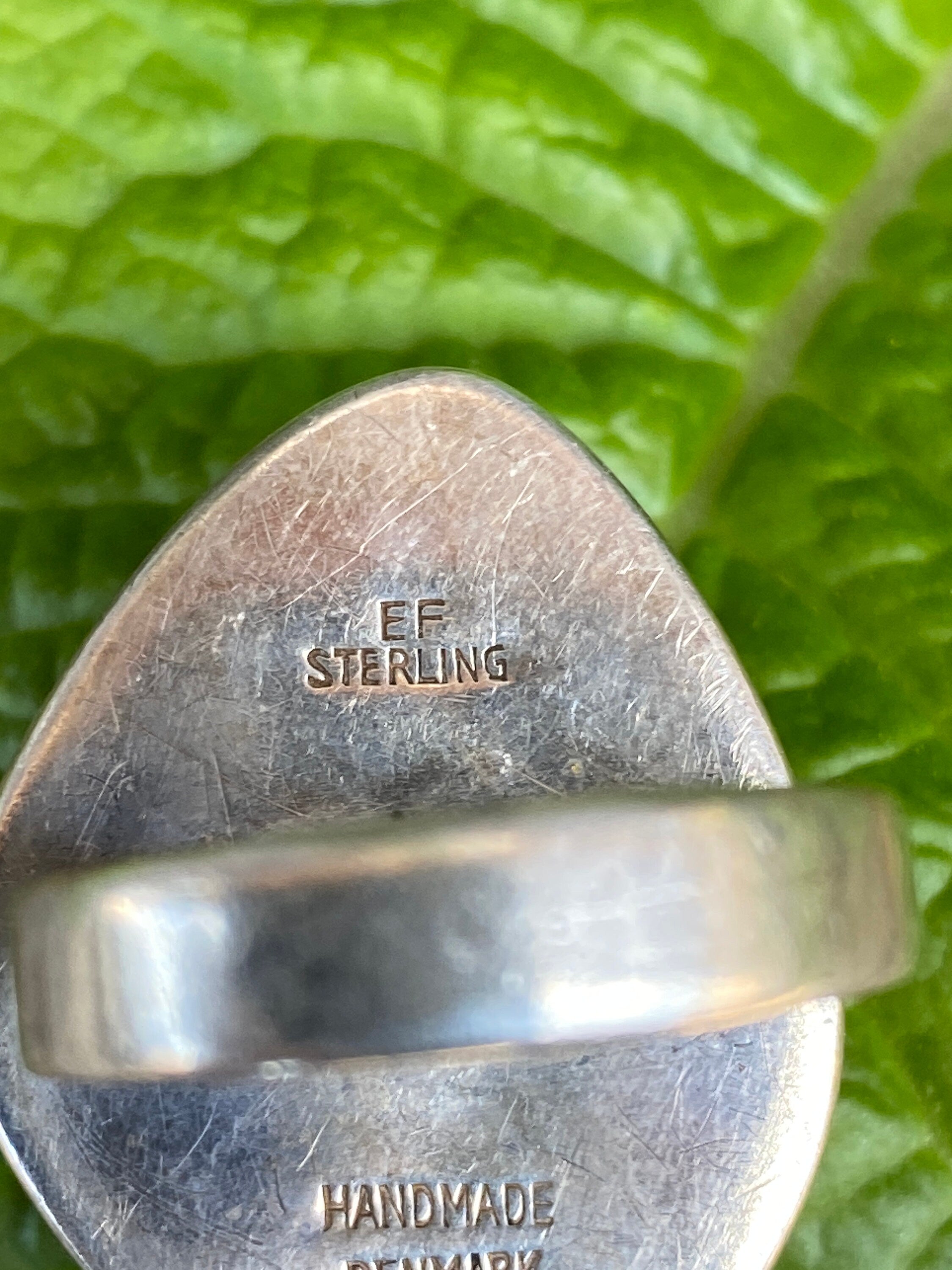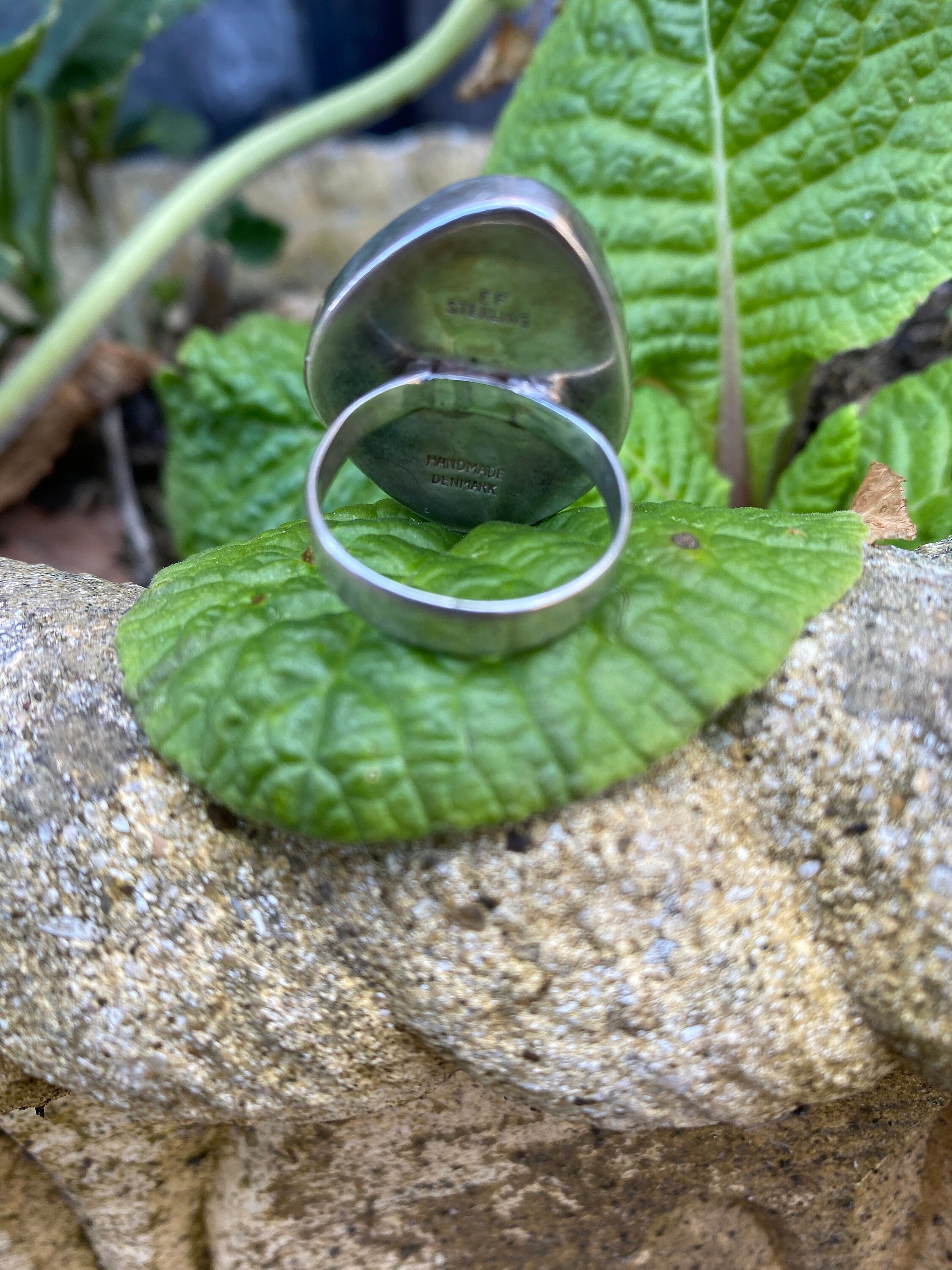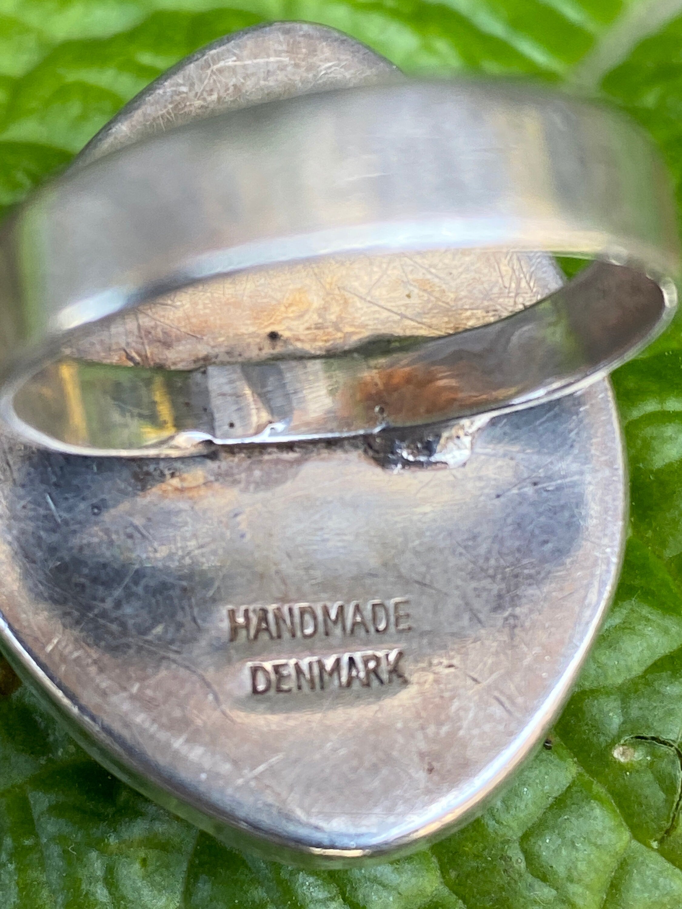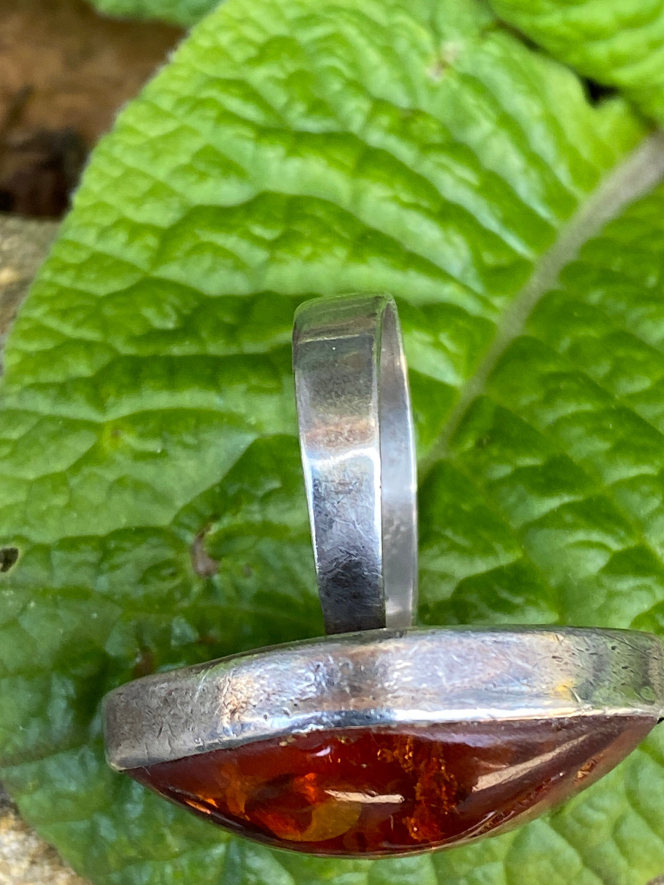 A stunning sterling silver ring set with a large polished natural Amber