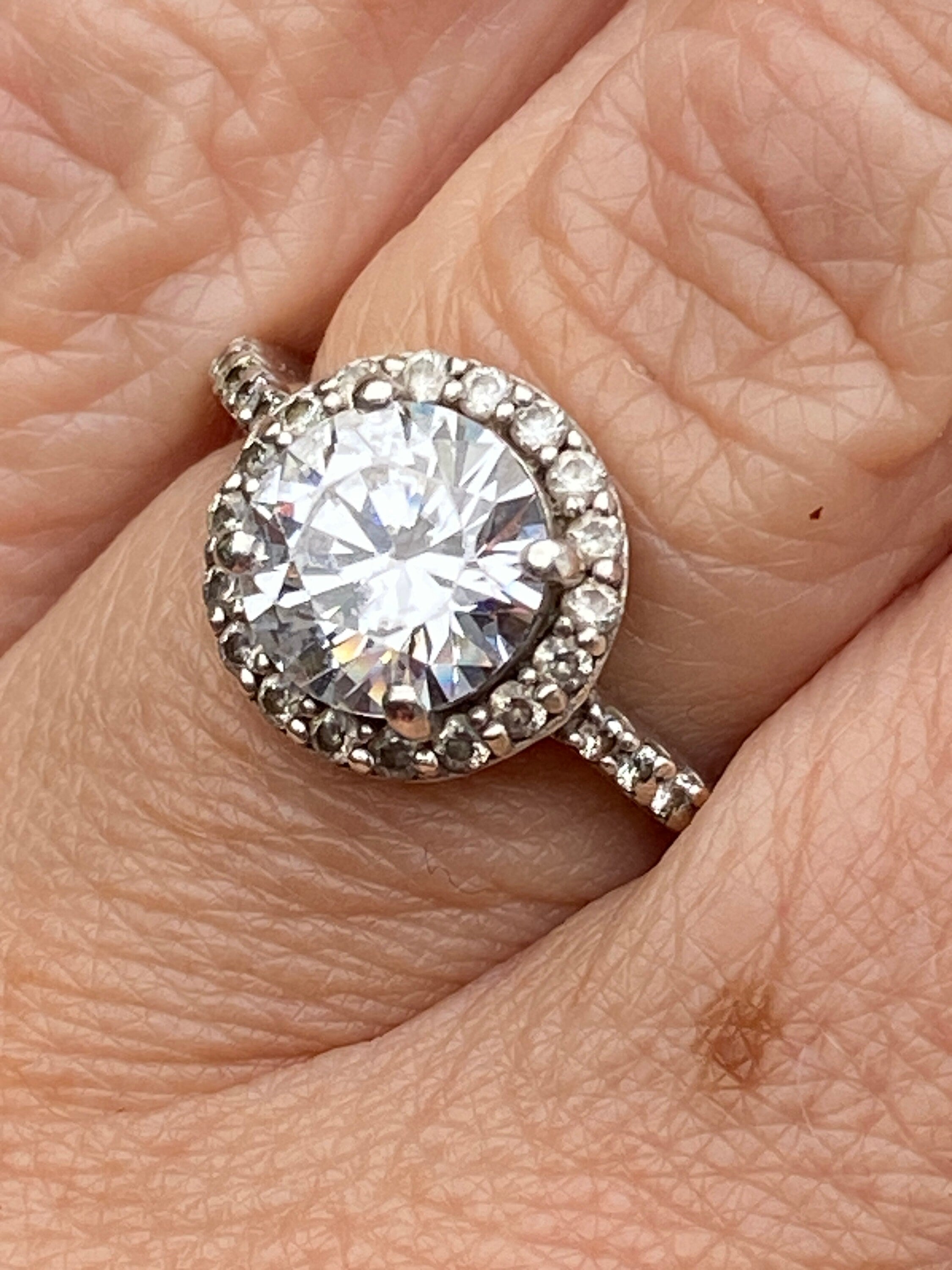 A stunning sterling silver ring set with sparkling white cubic Zirconia in a halo design.
