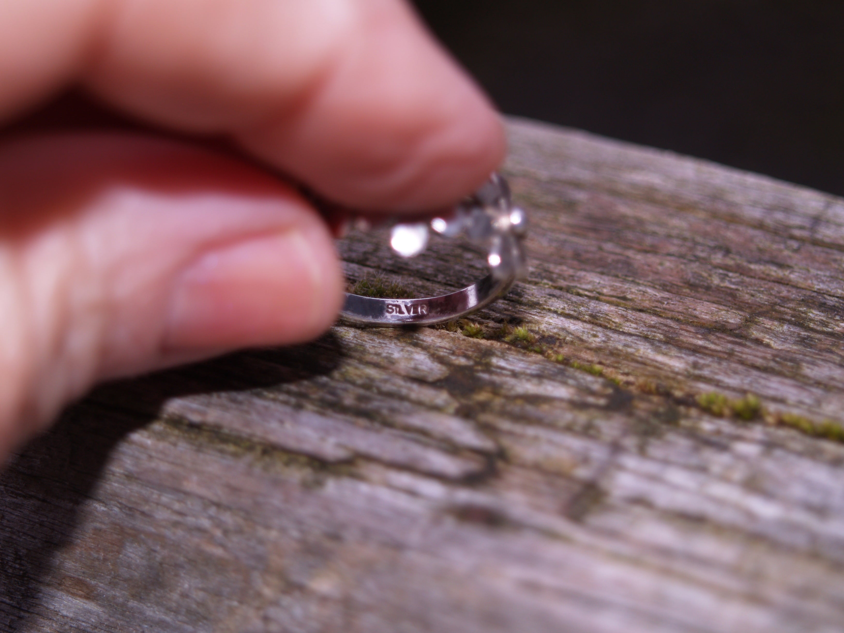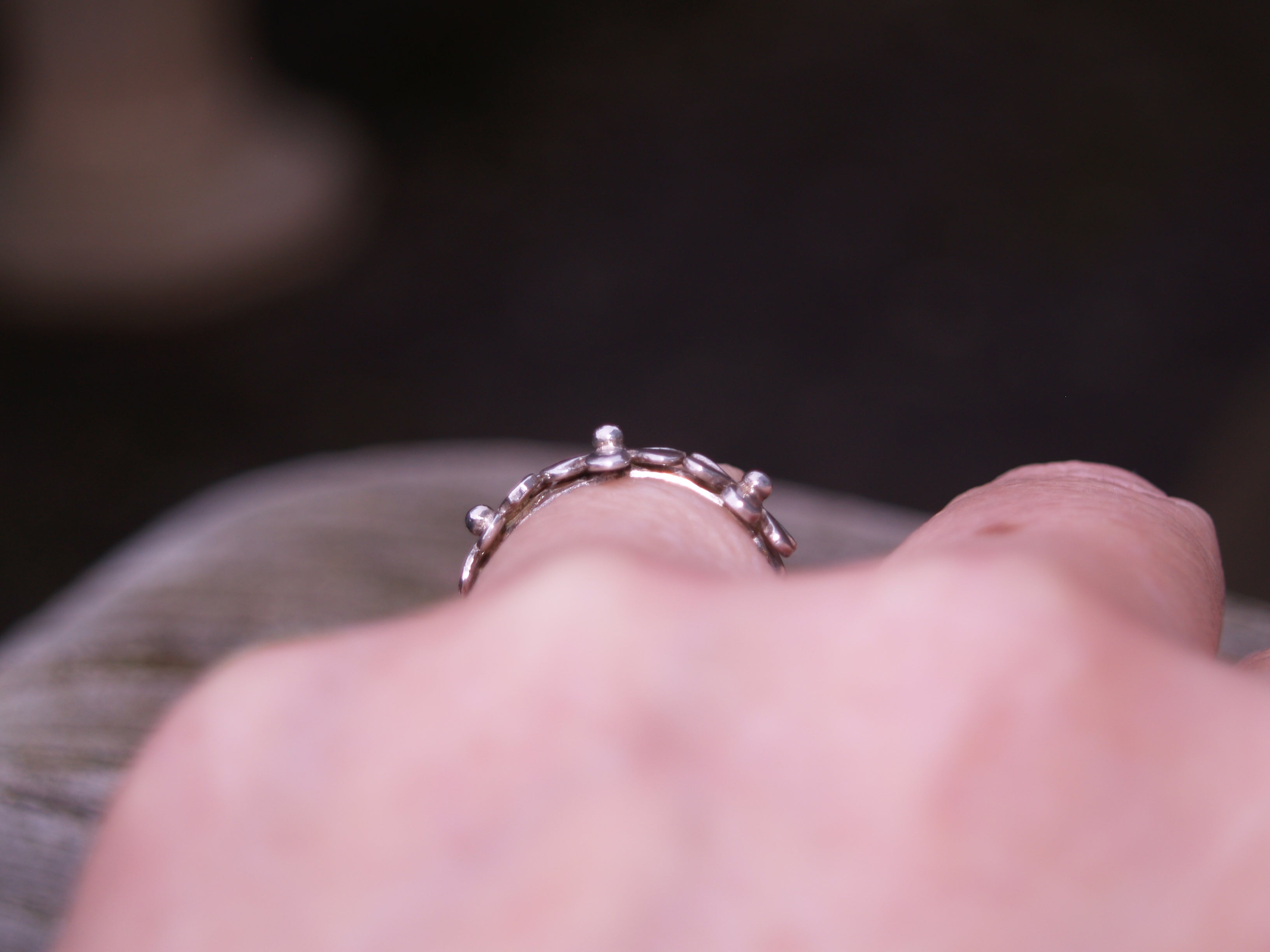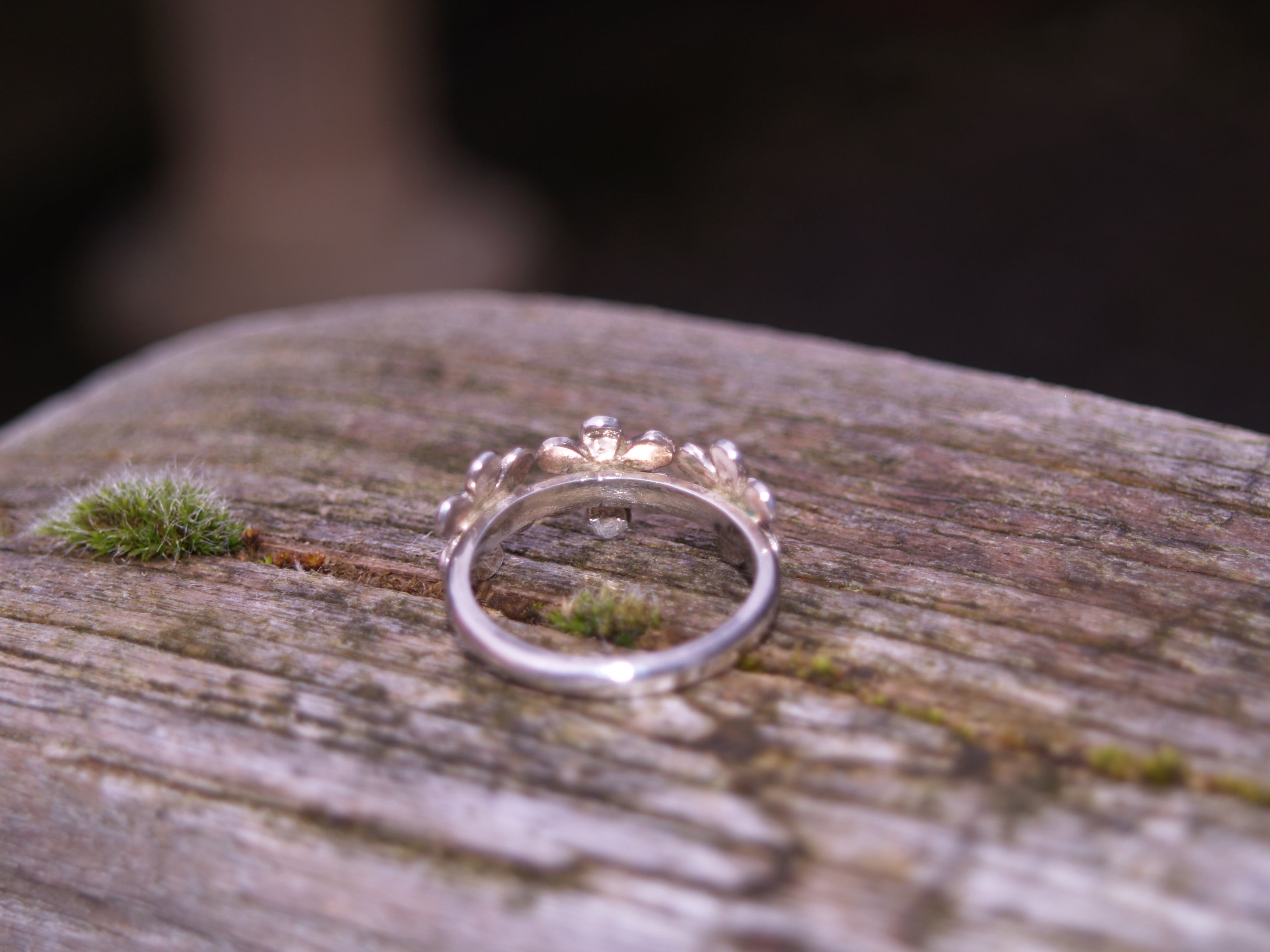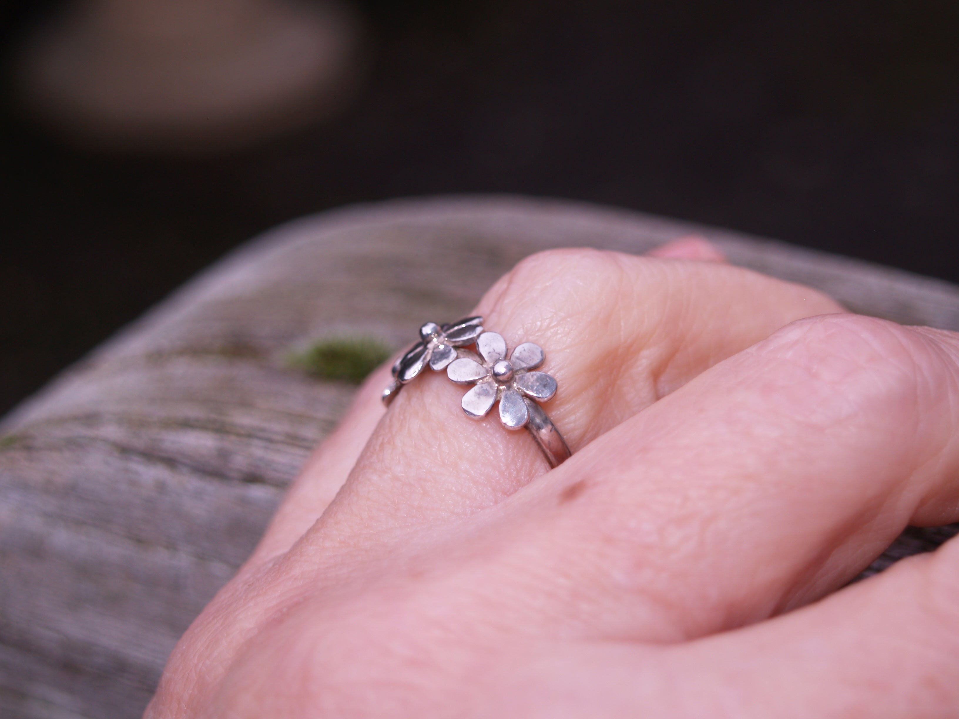 A super cute sterling silver ring designed as a row of three Daisy's.