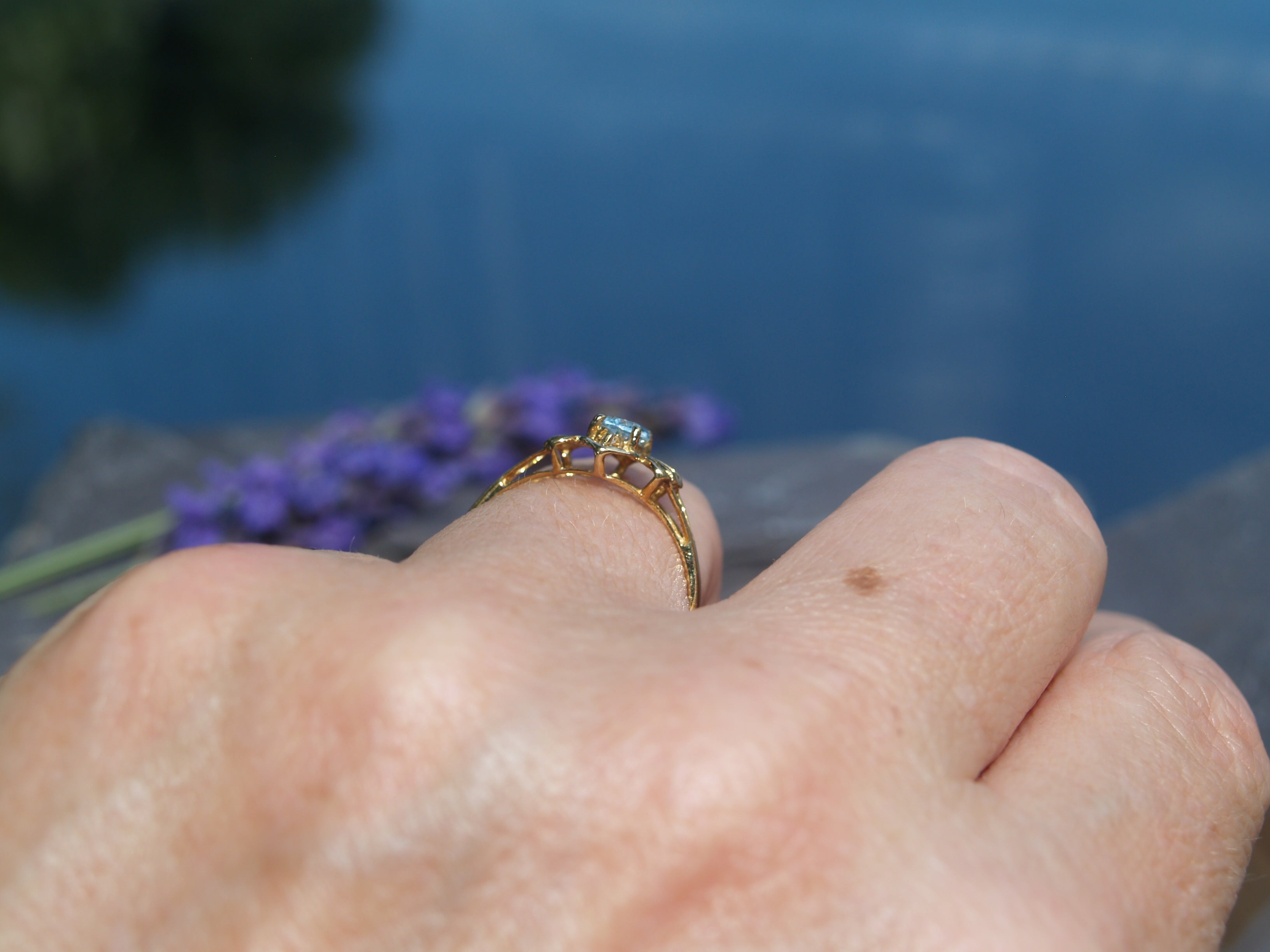 The Diamonds are very small and just add a touch of sparkle to this lovely stone.
