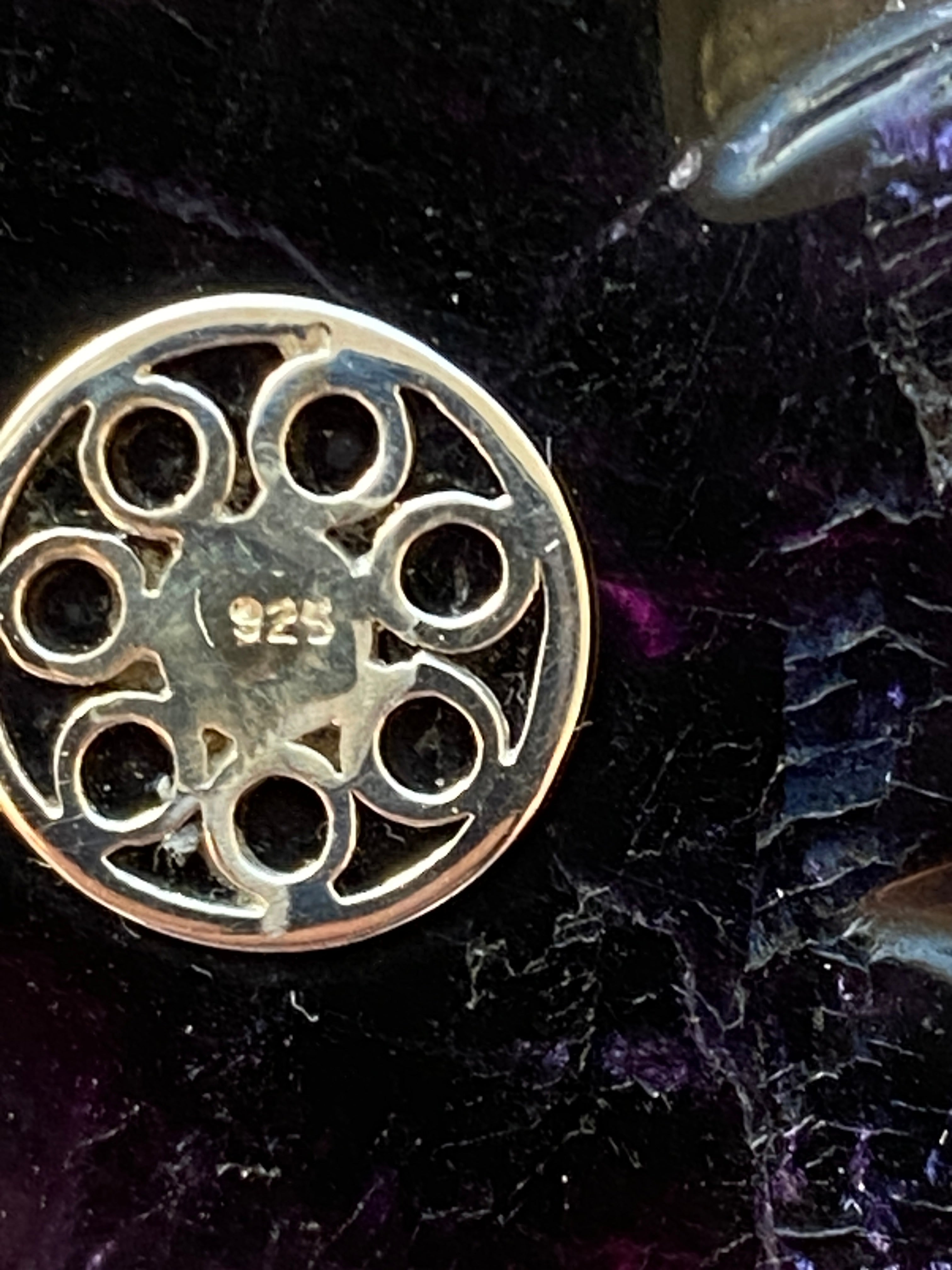 Suspended from a 20 inch sterling silver rope chain with trigger clasp
