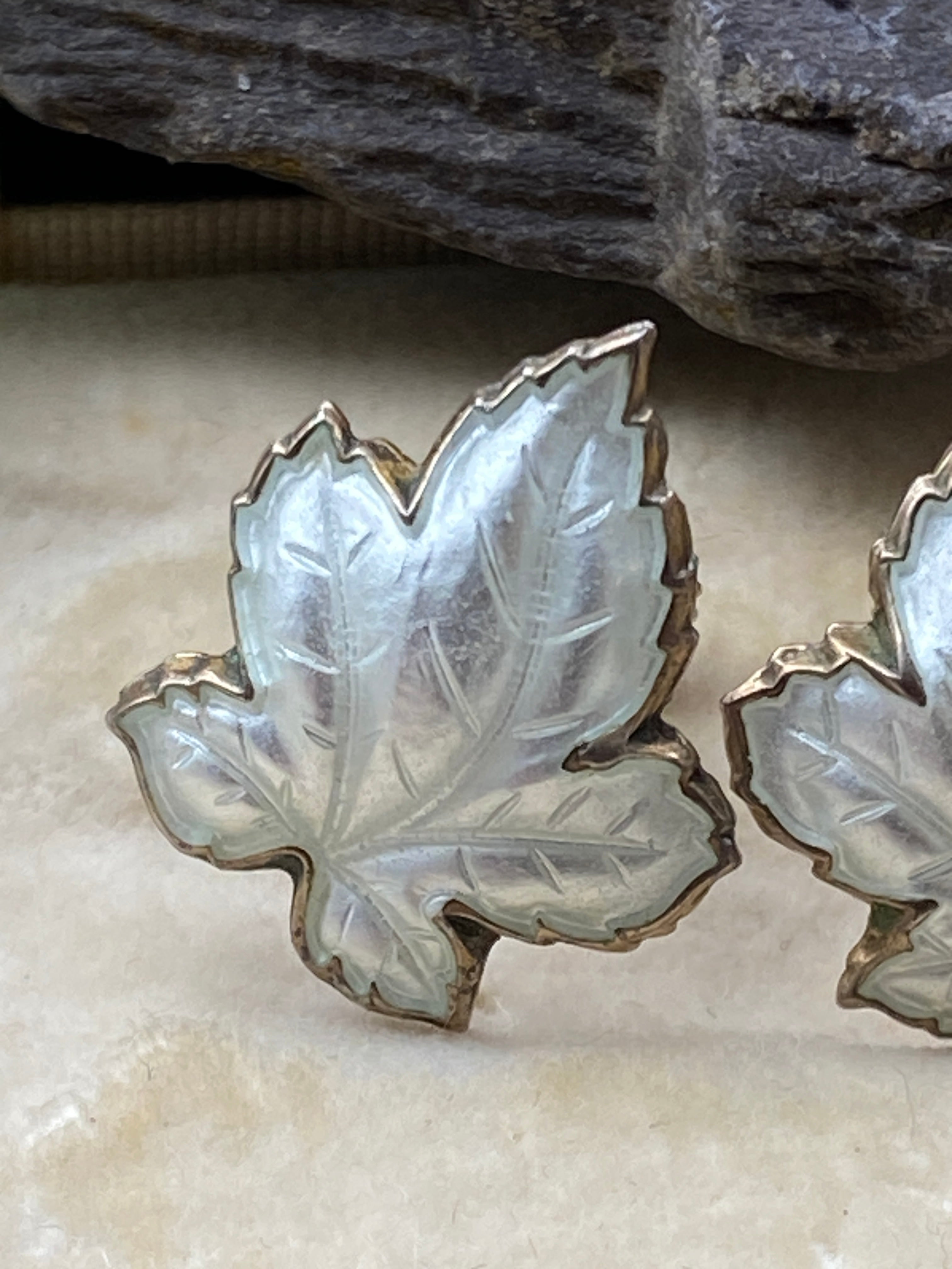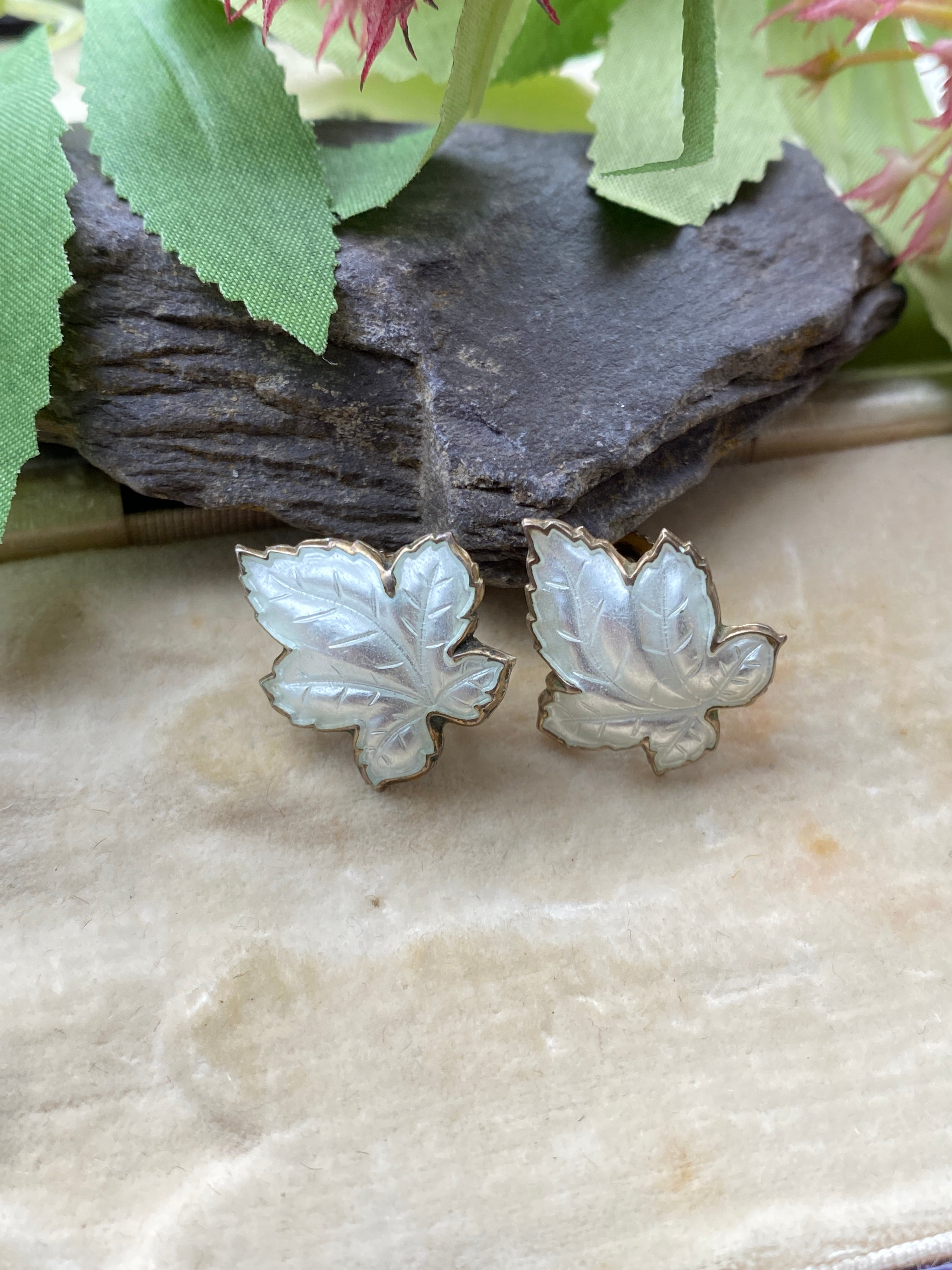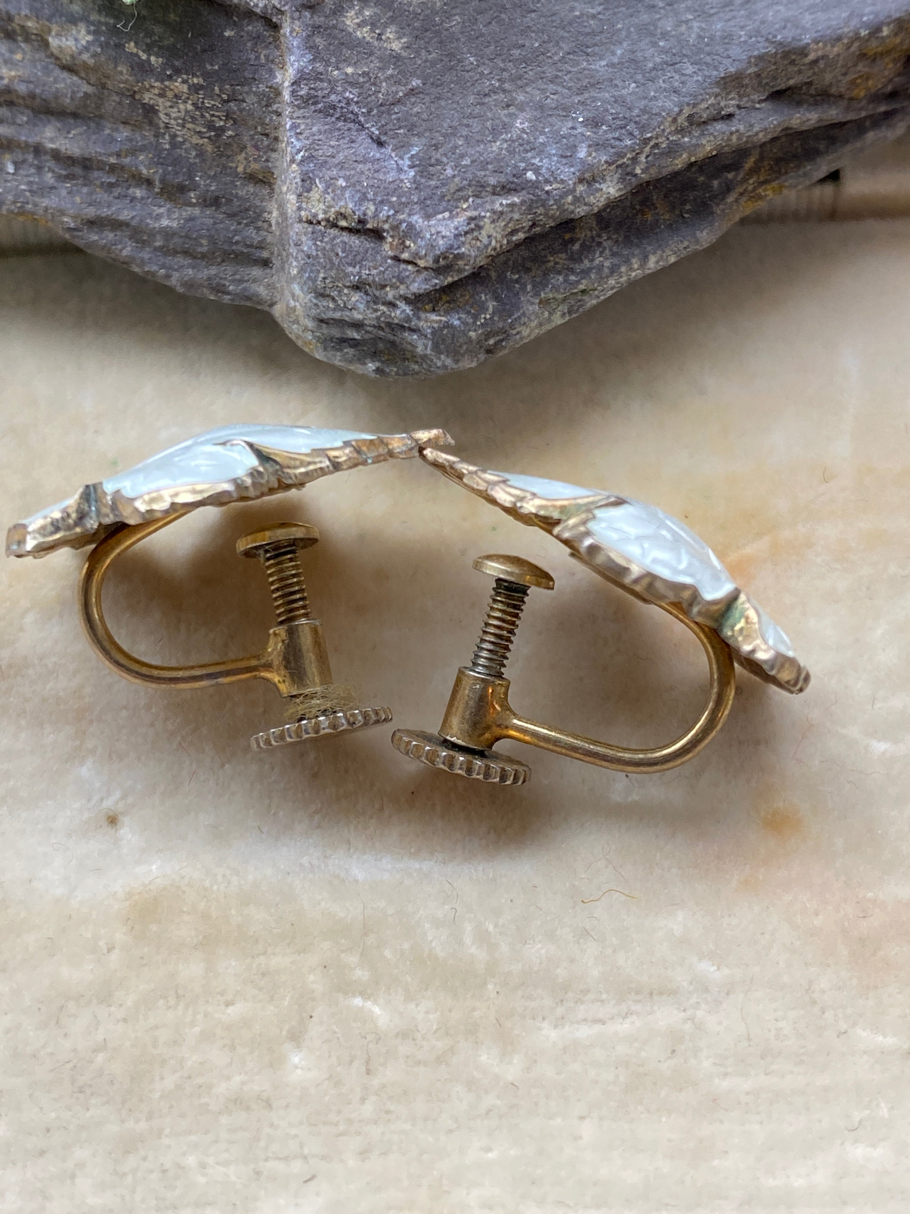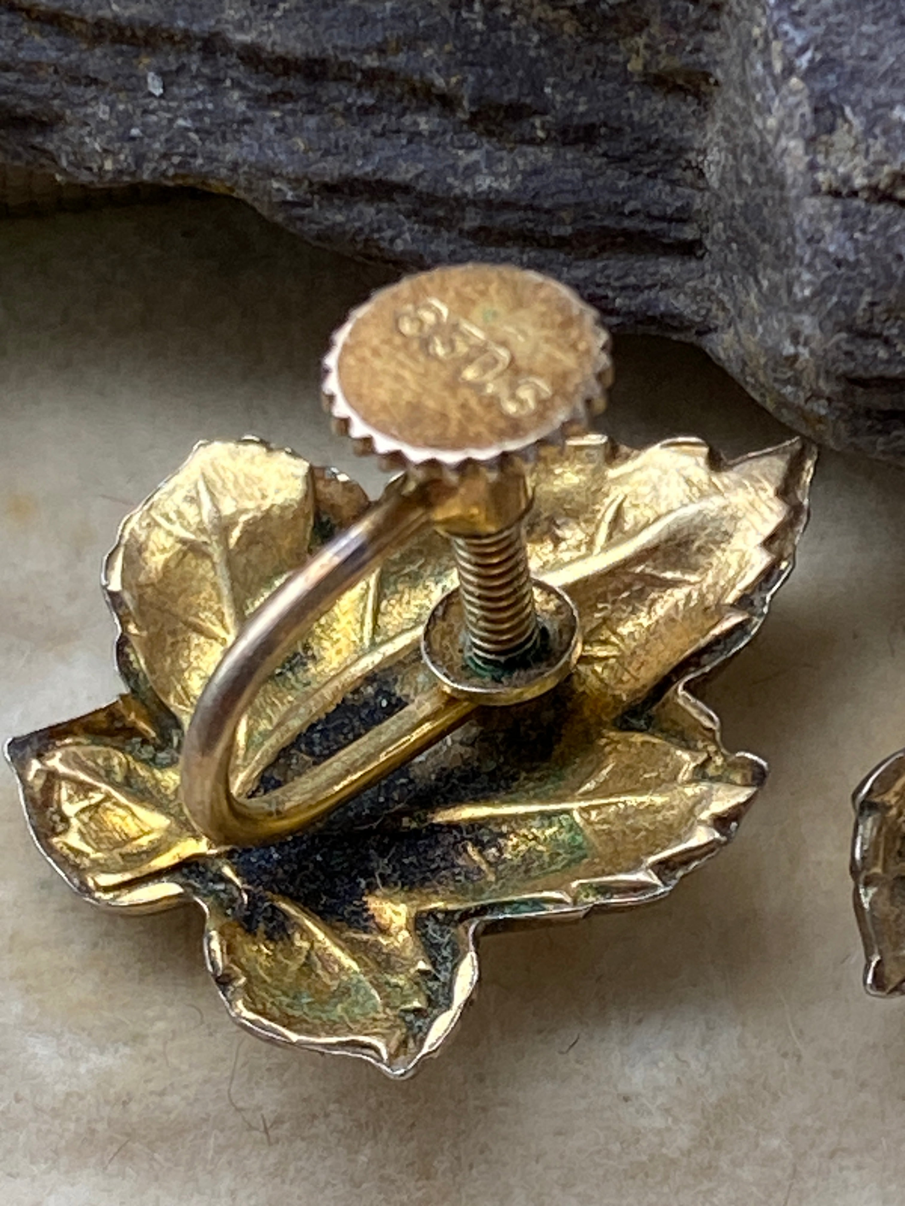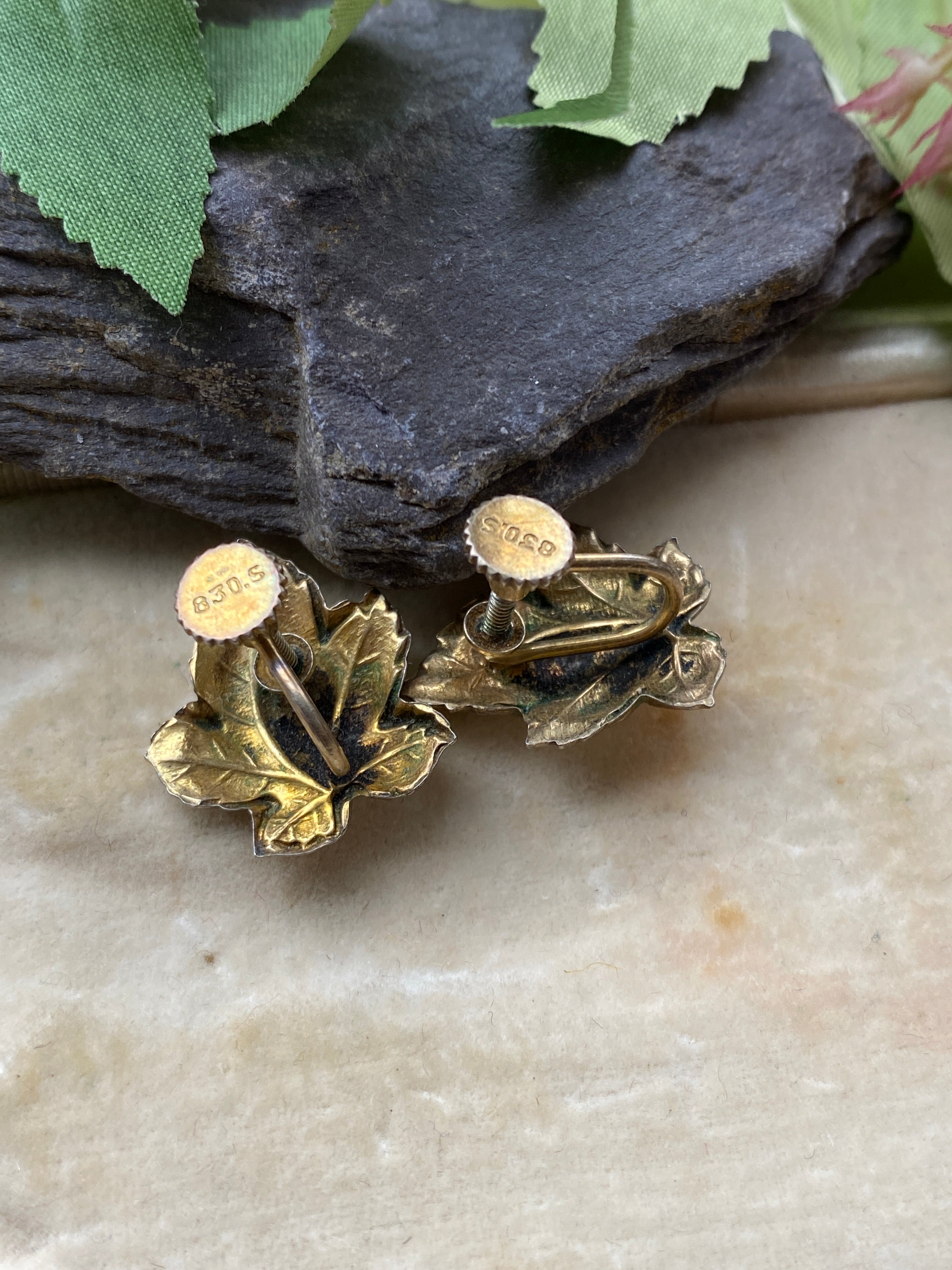 A pretty pair of Vermeil screw back earrings in the shape of leaves