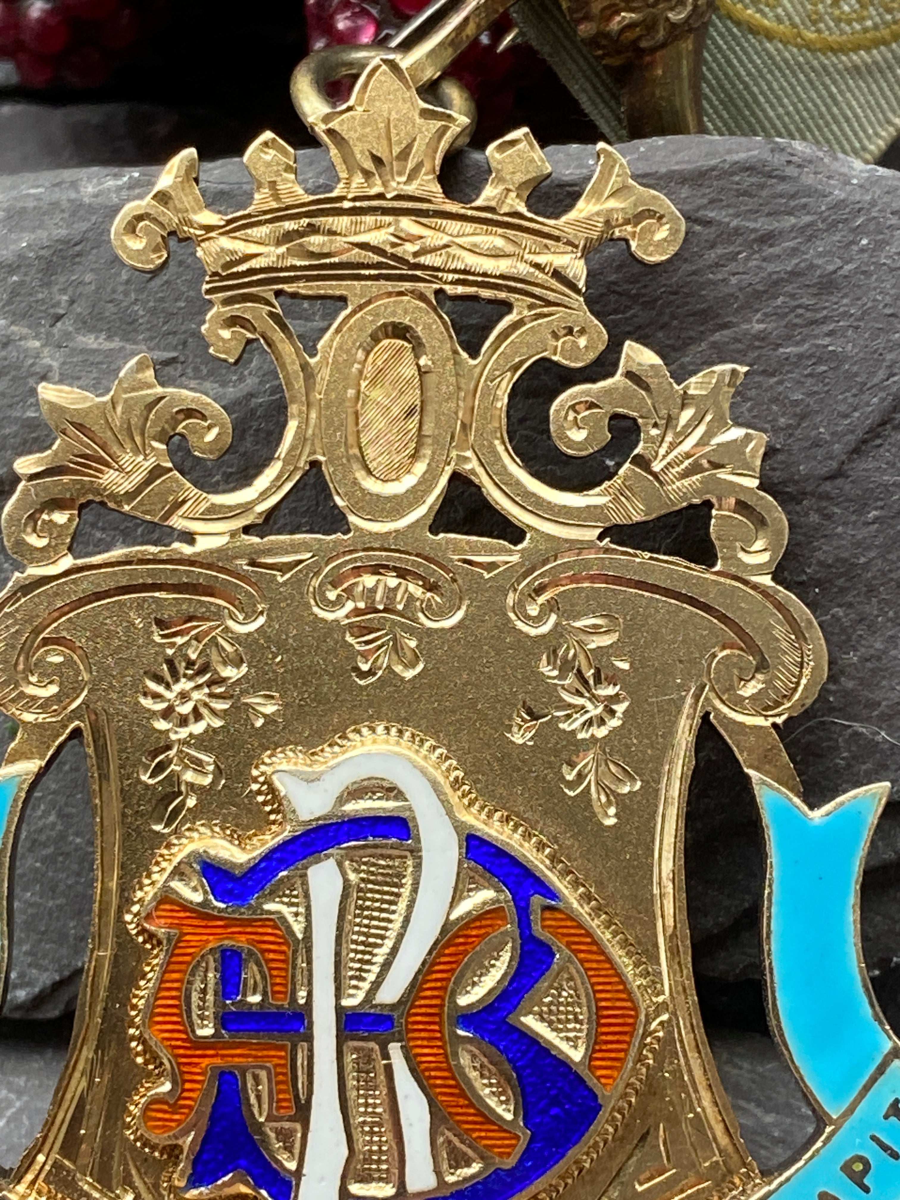 A beautiful Vermeil and enamel Royal Antediluvian Order of Buffalo medal.