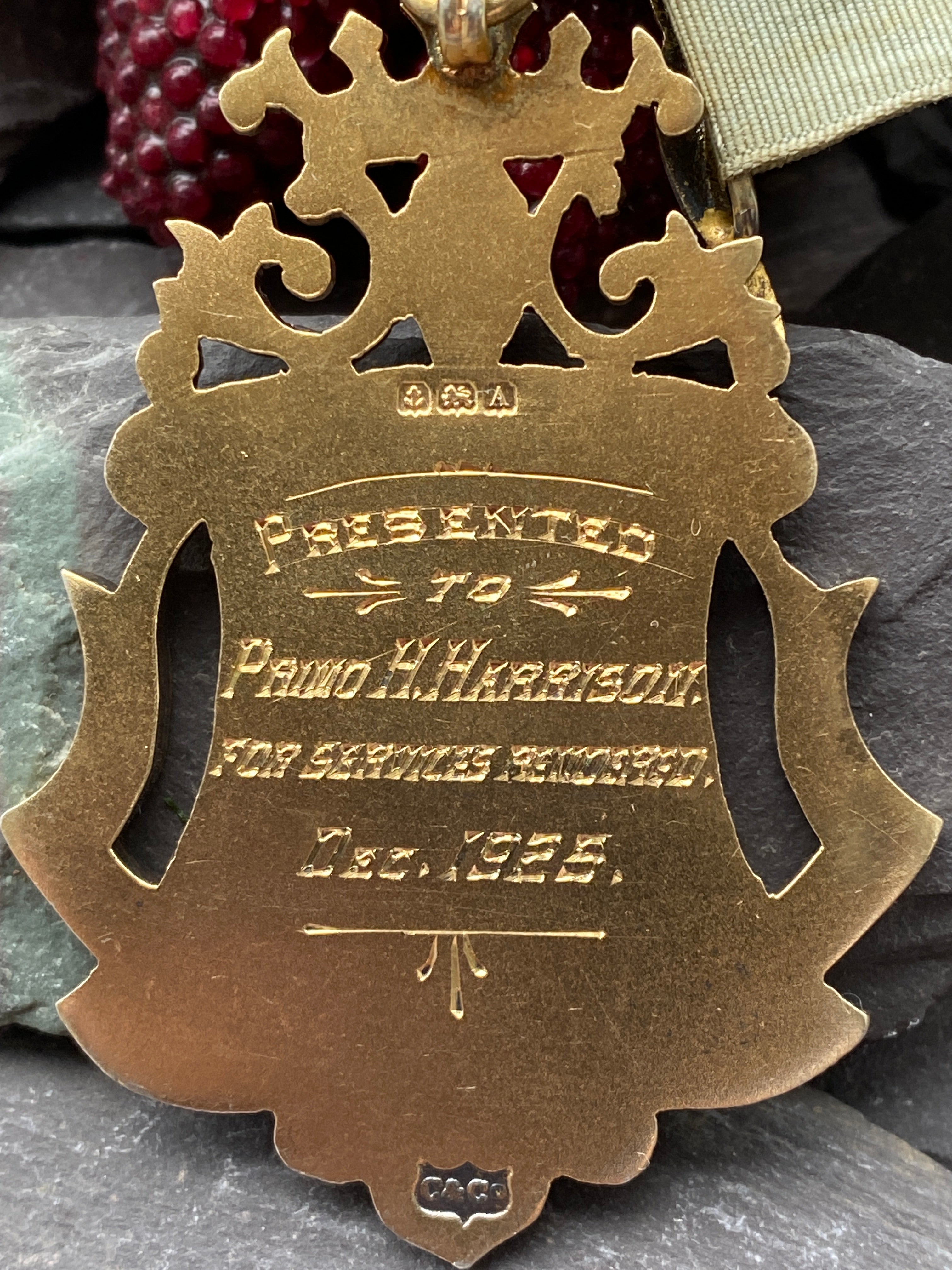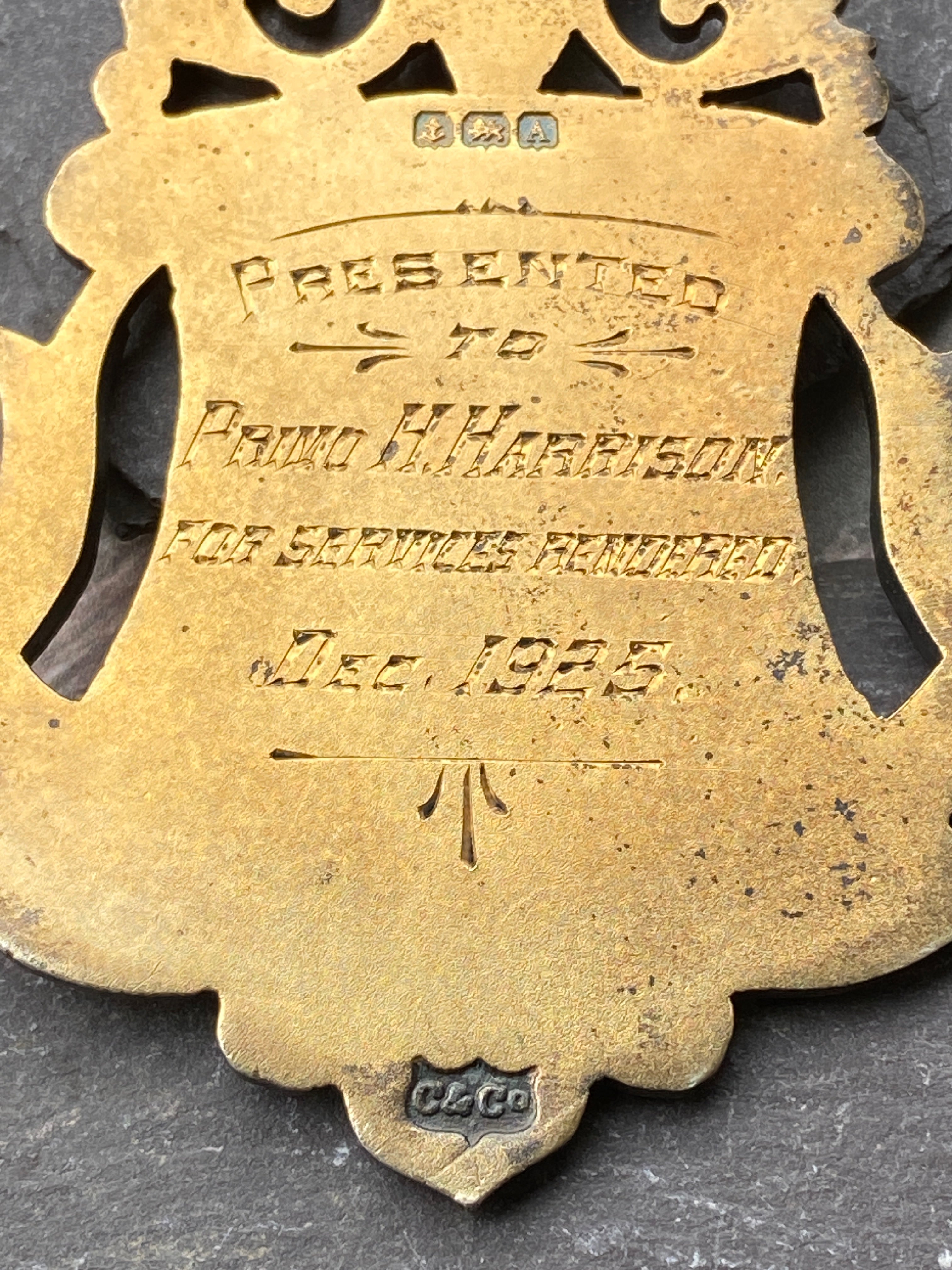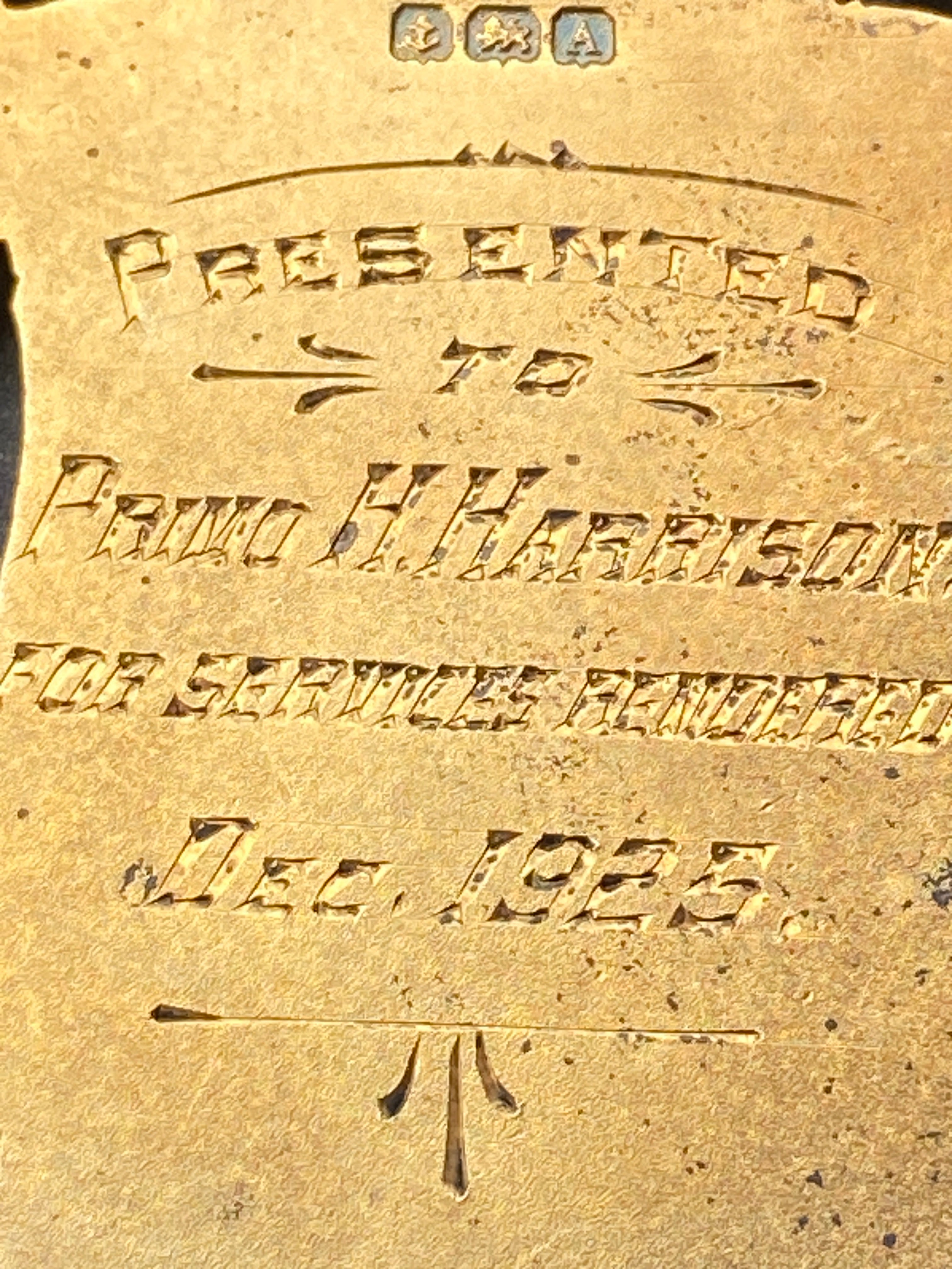 Inscribed to Primo H Harrison for services rendered Dec 1925.
