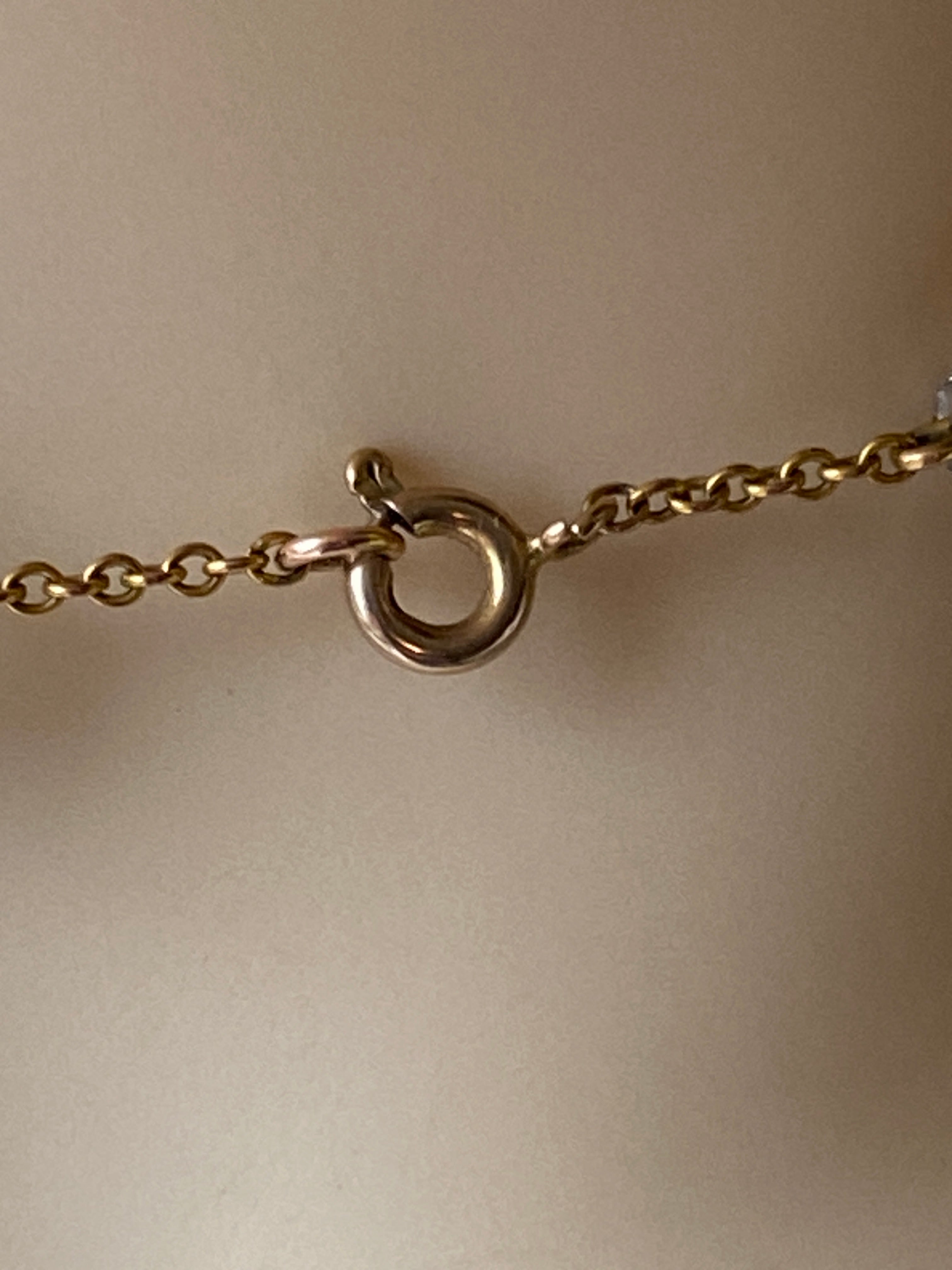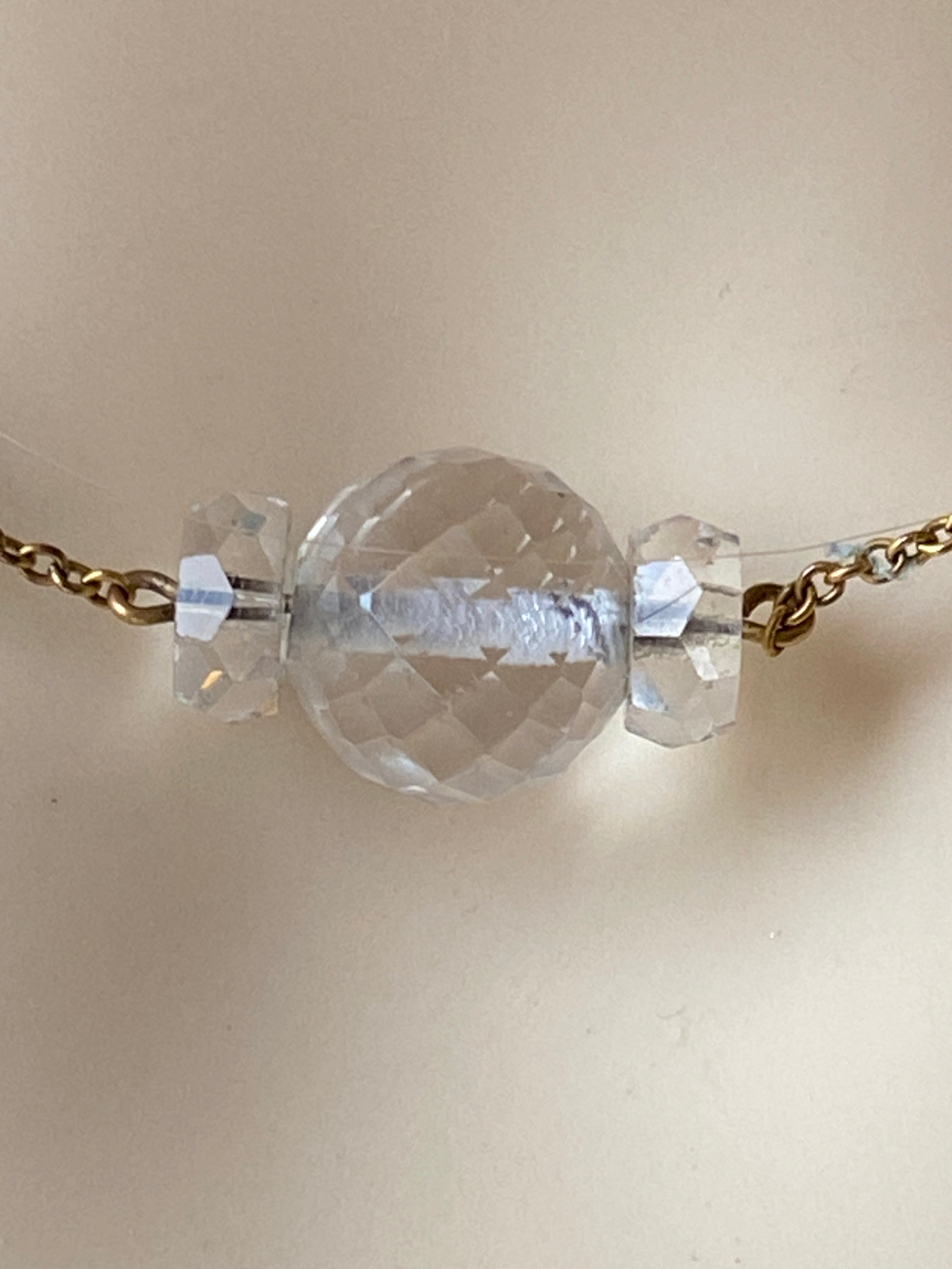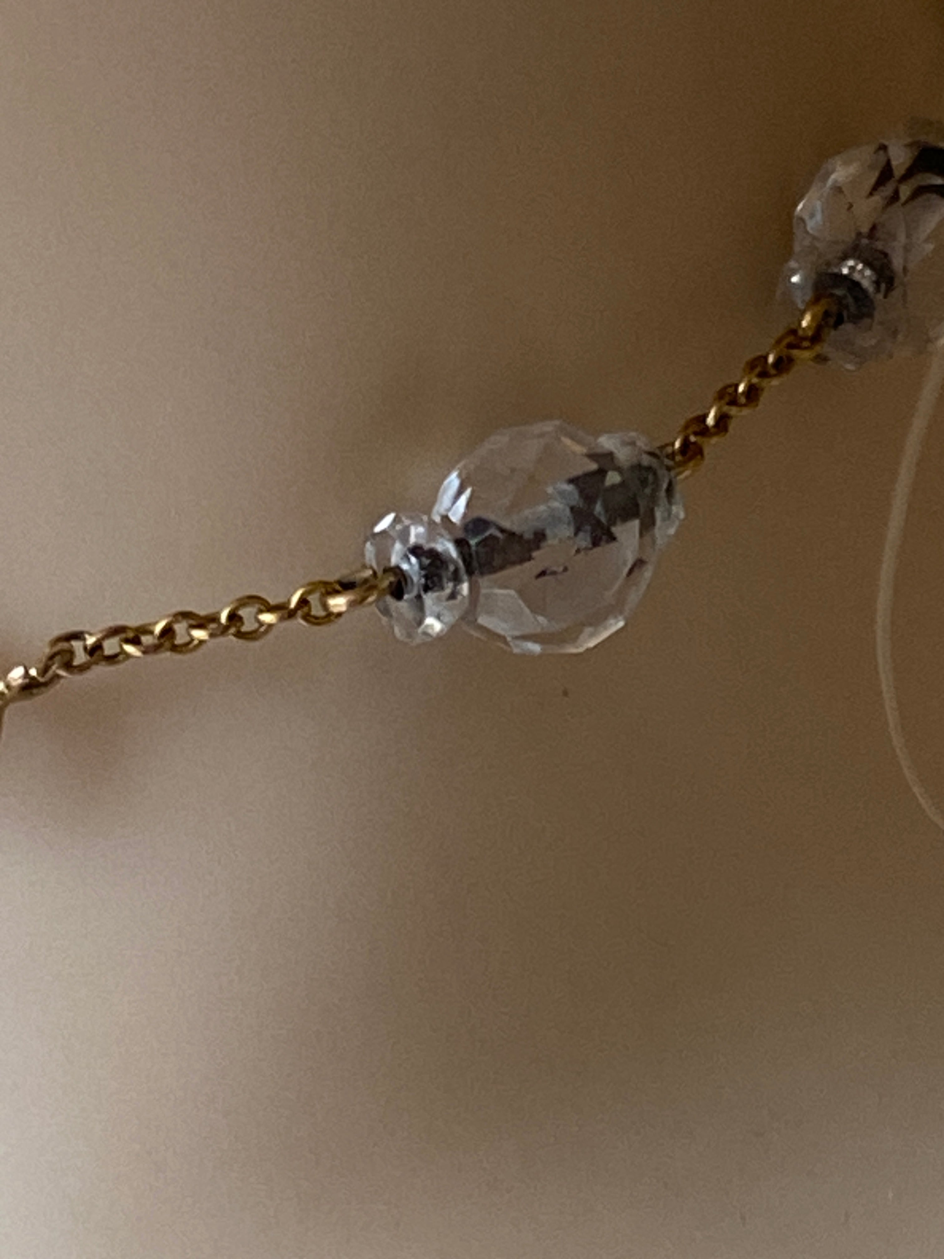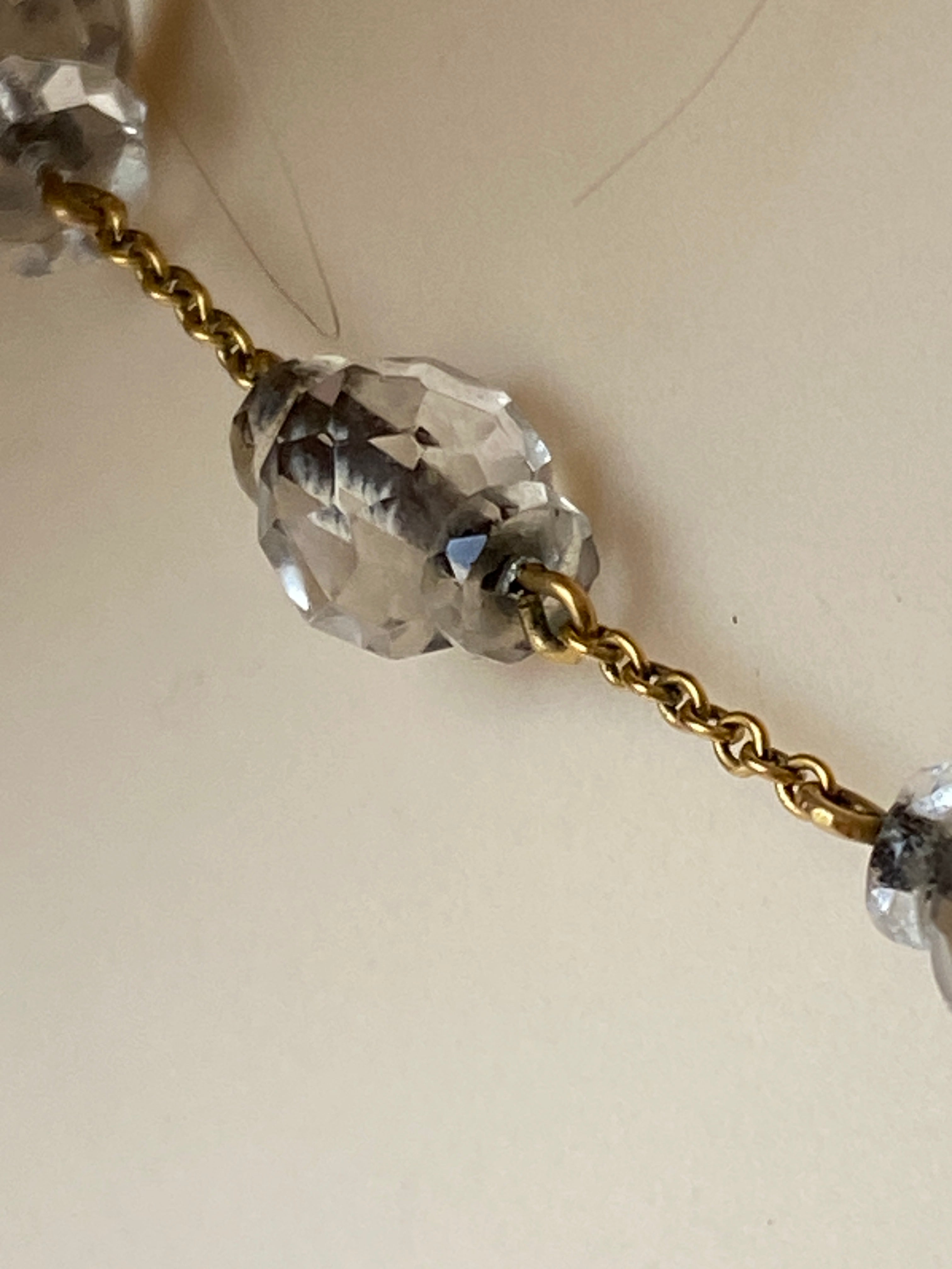 The rock crystal beads near the clasp have gone dark through the drill holes. This cannot be seen when worn