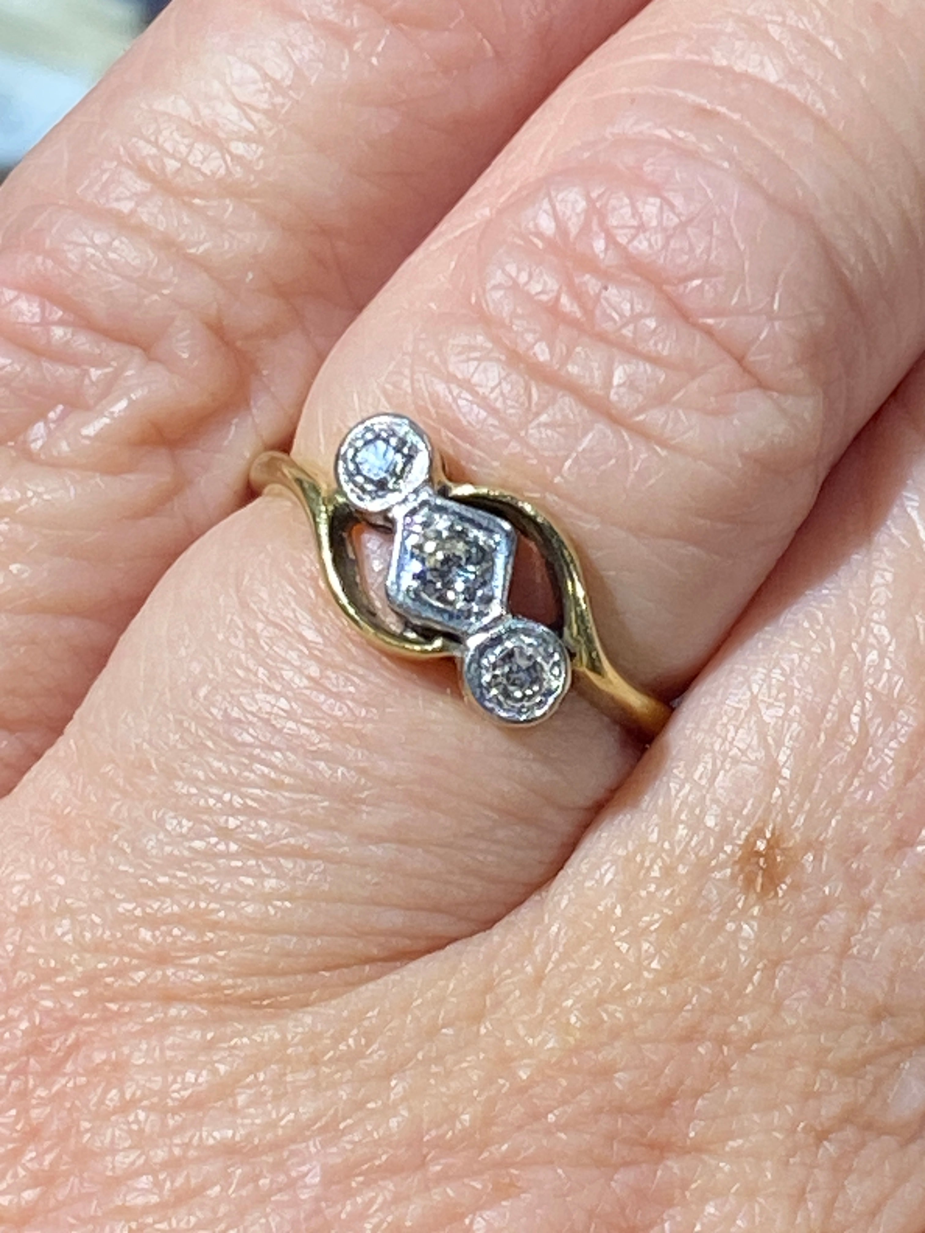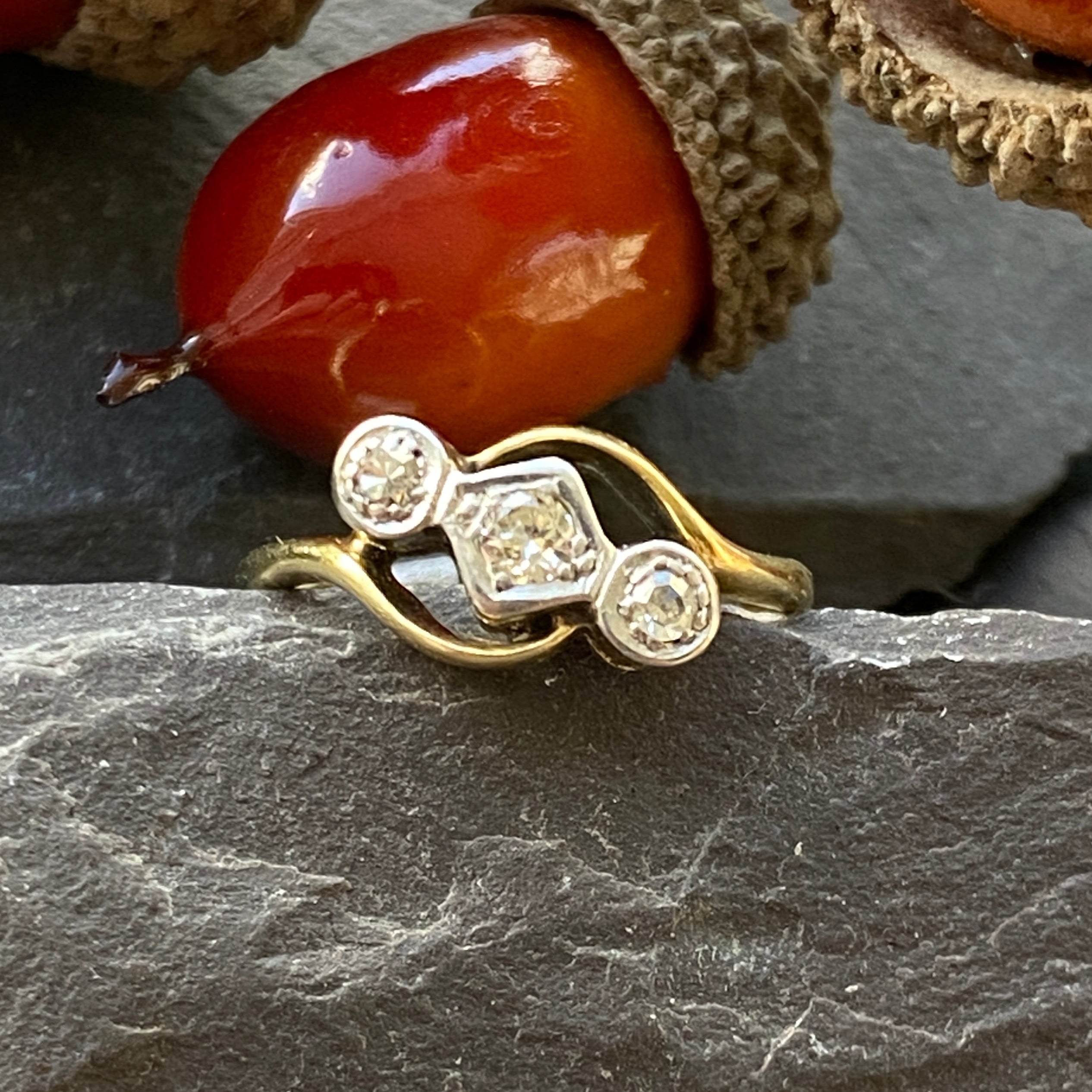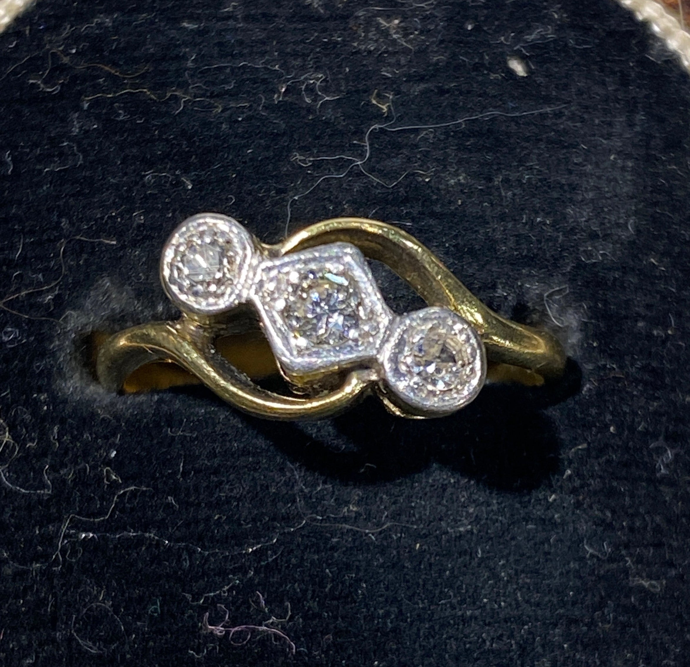 Early 20th century 18ct and platinum three Diamond twist Ring