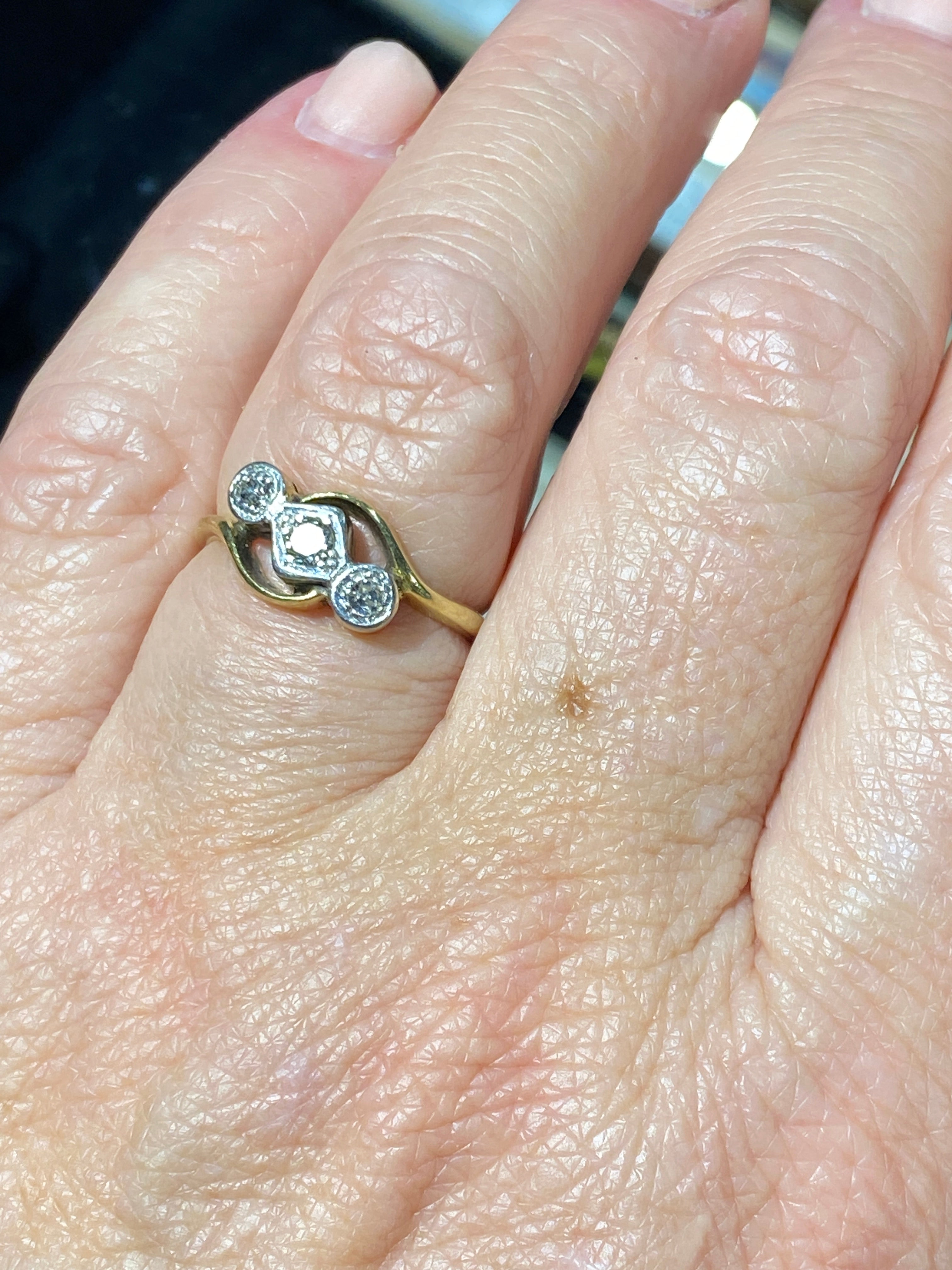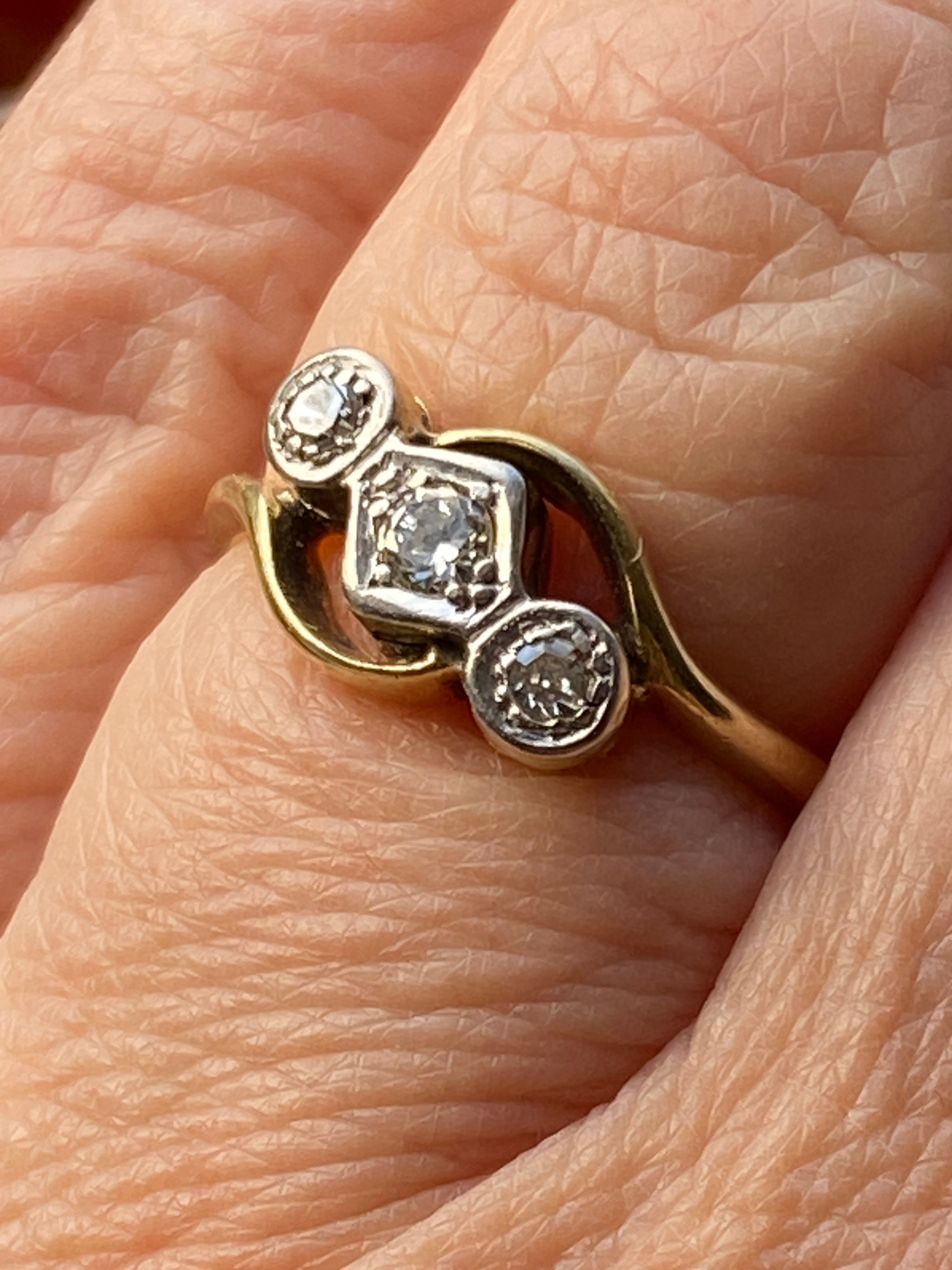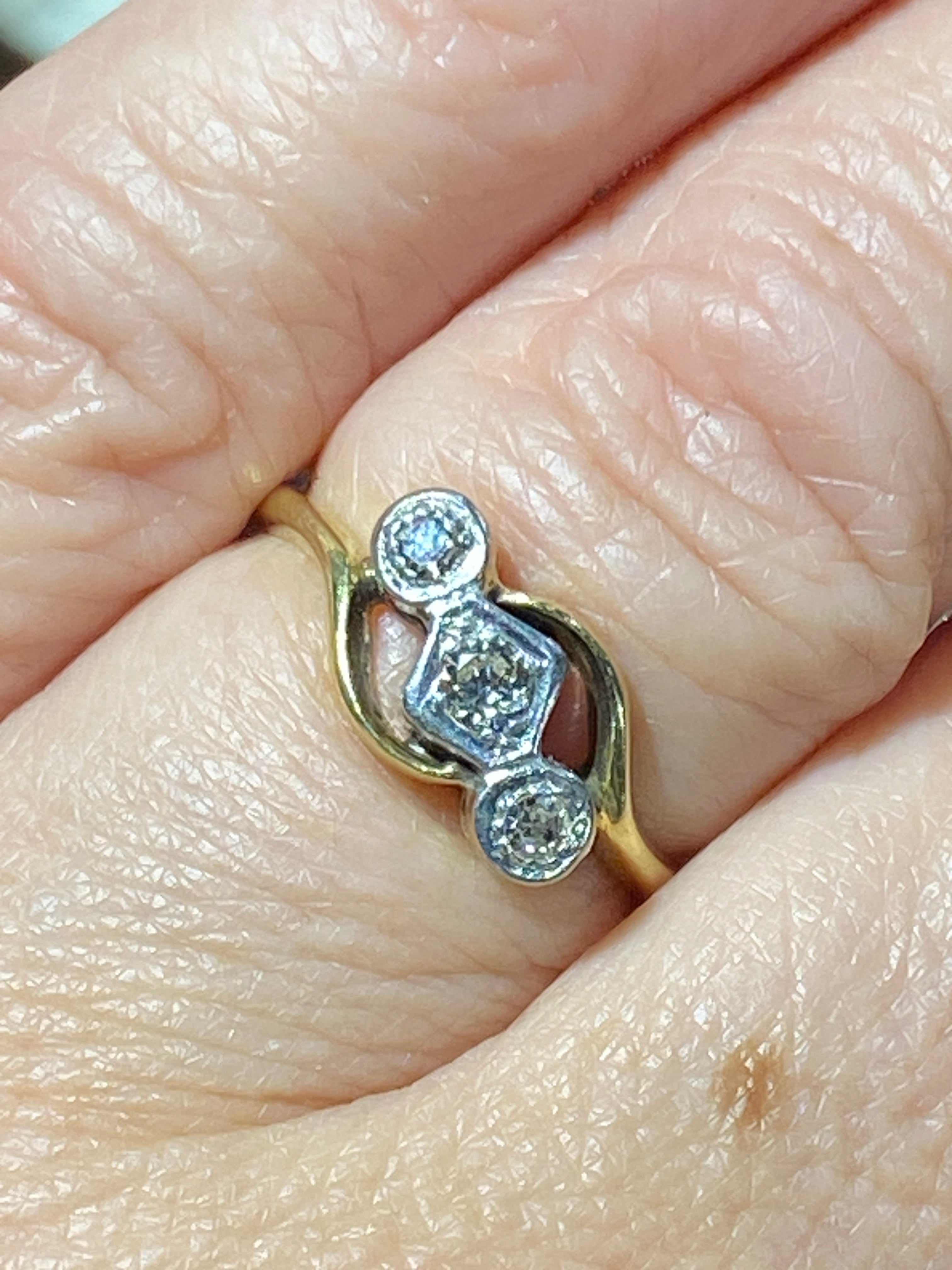 Early 20th century 18ct and platinum three Diamond twist Ring
