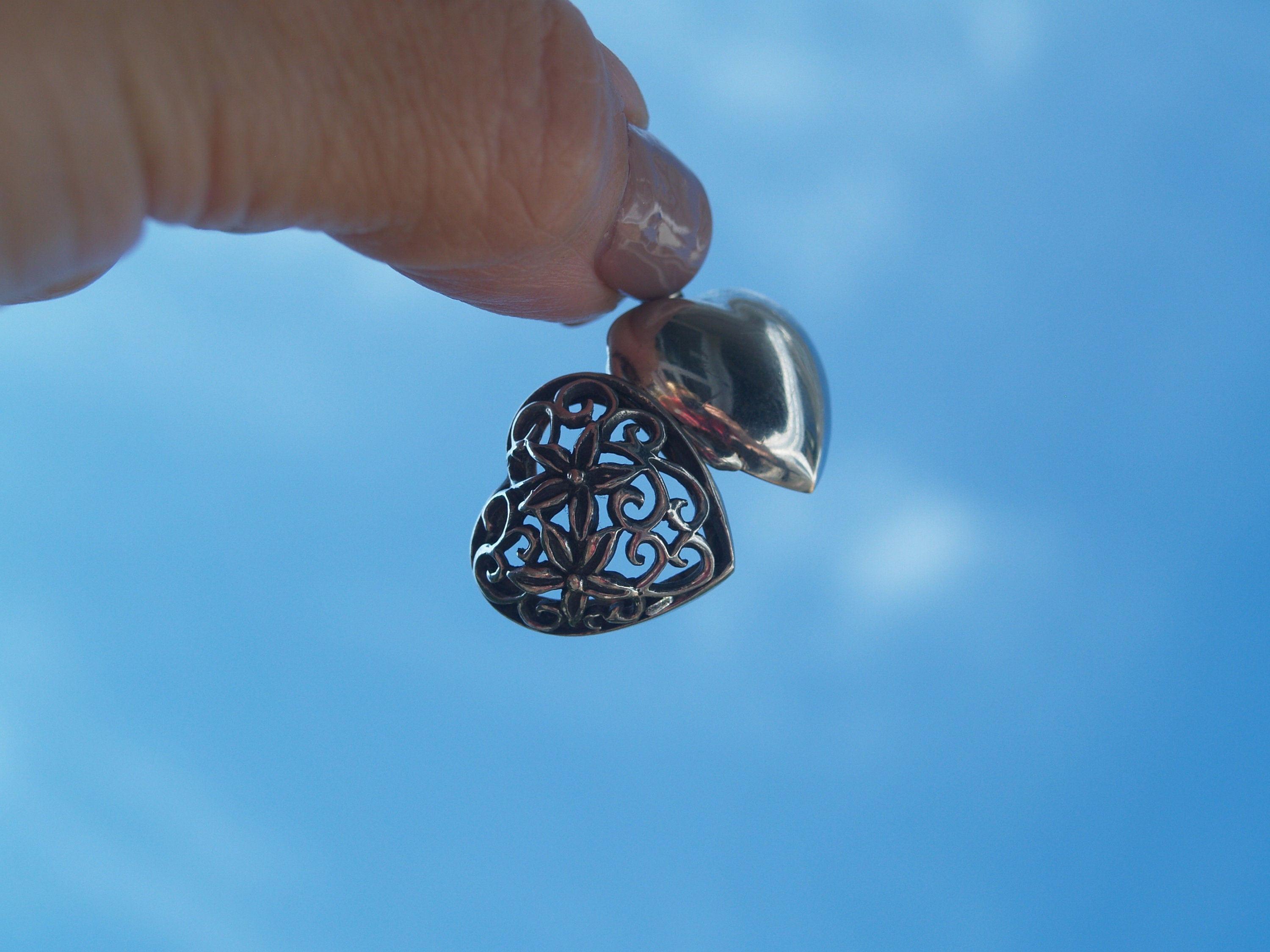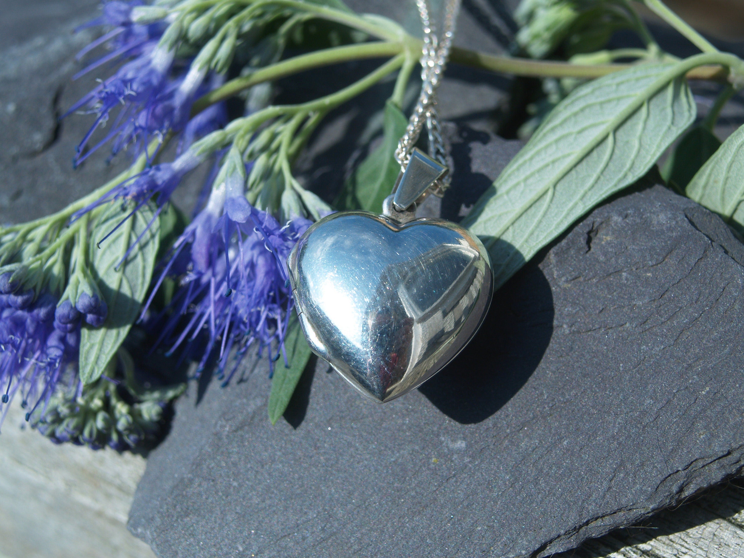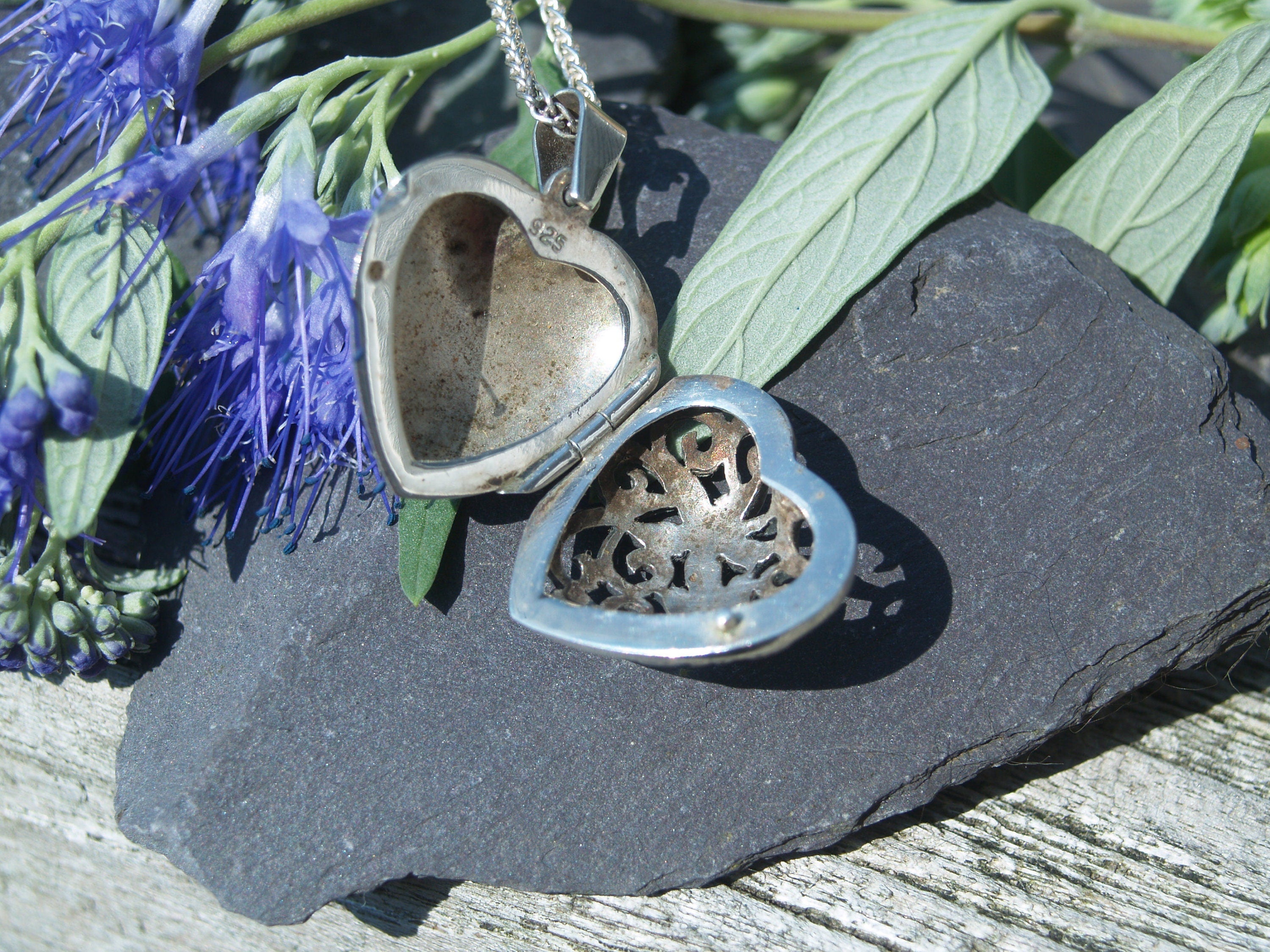 A pretty sterling silver heart shaped locket with pierced floral detail